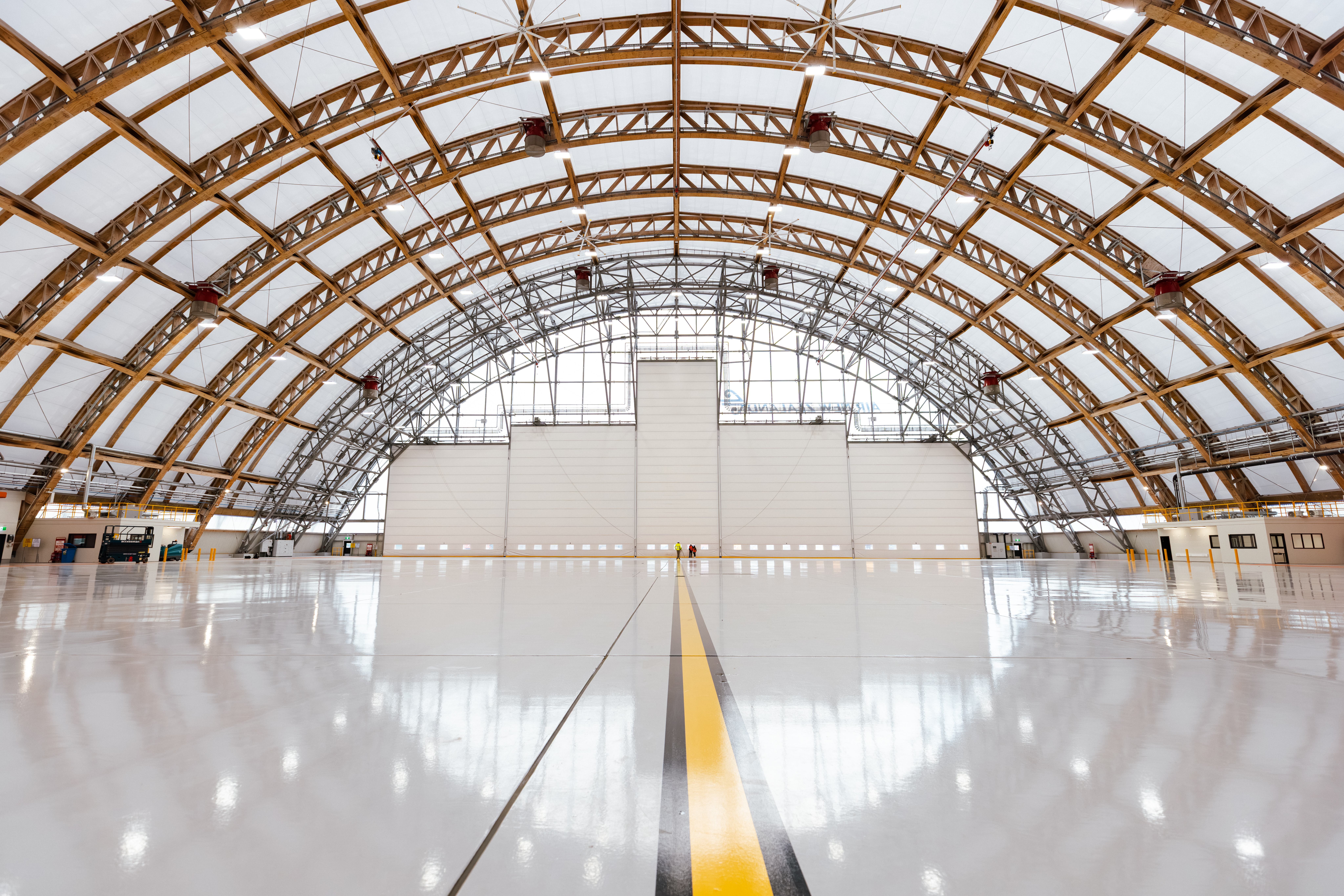The Southern Hemisphere’s largest single-span timber aircraft hangar is now part of Air New Zealand’s maintenance base in Auckland. Designed by Studio Pacific Architecture, Hangar 4 is a 15,000m² facility that sets a new benchmark for sustainable aviation infrastructure. Studio Pacific provided masterplanning, architecture, and lead consultancy services across the complex, which includes a 10,000m² hangar capable of housing a widebody and two narrowbody aircraft, alongside 5,000m² of workshops and engineering spaces. The new building integrates seamlessly with existing hangars, apron areas, and live airside operations. With a clear span of about 98 metres, Hangar 4 is the largest single-span timber arch aircraft hangar in the Southern Hemisphere – one and a half times the size of Air New Zealand’s largest existing hangar. The prefabricated timber trusses, each weighing 38 tonnes, were lifted into place on site using New Zealand’s largest crawler crane. Timber was chosen for its light weight, seismic resilience, and resistance to coastal corrosion, offering advantages over conventional steel construction. Integration with adjacent workshops and apron operations required careful sequencing to ensure safety and uninterrupted service across the airline’s engineering base.