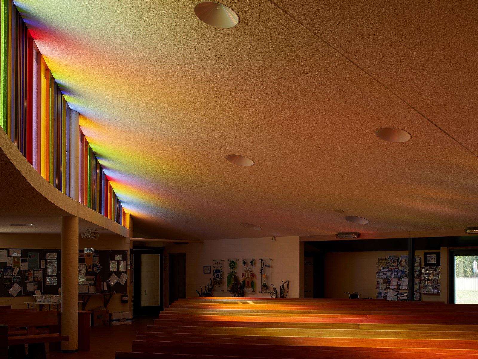 These qualities were brought to bear in John Scott’s best-known commission and one of New Zealand’s most significant examples of religious architecture: Futuna Chapel (1961). This masterful composition of light and space reflects Scott’s respect for the materials and process of building, a process in which he was intimately involved alongside his clients, the Society of Mary.