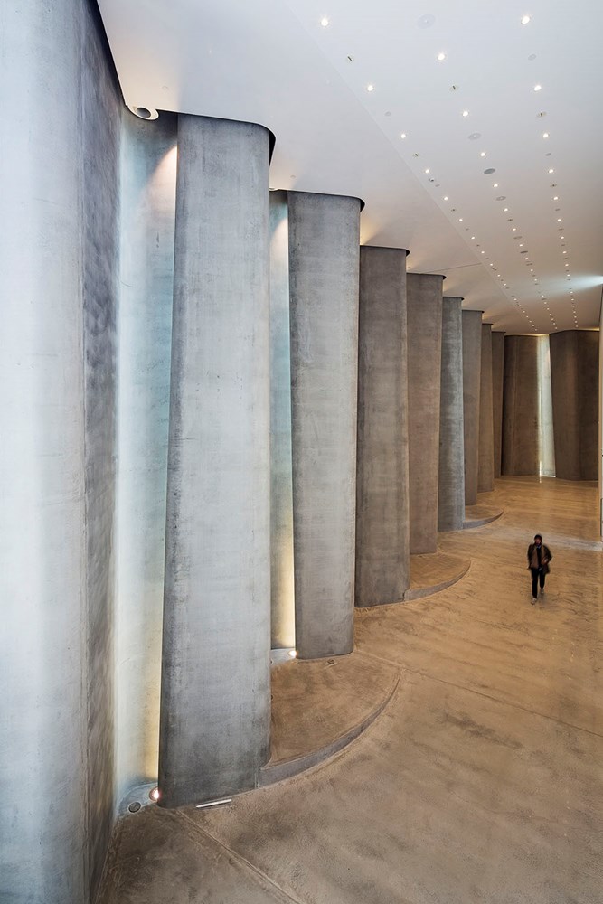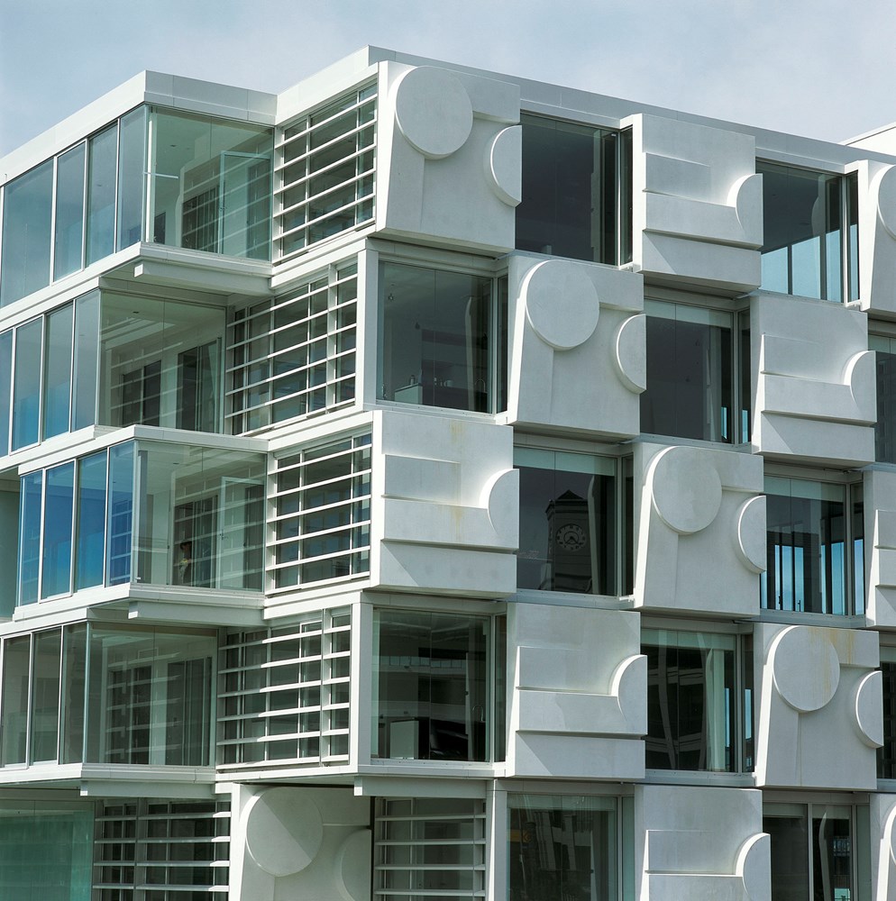 That is not to say that Andrew’s work is without defining traits or a common spirit. His architecture is as adventurous as he is aesthetically dextrous. He could surely turn his hand to any style, and like a high-art novelist dipping pseudonymously into genre writing, he has designed lesser-known works in a variety of idioms. But bold form-making is at the heart of Andrew’s practice, along with an appreciation for and masterful deployment of materials. He likes the tough and solid stuff, especially concrete and steel.