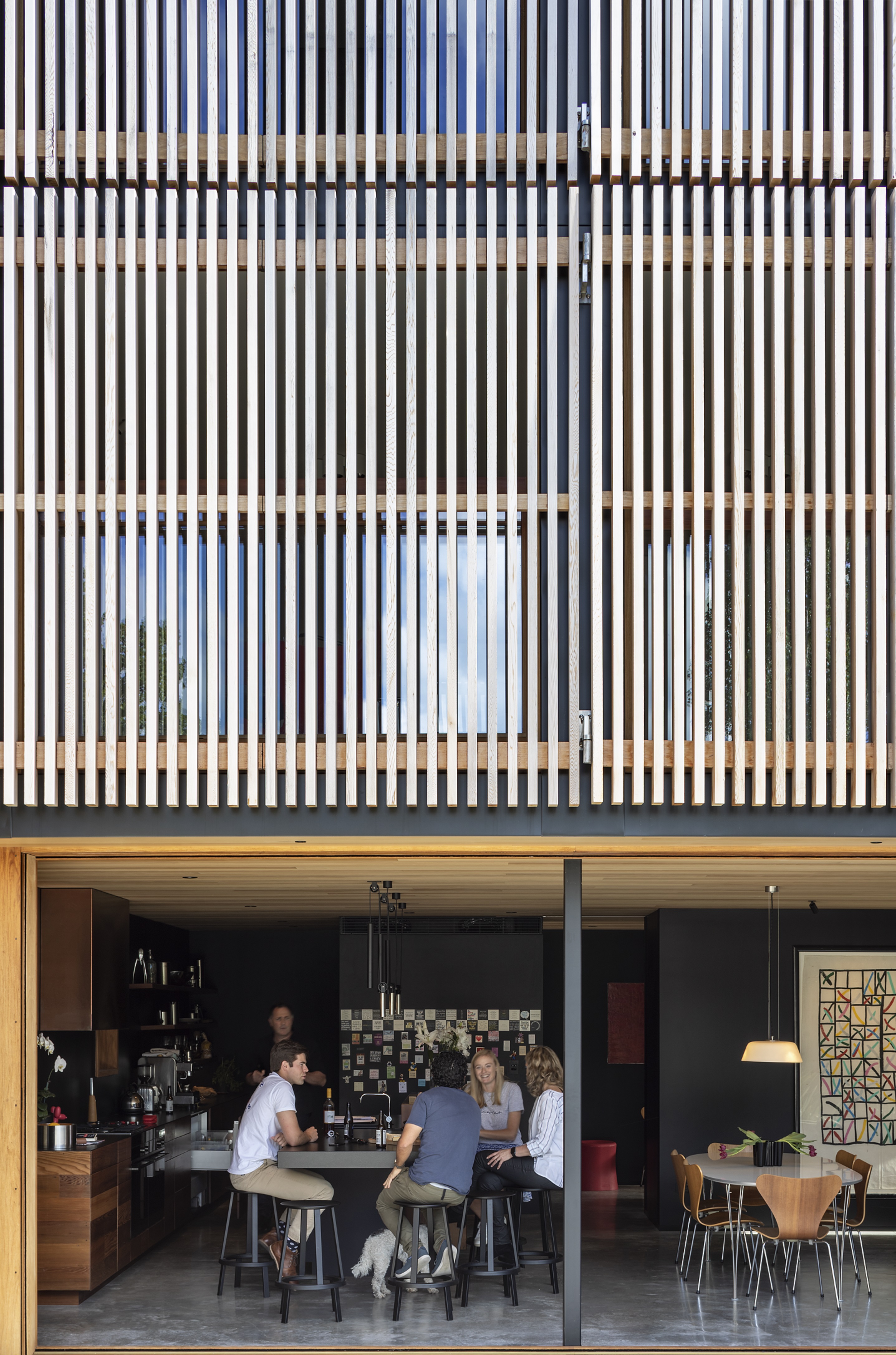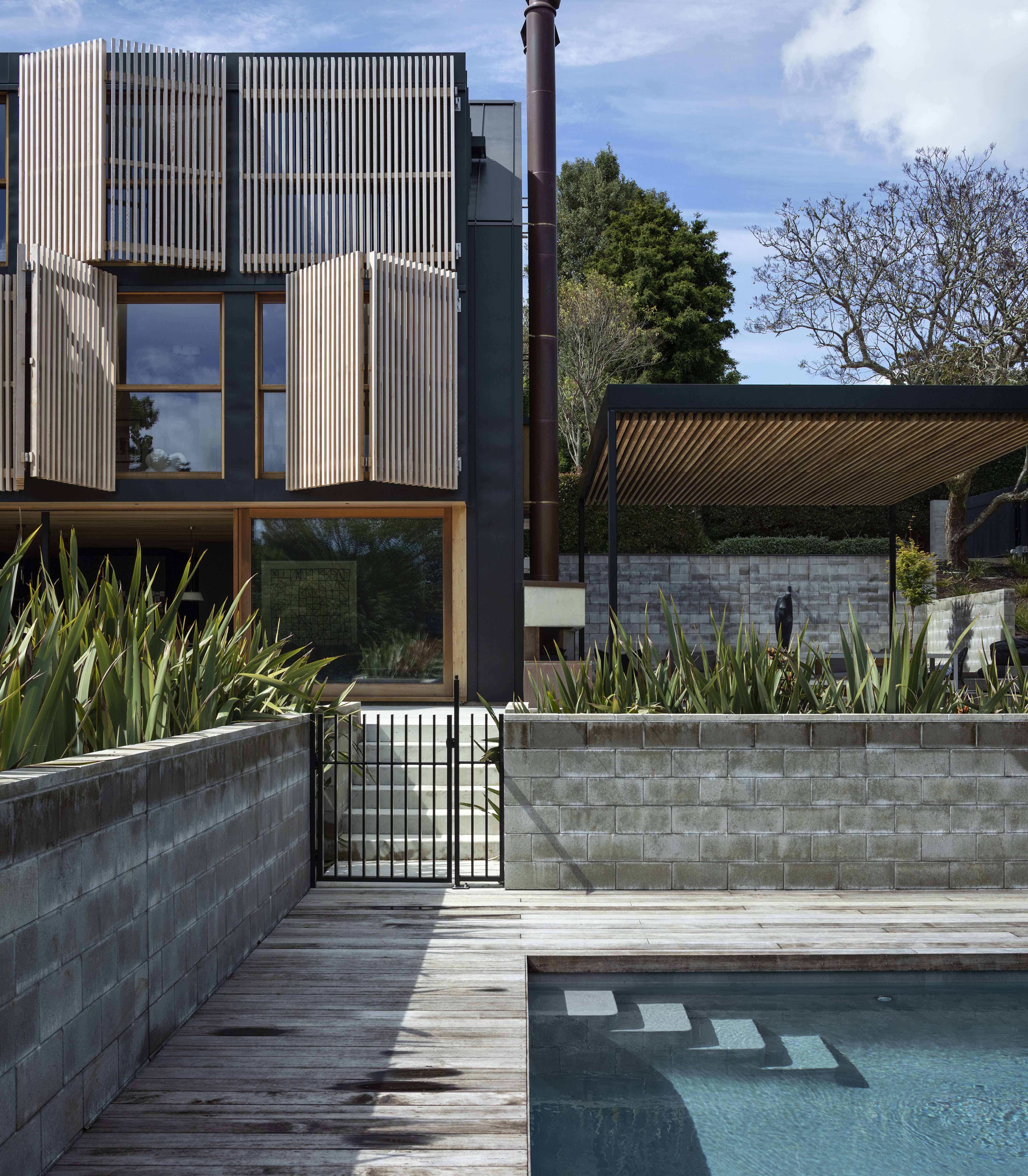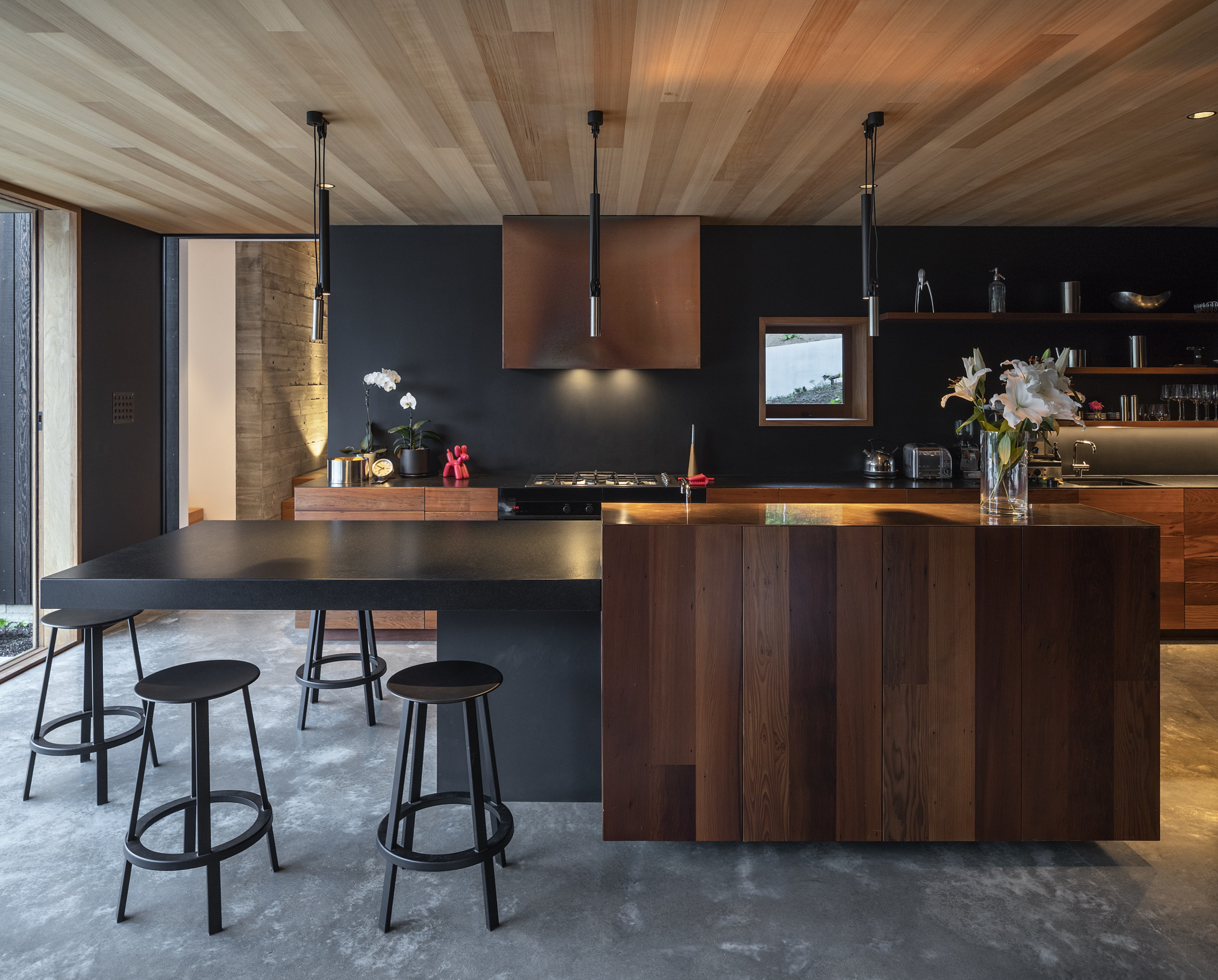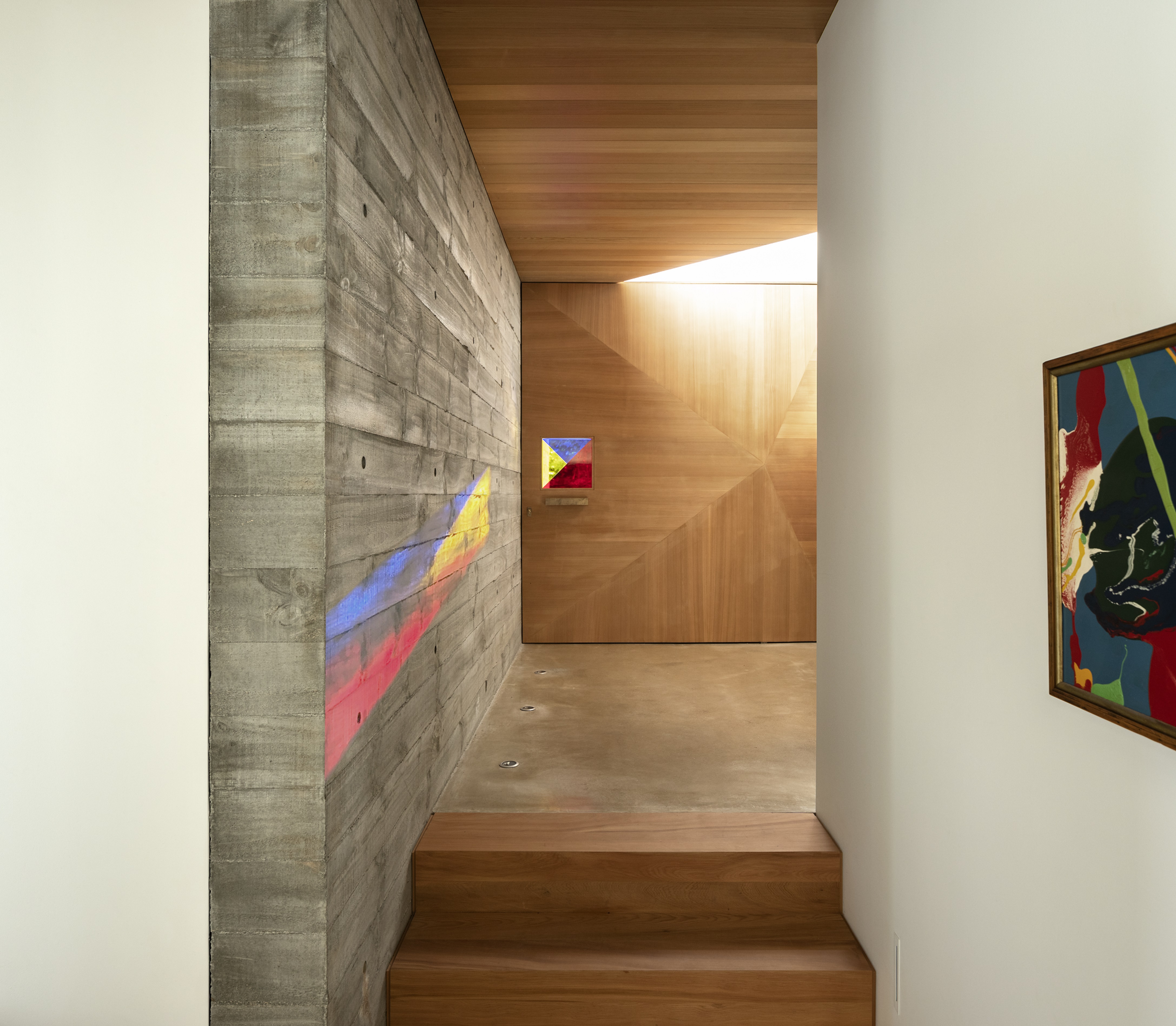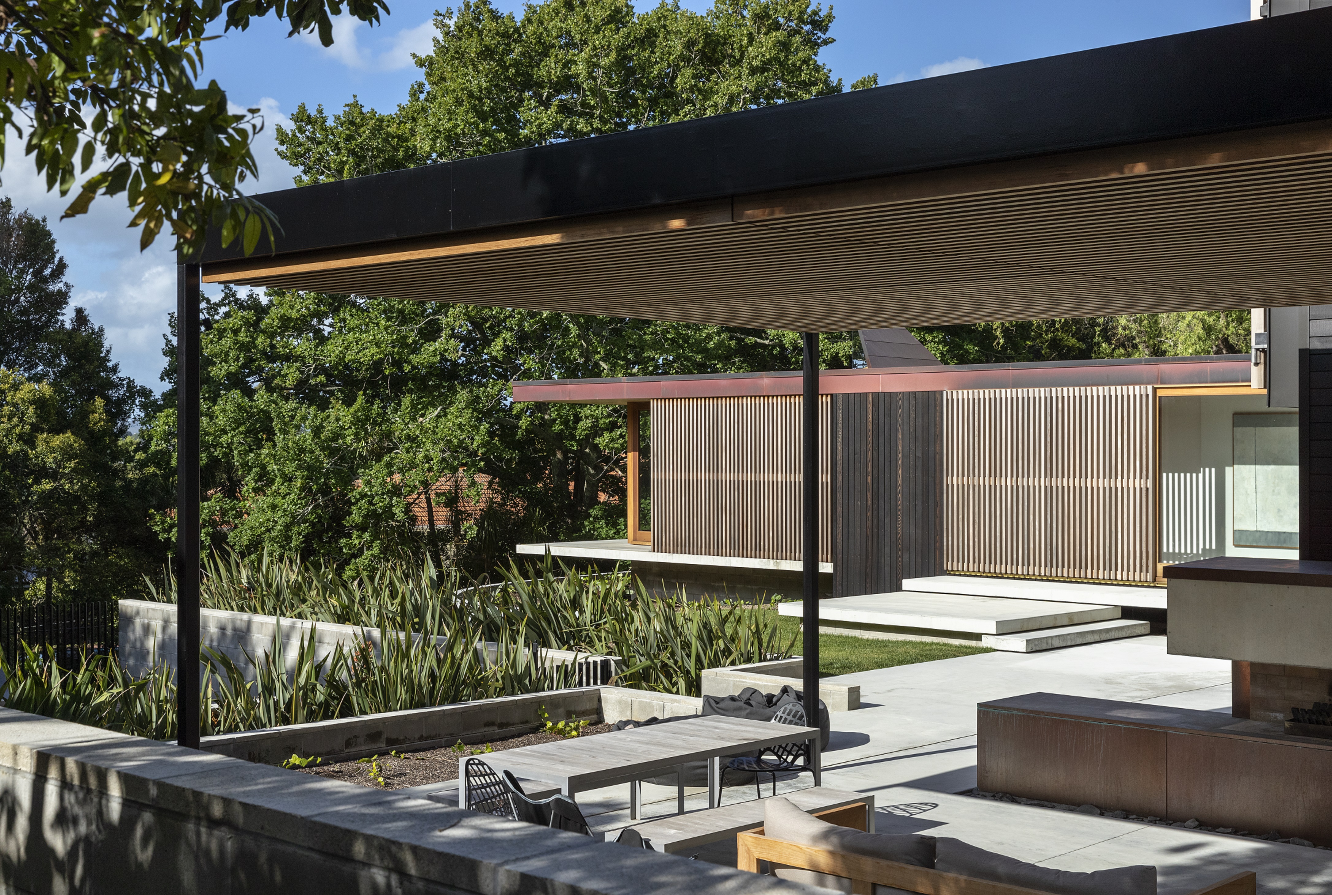 This is a thoroughly livable house that sits confidently in its secluded garden environment. A three-level tower is grounded into the site and paired with a single-level pavilion that extends into a parklike setting. All rooms and spaces have a unique character, and qualities that reflect their function. High-quality materials and elegant details are deployed to good effect in developing a contemporary family house influenced by a mid-century style. This is an exuberant and special house that perfectly balances habitation, craft and aesthetics.