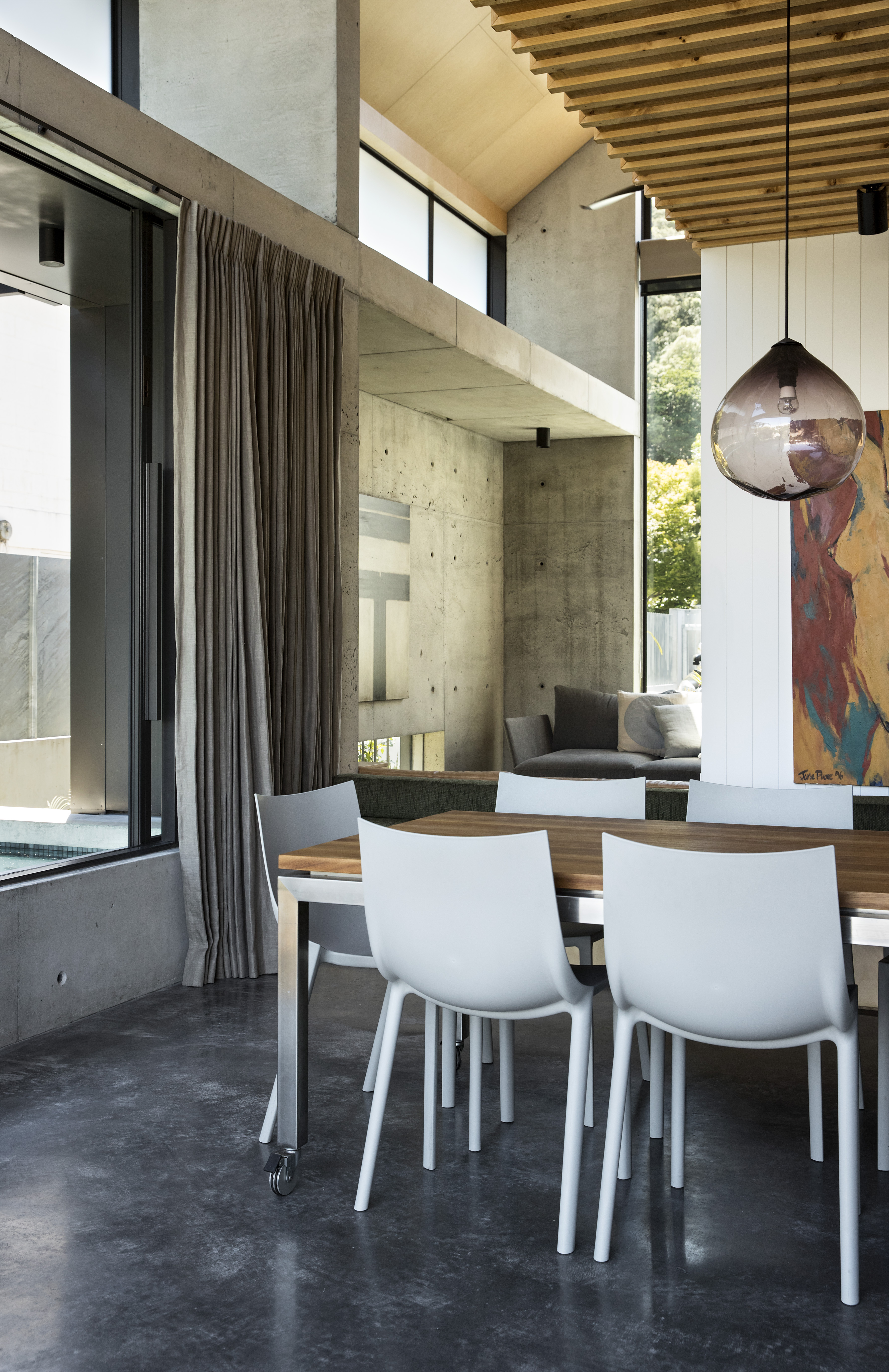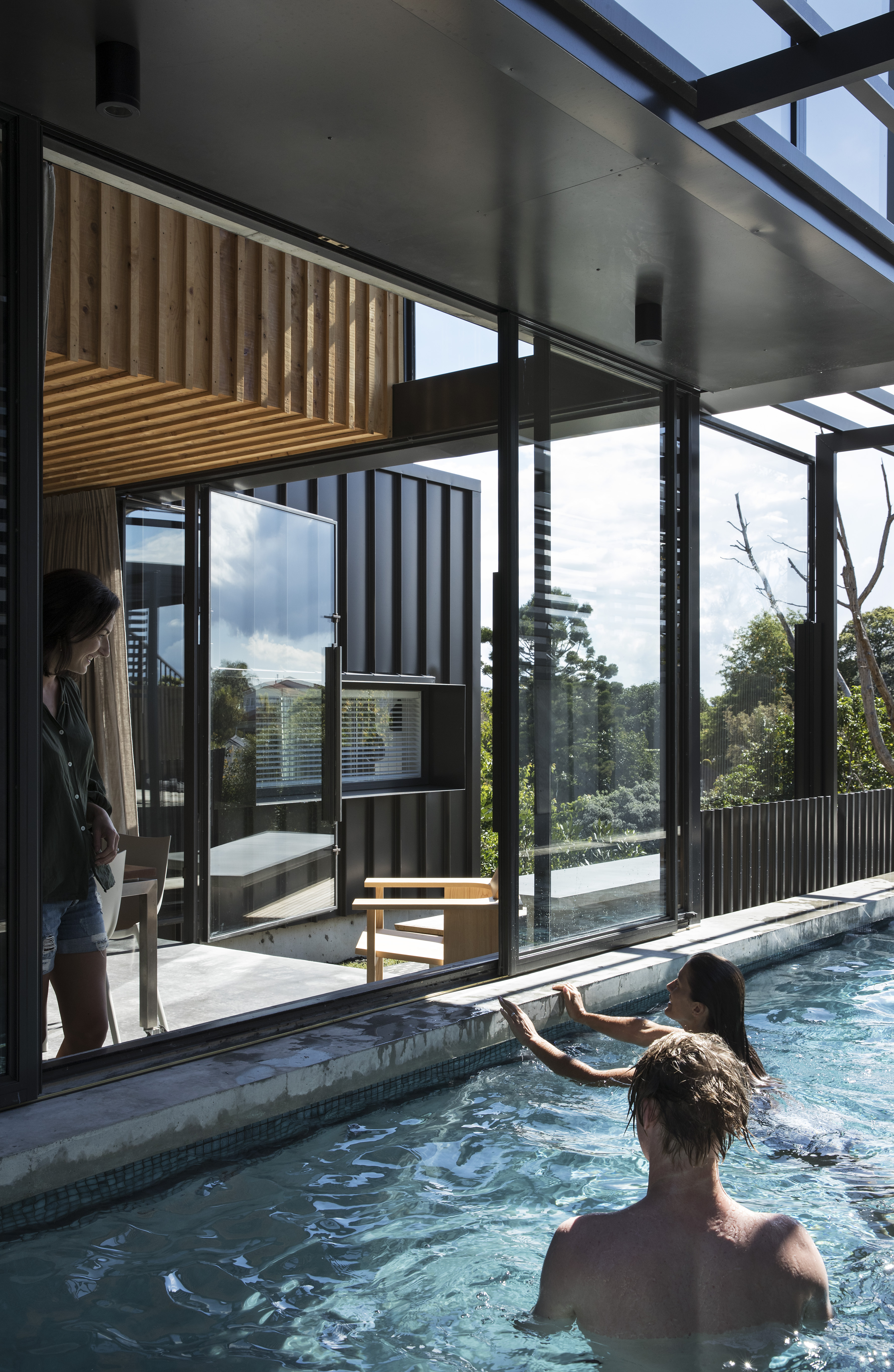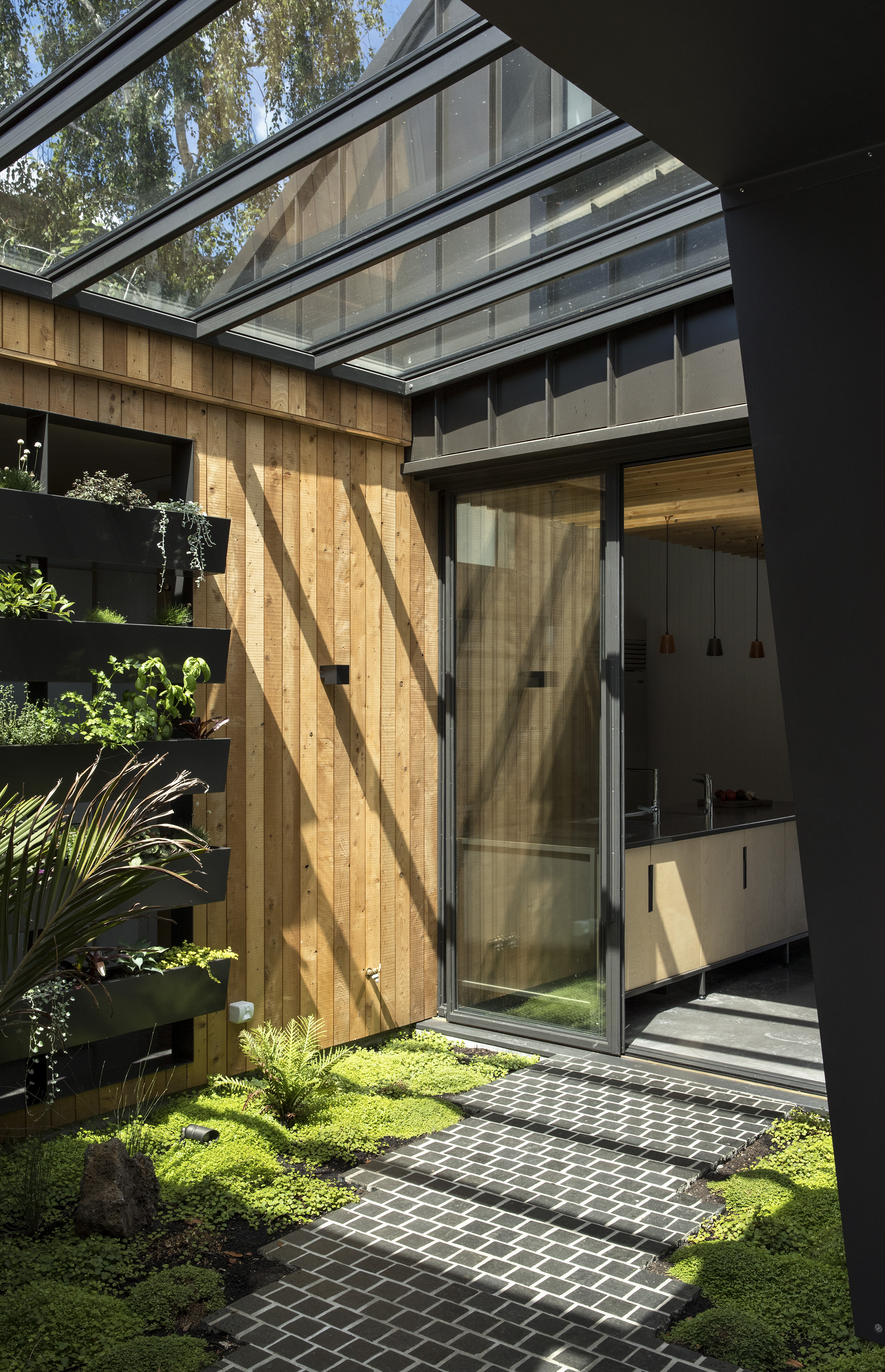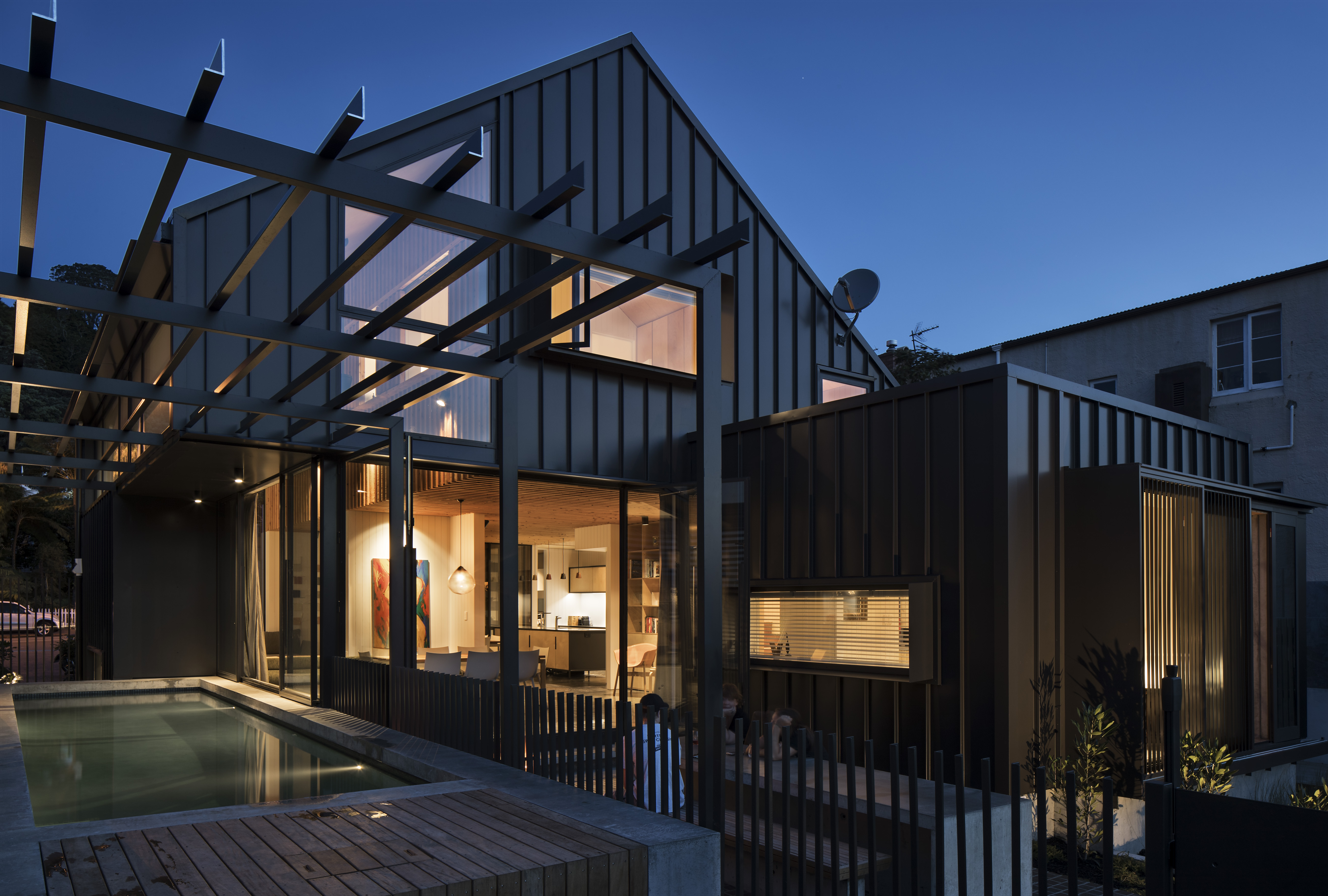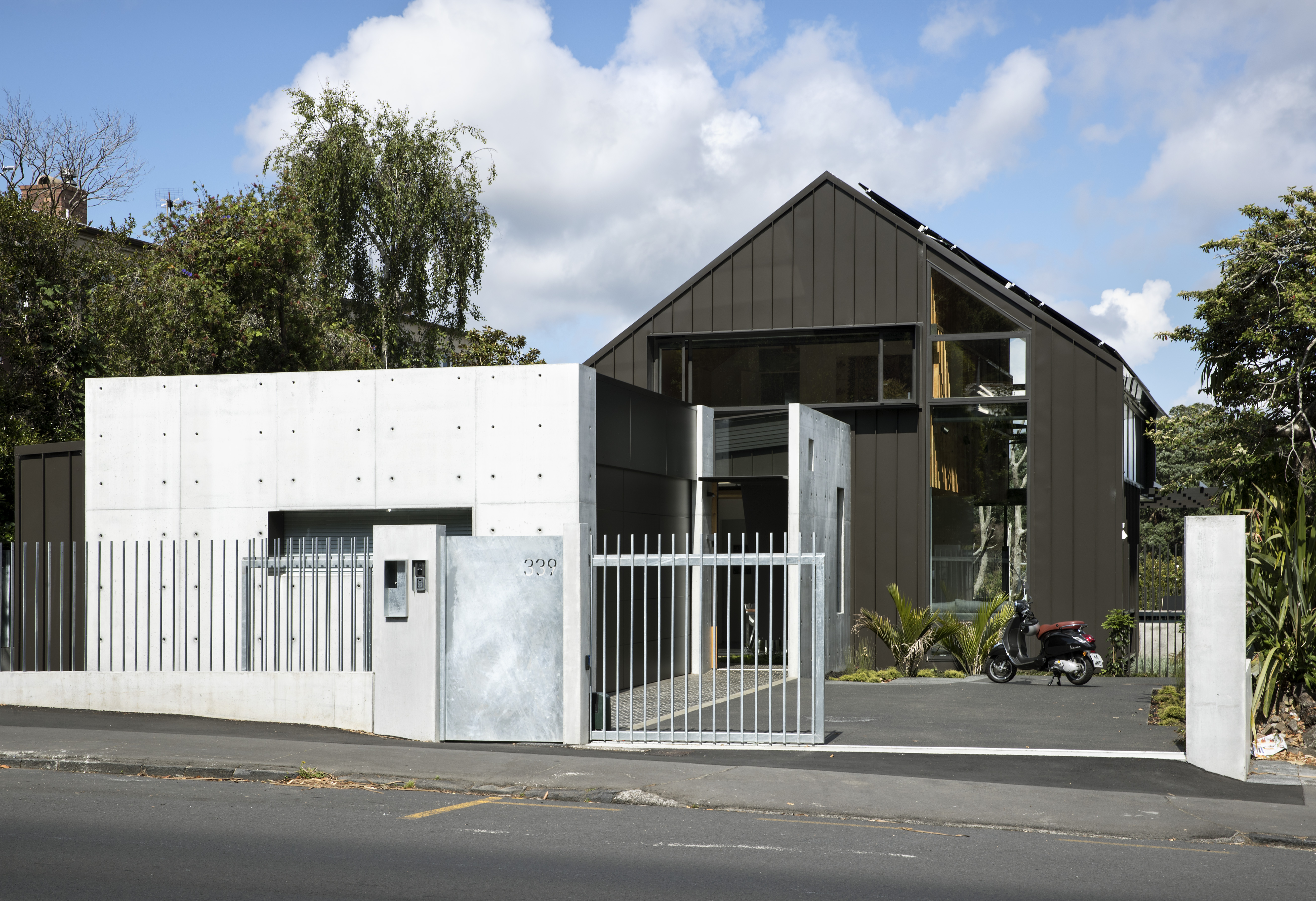 Spatial complexity is handled with ease and classic planning devices, such as indoor / outdoor flow and open plan living areas, are disrupted in this house which blurs the definition between indoors and out. Generous to the passing public, yet providing private space for an extended family, this oasis in one of Auckland’s busiest streets offers a textured layering of space as it transitions between street and garden.