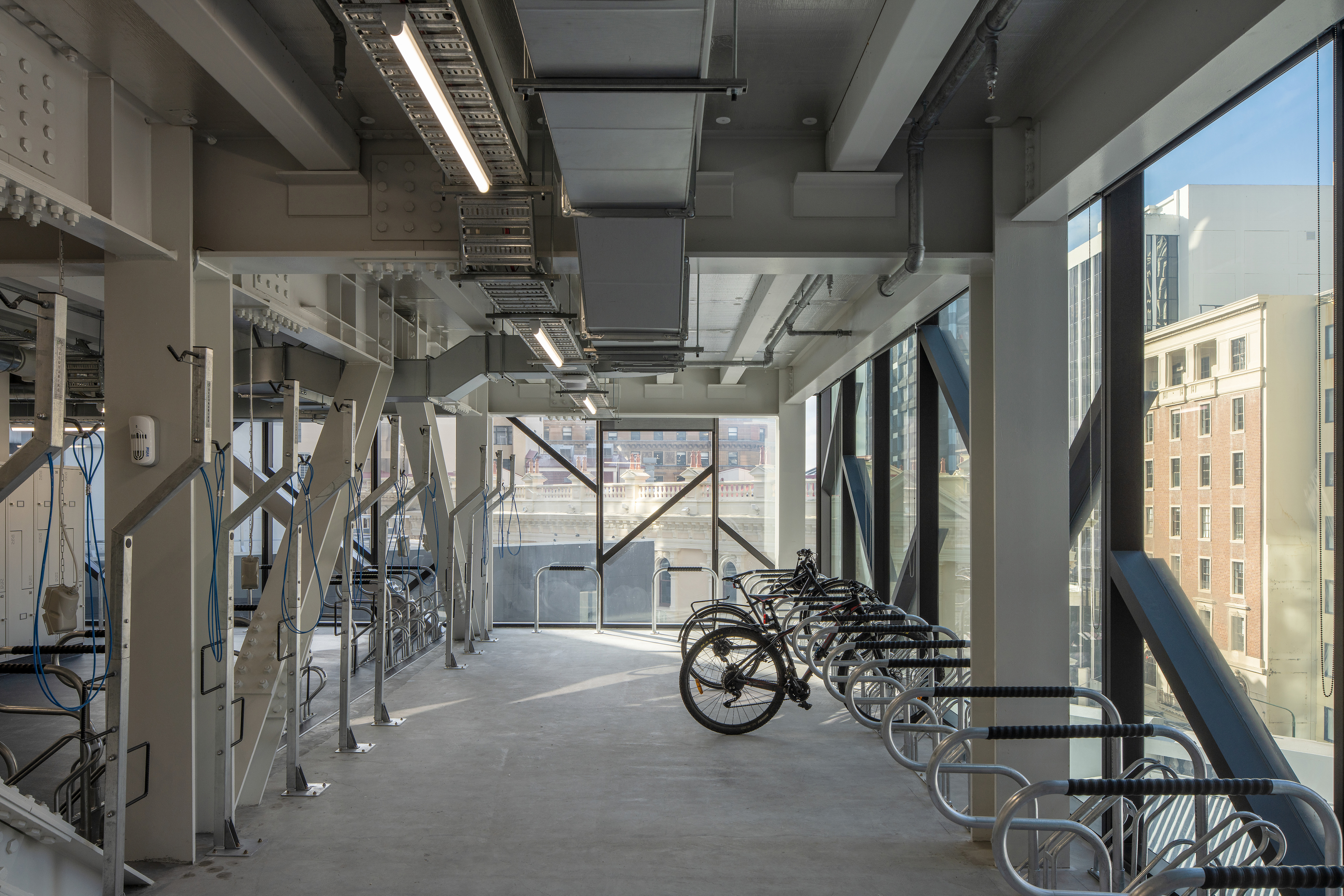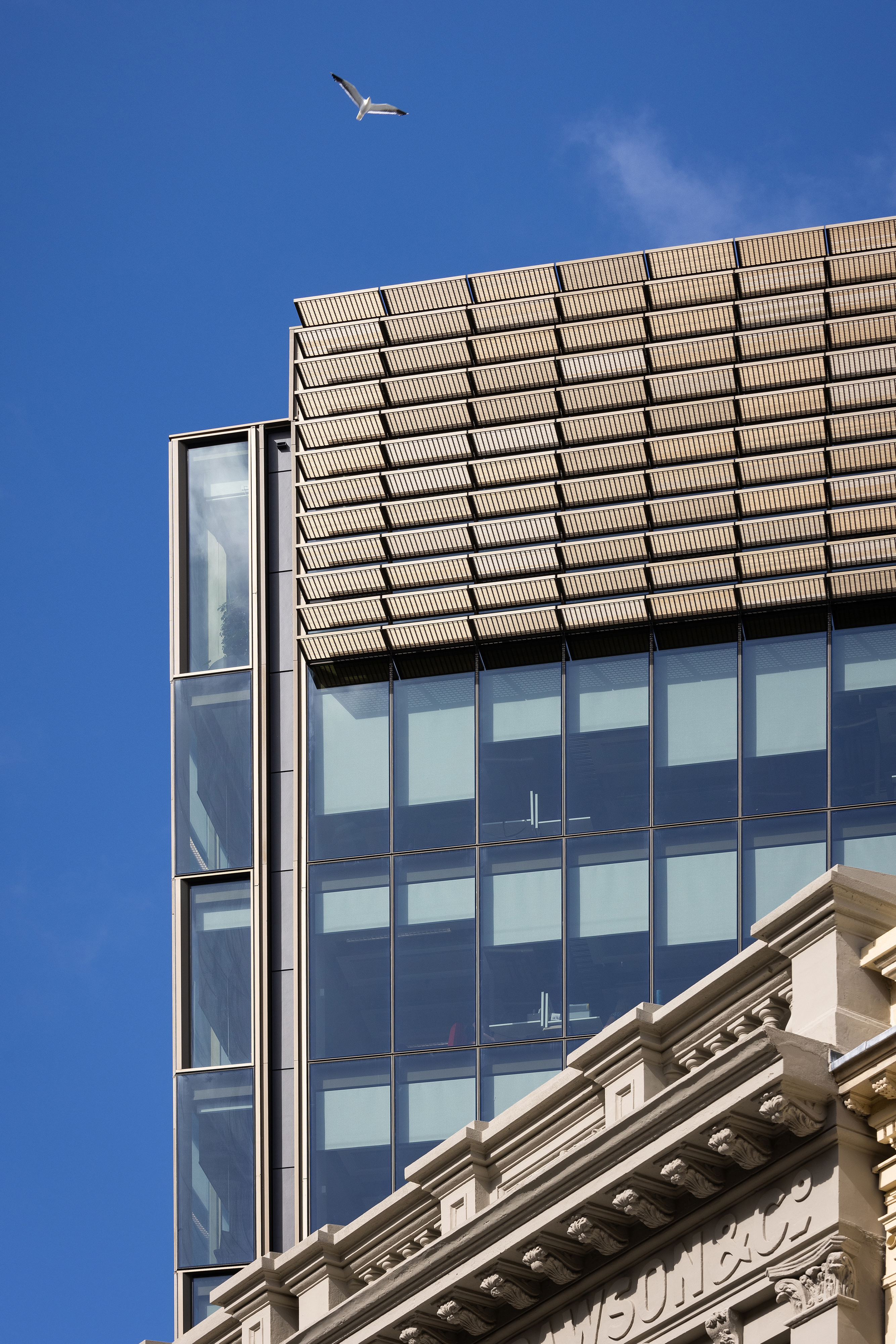 Architecture + has seamlessly woven a new, textured high-rise into Wellington’s urban fabric. Decorative shading screens above street level respect and pay homage to the adjacent heritage façades. Offsetting the tower with variations to the façade treatment individualises each building element, adding richness to the cityscape. The site created a number of three-dimensional challenges, which have been expertly and elegantly resolved. The targeted 6-star Greenstar, 5-star NabersNZ and super-structure reuse is exceptional and shows what can be achieved by a committed building owner and talented project team.