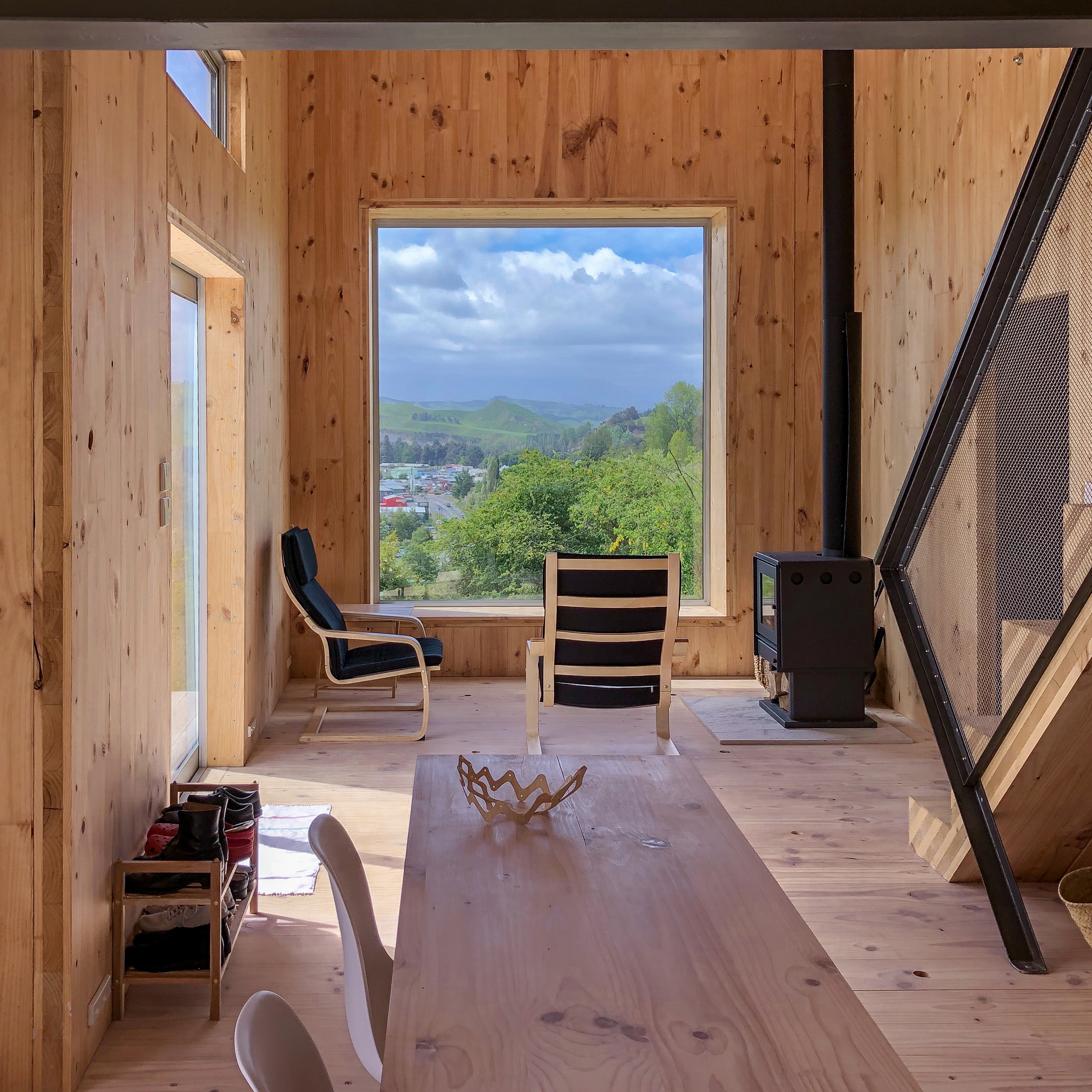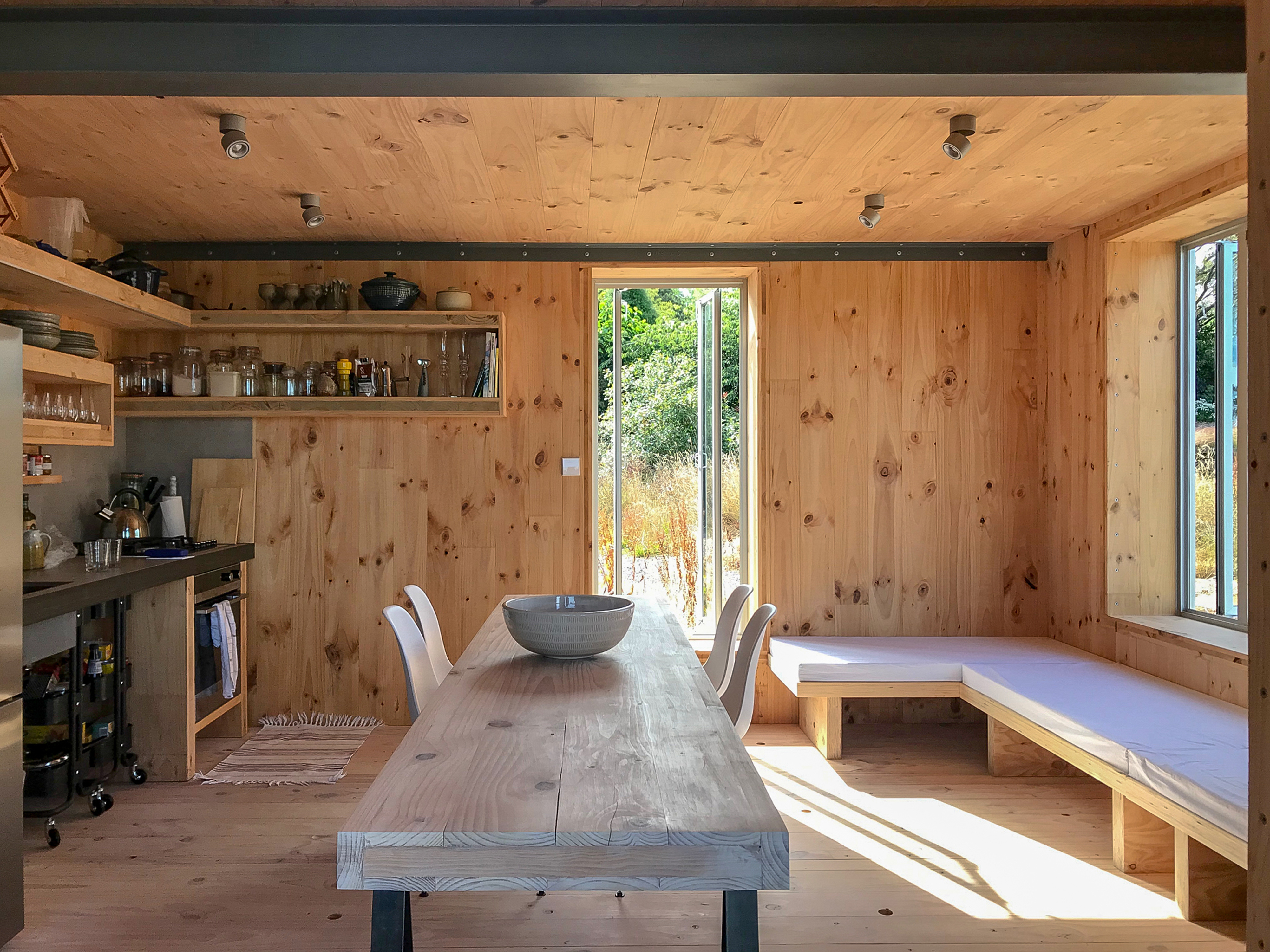 This delightful, cleverly designed compact studio is positioned on an elevated site to take advantage of views and light. The building footprint is small, but the sense of volume created through double-height space is impressive. The architect’s use of Cross Laminated Timber (CLT) technology led to rapid on-site assembly with construction waste minimised – in fact, CLT off-cuts have been repurposed as furniture, doors and integrated joinery. This project illustrates how thoughtful design can limit a carbon footprint and optimise energy performance. It is an exceptional cabin.