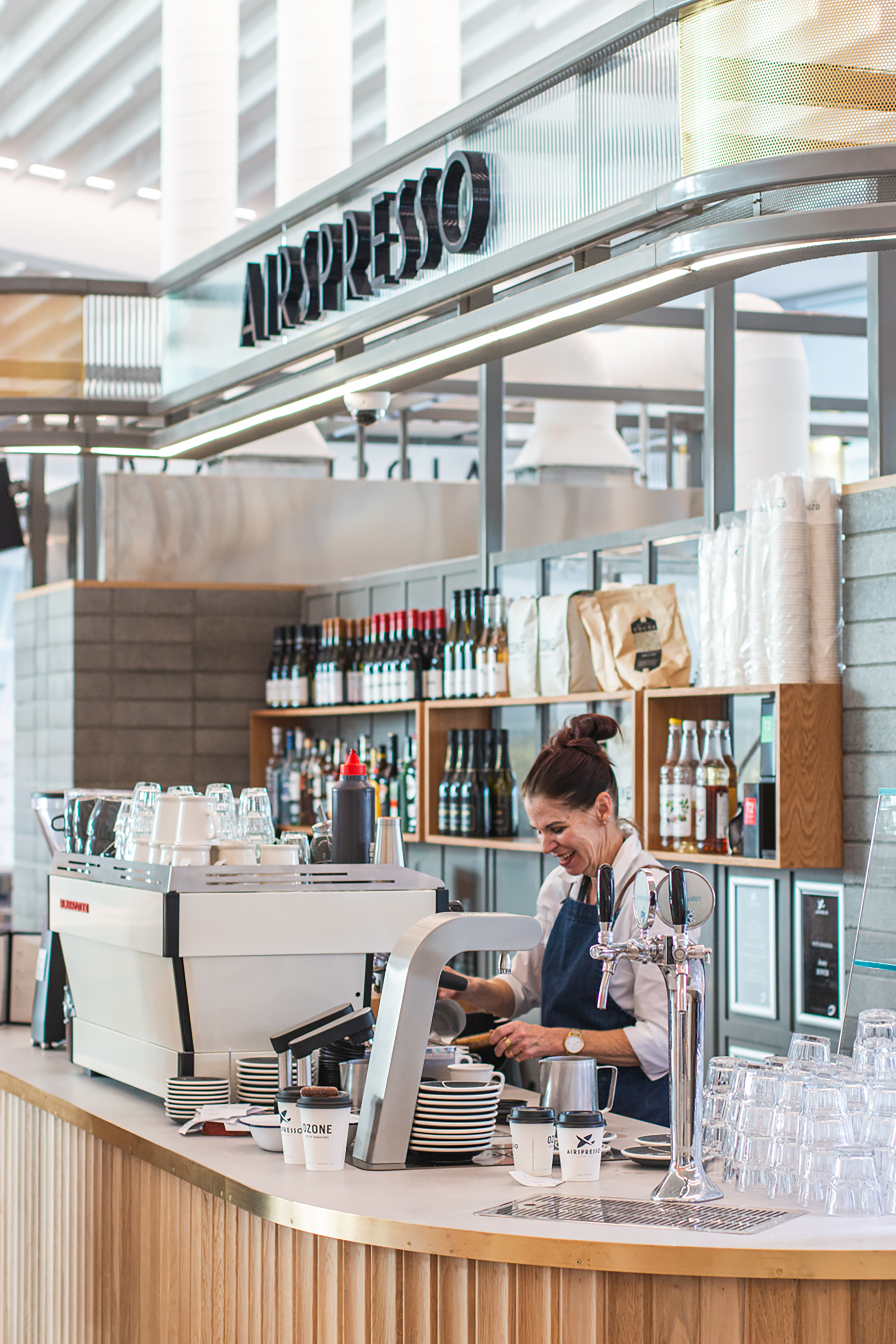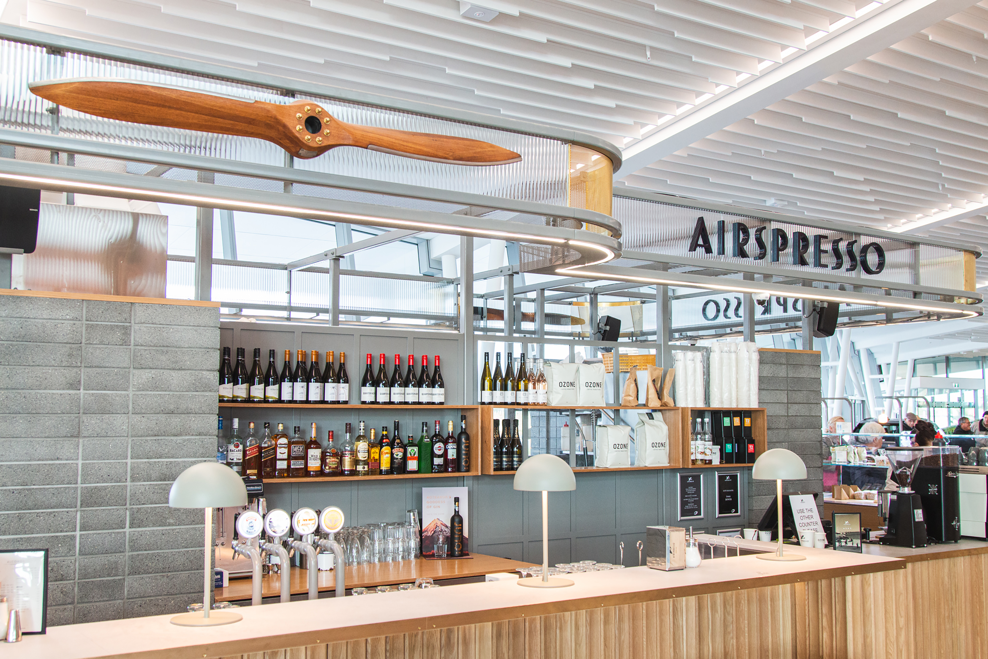 The stepping-off and landing point for coffee at the New Plymouth airport, Airspresso cafe sits comfortably amid the airport building’s muscular columns and beneath its cloud-like ceiling. This cafe confidently expresses itself, creating a moment of rest amid the tension of travel. Customer seating pinwheels from a central and efficient island workspace, and the cafe’s combination of displays and local historical information makes this a thoughtful and engaging space to inhabit, even if only in transit.