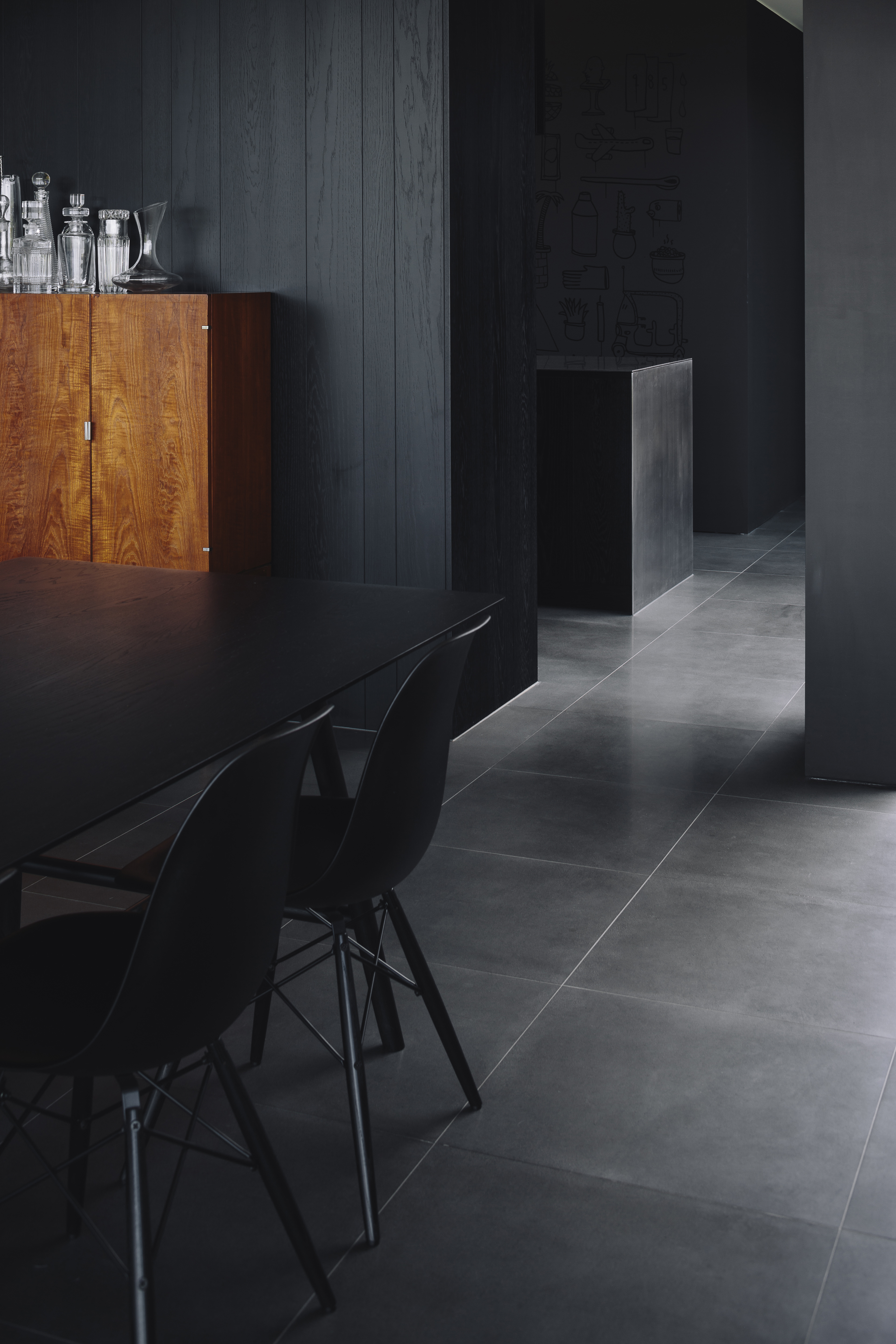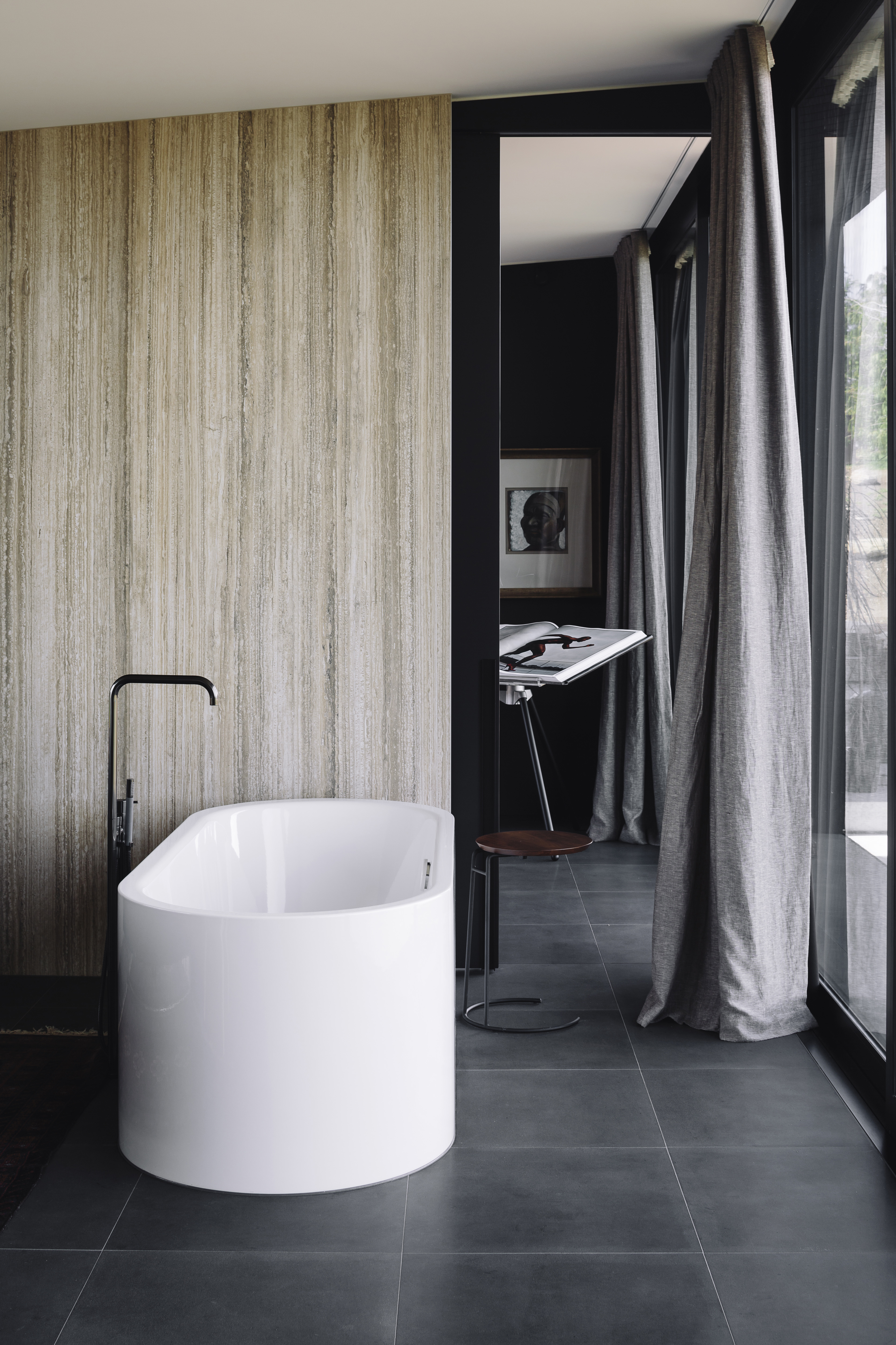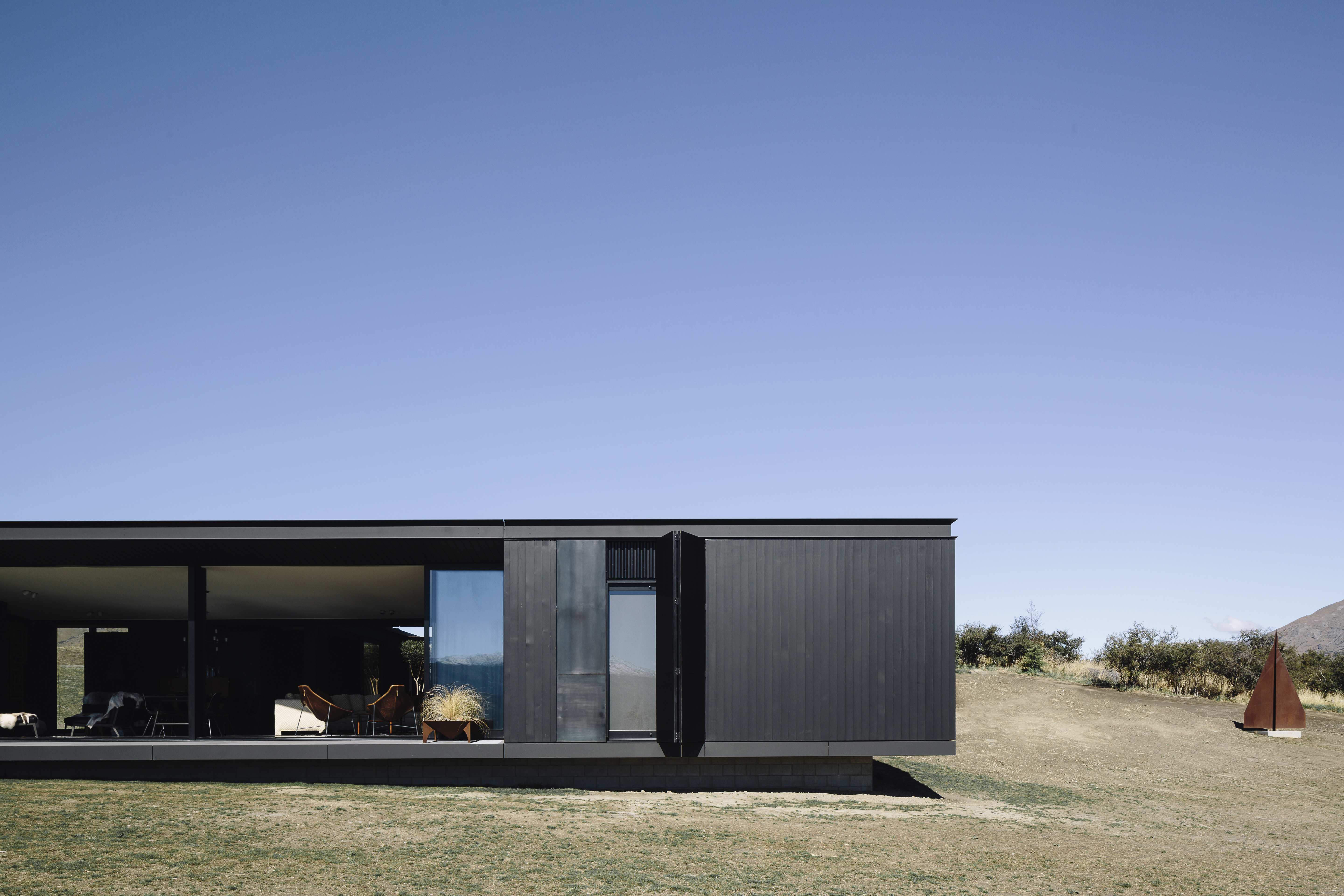Dark, brooding, muscular – this house sits like a silhouette in the foothills of the mountain. Visit it on a misty autumn morning and you’ll feel near top of the world. It is a shelter, carefully designed to bear witness to the panoramic landscape, with a courtyard refuge set deep in the plan. Altogether, this house is a locus point for art and interior design of the highest quality.