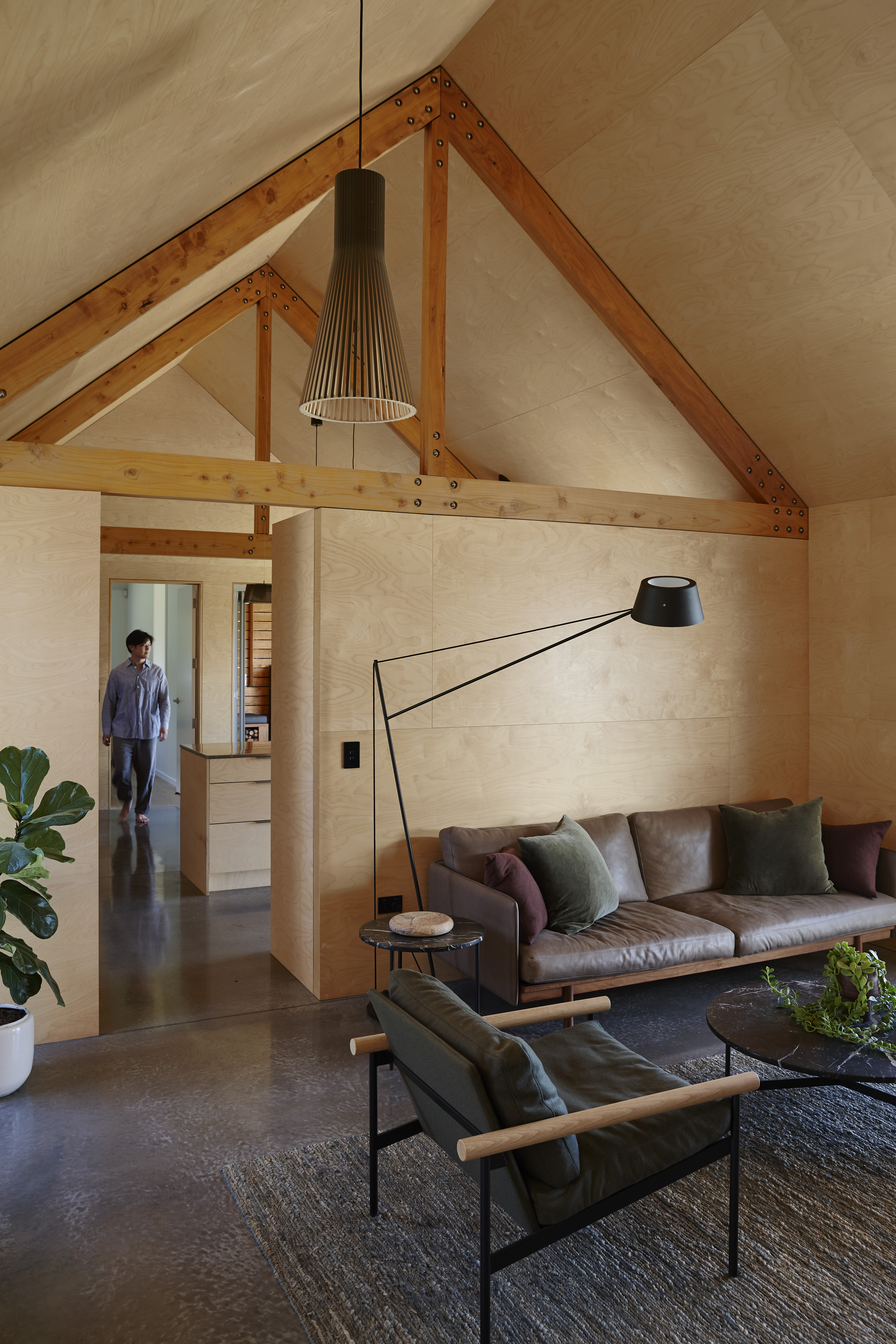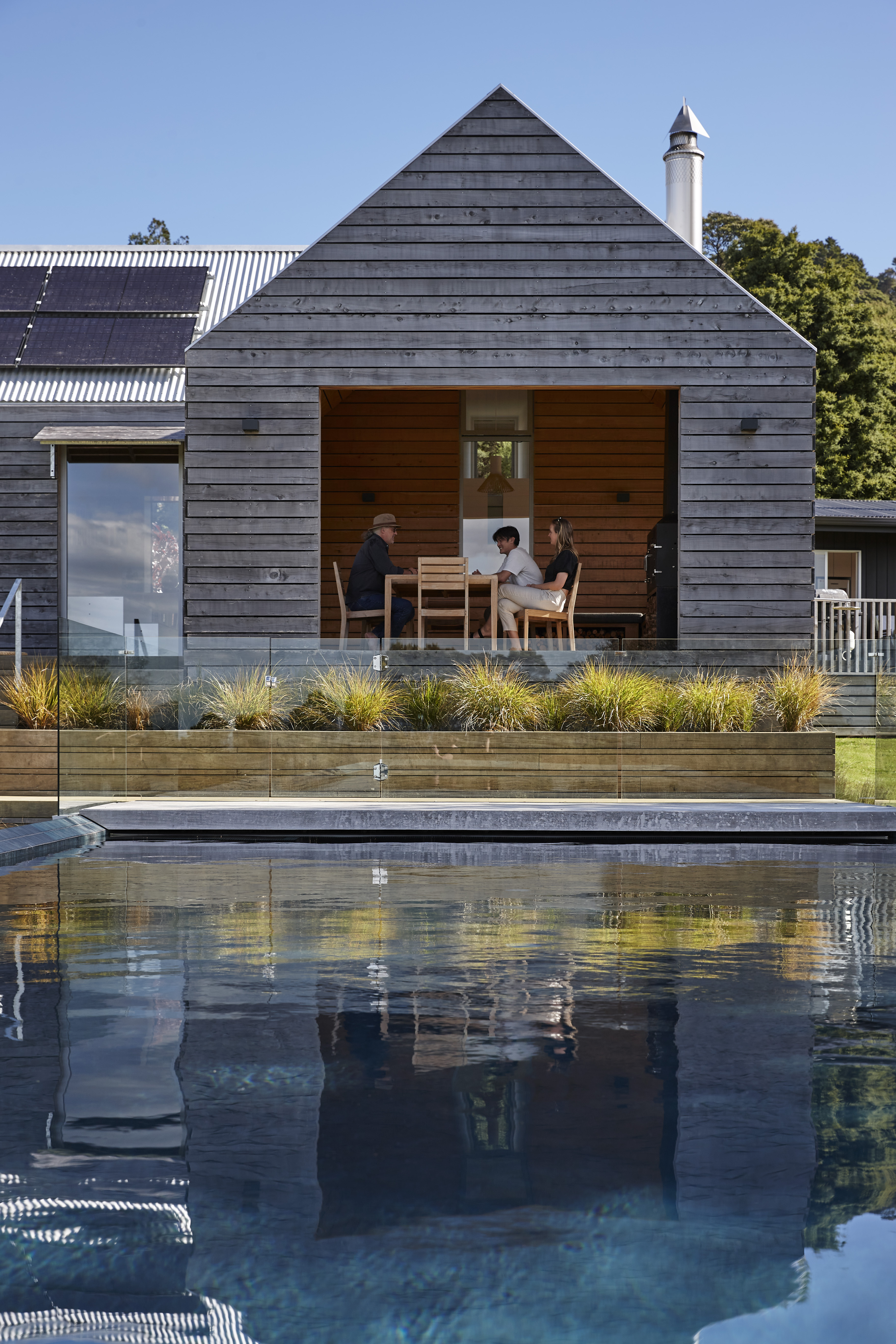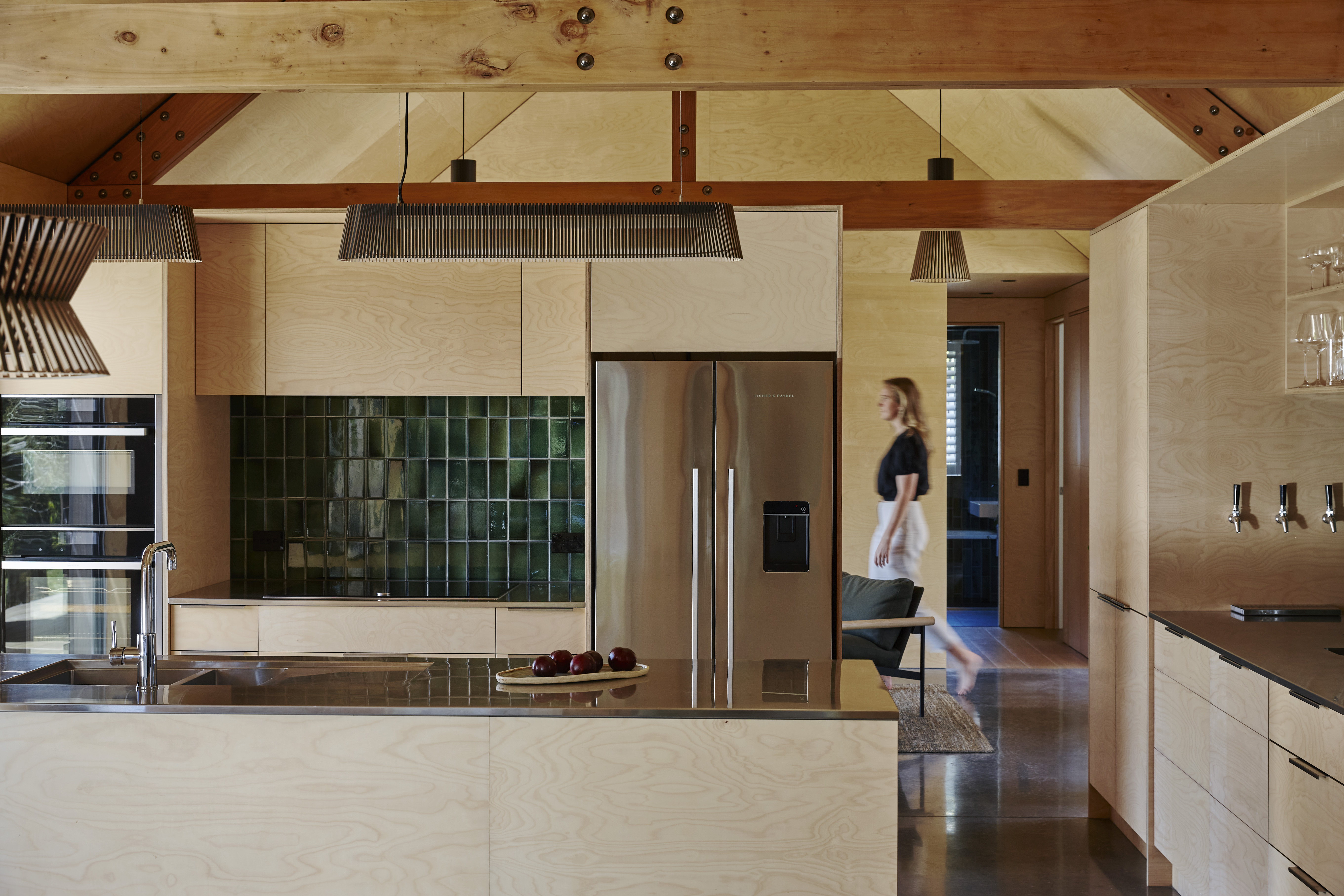 This modest home is inspired by local horticultural history. Adopting the aesthetic of the apple crate, a rural form is beautifully crafted to create a home that belongs to its landscape. The design solution contains a clever sequence of internal volumes that draws light deep into the interior – and in combination with a simple palette of materials and textures, generates a warm and relaxed environment. Reduced, minimal and without pretence, this project illustrates so clearly how simplicity in design is the most sustainable strategy architects can employ.