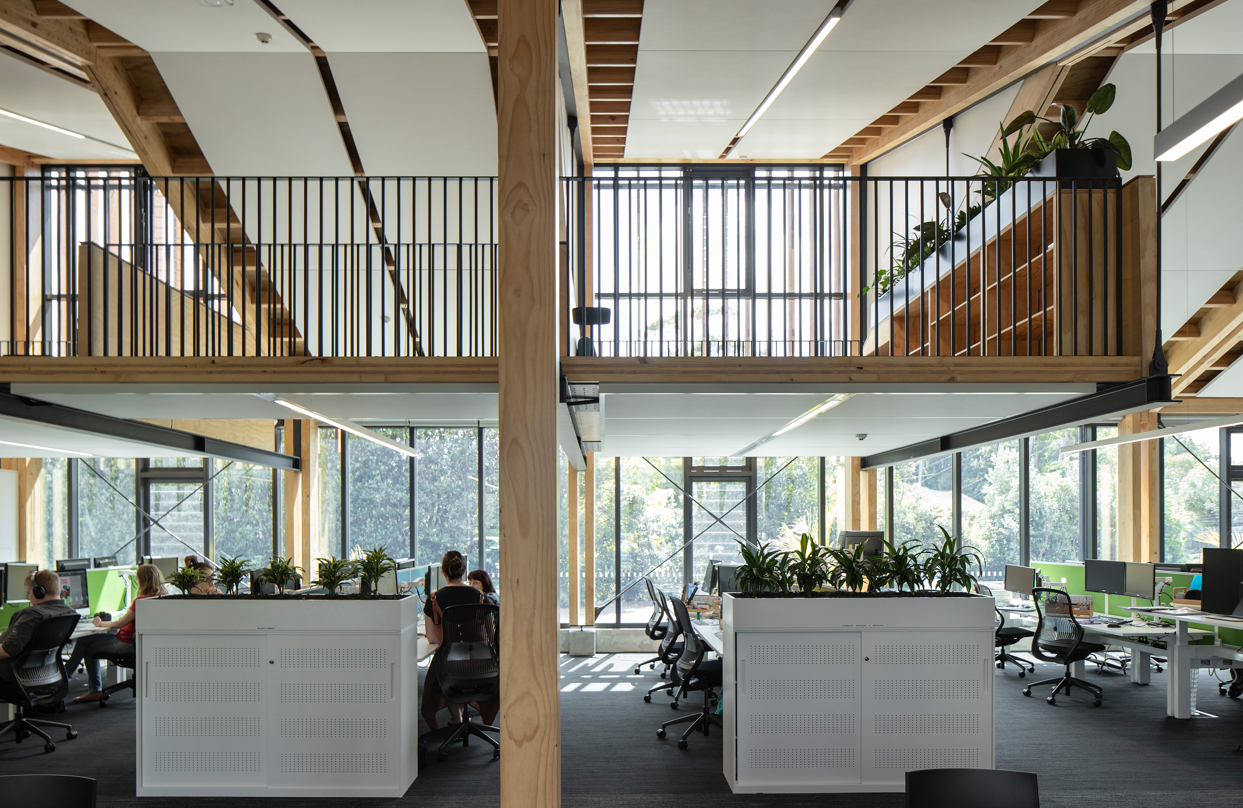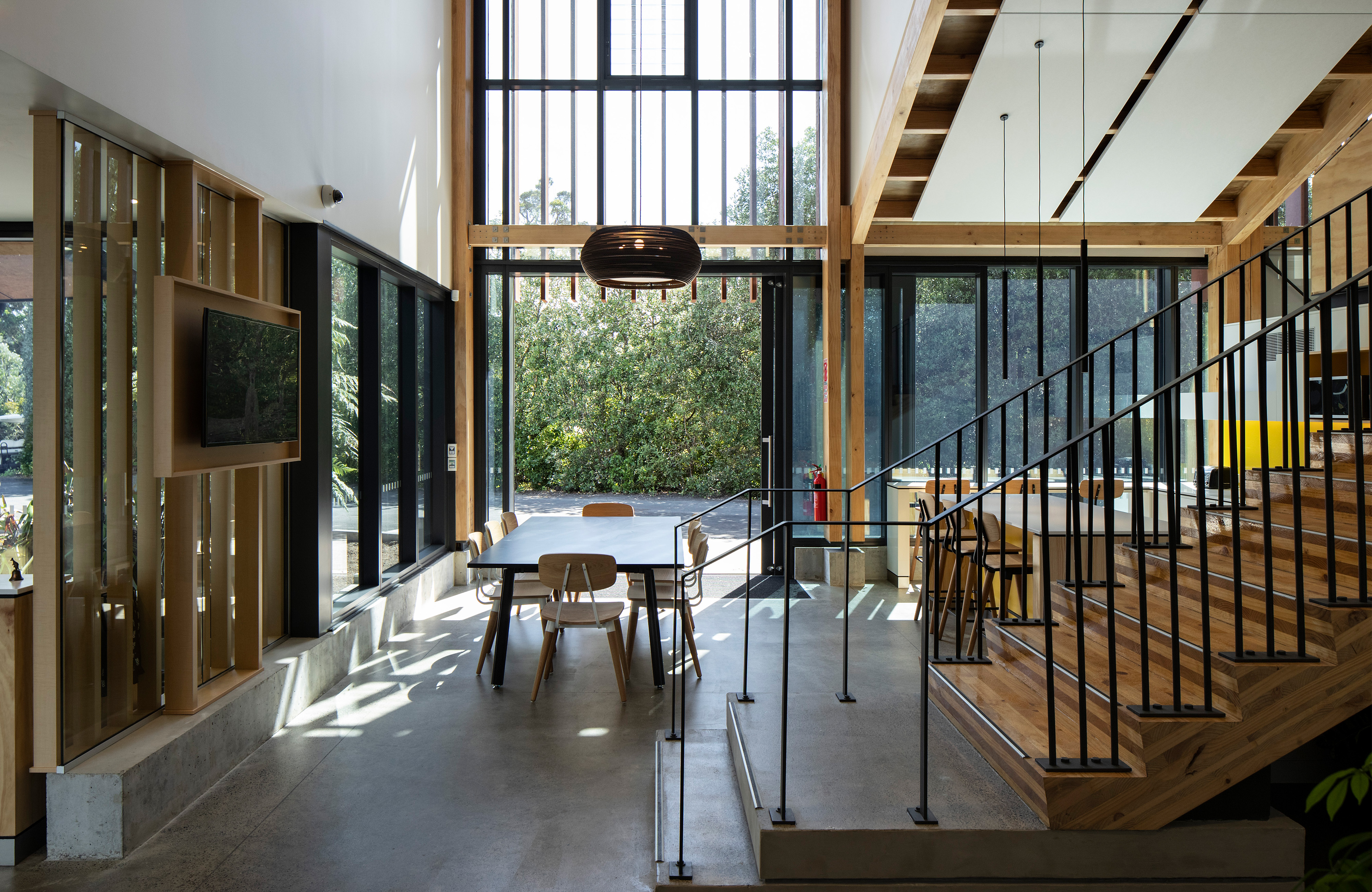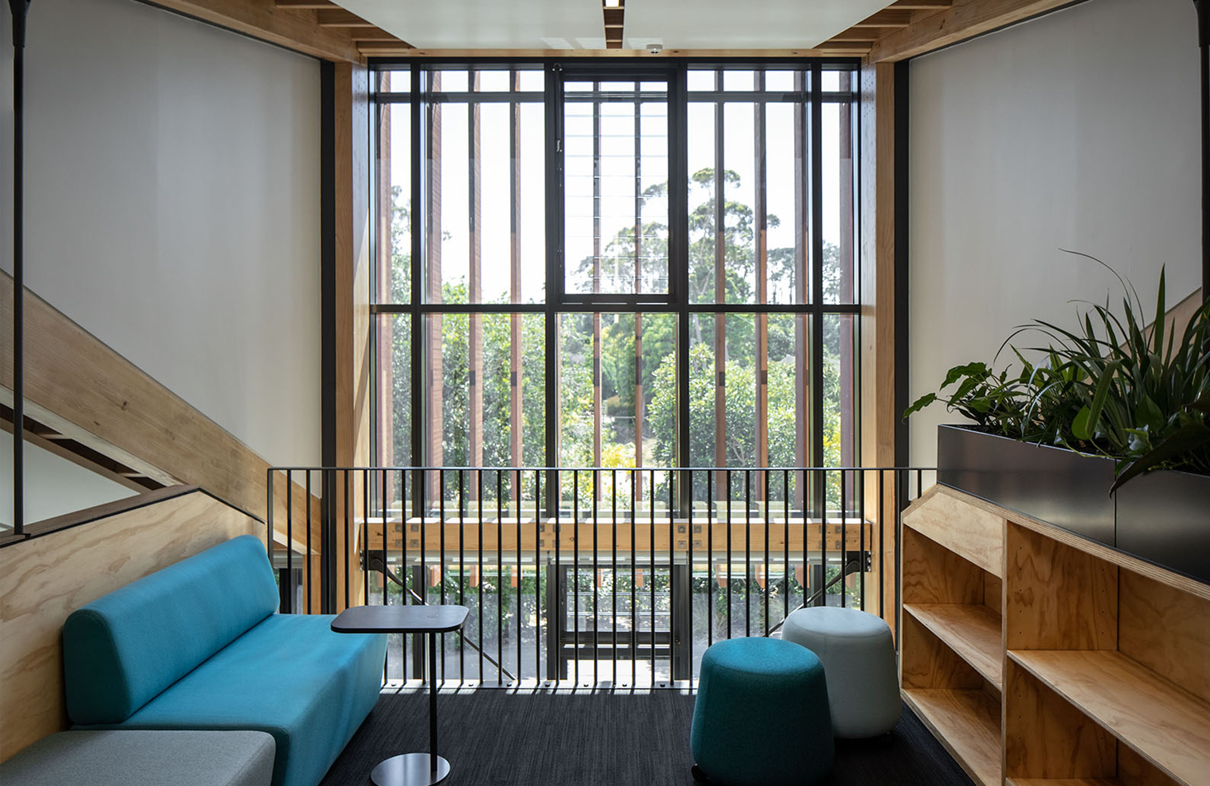 The Auckland Zoo’s former admin block isn’t old, but it’s become both too small for the staff numbers and, with its rows of separate cubbyhole offices, unfit for purpose. Ignite has created a light, bright new home for the zoo staff that handles the demands of hot-desking and lockers with a superb use of colour and clarity in the built forms. The lightness of the space is achieved with extensive glazing, sharply pitched gables down the long east side and a large airy mezzanine suspended from the ceiling by steel rods. Vertical banisters align with vertical shade strips on the gables to complete the sensation. This is handsome, modest, satisfying commercial architecture, achieved so well on a tight budget it feels like less a constraint than a release.