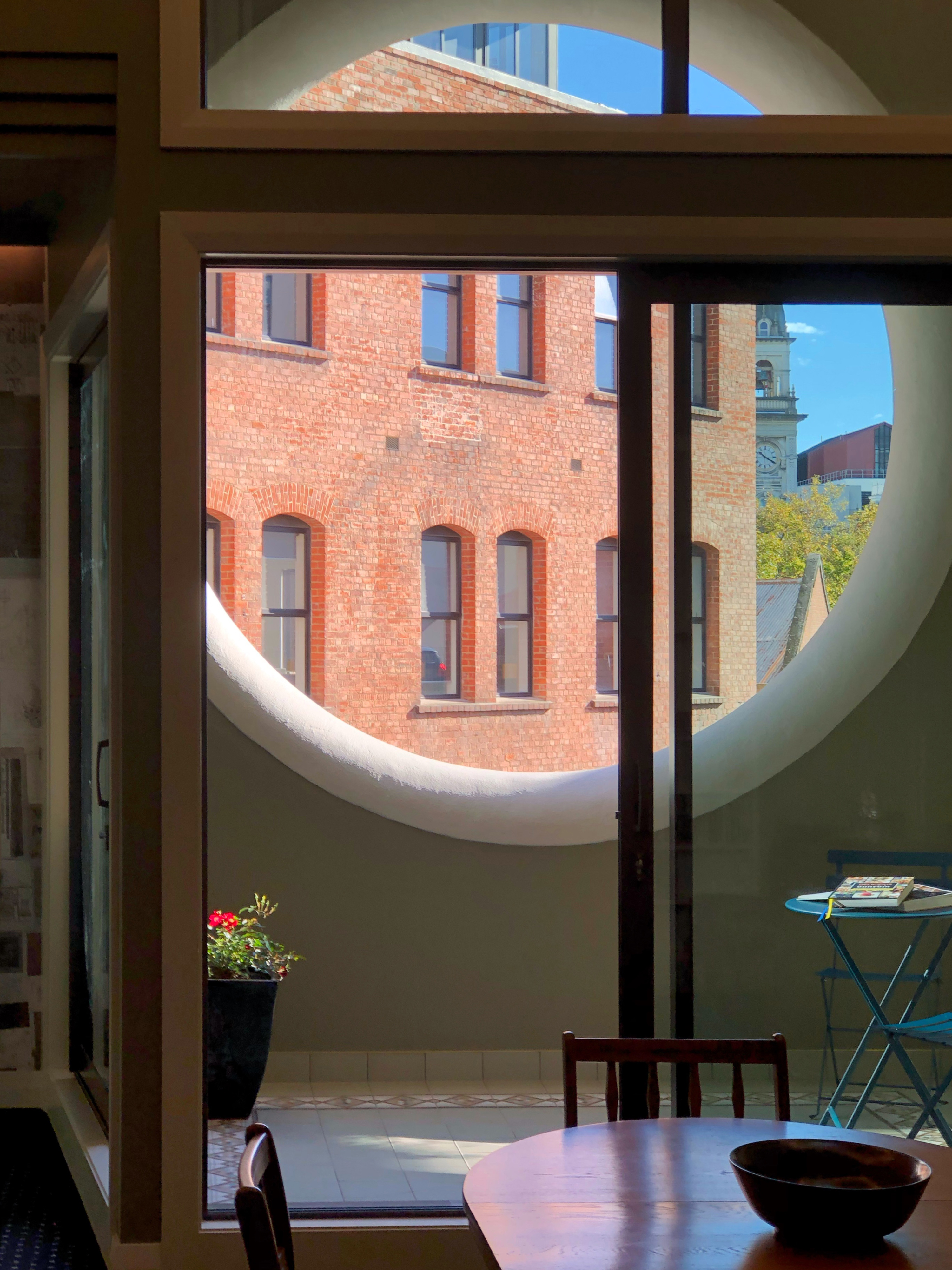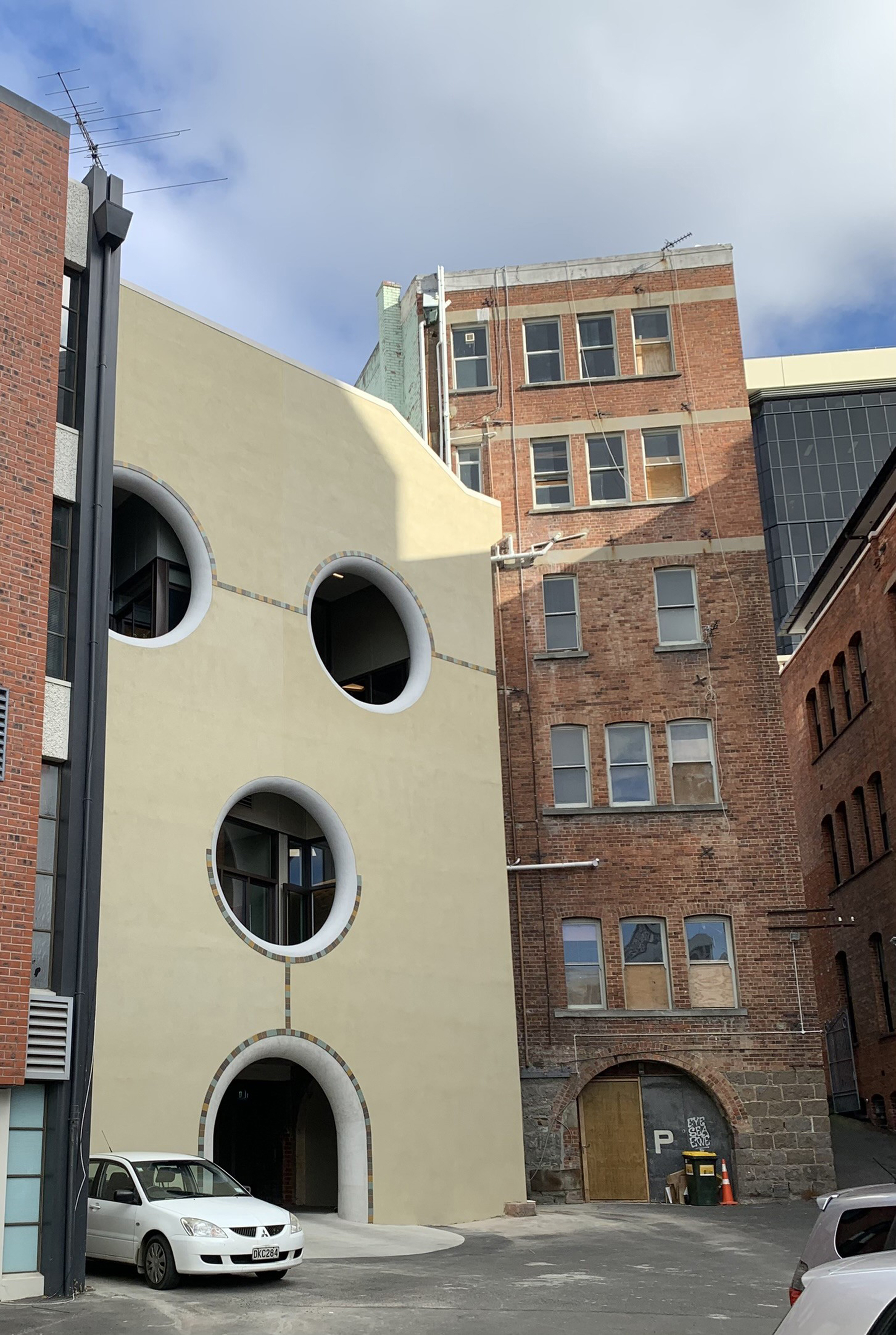 This playful design response respects the established character of inner-city Dunedin and meets commercial demands. Three short-stay apartments are named after people formerly associated with the site and the building: Gaynor Clayton, Henry Matthews and John Campbell, and the interiors are designed to follow a narrative created about them. Large circular openings at the rear façade of an apartment provide afternoon sun and a sheltered balcony with rooftop views towards the Octagon and hills beyond. The architect raised part of the floor level in the living areas of the street-front apartments to allow views for a person seated inside. An inspiration to its heritage neighbours.