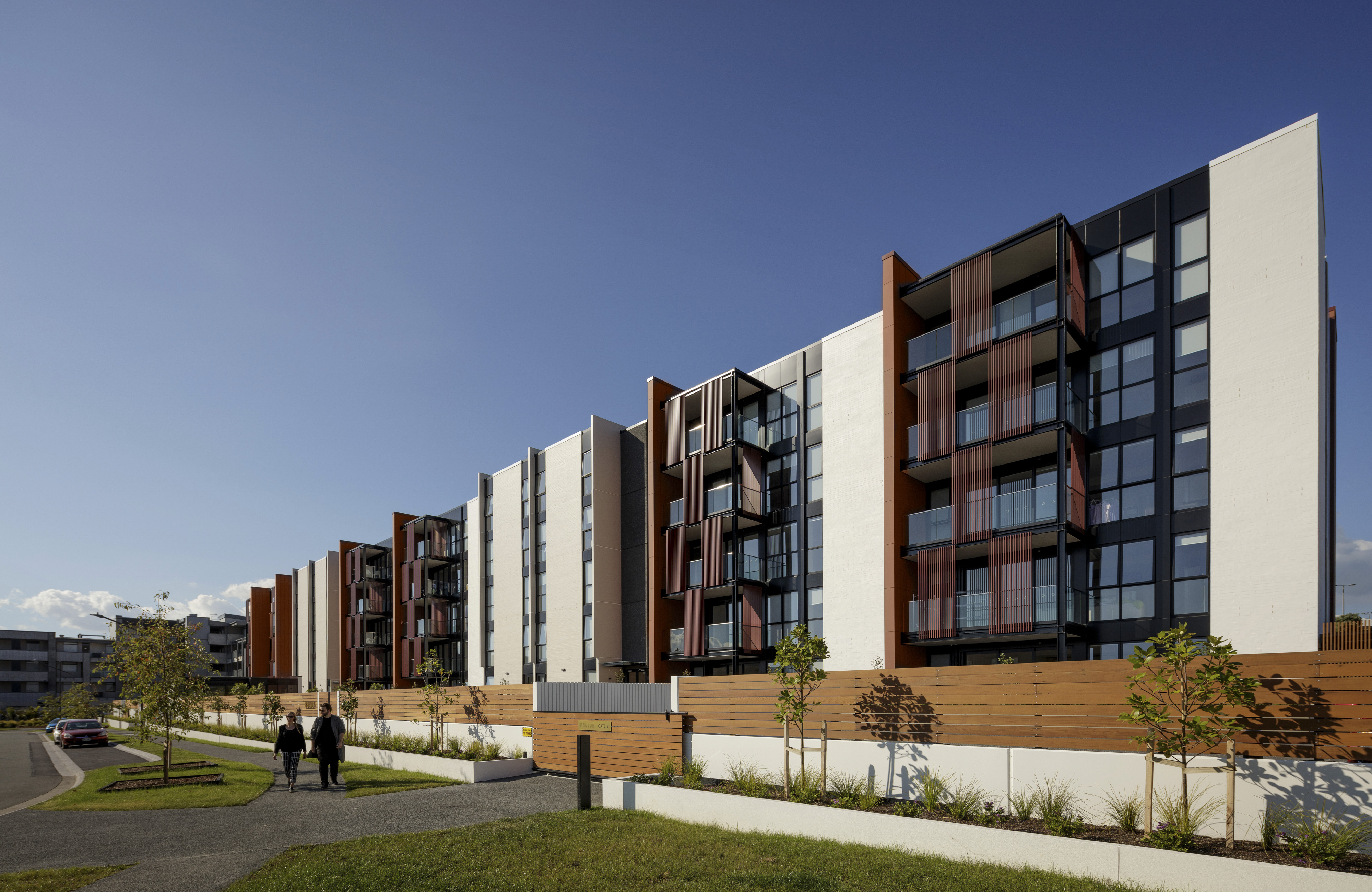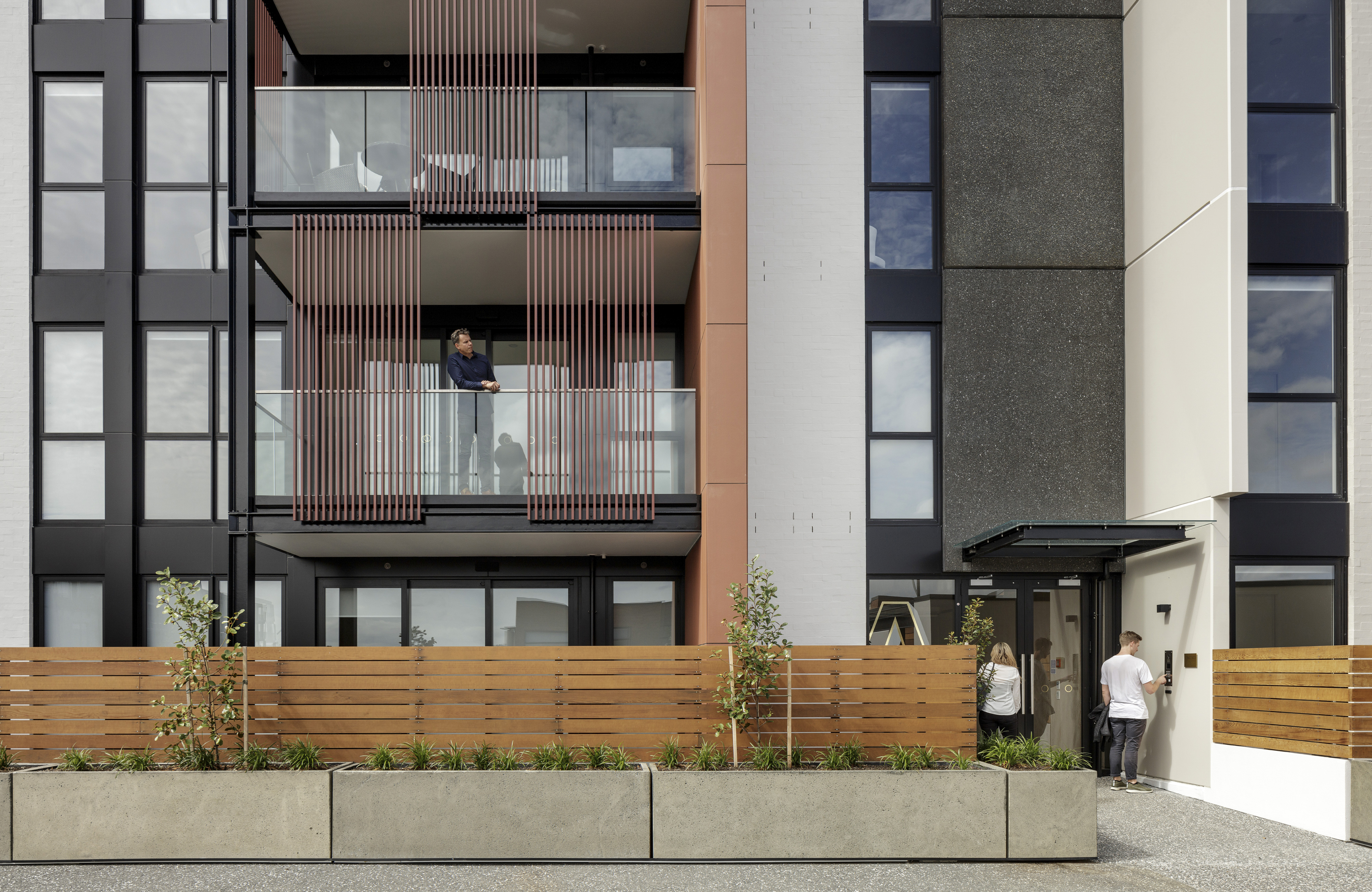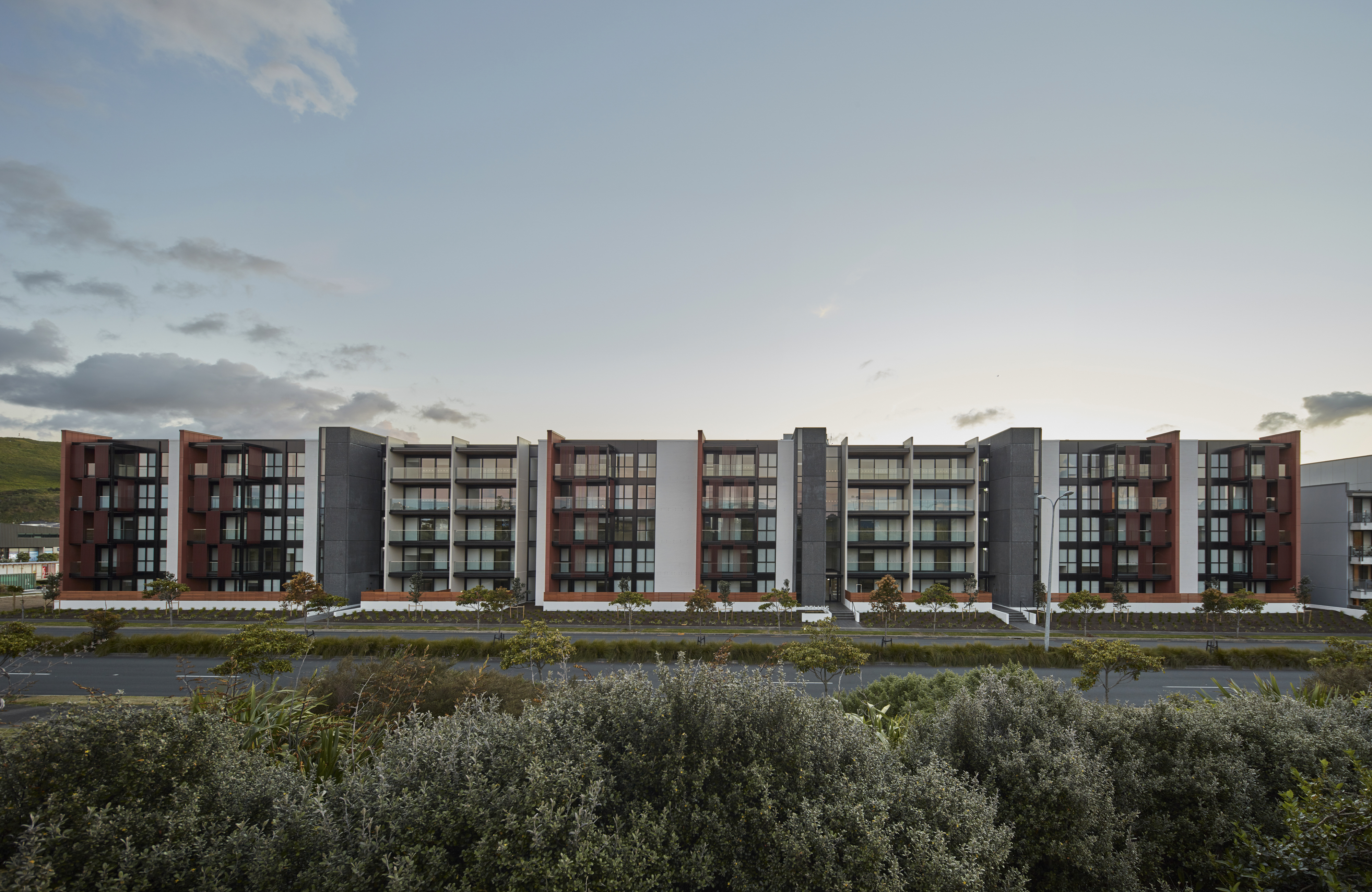 Can you get it right when the budget is chopped and chopped again? Yes you can. Can you really make decent liveable homes when the outlook’s a bit bleak and the transport infrastructure has badly let the suburb down? Yes you can. Warren and Mahoney’s Bellus Apartments in Mt Wellington showcase visual variety in their external form, with appealing juxtaposition of materials, colour and form and some lovely touches, like the Mt Wellington contour represented on the lobby walls. Internally, the apartments have kitchen islands oriented to the view, generous balconies and extensive glazing, all of which conjure a welcome sense of expansiveness. Vertical batten screens on many of the apartments break up the views, helping with the sense of security on the balconies and adding a dramatic note to the near-and-far relationship in the views. These medium-cost homes are respectful of the people who live in them.