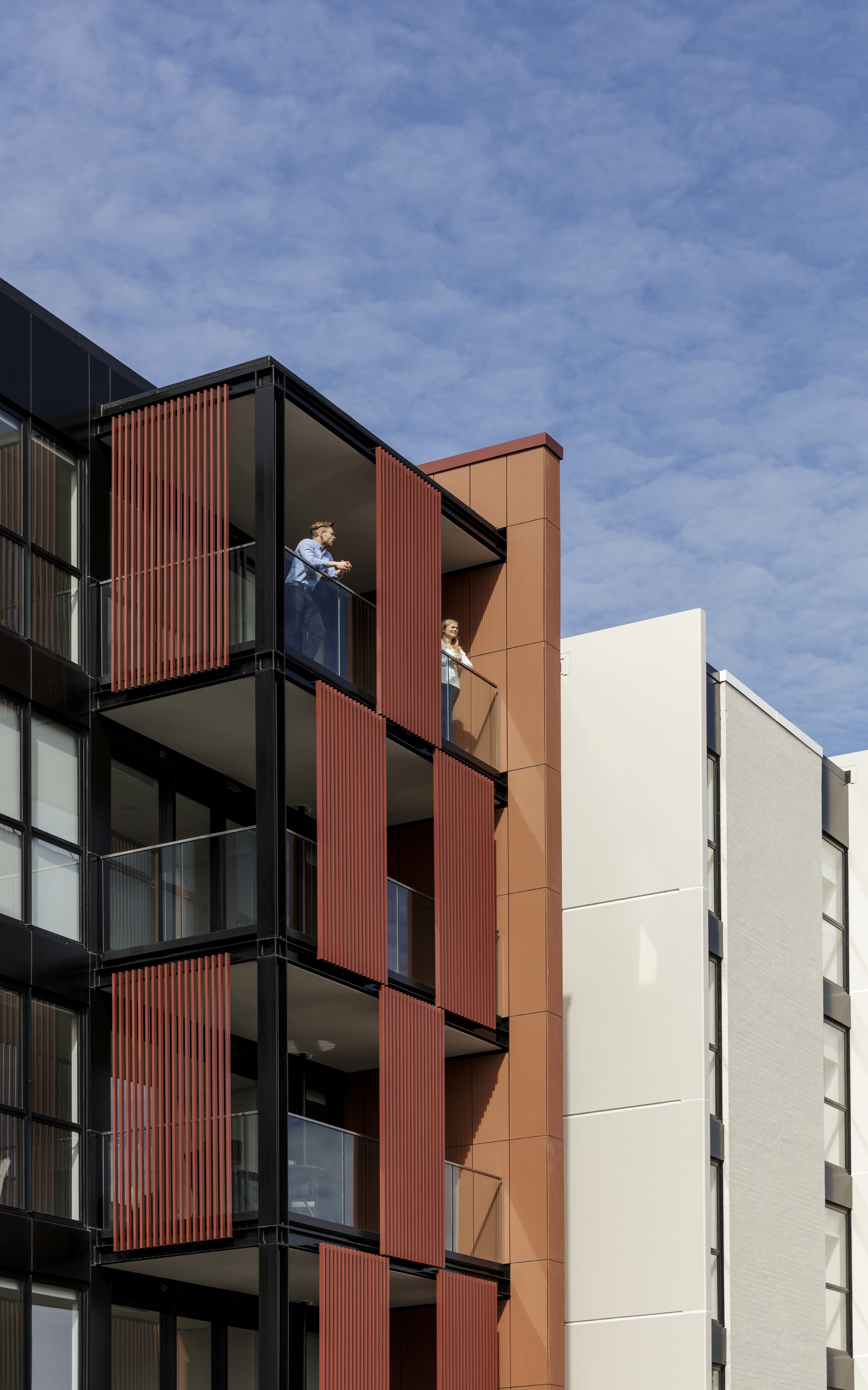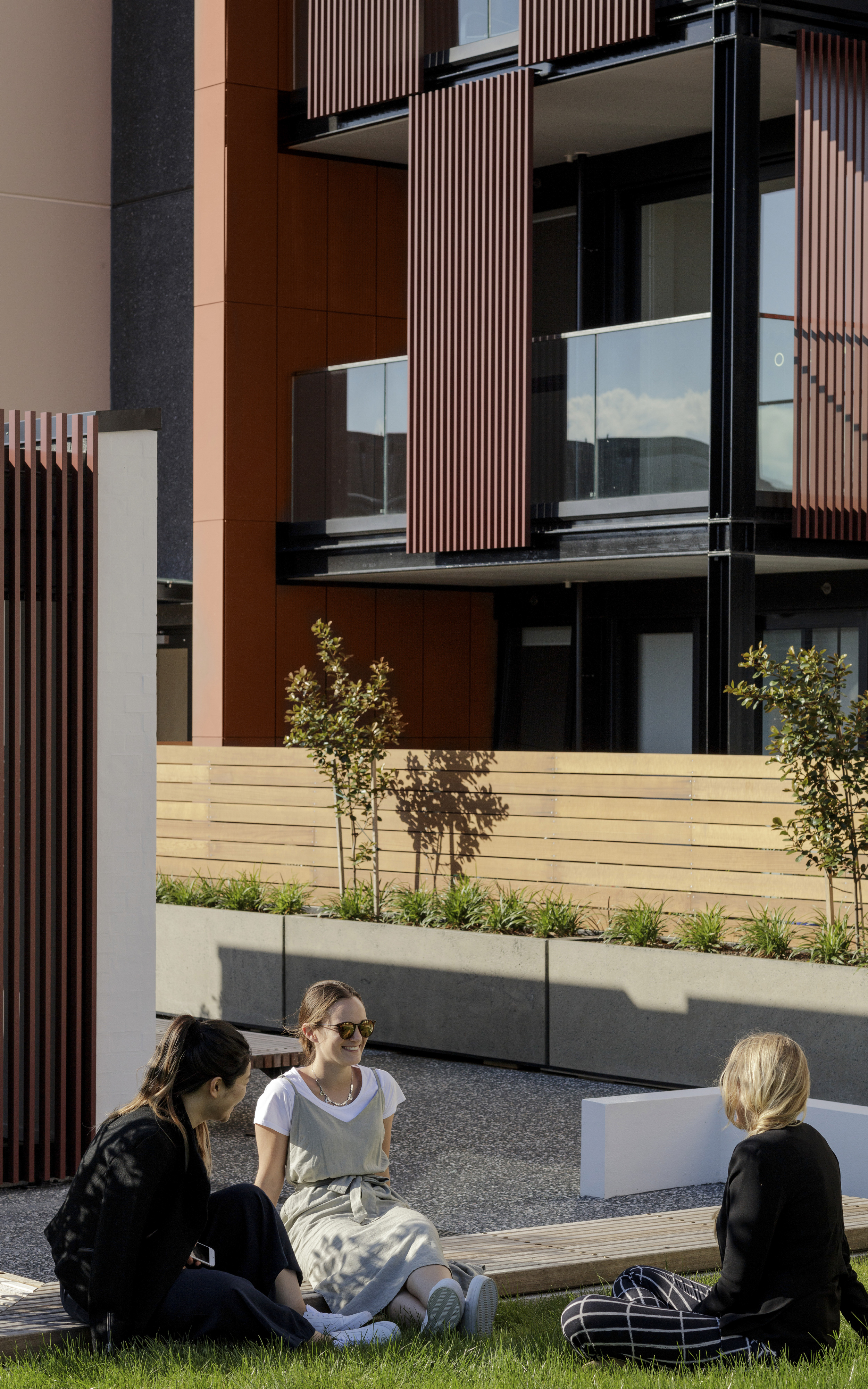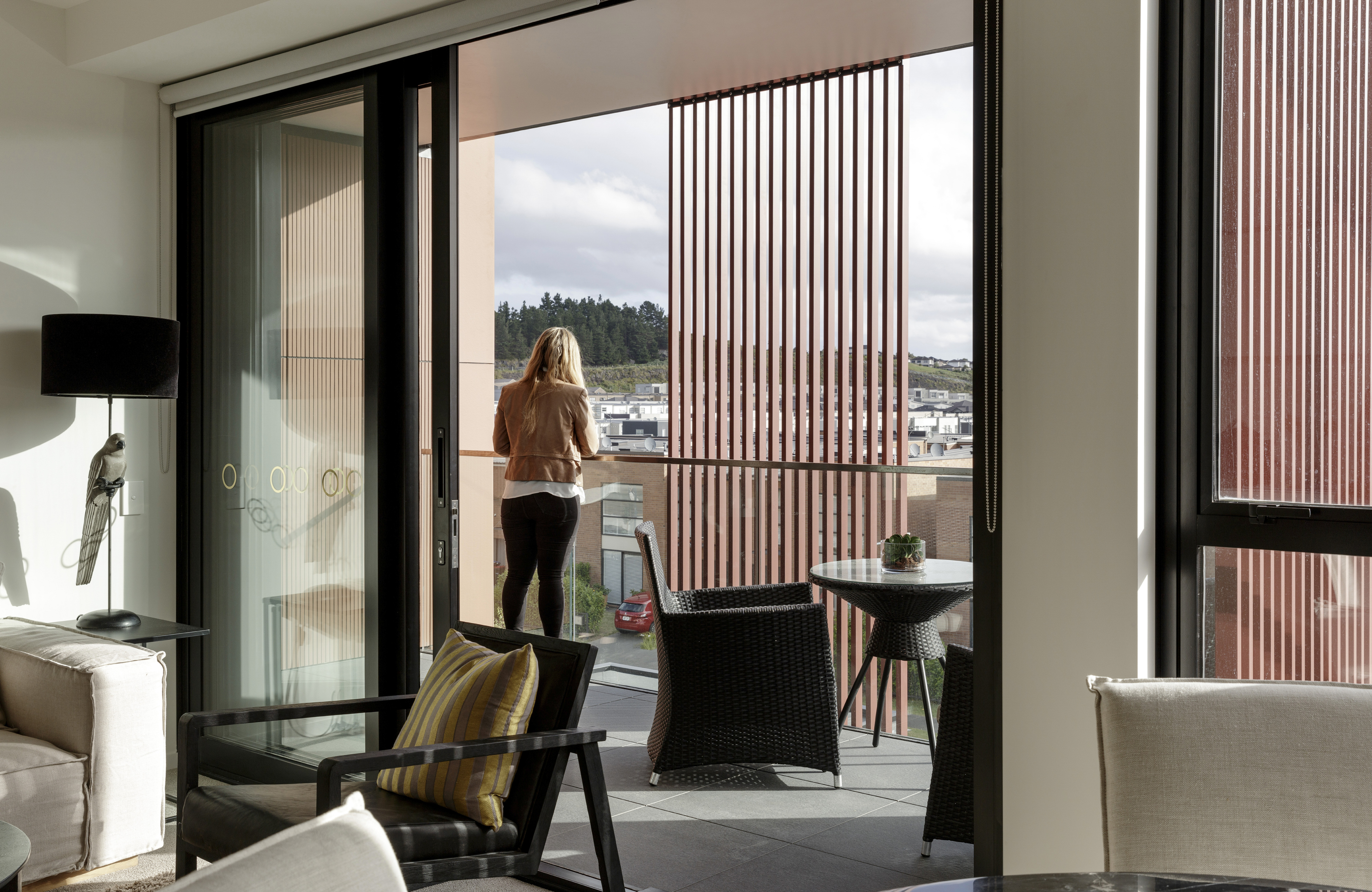 Can you get it right when the budget is chopped and chopped again? Yes you can. Can you really make decent liveable homes when the outlook’s a bit bleak and the transport infrastructure has badly let the suburb down? Yes you can. Warren and Mahoney’s Bellus Apartments in Mt Wellington showcase visual variety in their external form, with appealing juxtaposition of materials, colour and form and some lovely touches, like the Mt Wellington contour represented on the lobby walls. Internally, the apartments have kitchen islands oriented to the view, generous balconies and extensive glazing, all of which conjure a welcome sense of expansiveness. Vertical batten screens on many of the apartments break up the views, helping with the sense of security on the balconies and adding a dramatic note to the near-and-far relationship in the views. These medium-cost homes are respectful of the people who live in them.