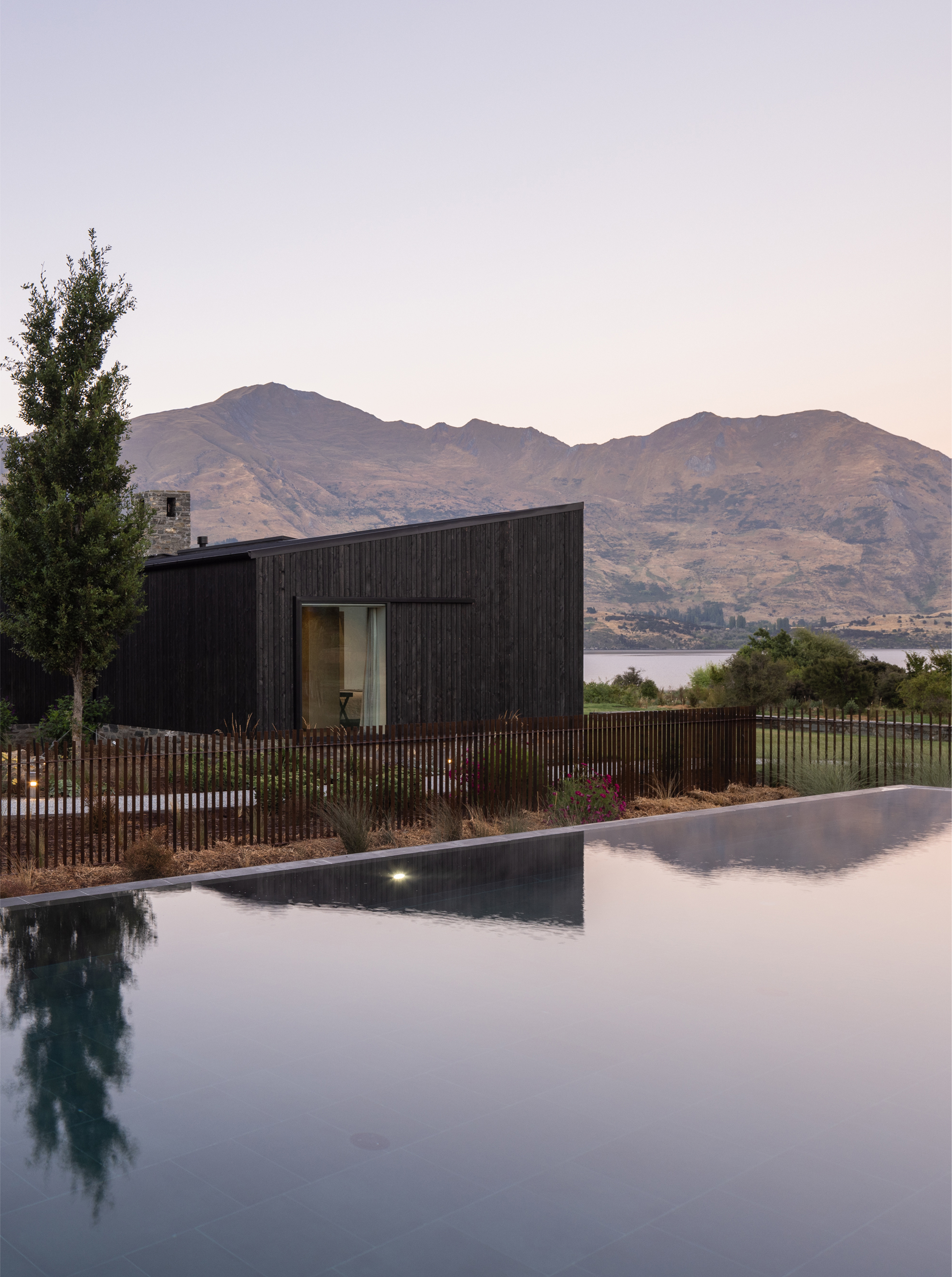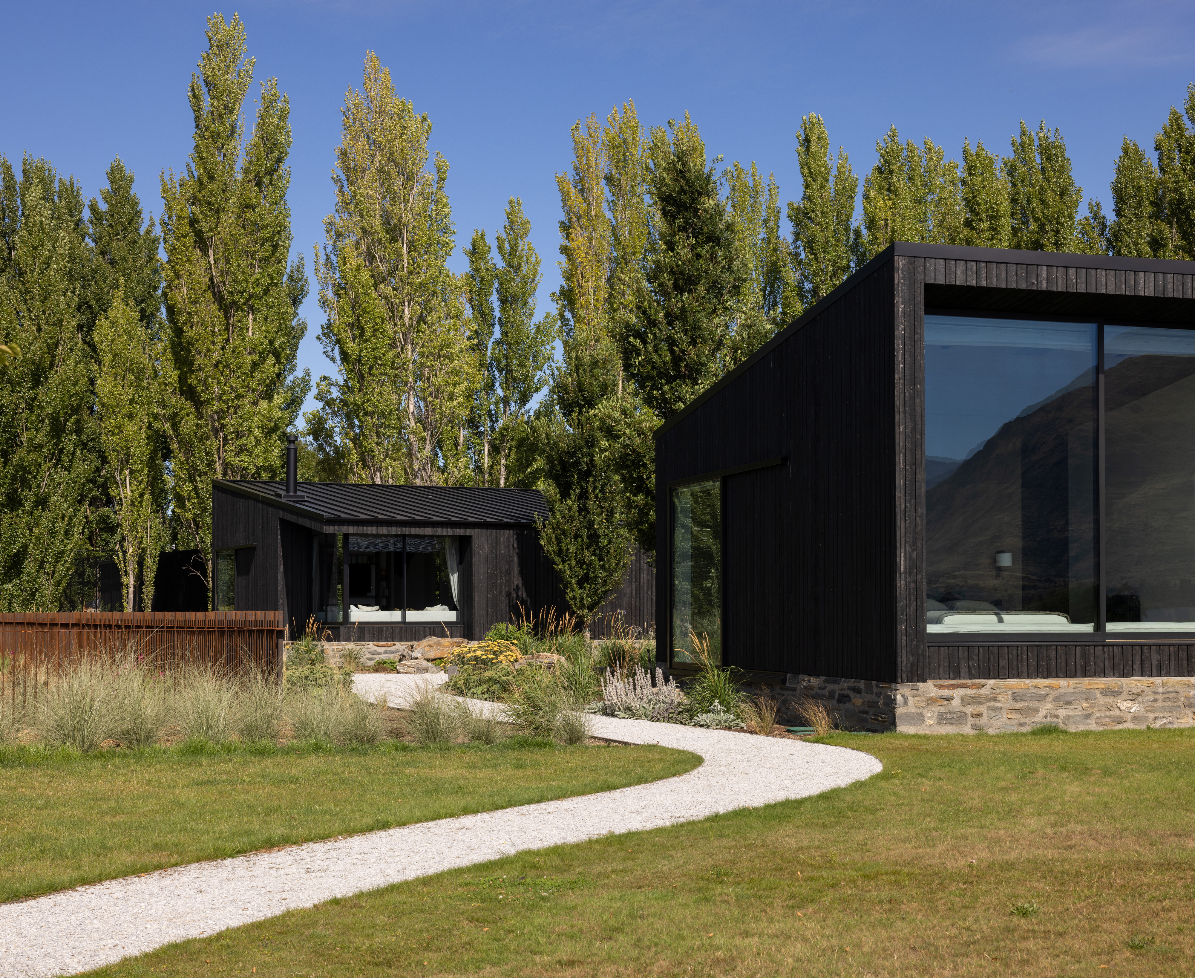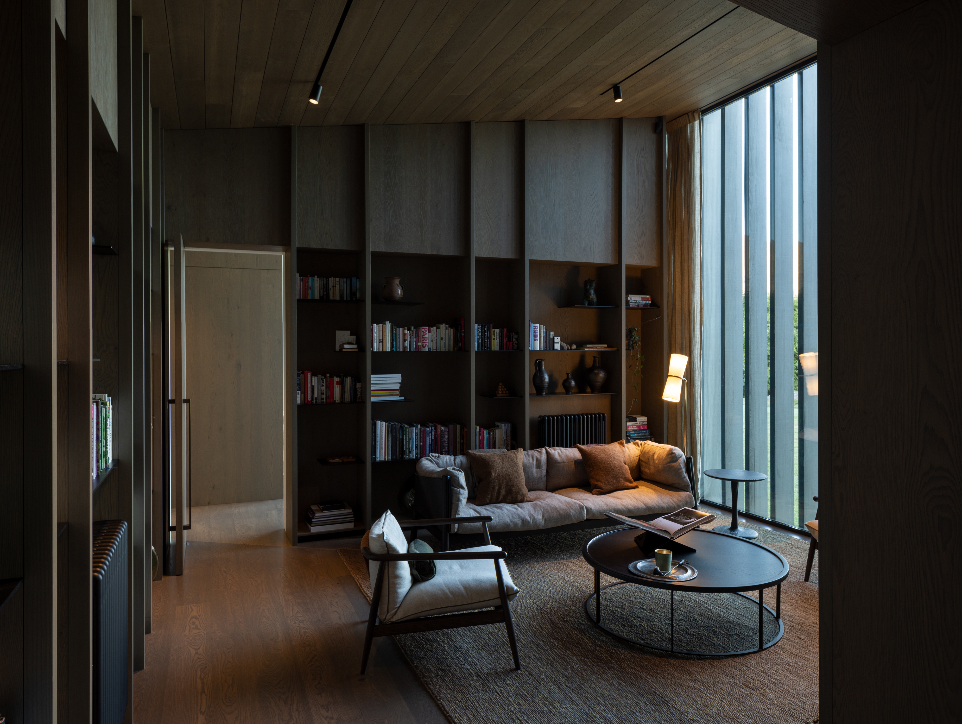 From the drama of the chunky, elevated entry gate to the subtle shifts in axis to capture views, this warm and inviting family home is a masterclass in precision design. Powerfully deliberate and exquisitely clad in textured burnt larch externally, contrasts internally with the use of sumptuous French oak. Precise over-height steel windows flood the spaces with natural light and landscaped vistas. There is a sense of permanence here with no detail left to chance.