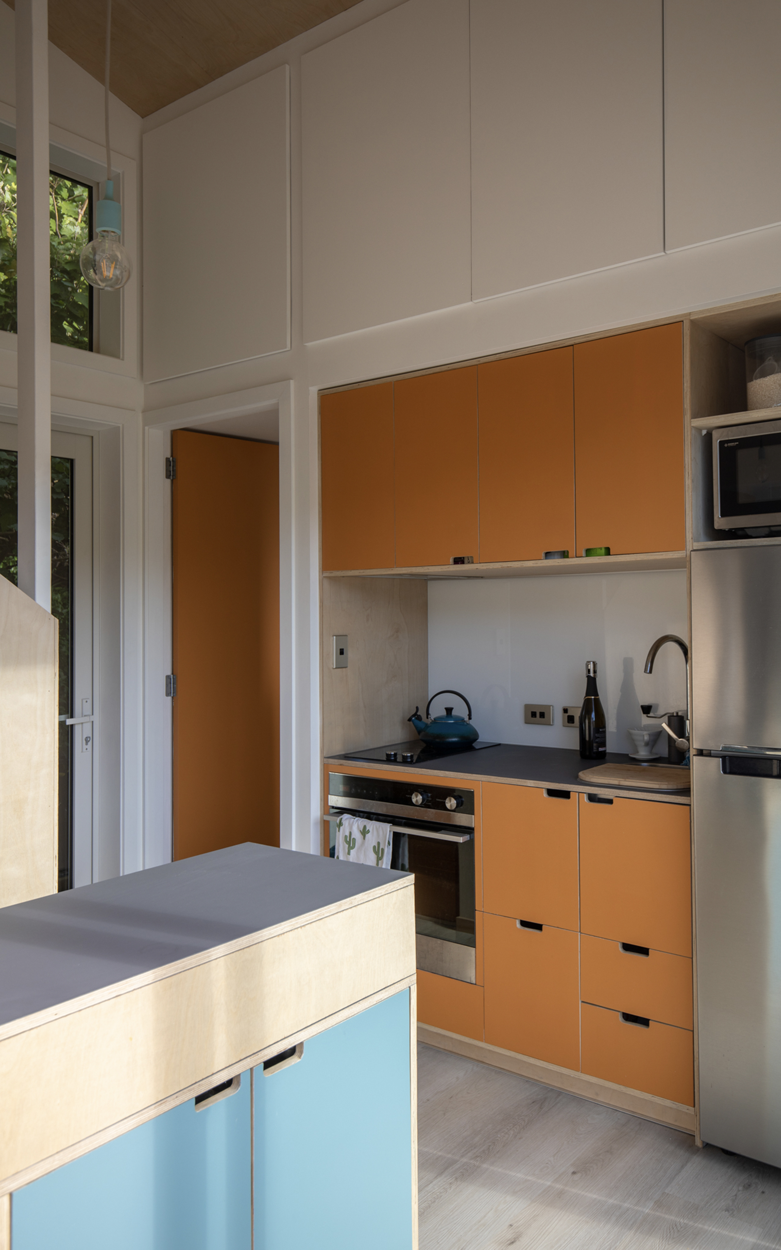 Clarity of idea, simplicity of form, considered planning and crisp detailing make this a model for efficient living. An asymmetric form creates a contrast of compressed space adjacent to the higher volume. As a result, the interior feels surprisingly generous given the size restraints. Add a degree of self-build and a touch of colour, and no space is wasted. Small in size, big on intent, the ‘mini’ is a series of compact, affordable living studies and is just ‘fab’!