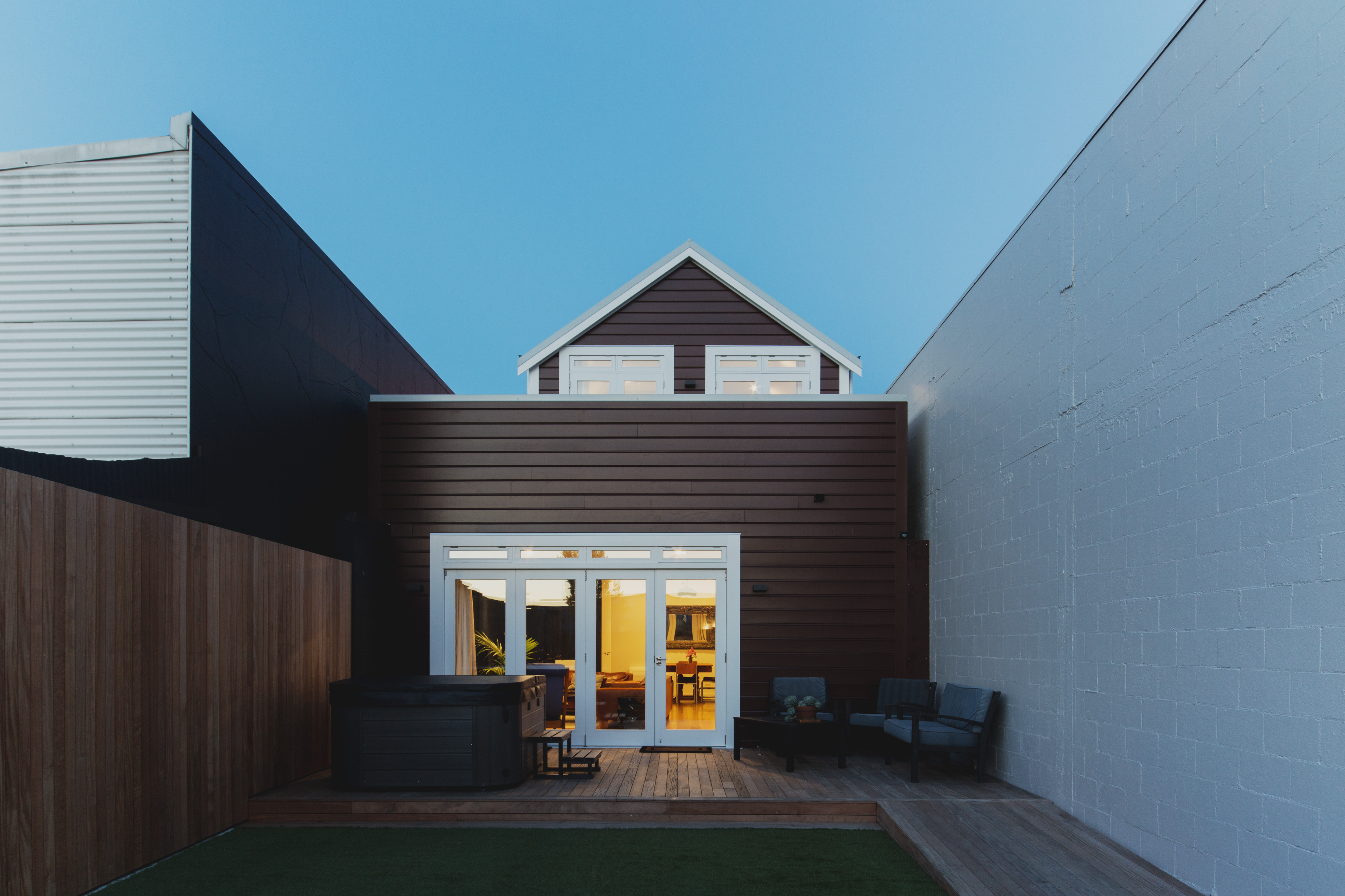 Designed as an inner-city apartment, this build is an excellent demonstration of how small, awkward sites can be enlivened and opened up into very enjoyable living places. The street front is a simple restoration of the original façade, however inside the colonial theme is abandoned for a quiet contemporary apartment style. The architects have responded to the compact, narrow envelope by designing an interior that is cleverly and creatively arranged with sliding doors to open spaces up and skylights that illuminate in interesting ways. Throughout, the building conveys a sense of being completely removed from the noisy inner-city street outside.