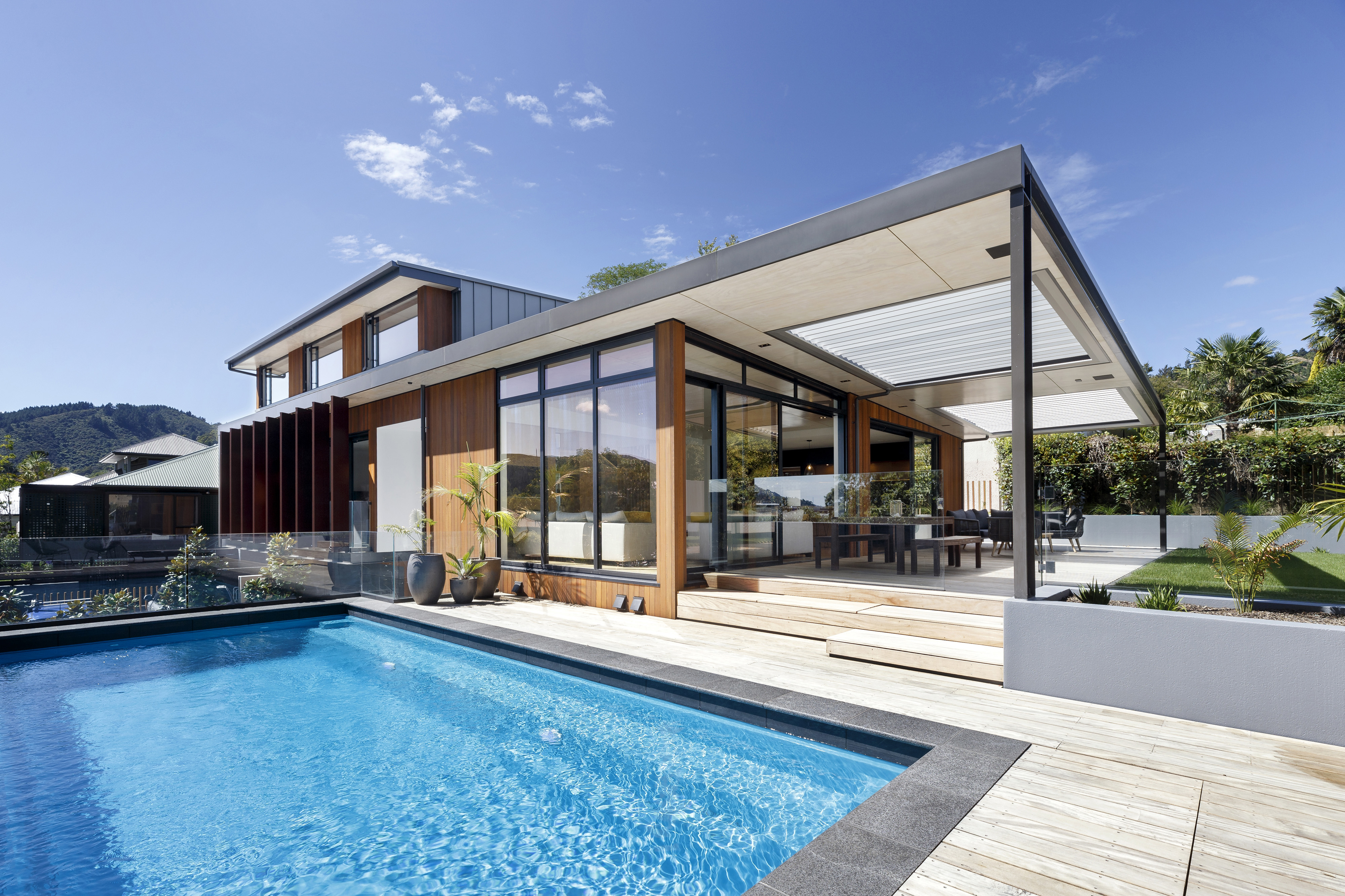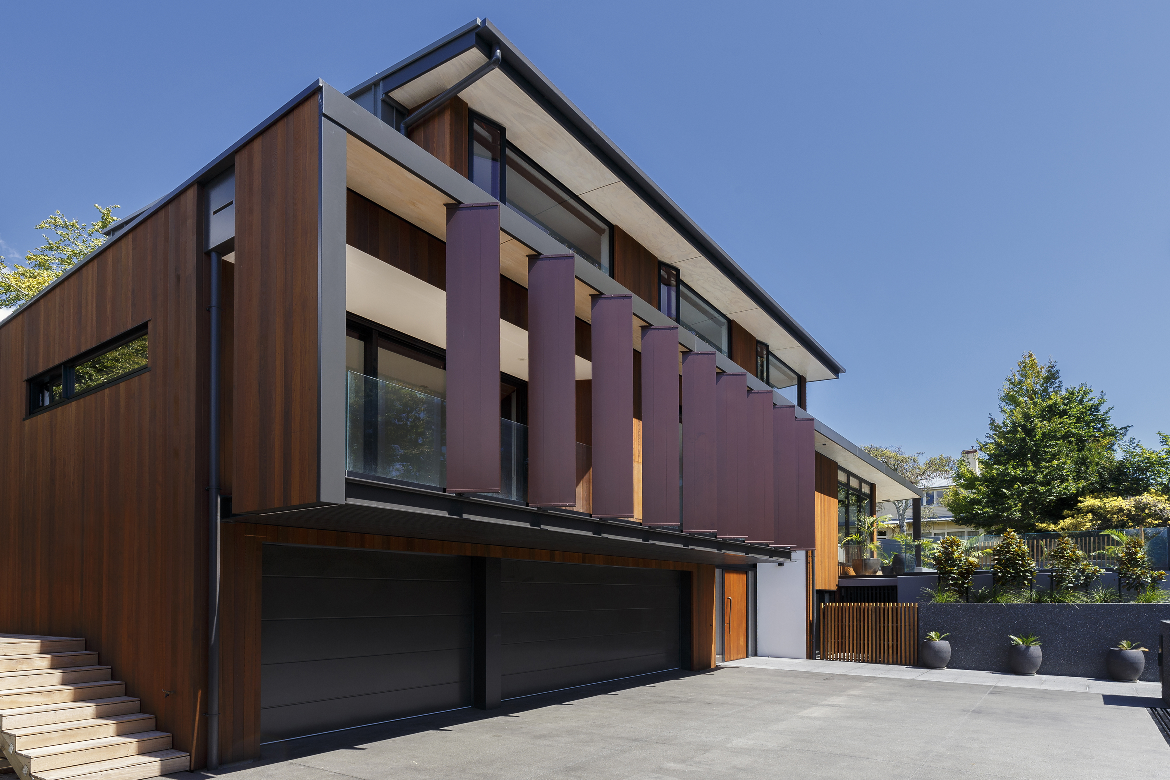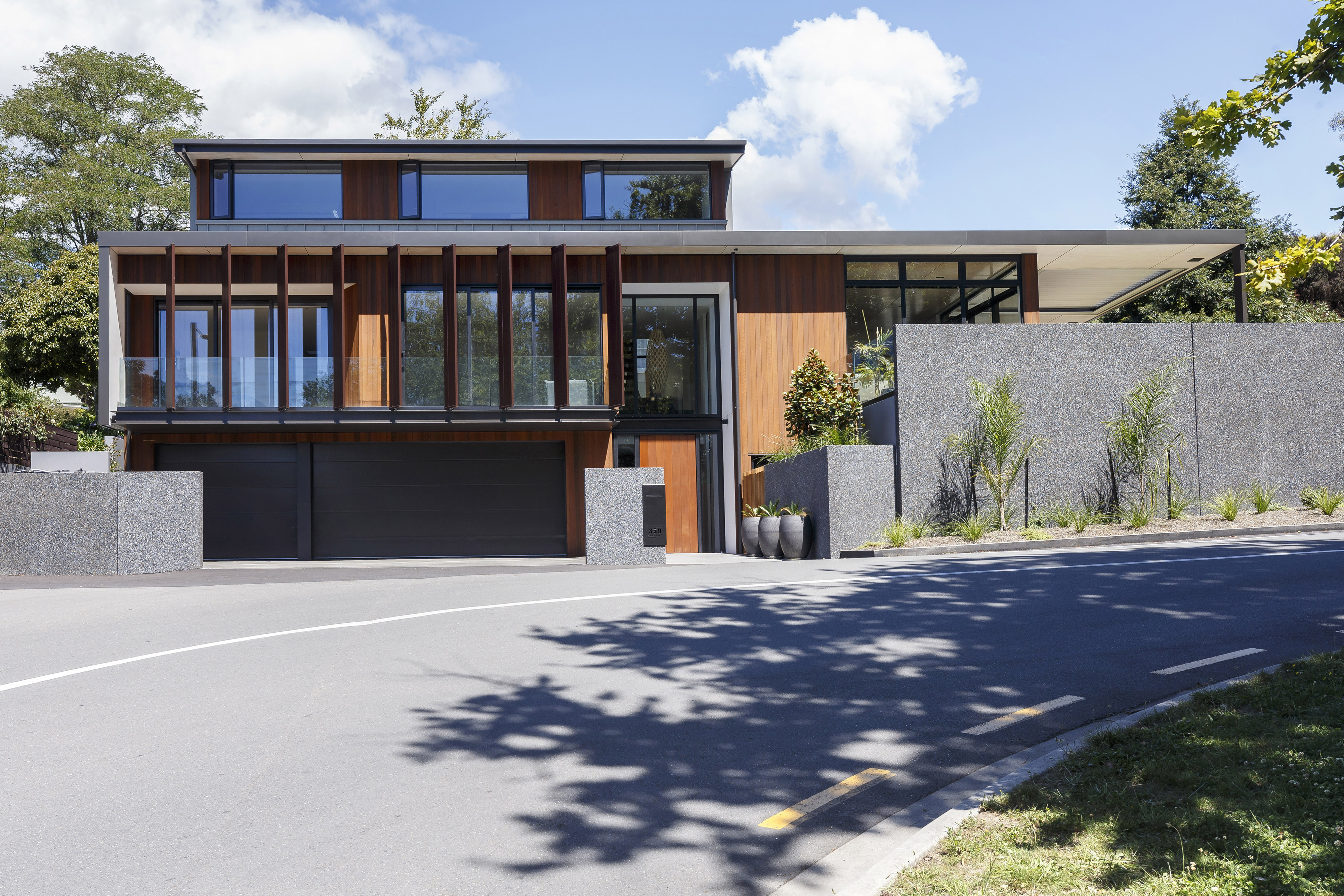 Gracing a prominent corner overlooking Nelson’s Cathedral Hill, this carefully composed house elegantly contributes to the historic context of its mature city-fringe site. Working collaboratively, the architect and owner-builder have produced a beautiful and sophisticated home that is both immaculately built and carefully organised to meet evolving family needs. The house is raised and set back from the street, with living and outdoor spaces borrowing shelter and outlook from the nearby cathedral-like arbour. Privacy has been achieved through the careful assignment of levels, disposition of landscape walls and the rhythmic vertical fins that regulate views from within.