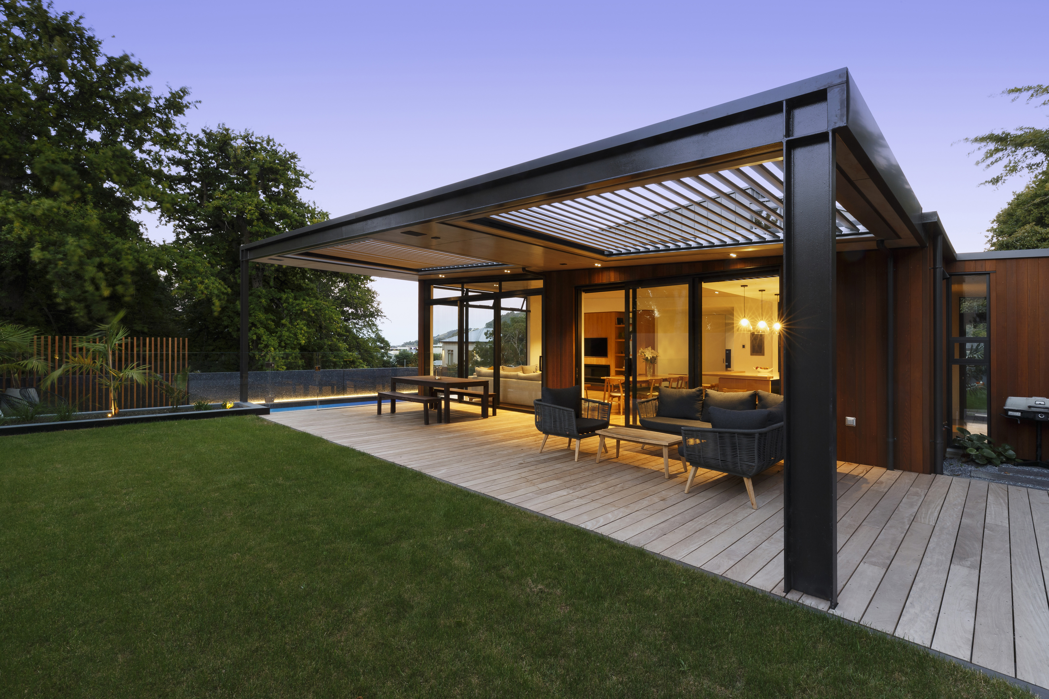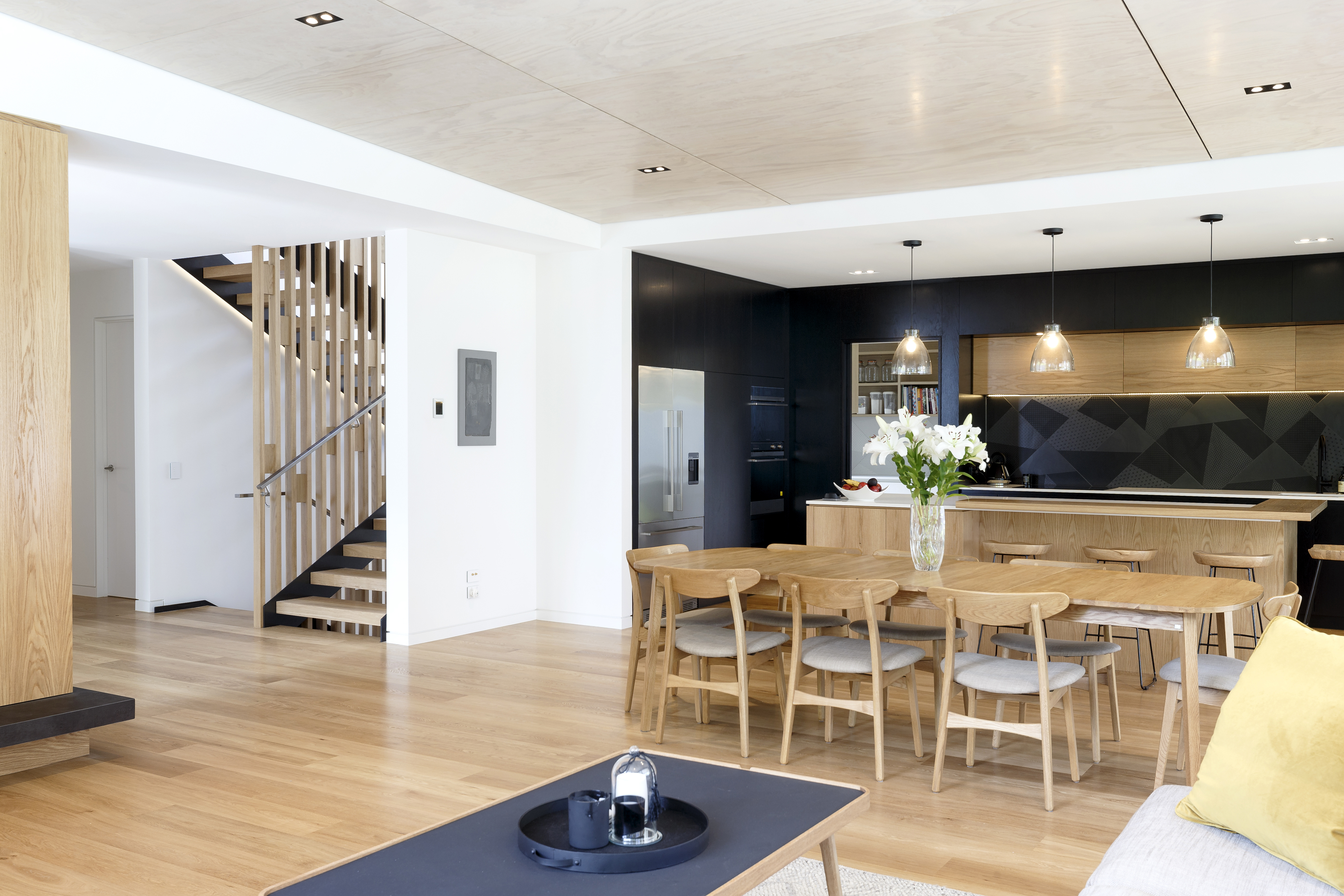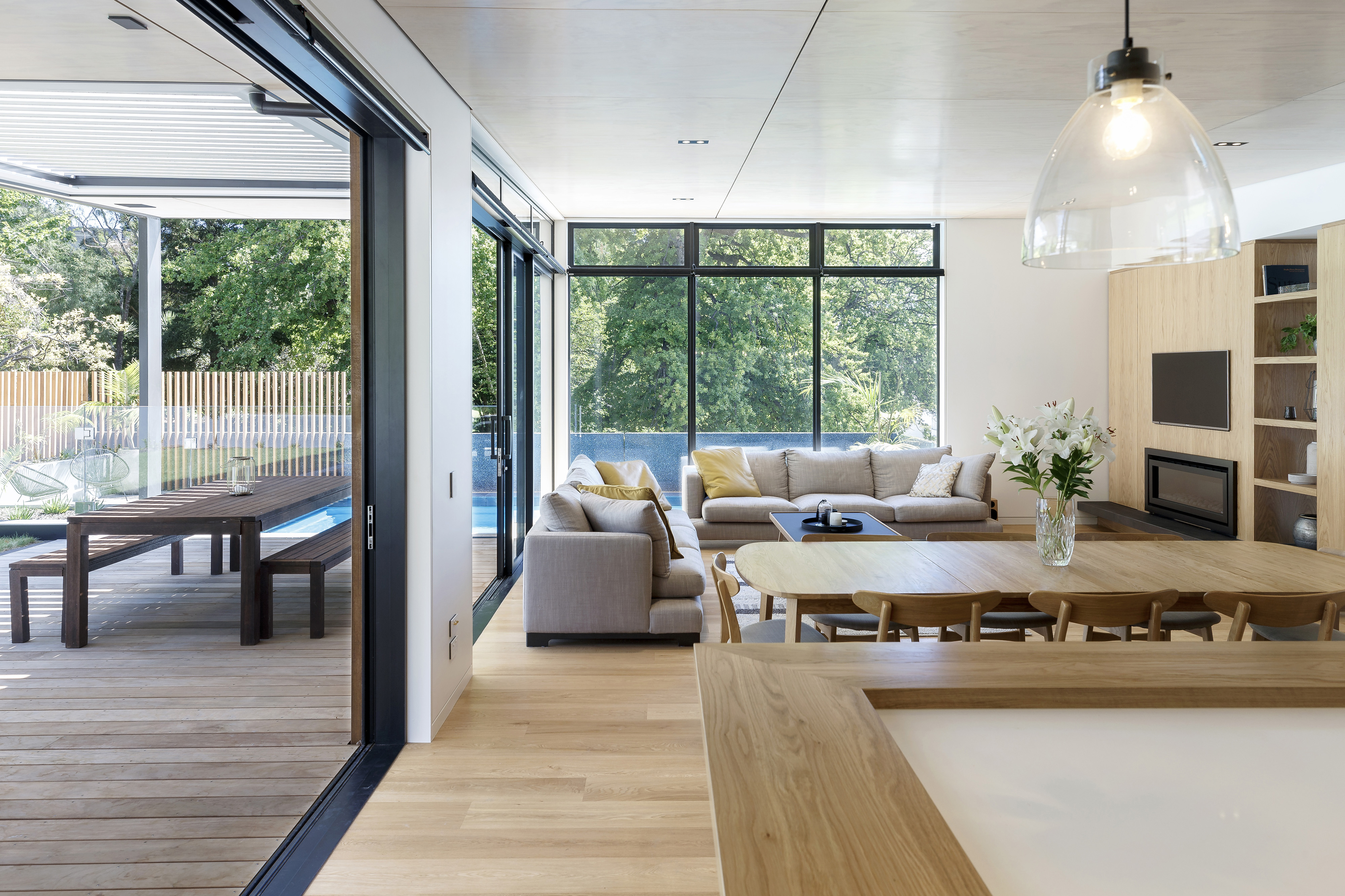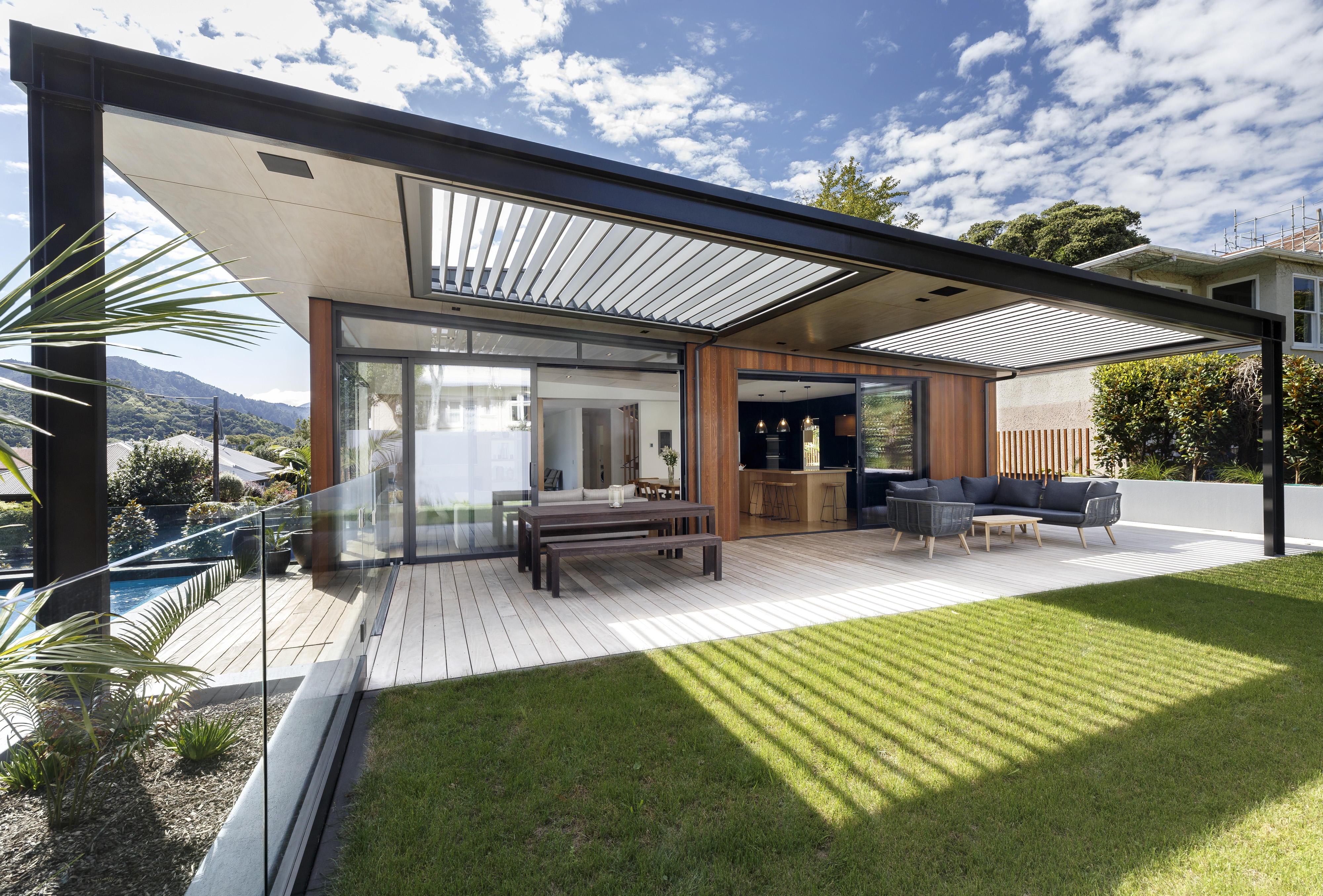 Gracing a prominent corner overlooking Nelson’s Cathedral Hill, this carefully composed house elegantly contributes to the historic context of its mature city-fringe site. Working collaboratively, the architect and owner-builder have produced a beautiful and sophisticated home that is both immaculately built and carefully organised to meet evolving family needs. The house is raised and set back from the street, with living and outdoor spaces borrowing shelter and outlook from the nearby cathedral-like arbour. Privacy has been achieved through the careful assignment of levels, disposition of landscape walls and the rhythmic vertical fins that regulate views from within.