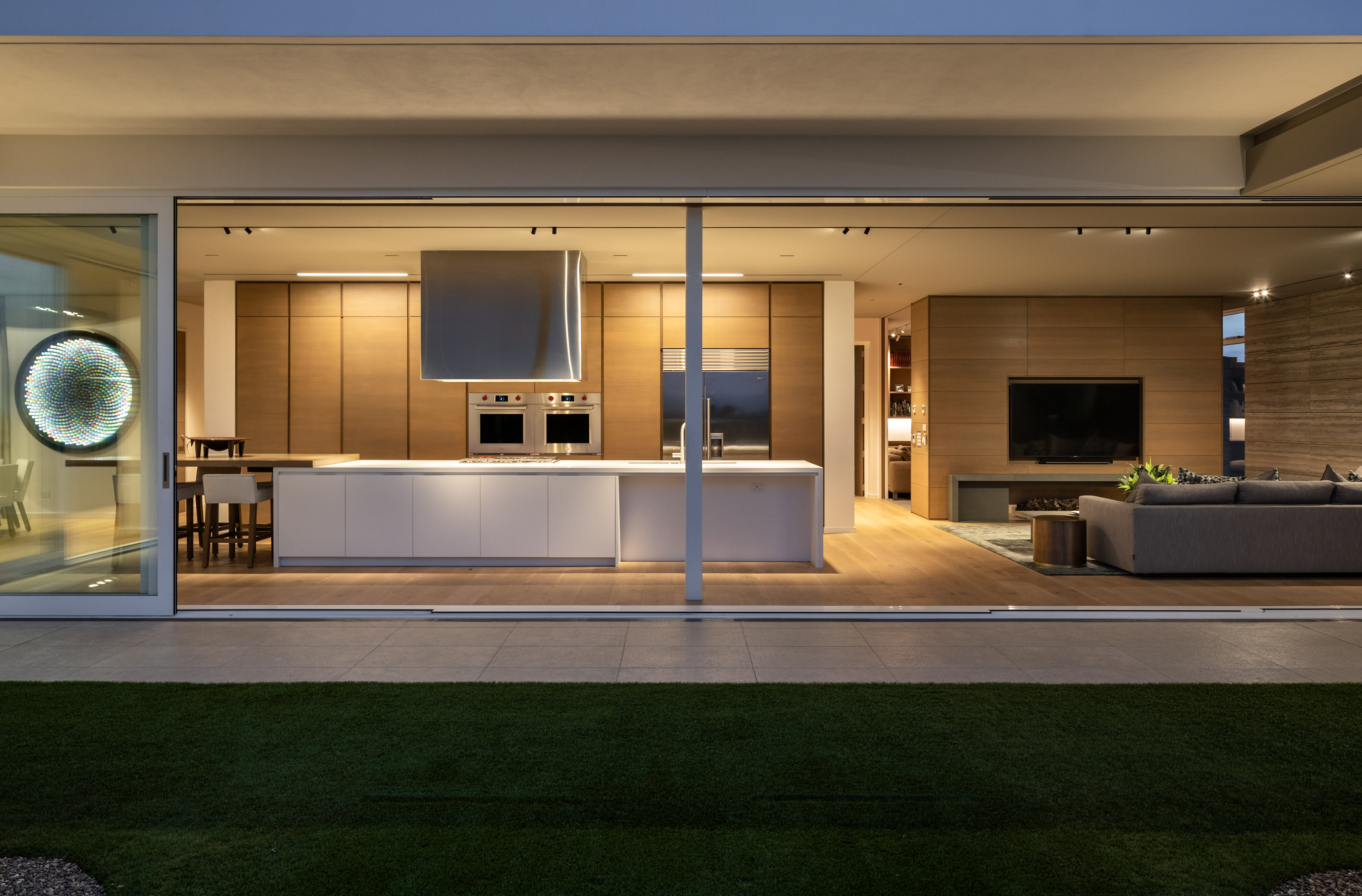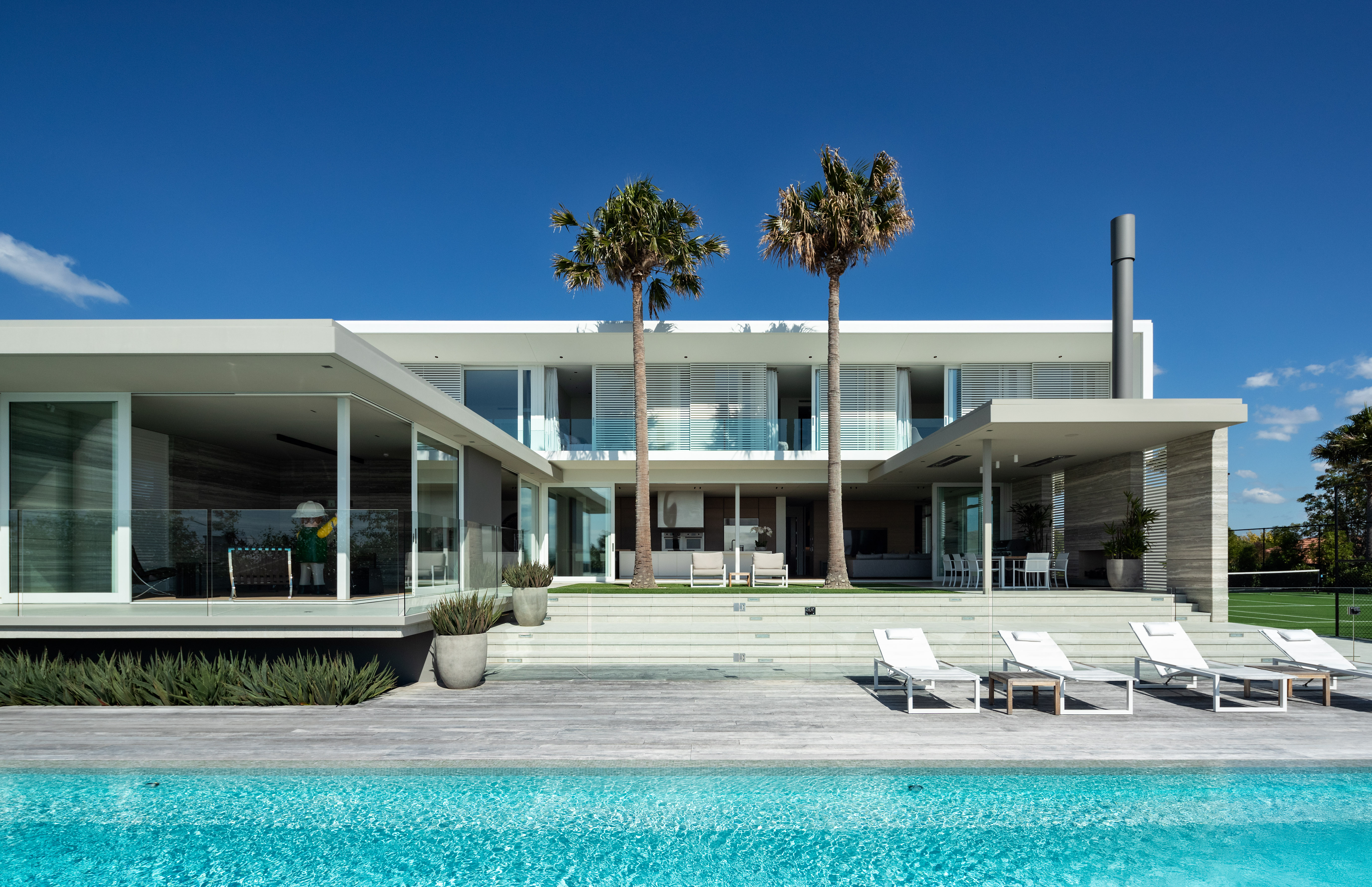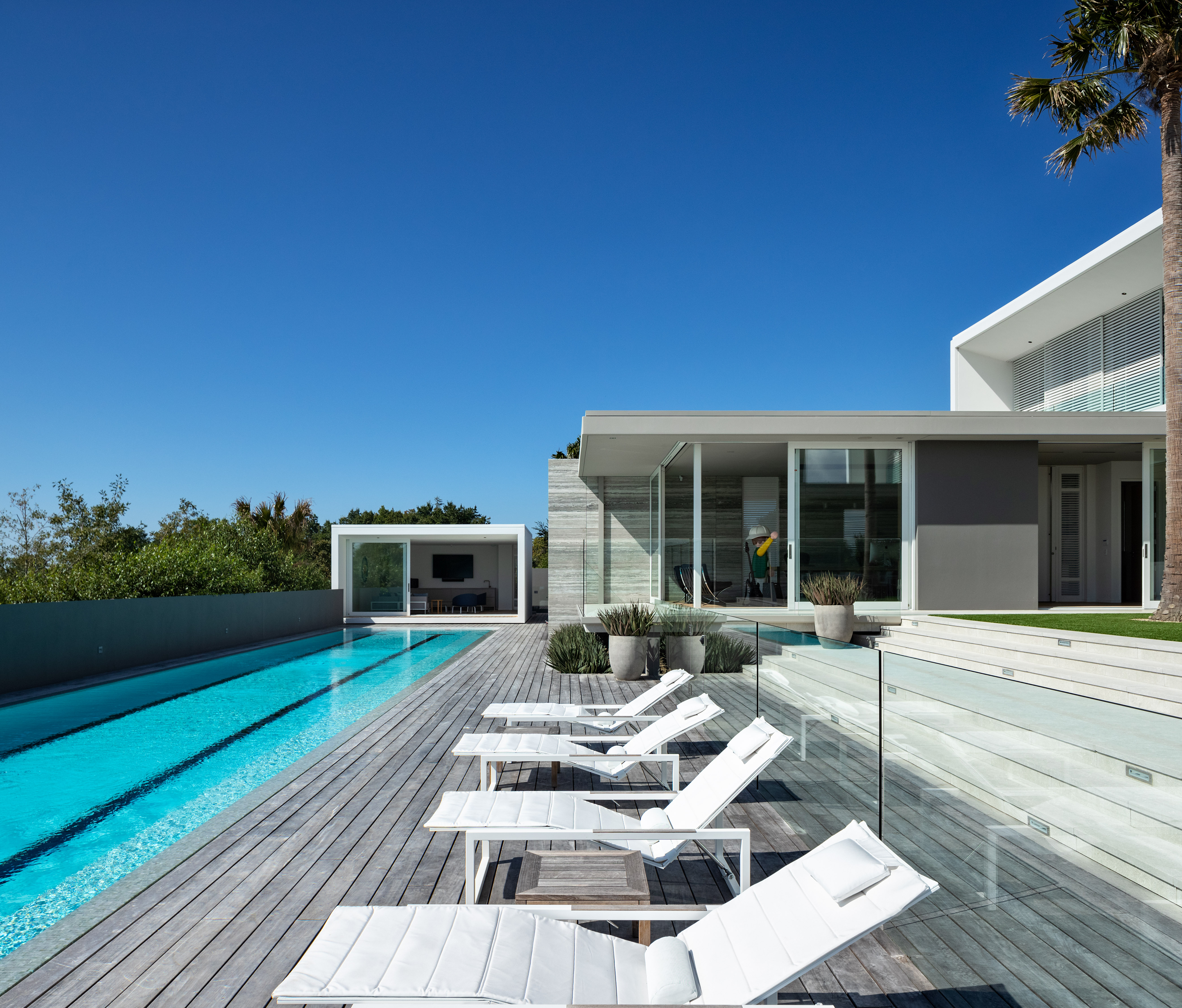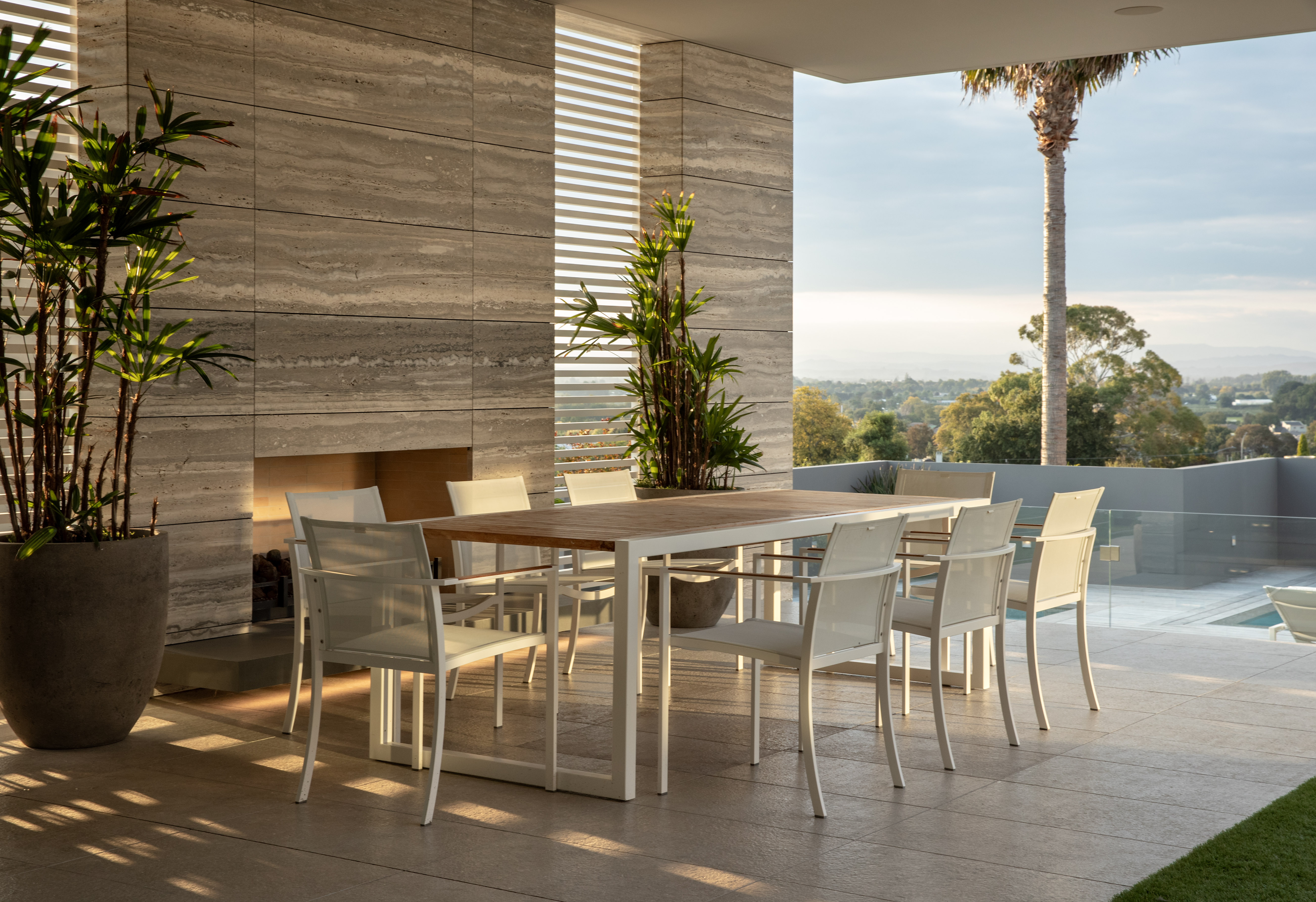 The dramatic cantilevered forms and stacked volumes of this home draw a direct line from the glamour of mid-century California to modern-day Havelock North. Precisely detailed and impeccably constructed, the large family residence is comprised of building block forms that create a series of family-focused spaces around a sunny, protected courtyard. The house enjoys panoramic views but is also screened from the neighbouring properties. A house this big and bold risks feeling heavy, but a close relationship with sun, air, water and sky gives it surprising levity.