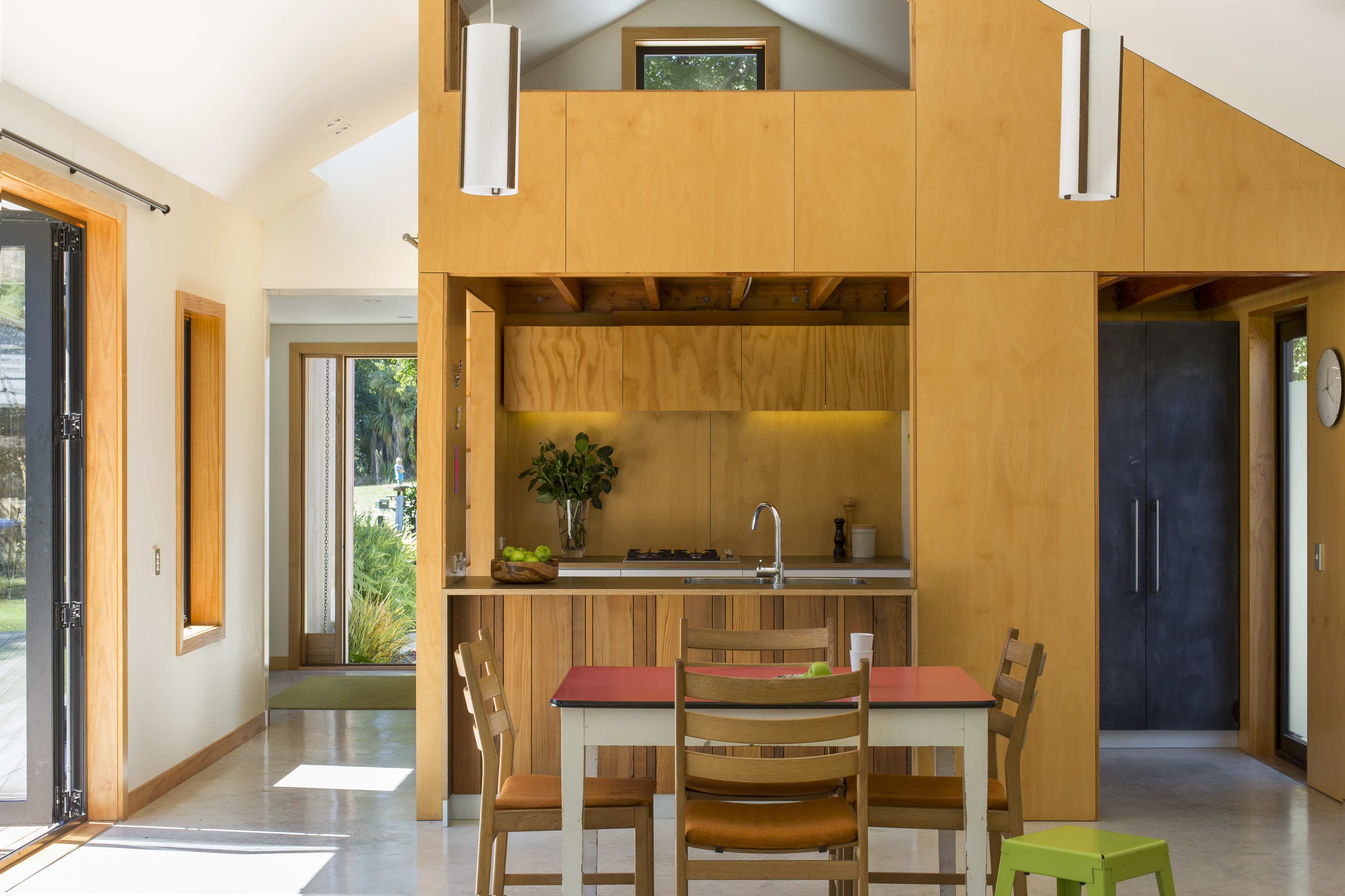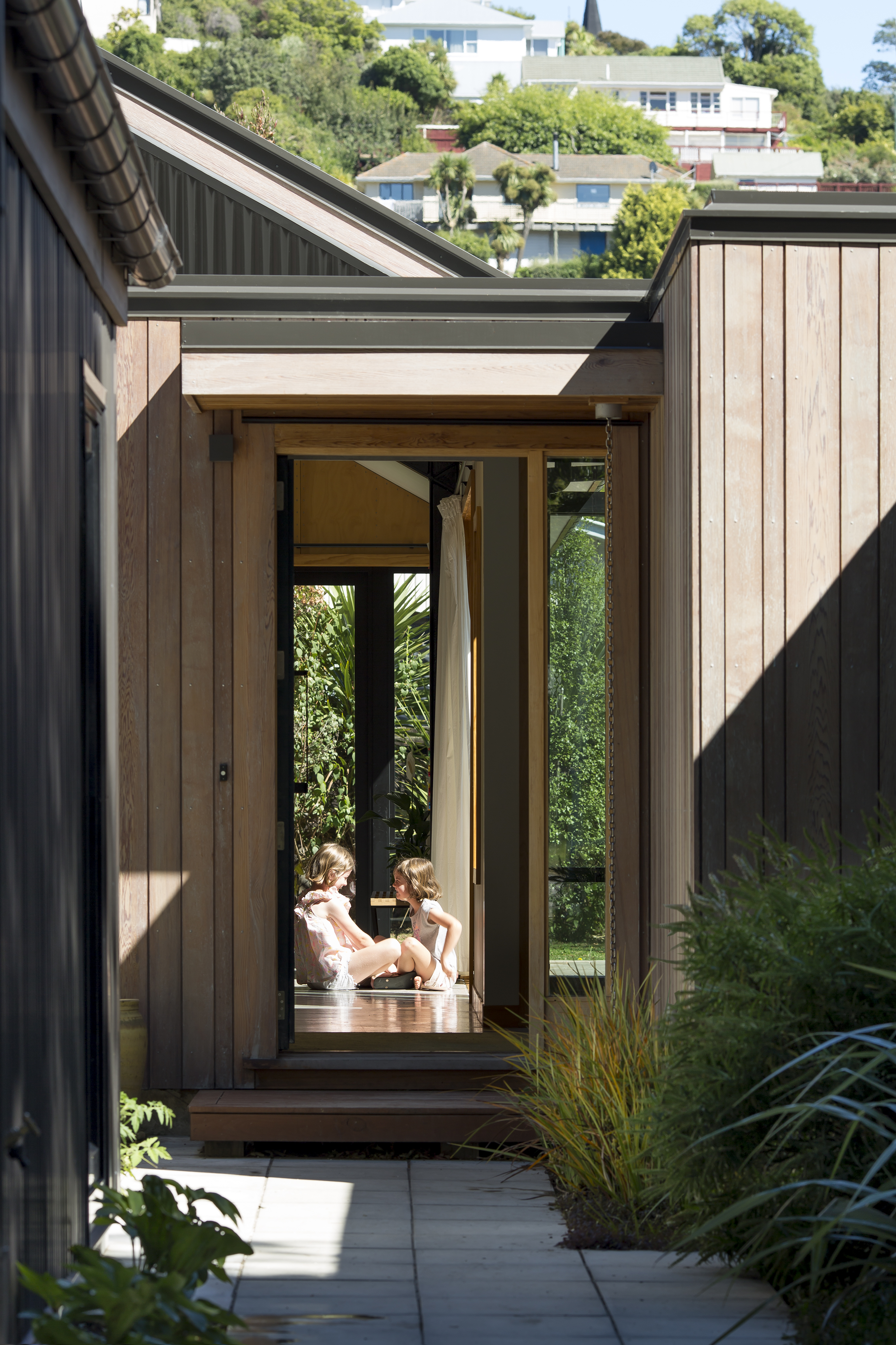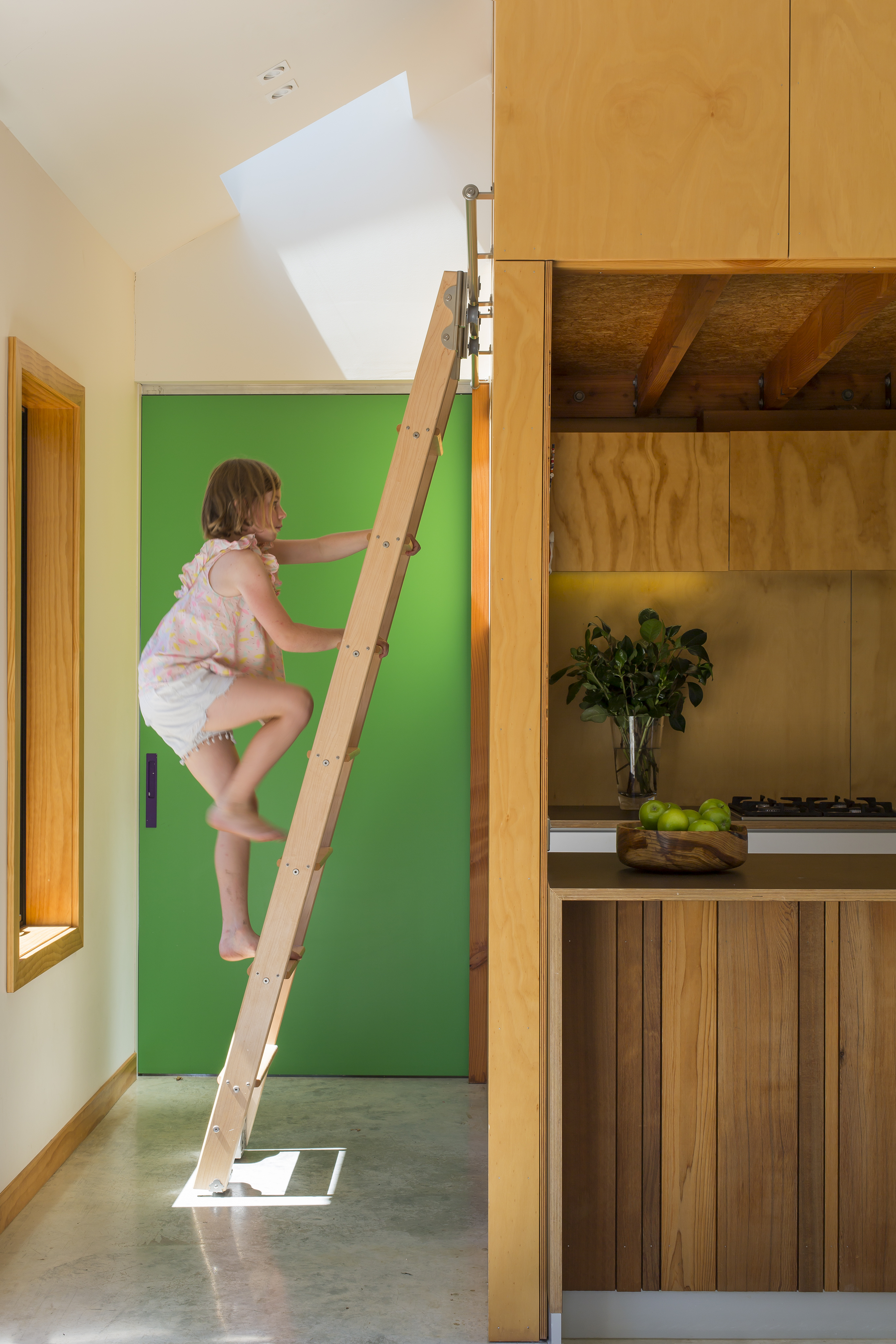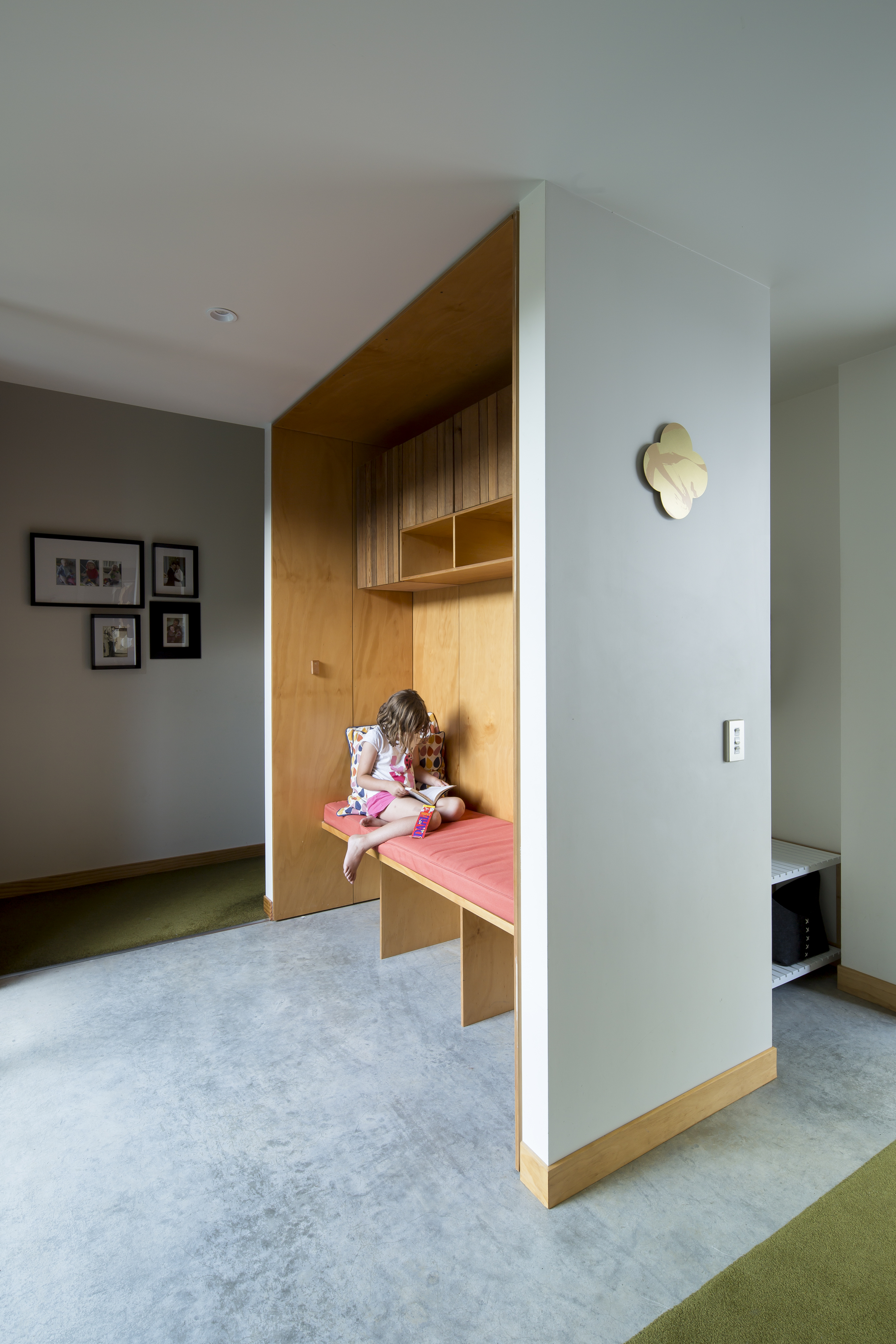 This house must be a joy to live in. Composed of outwardly unassuming gabled forms, one for the living and one for sleeping, connected by a timber clad flat-roofed section, it fits well with the scale and forms of the existing mid-century houses in the area. From ‘tree house’ mezzanine through to the phone-booth nook, the interior is a child-focused delight – practical, durable and charming, with the right mix of volumes and materials to provide an excellent backdrop for family life.