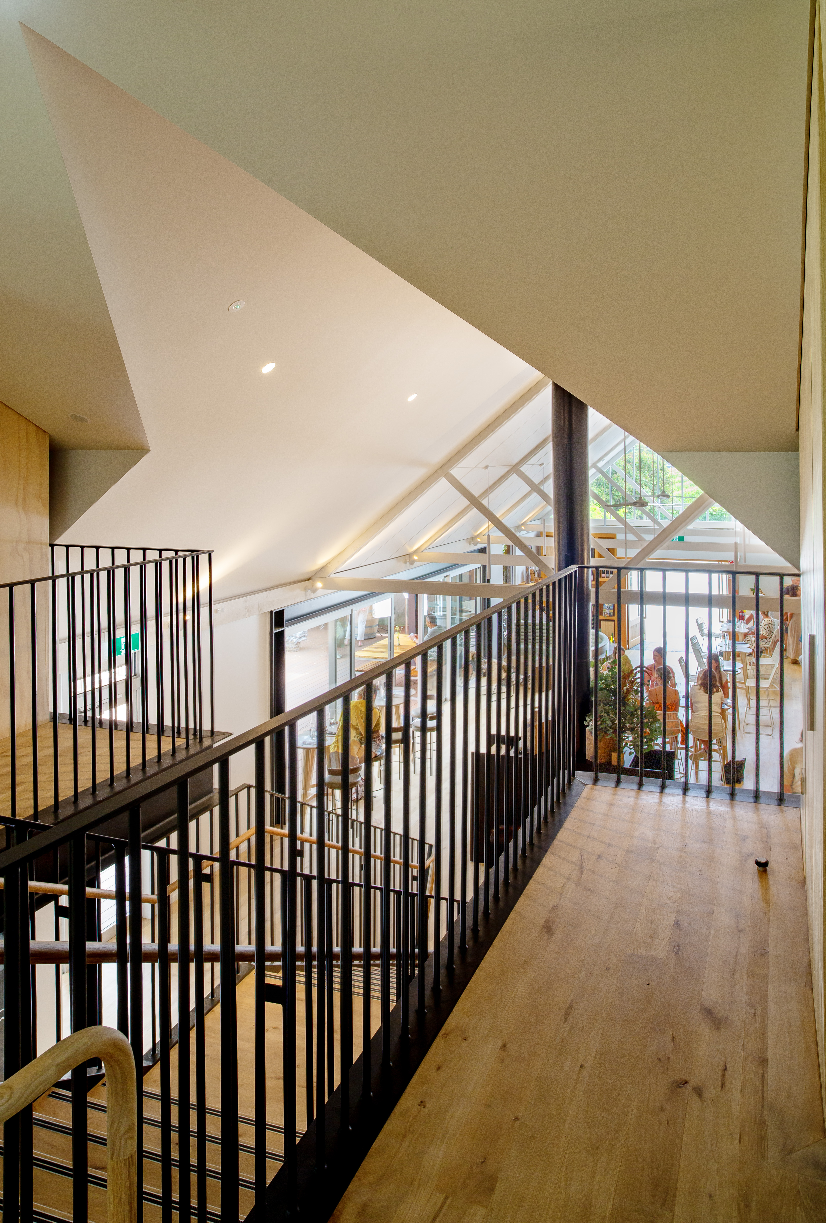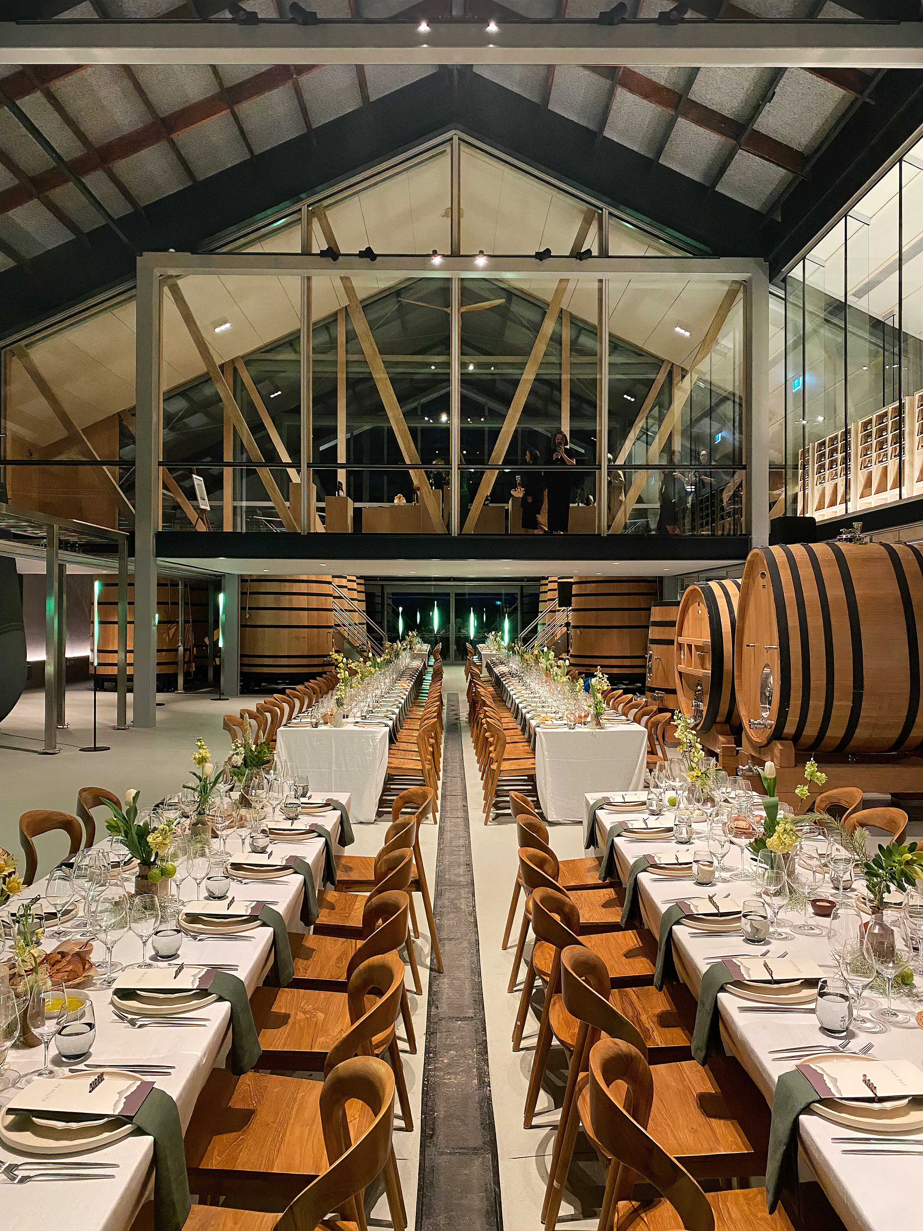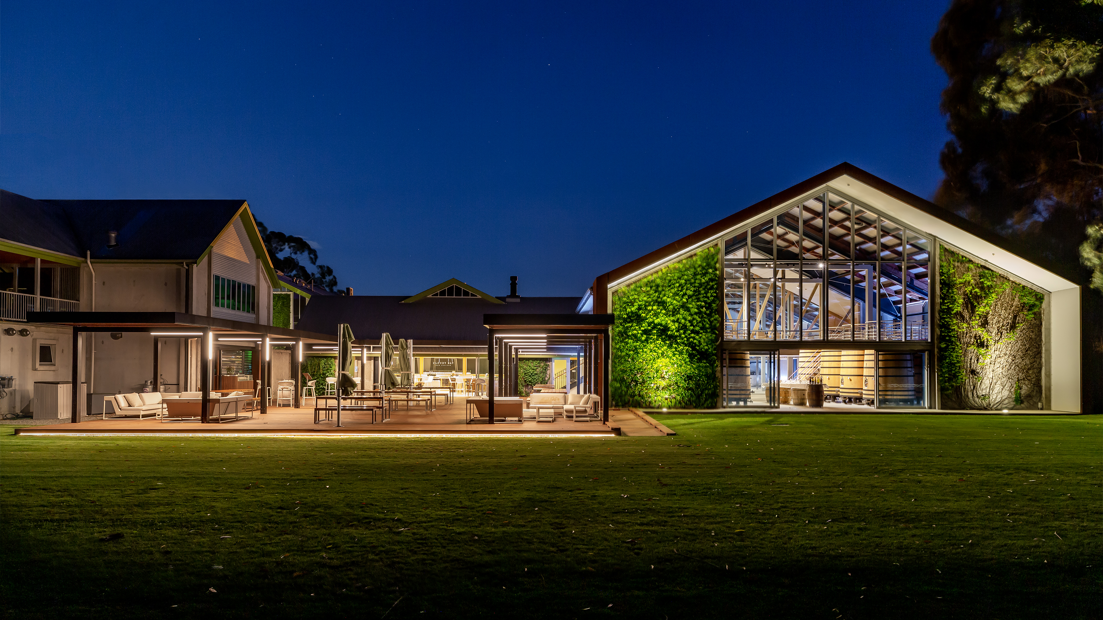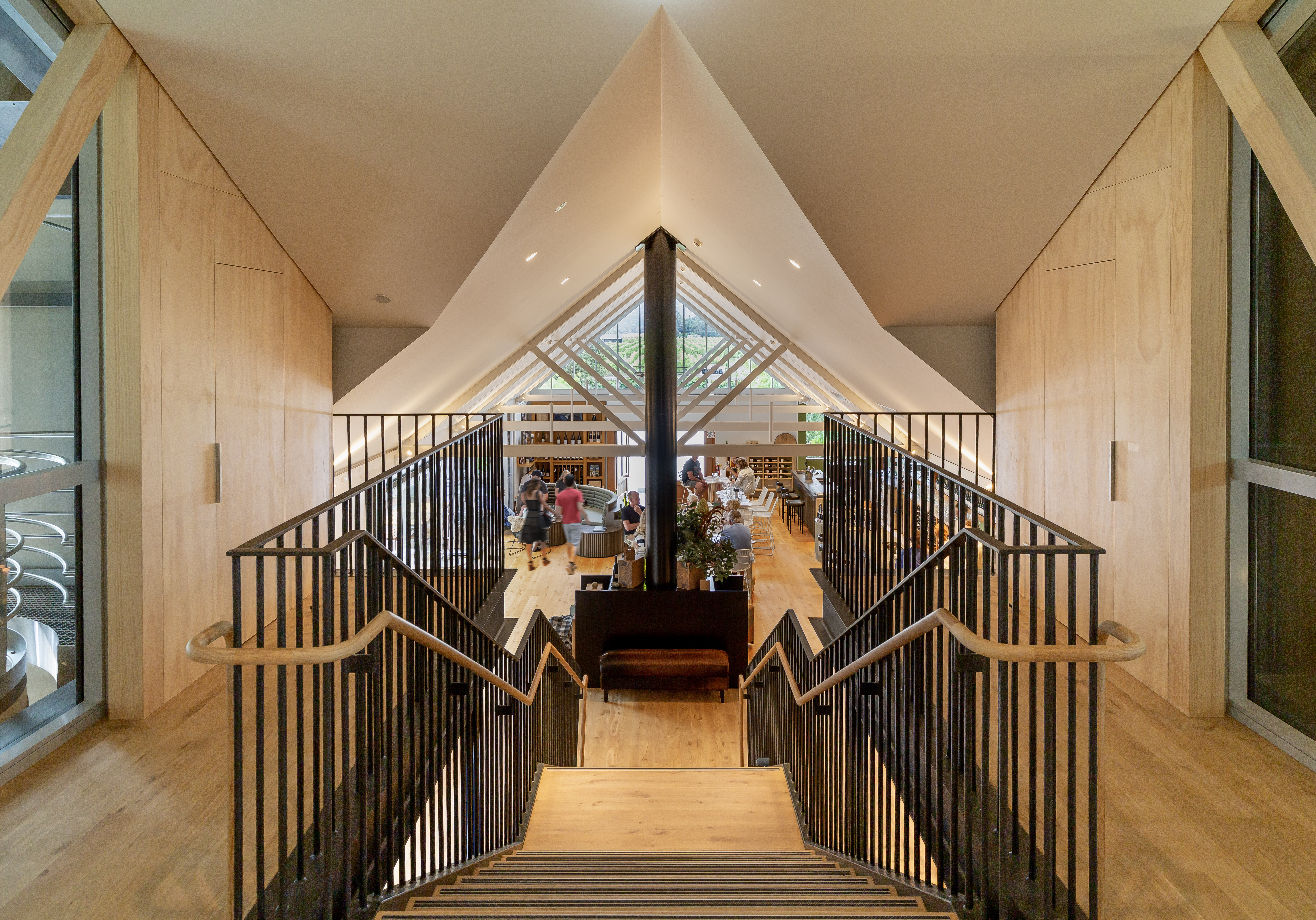 Cellar One represents a celebration of the winemaker's art, with process being evident as a design driver, giving insight into the nuances of wine production while expressing mechanics and equipment geometries. Teamwork between architect, engineer, contractor and winemaker is obvious in the clever insertion of the glass viewing pod suspended over the production hall in a re-purposed agricultural space. The adjacent tasting galleries are artfully crafted to display the finished product. Structural interventions are clearly expressed and give new life and light to an otherwise rigid concrete shell. Finely crafted timber joinery adds to the refined detailing.
