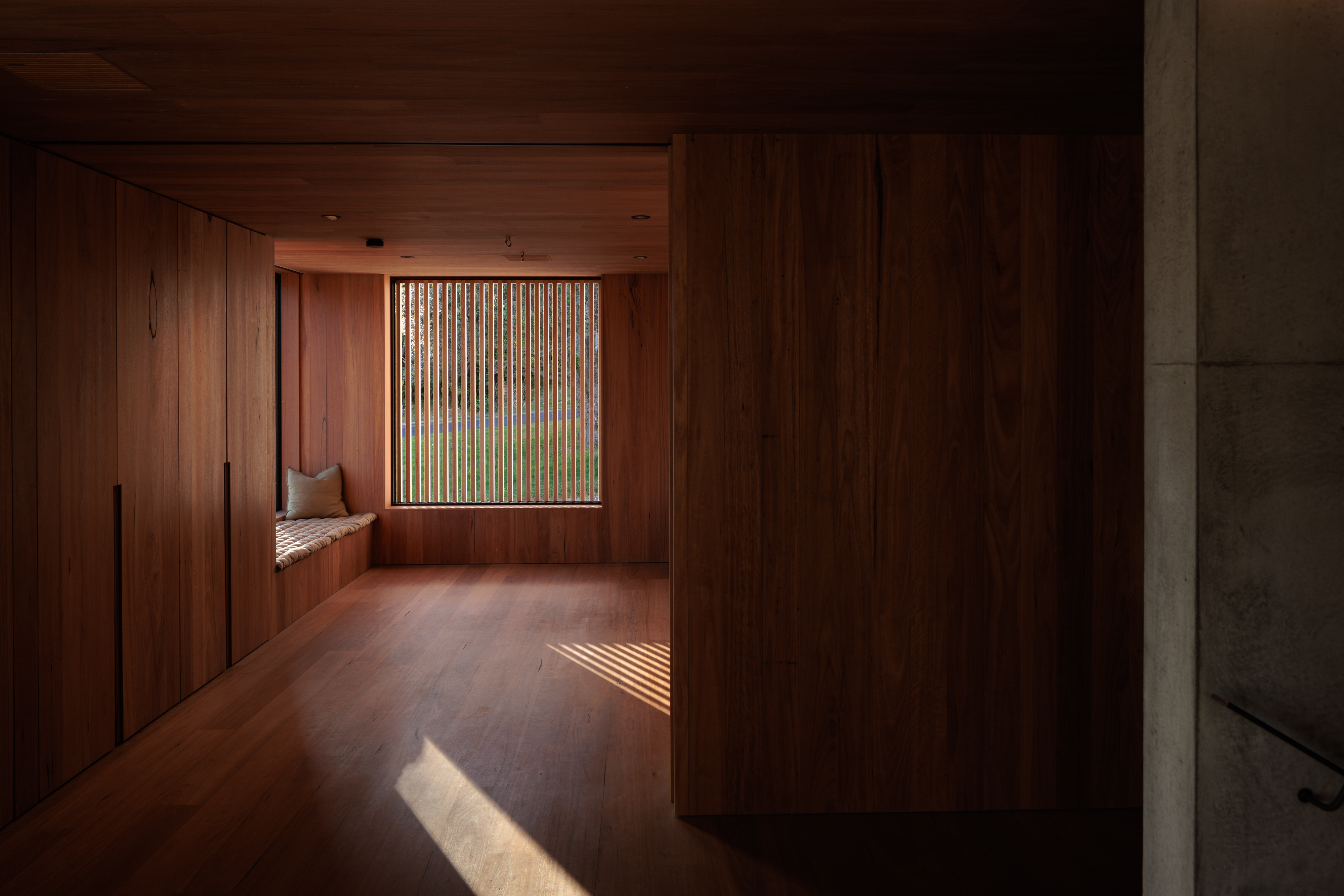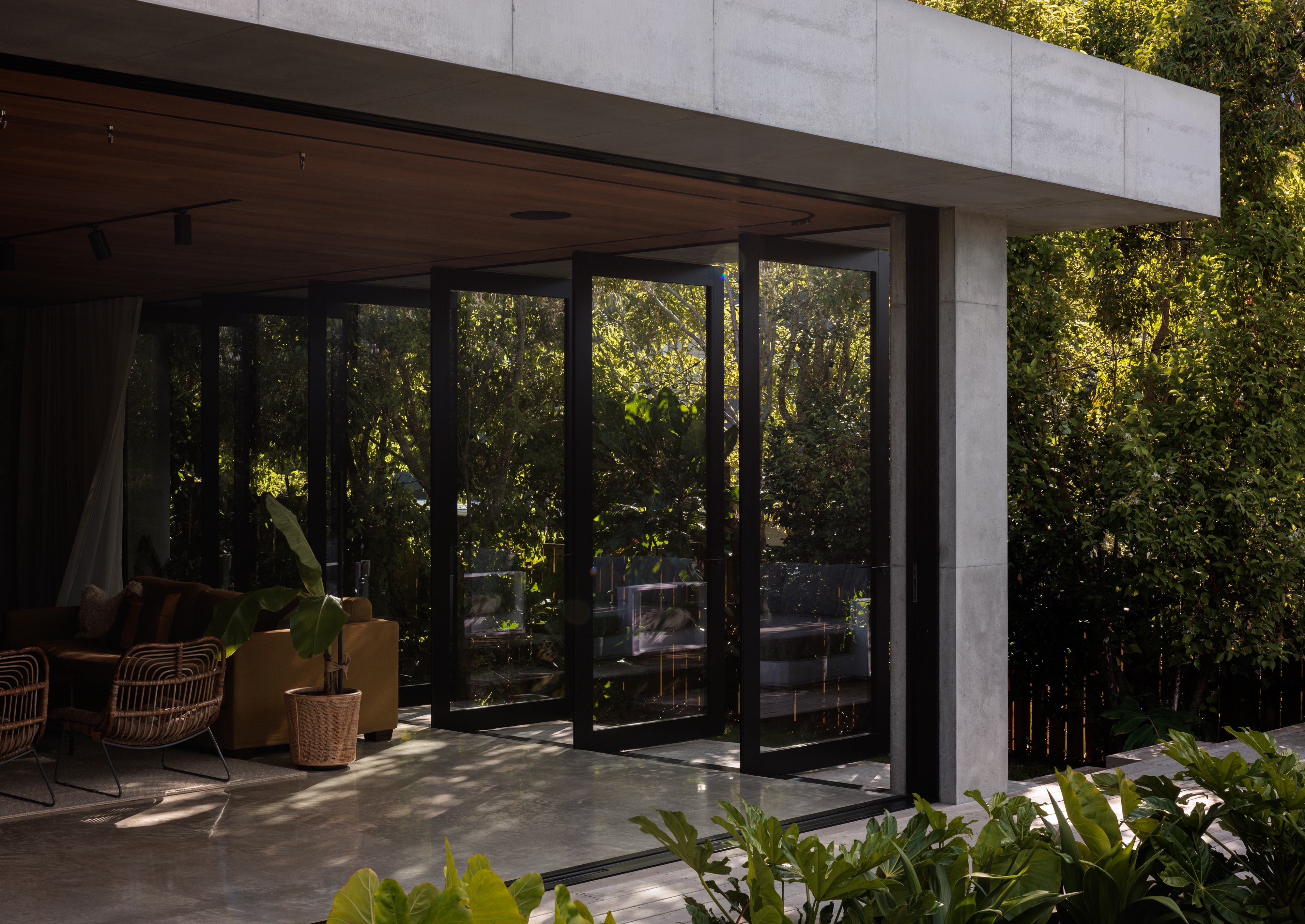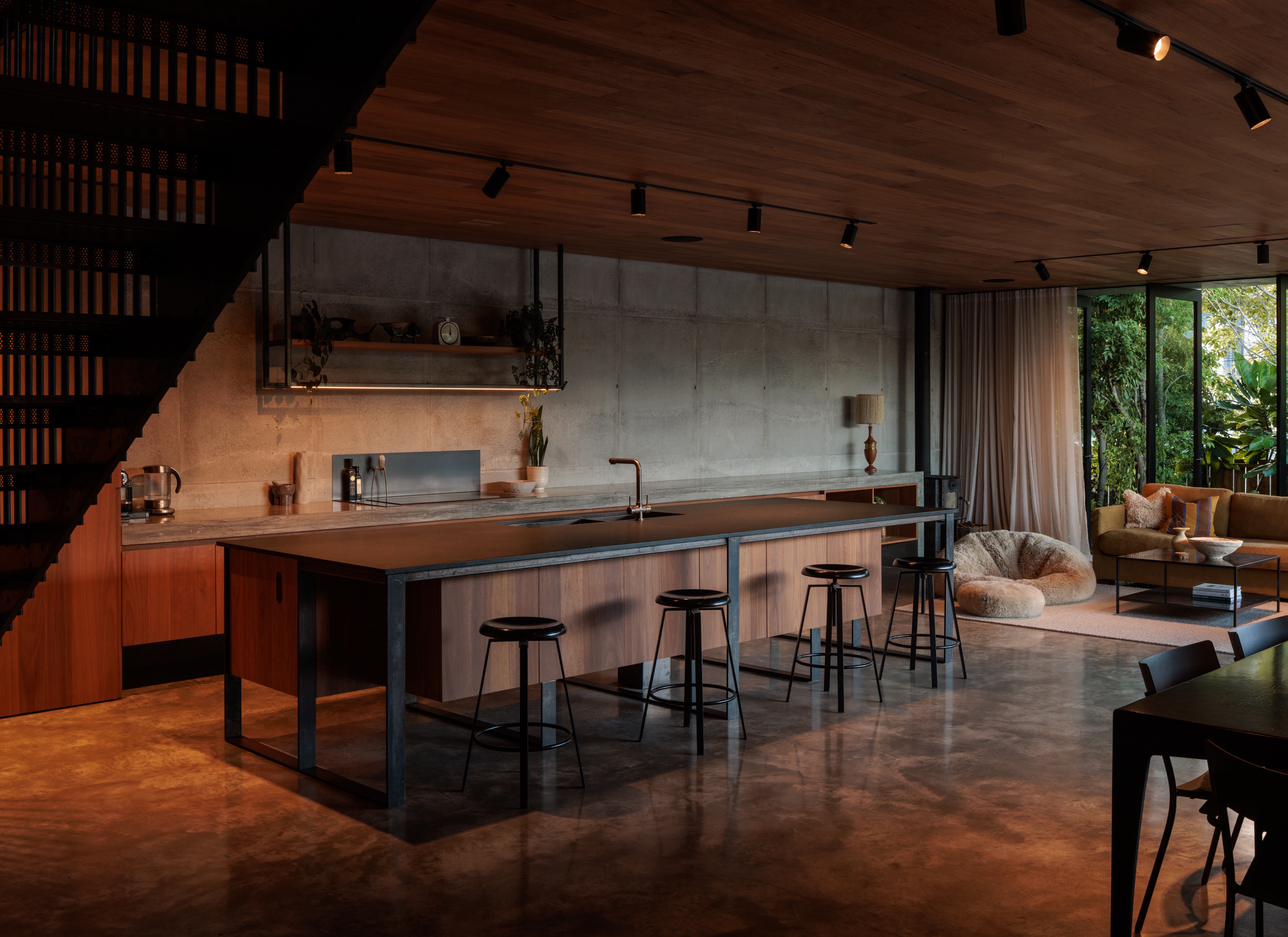 Originally conceived as a holiday home for its owner, this project evolved into a family’s permanent residence in the sleepy Coromandel township of Onemana. The design pushes the boundaries of site coverage and materiality, a modern concrete home inspired by the mood and aesthetic of Tadao Ando. Inside, the home feels modern and sophisticated, warm and inviting. Interior timber lining creates a welcoming, calming feeling. The courtyard and outdoor space create a tranquil oasis and sense of privacy, despite the proximity of neighbours. Light shafts, level changes and shadow plays create interest and privacy while maintaining views to the rolling hills and streetscape.