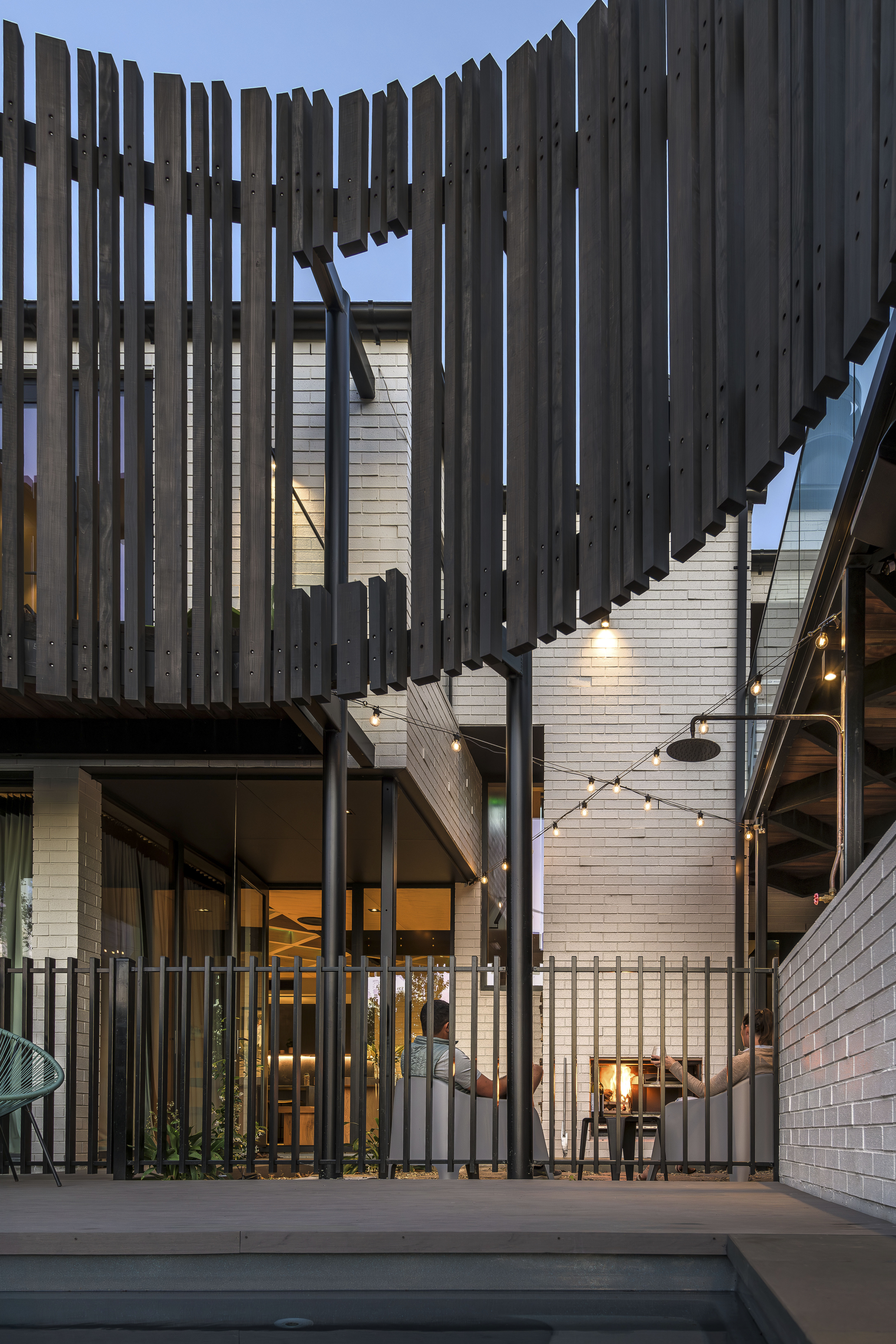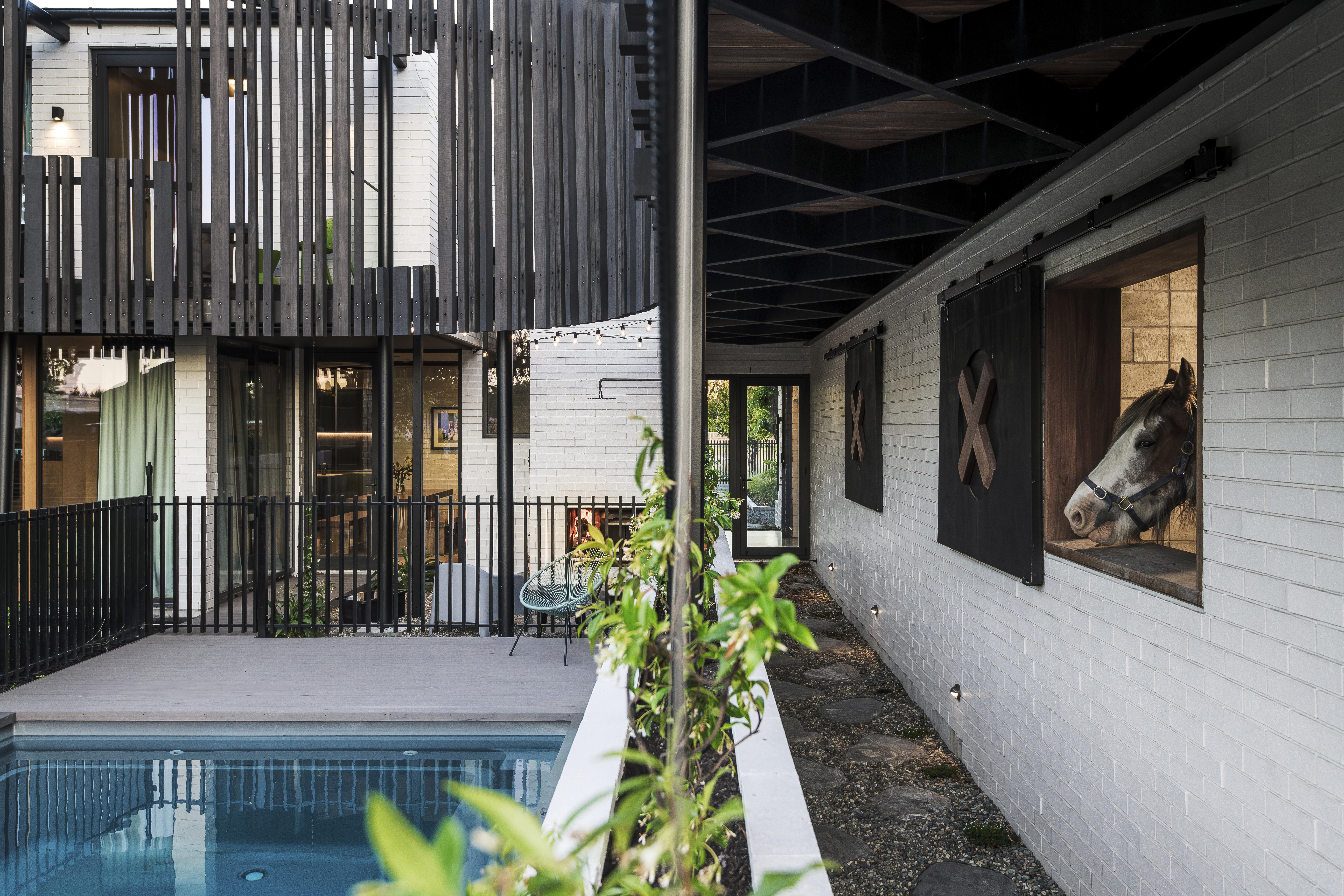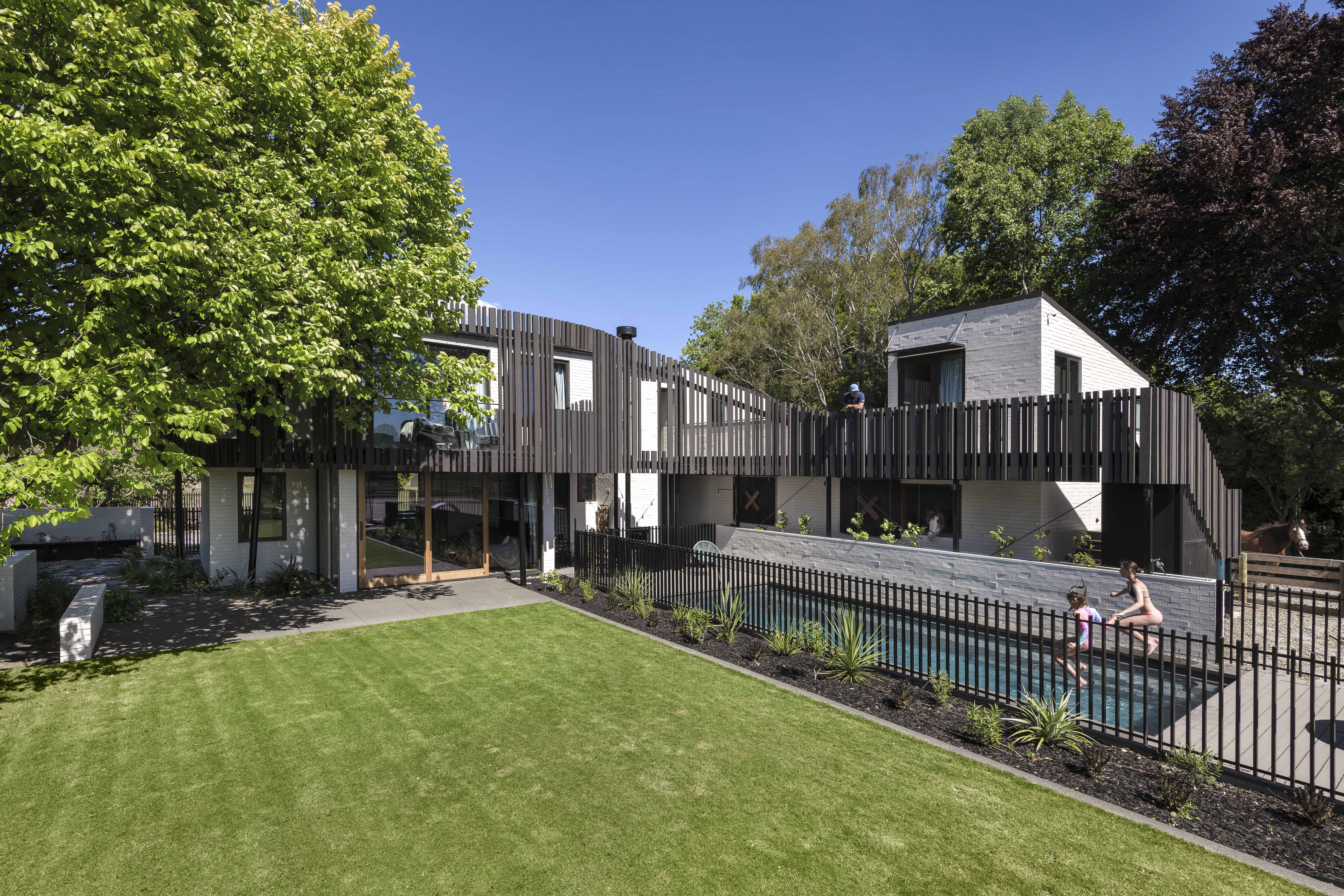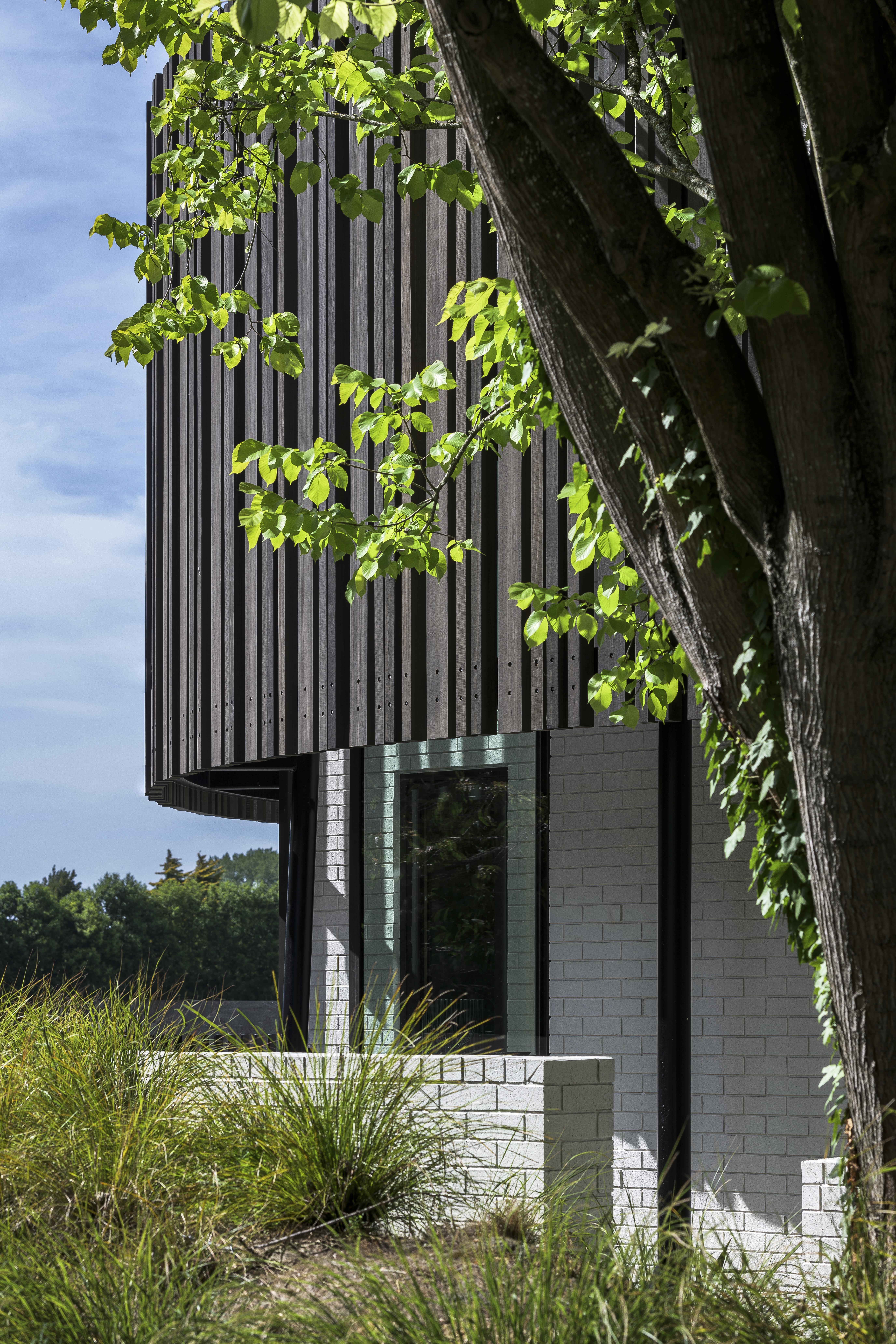 This innovative family home masterfully integrates with its rural-urban fringe context, honouring both the landscape and the owners' lifestyle. Inspired by a majestic golden elm tree, the design features curved timber slats and perforated metal screens that ensure privacy while enhancing aesthetic and climatic control. With an open-plan heart, strategic voids, and intimate nooks, the home fosters a strong connection to nature and encourages family engagement, including interaction with unique beloved pets. Constructed using a rich yet resilient palette of materials, this residence exemplifies thoughtful planning and design, balancing contemporary living with natural harmony.