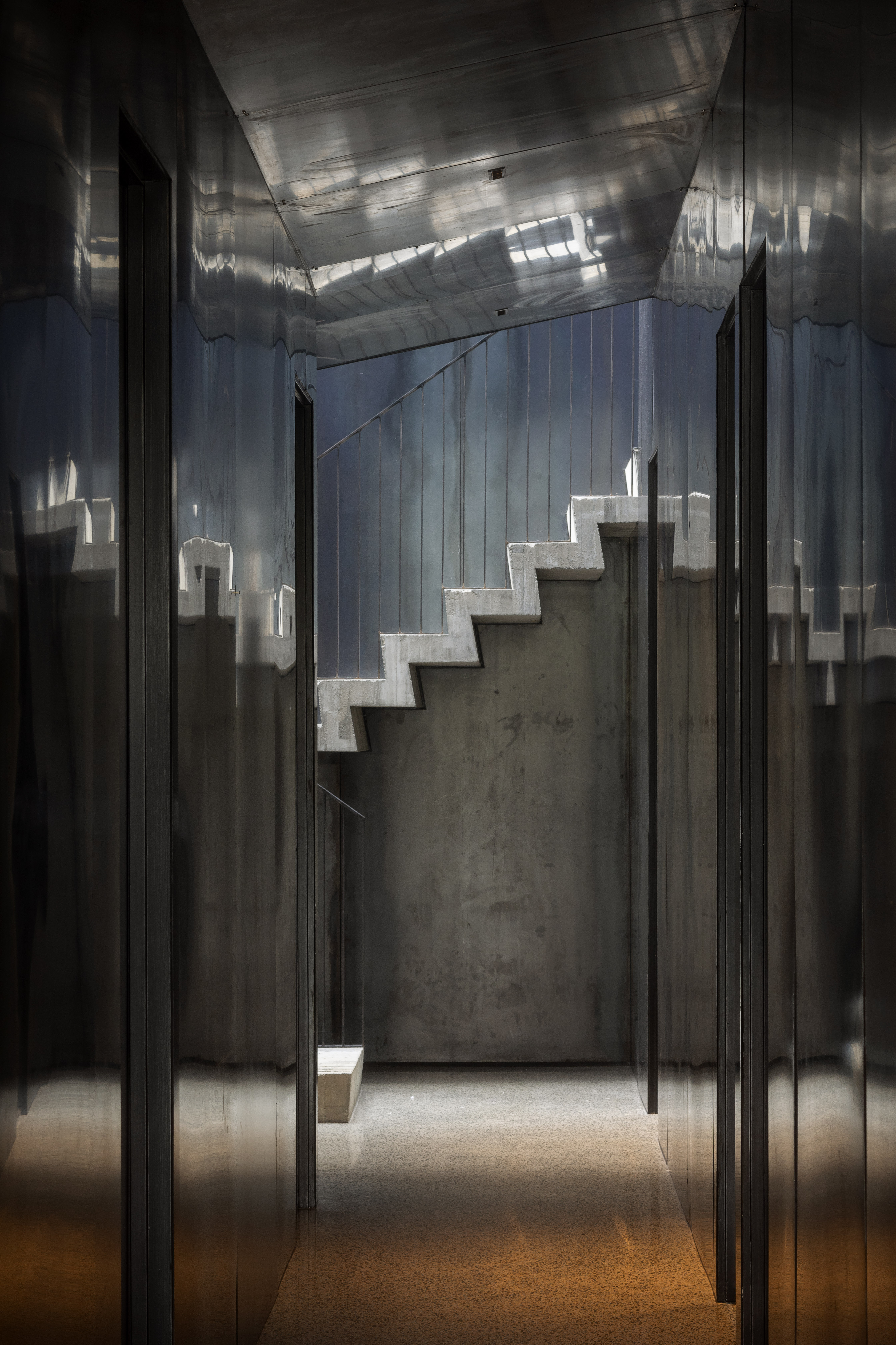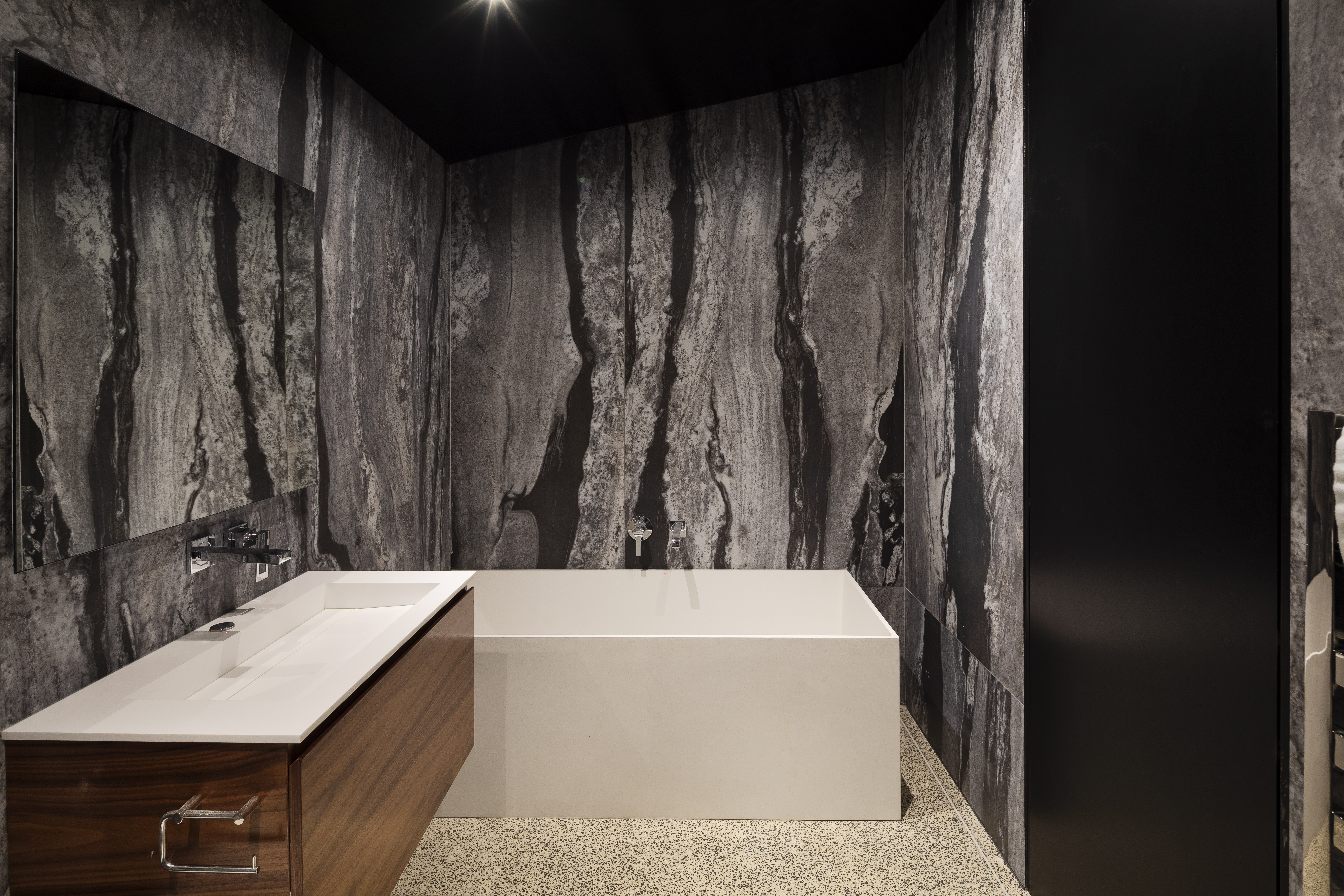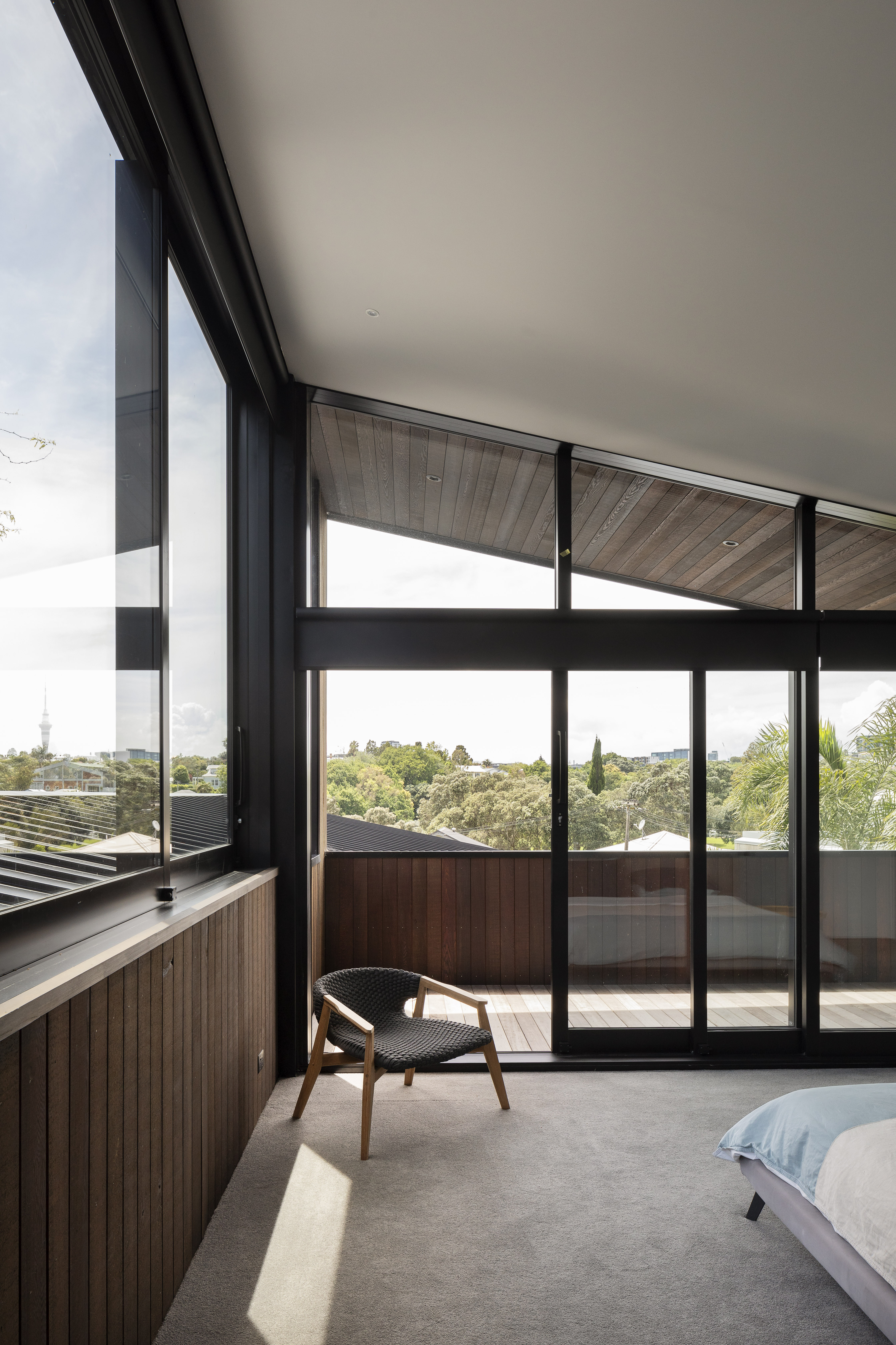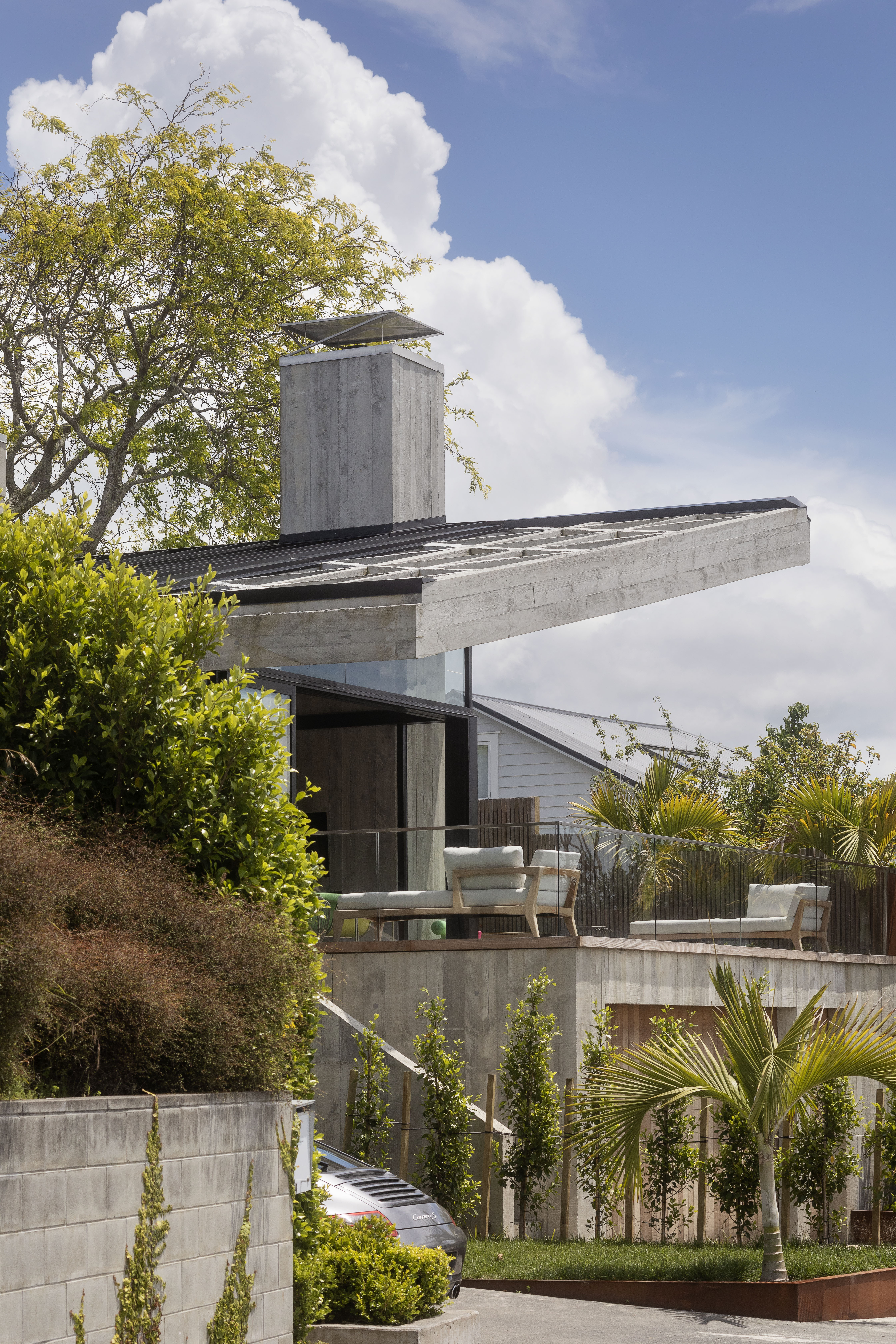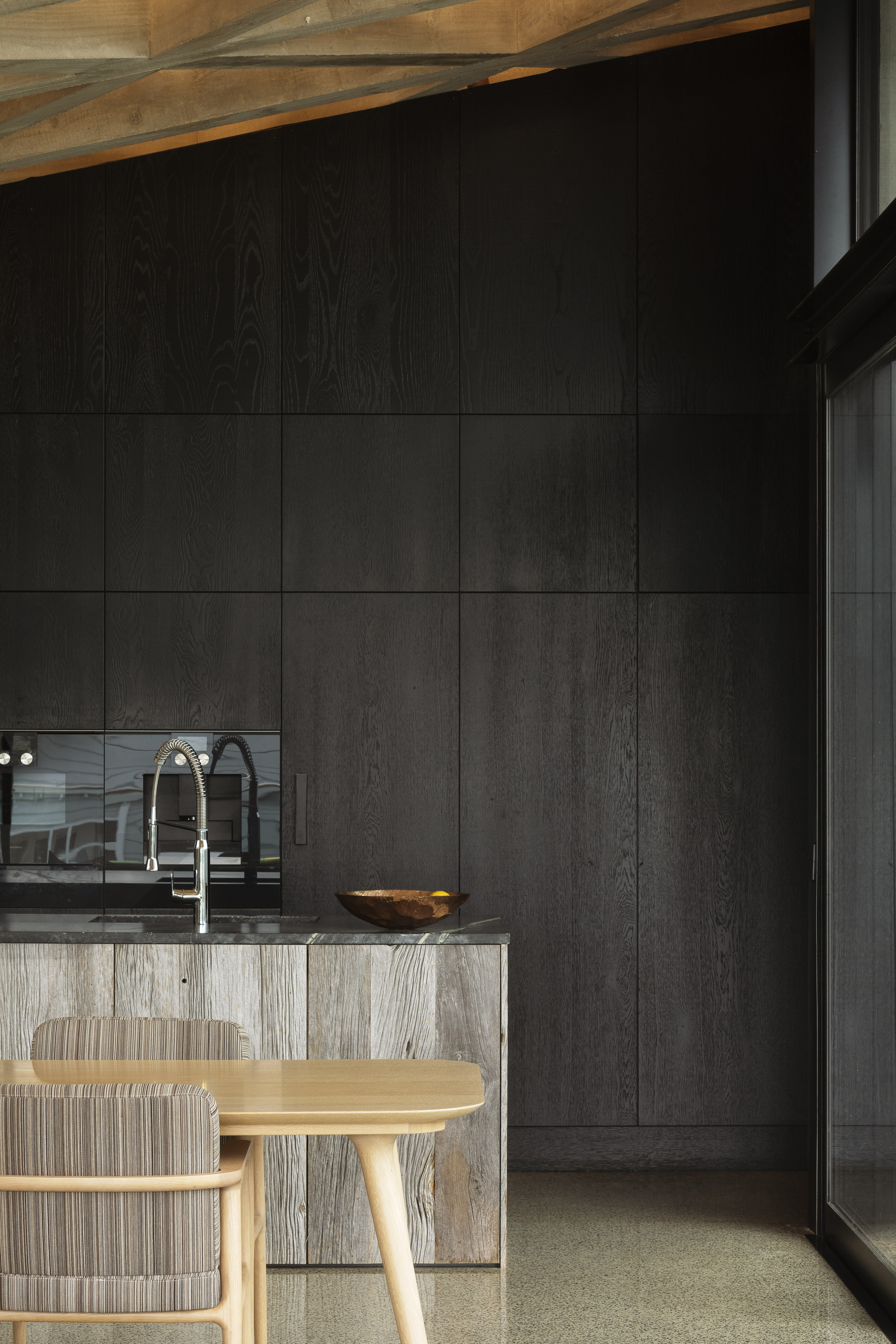 “Primitive but poetic” is how Jack McKinney describes the house he designed for a builder friend who wanted to do things with concrete. That barely starts to cover it. The Diagrid House is dominated, in every sense, by a 56-tonne concrete roof, formed as a grid of diagonals – a diagrid – in which the weight of the structure belies a thousand ever-changing possibilities, by day and by night, for the play and patterning of light. The main room opens to an expansive deck at front, with dark brooding kitchen at rear. The house itself is sunk back into the hillside, so that you walk back into it down a long, dark, gleaming corridor, with a staircase glimpsed at the furthest end. The bathrooms boast granite walls and the kids’ bedrooms have mezzanine sleeping platforms – one accessed only by a climbing wall. Upstairs, a master bedroom with a view over the nearby park reveals a glorious command of light, space and geometry. It is, like the rest of the house, at once serene and triumphant. This is truly unique, next-level domestic architecture.