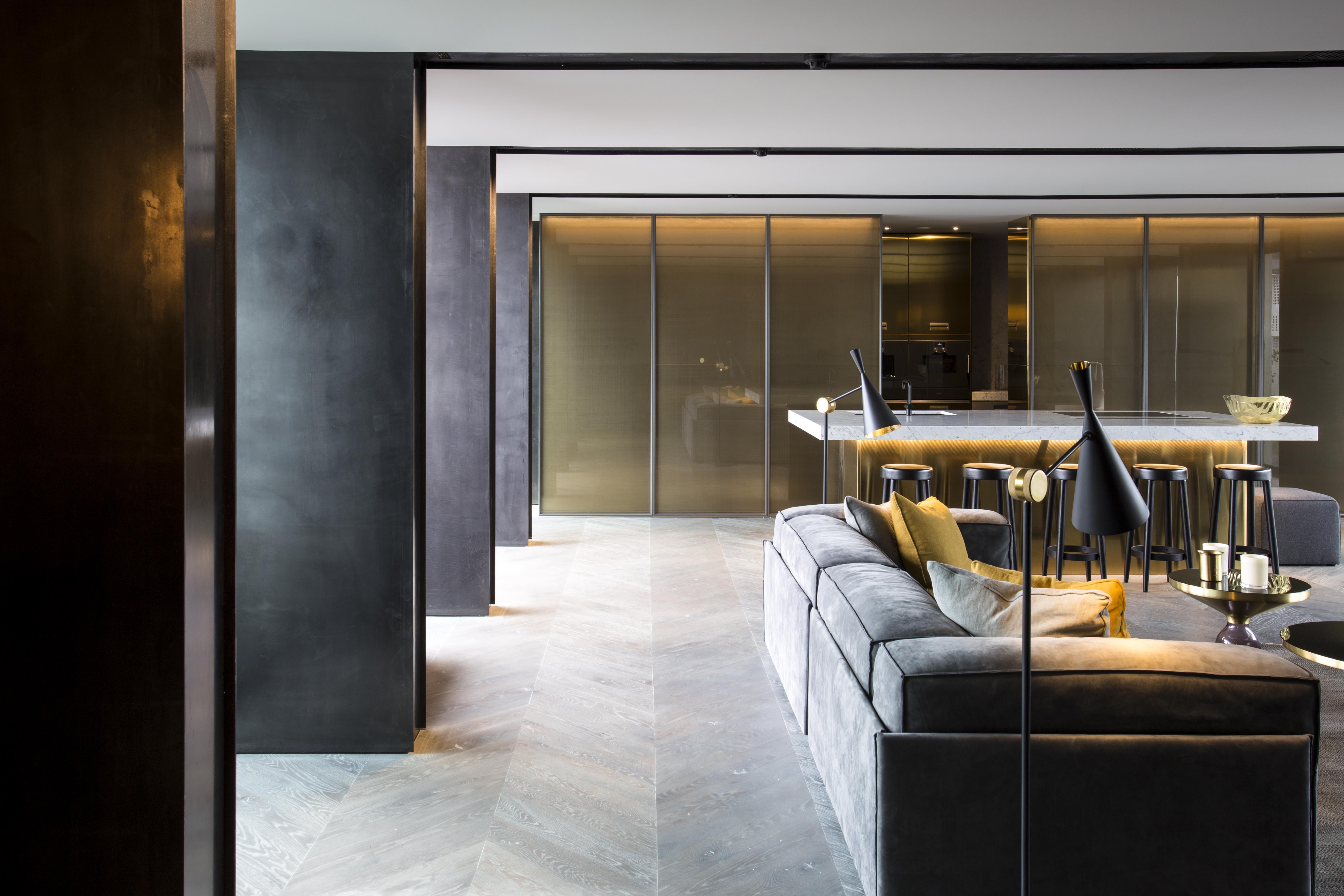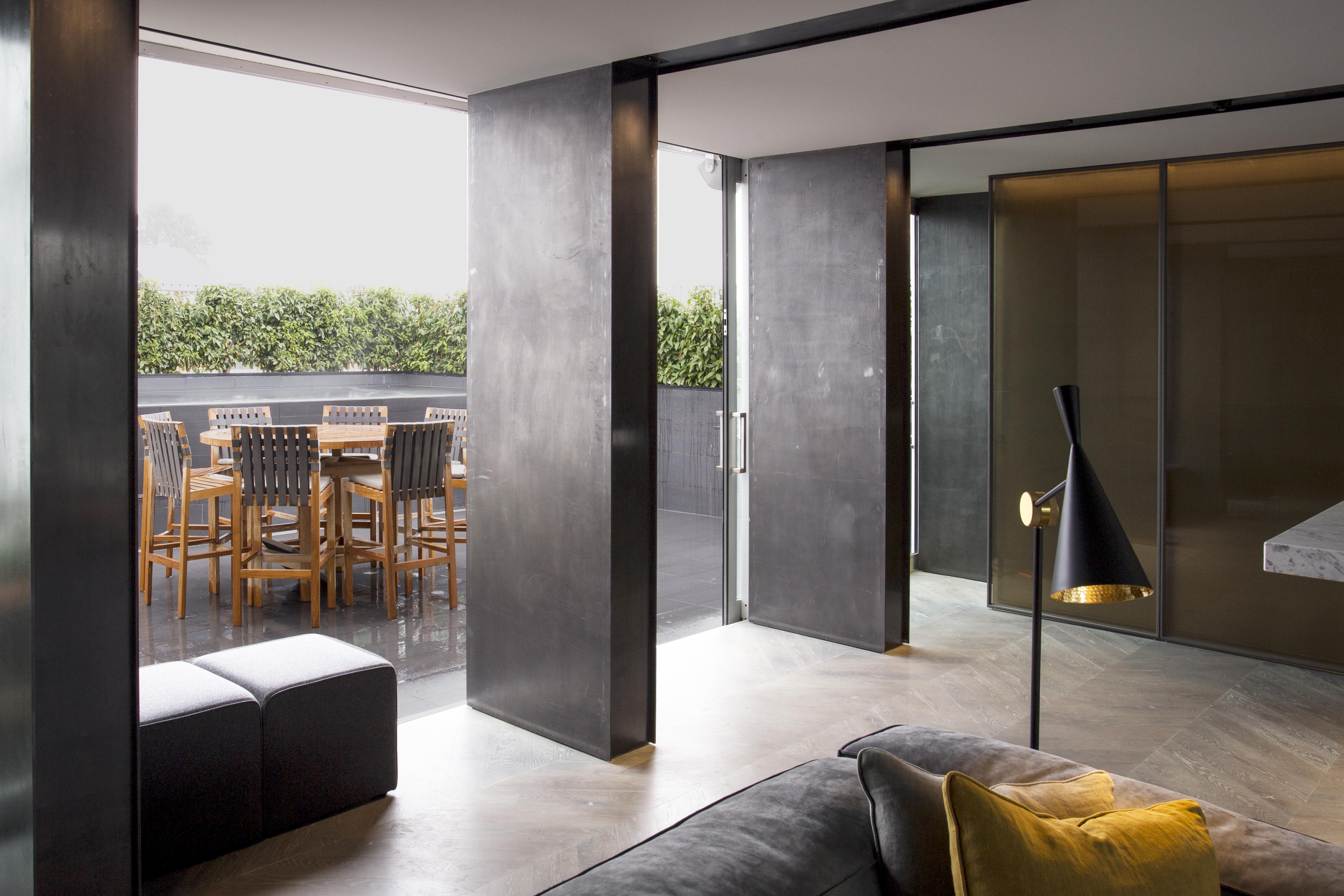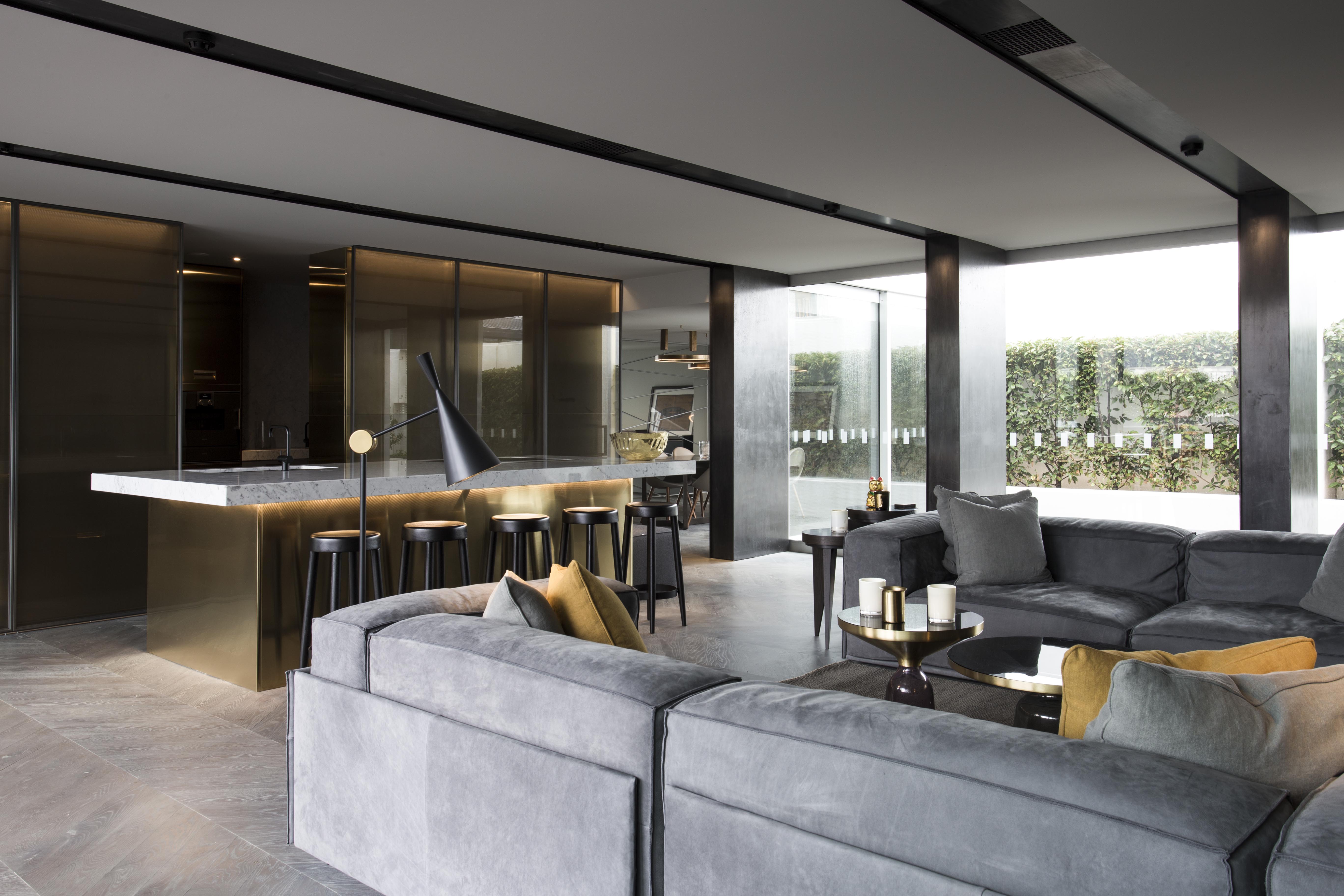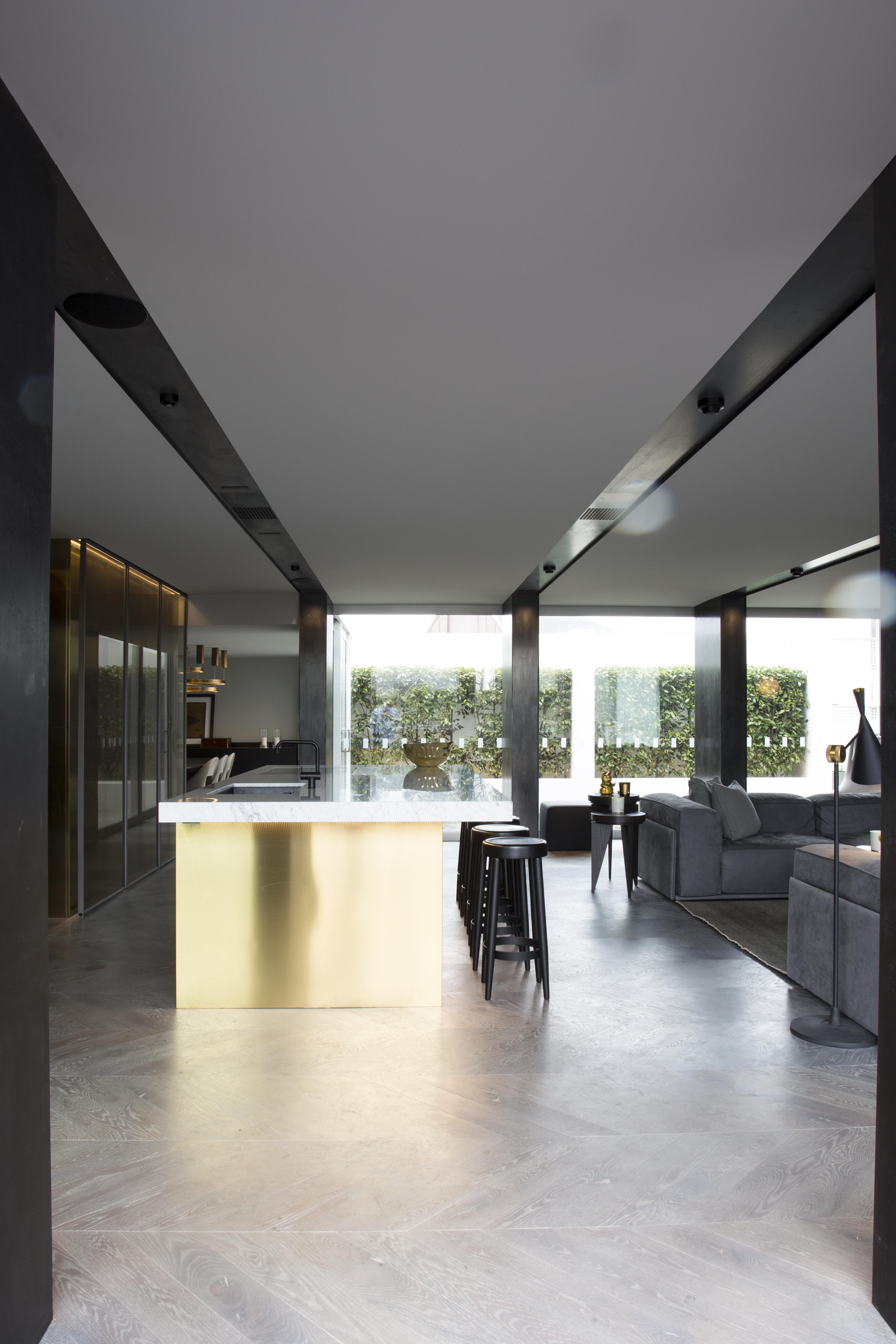 The dark and brooding interior of this luxurious inner-city bachelor pad is refined and sophisticated. A rich palette of materials, including polished brass and blackened steel, is beautifully detailed and constructed. Services such as lighting and air conditioning are carefully considered and integrated. The living space opens out onto a private terrace complete with a swimming pool that also acts as a water feature to drown out the noise of the traffic below. This is an oasis of calm in downtown Christchurch.