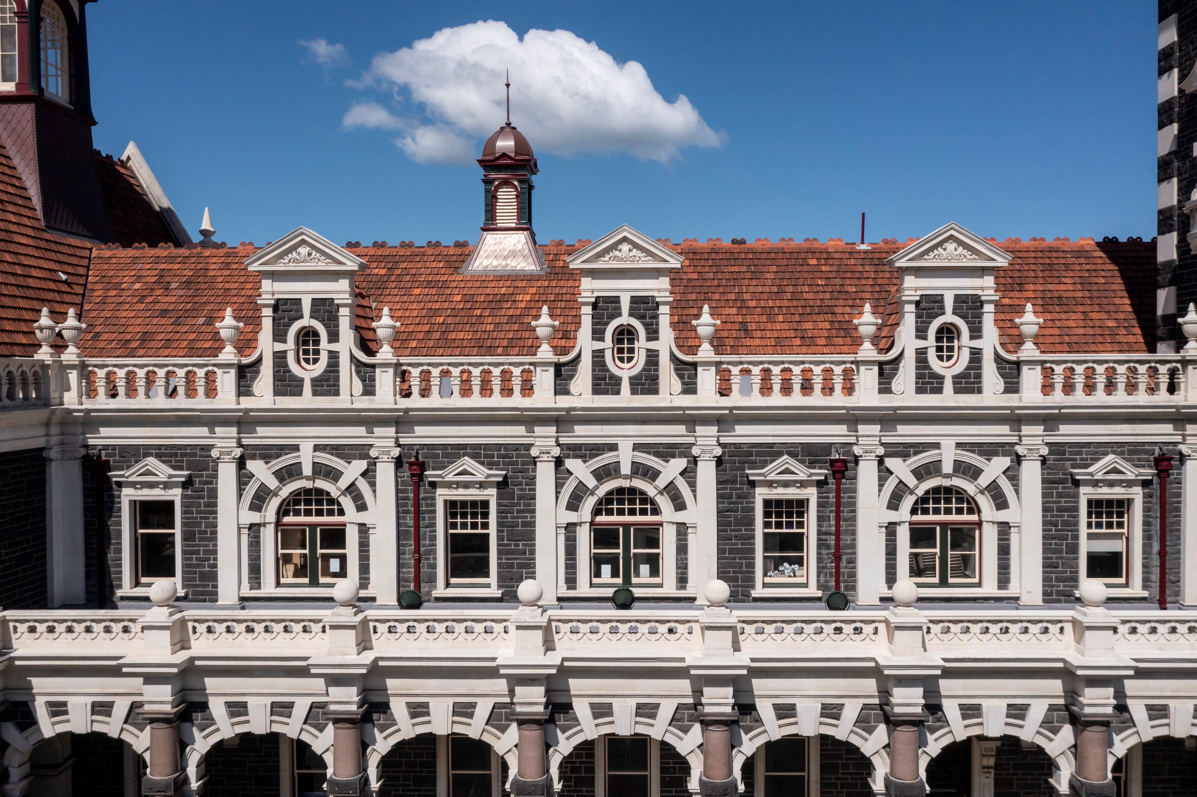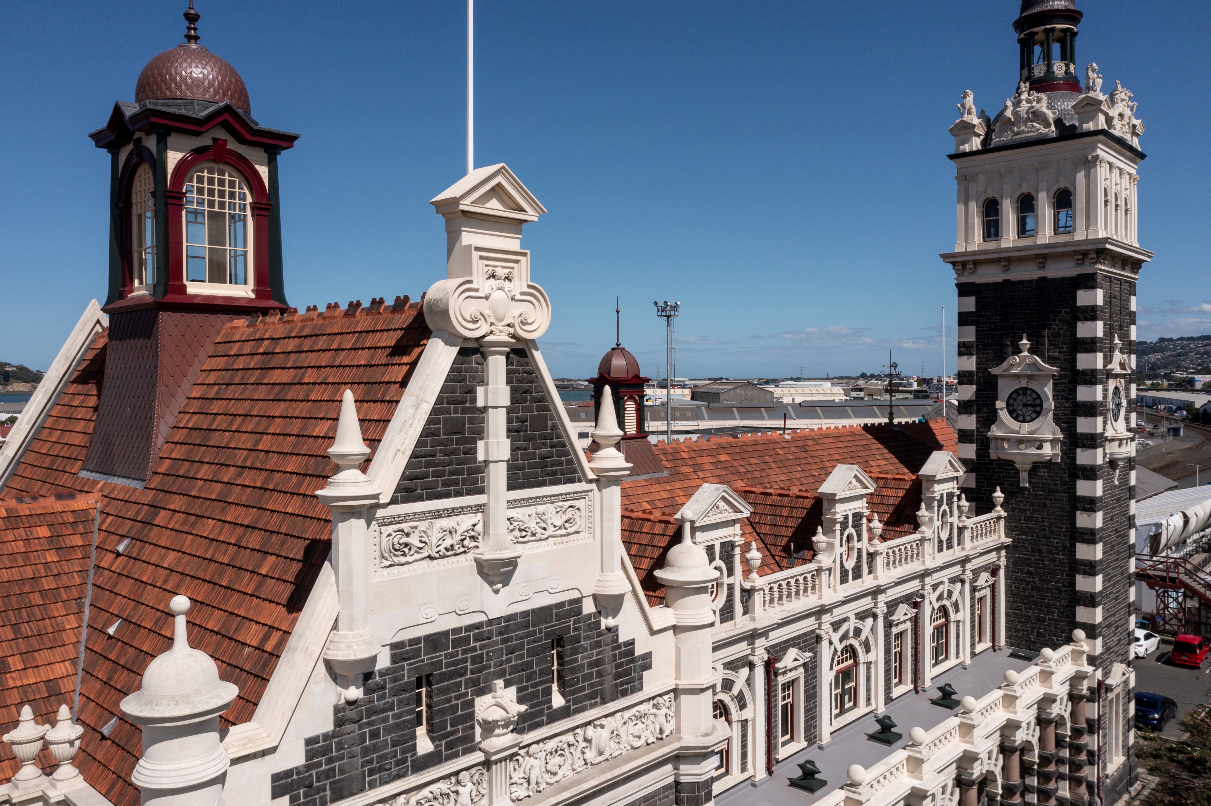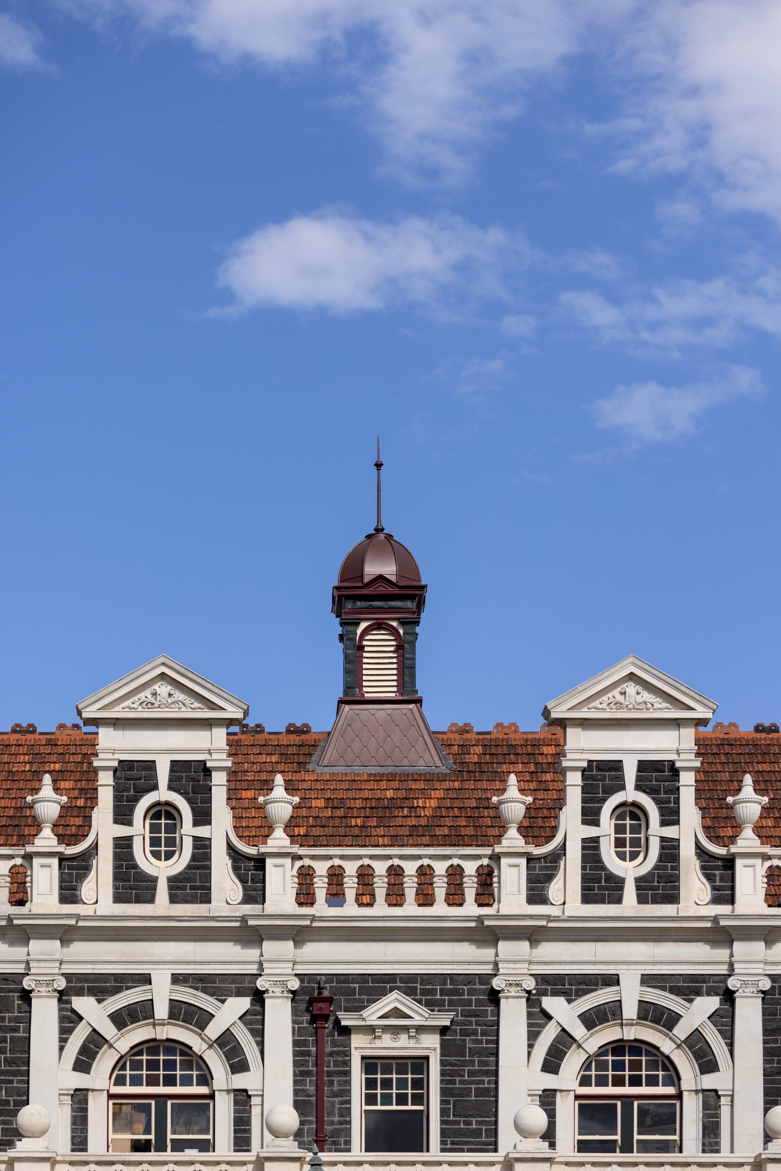 The existing heritage fabric of the main railway station has been enhanced with a back-to-the-future rebuild of the roofline. New copper tiles have been painstakingly created to replace the deteriorated painted fish-scale zinc tiles that were corroding in the central dome, while original copper tiles in the clocktower were dismantled and stripped of modern paint and meticulously refixed. Marseille tiles of the main roofs were removed, cleaned of a century of detritus and replaced, leaving the building looking better than new, but the same as always.
