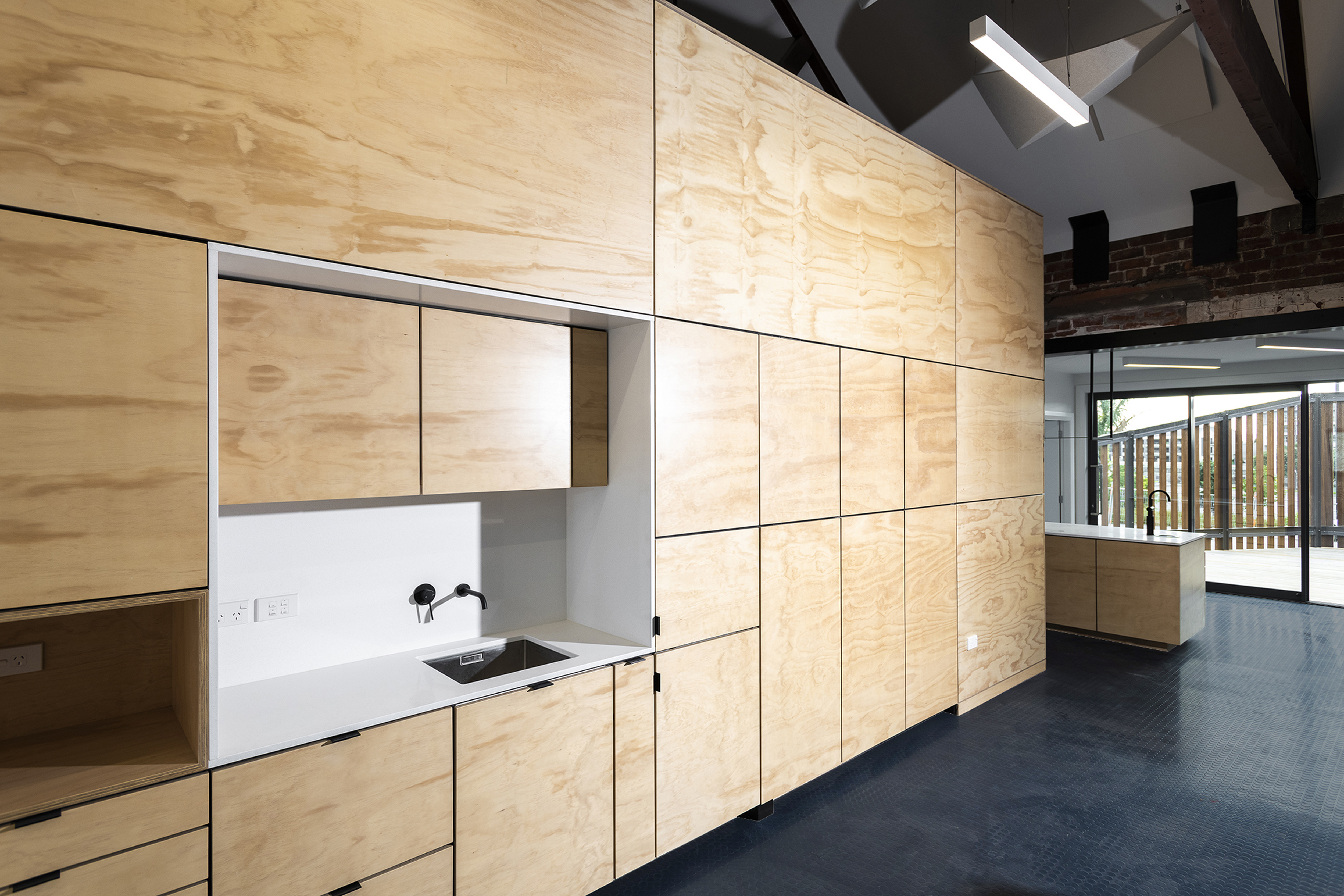 This refurbishment of a former Gisborne port building successfully responds to the client’s brief for a combined corporate office. Along with a clearly planned relocation of the building’s entry, the architect has intentionally created an internal typology using the raw materials that flow through the port to reinforce the client’s brand, while also providing clearly articulated junctions between old and new.