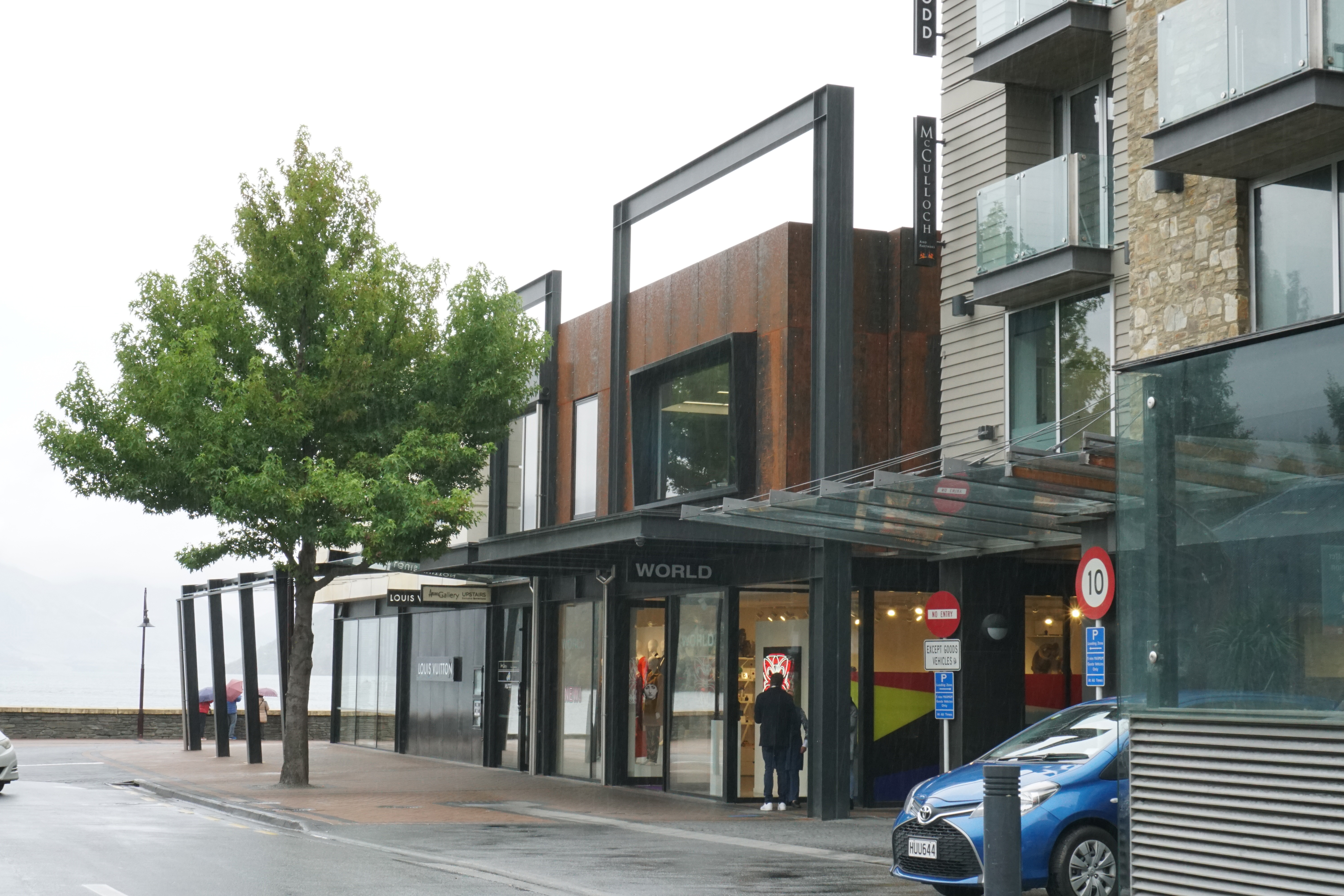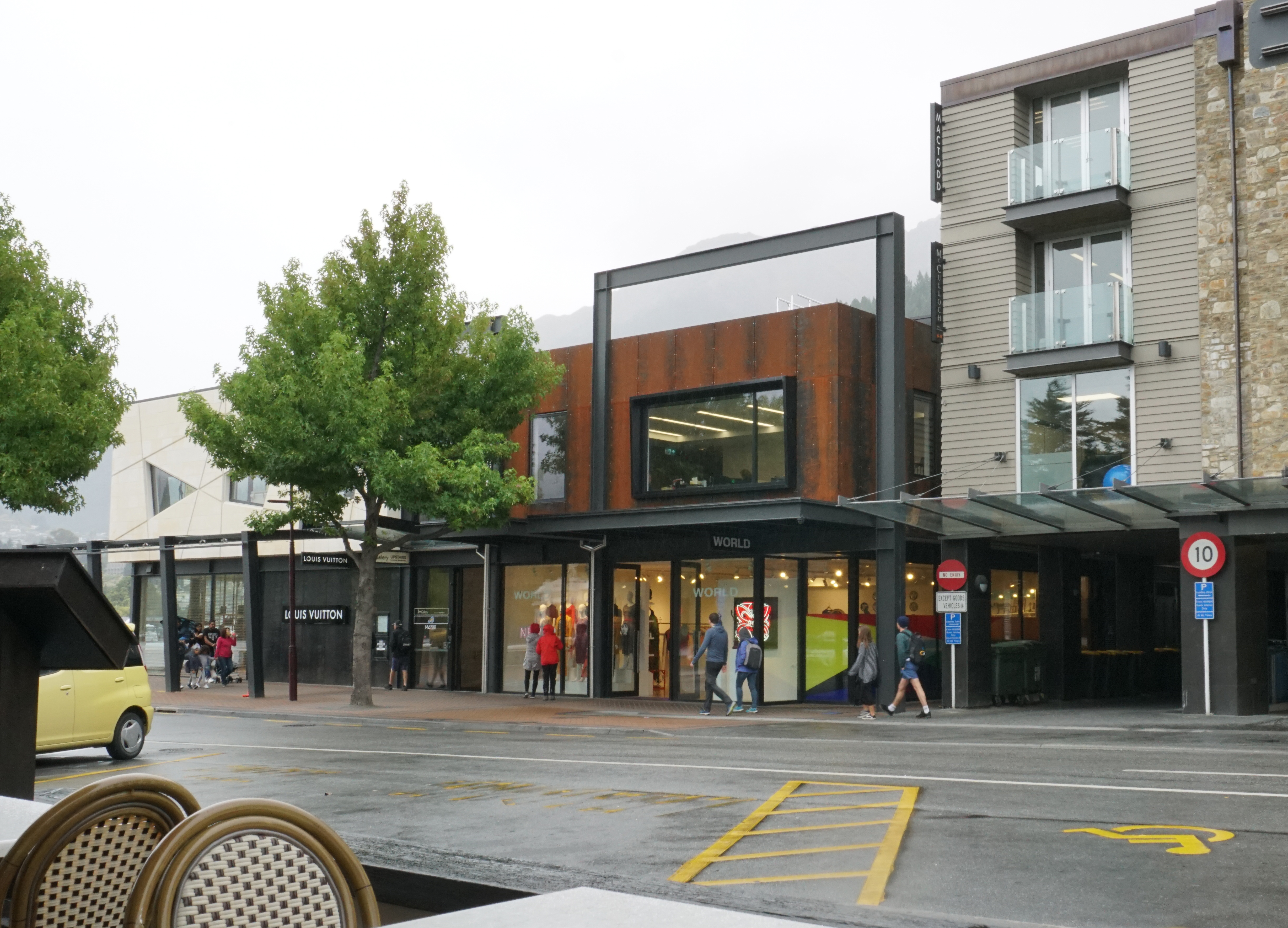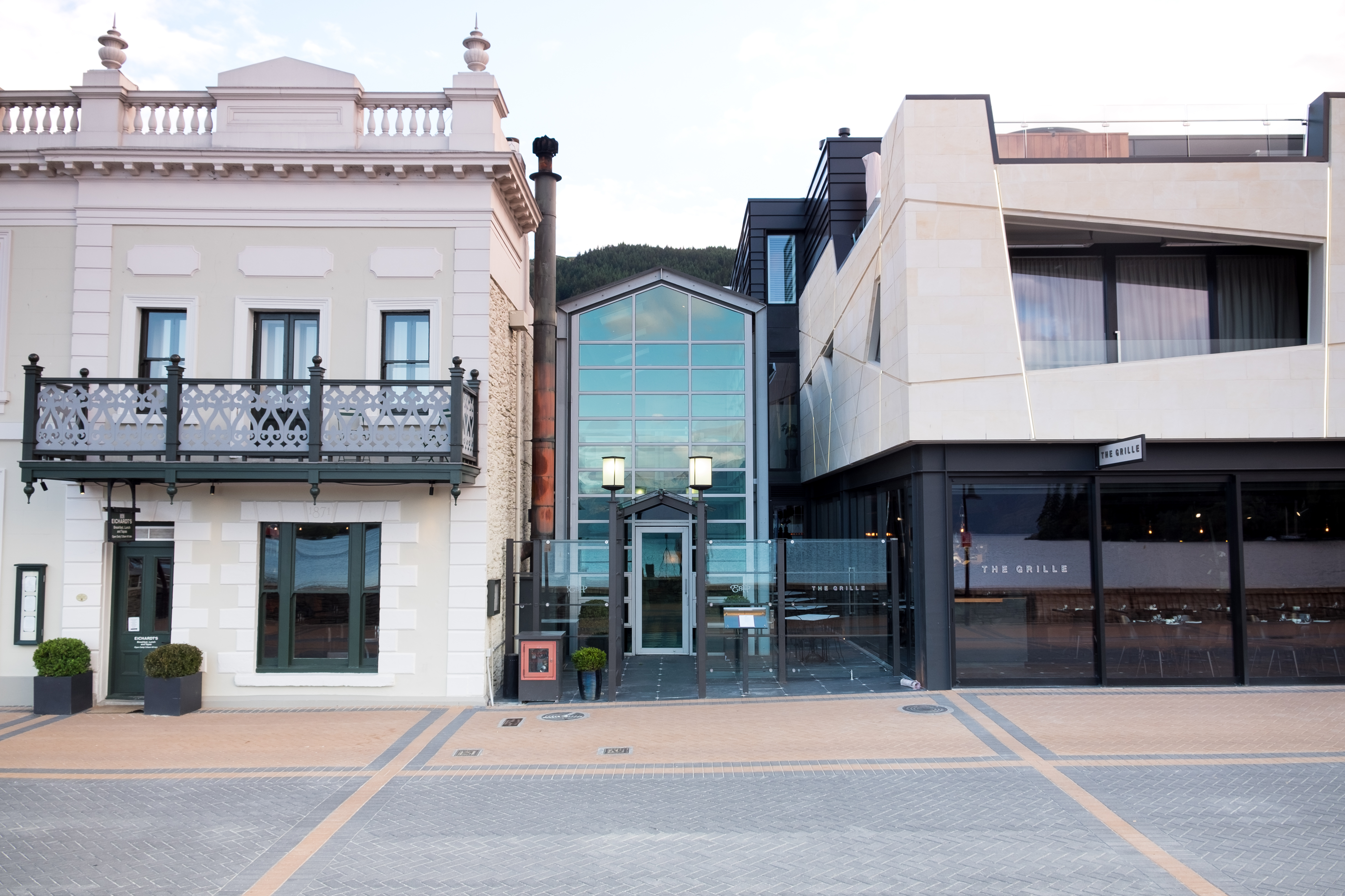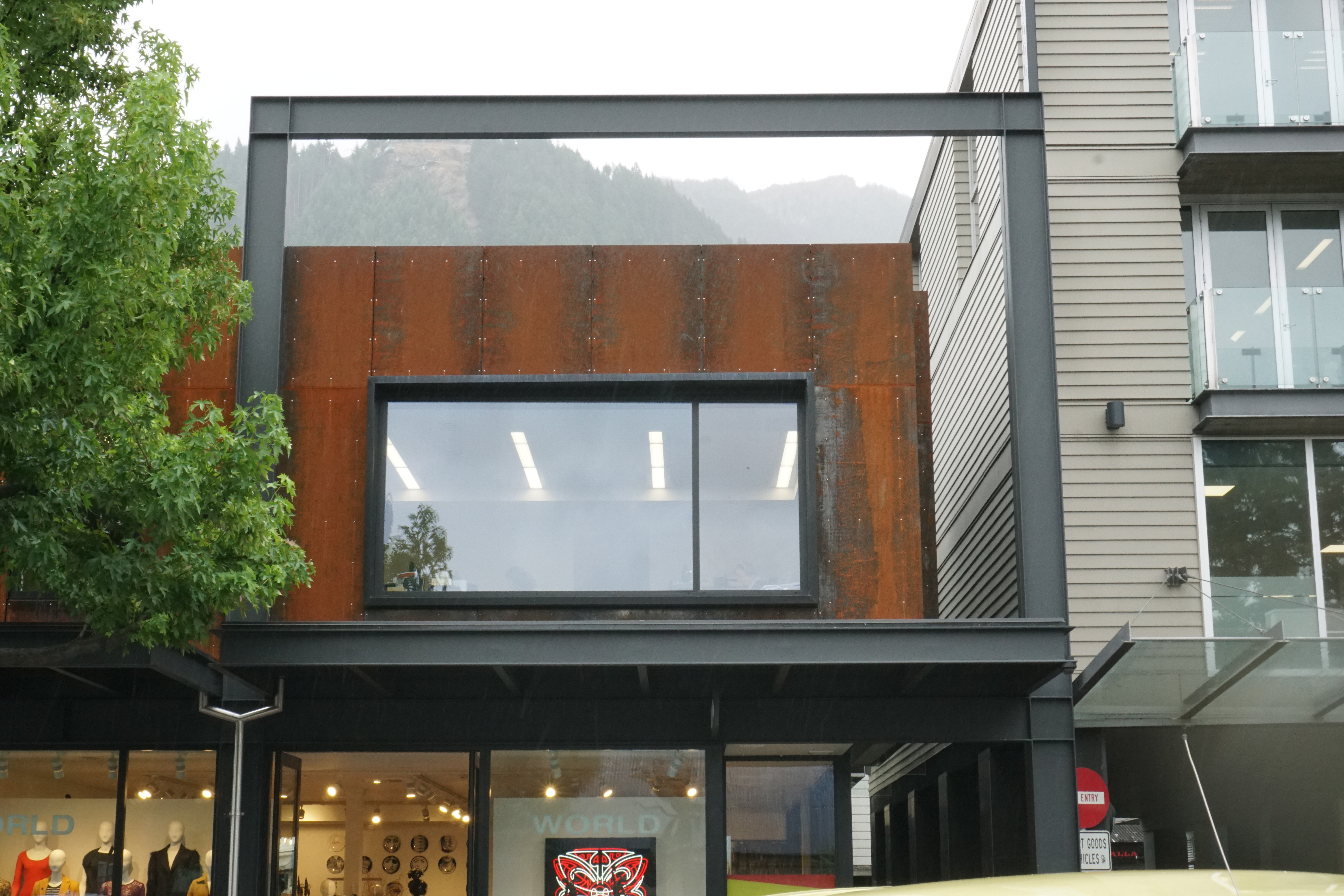 Designing a building to stand alongside a nineteenth-century heritage landmark on the edge of Lake Wakatipu is no mean feat. The success of this building lies in the reinterpretation of the adjacent heritage building, an understanding of mass, and the ‘shattered’ angles of the façade – a modern take on the ‘punched apertures’ of the older building. The architect has occupied the site to the limit of the boundaries and introduced a mass of white-stone – in honour of heritage – that appears to hover above the more recessive black-steel and glass shop frontages that present to the street below. This refreshing approach is a contemporary salute to a cornerstone of local heritage.