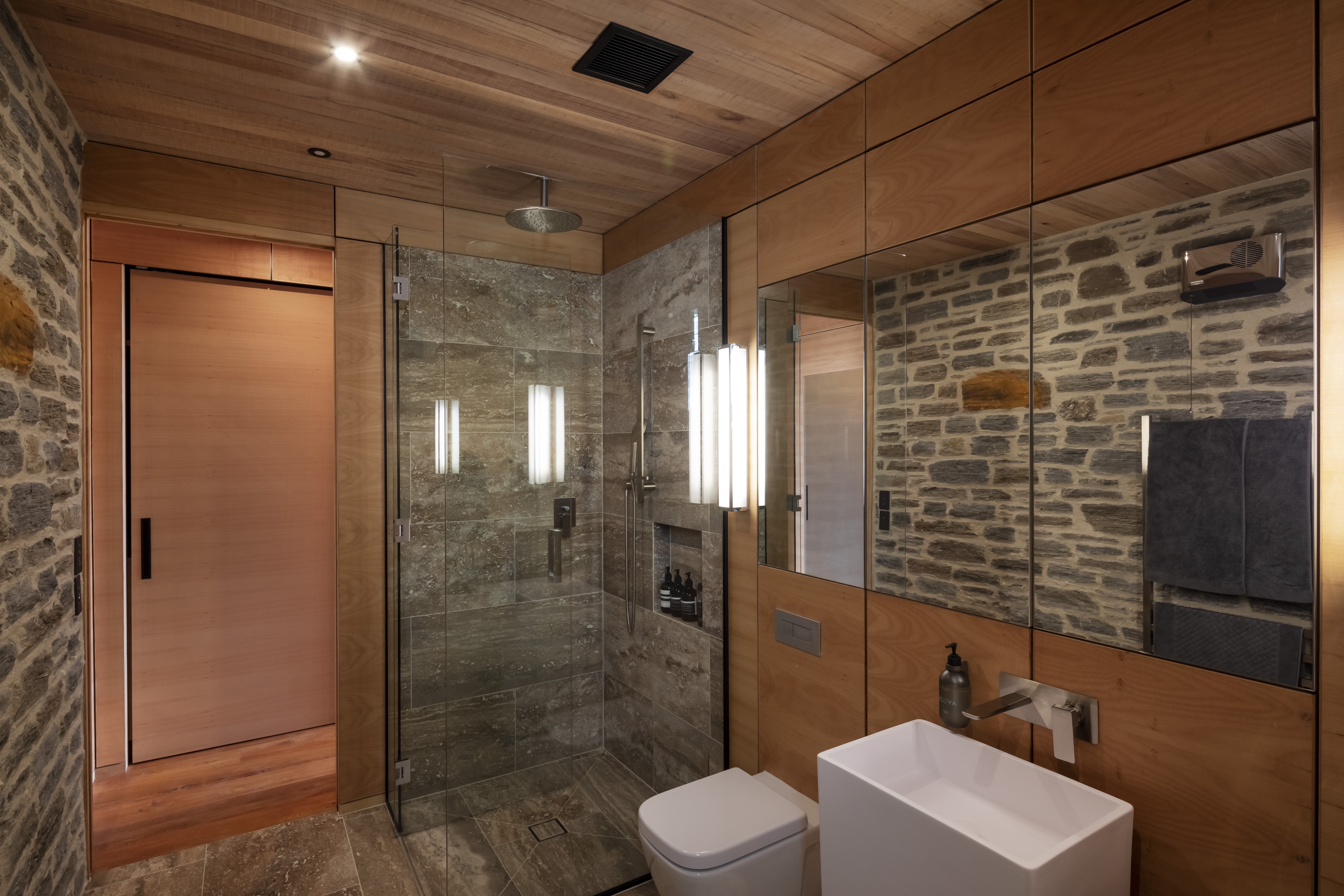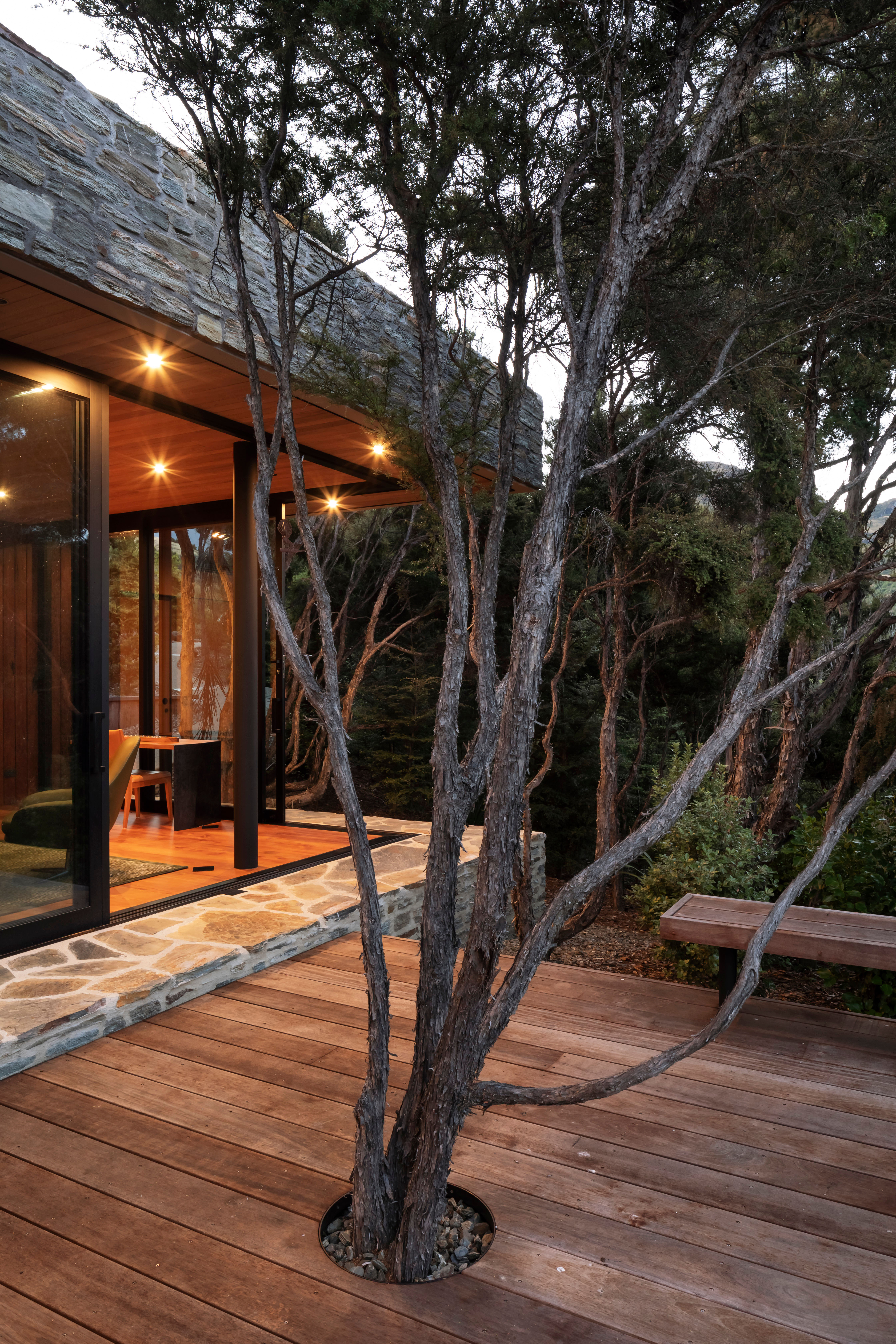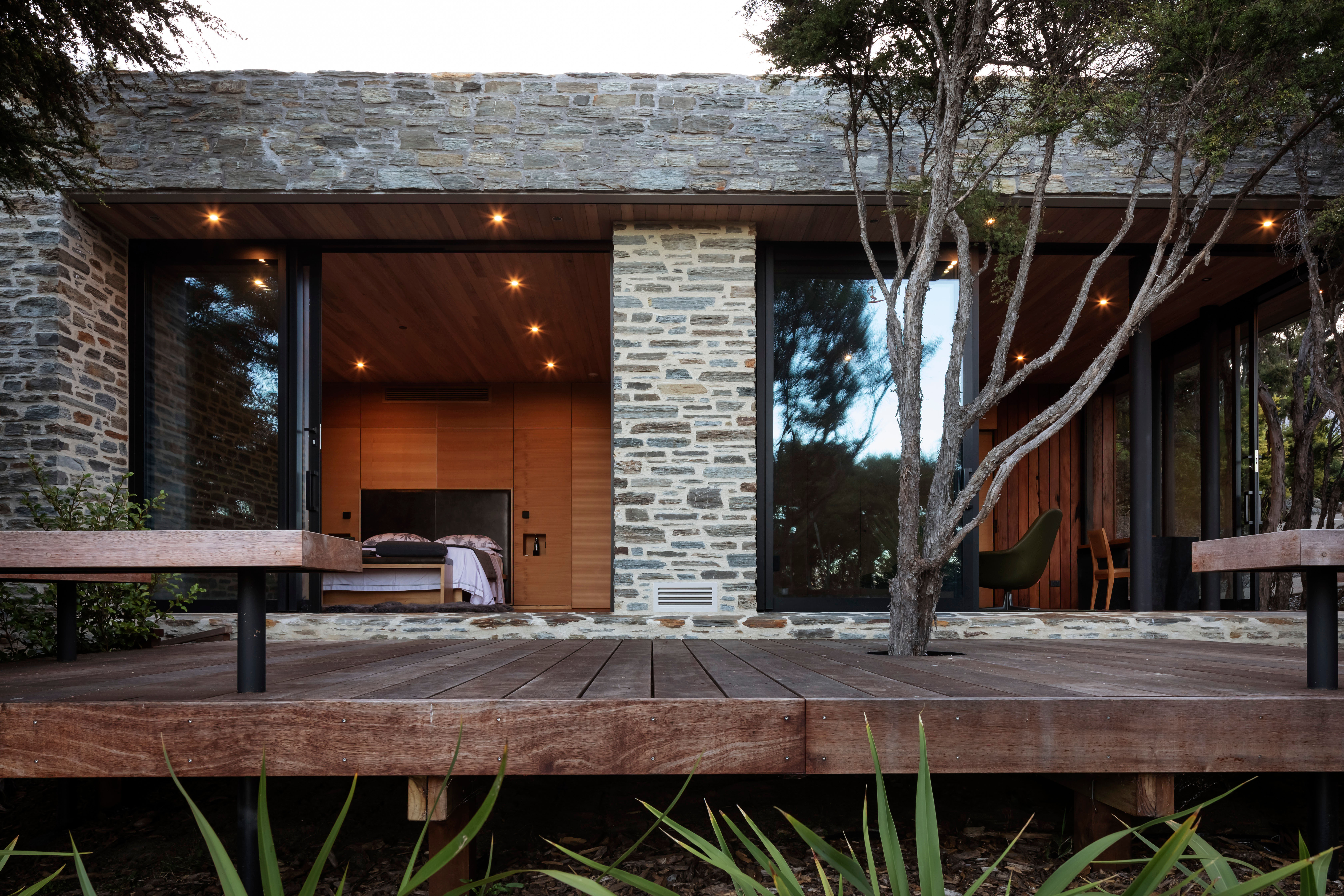 A spectacular yet modest intervention on the landscape. The architect provided a plan with expert manipulation of small spaces, allowances for daylight, and a thoughtful use of materials. Heavy weight masonry walls and detailing anchor the form, and provide privacy from the main house, that then give way to a glass façade that opens up to the bush and blurs the lines of inside to outside. The project kindles a feeling of being on a retreat and then realising you can live this way all year around.