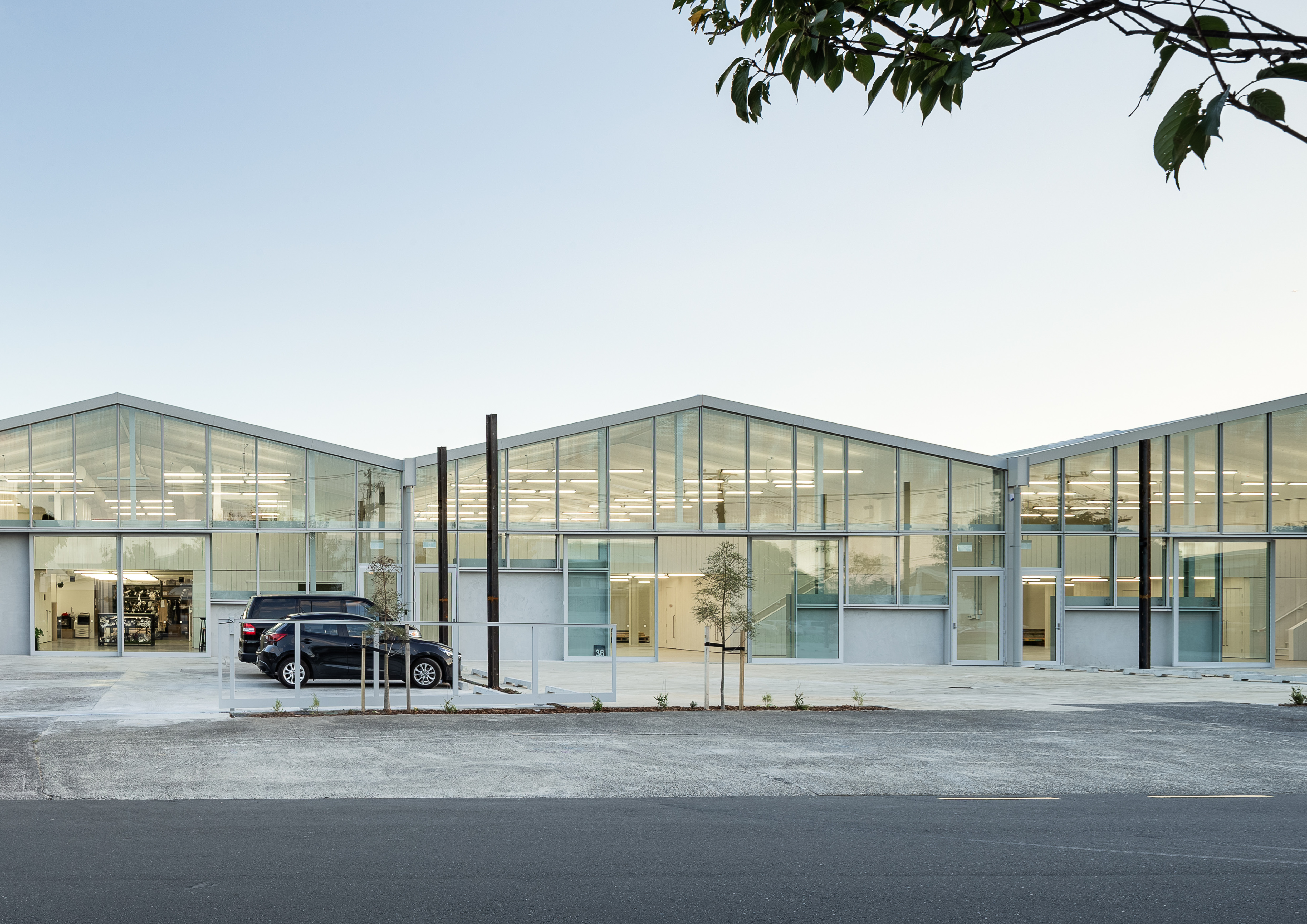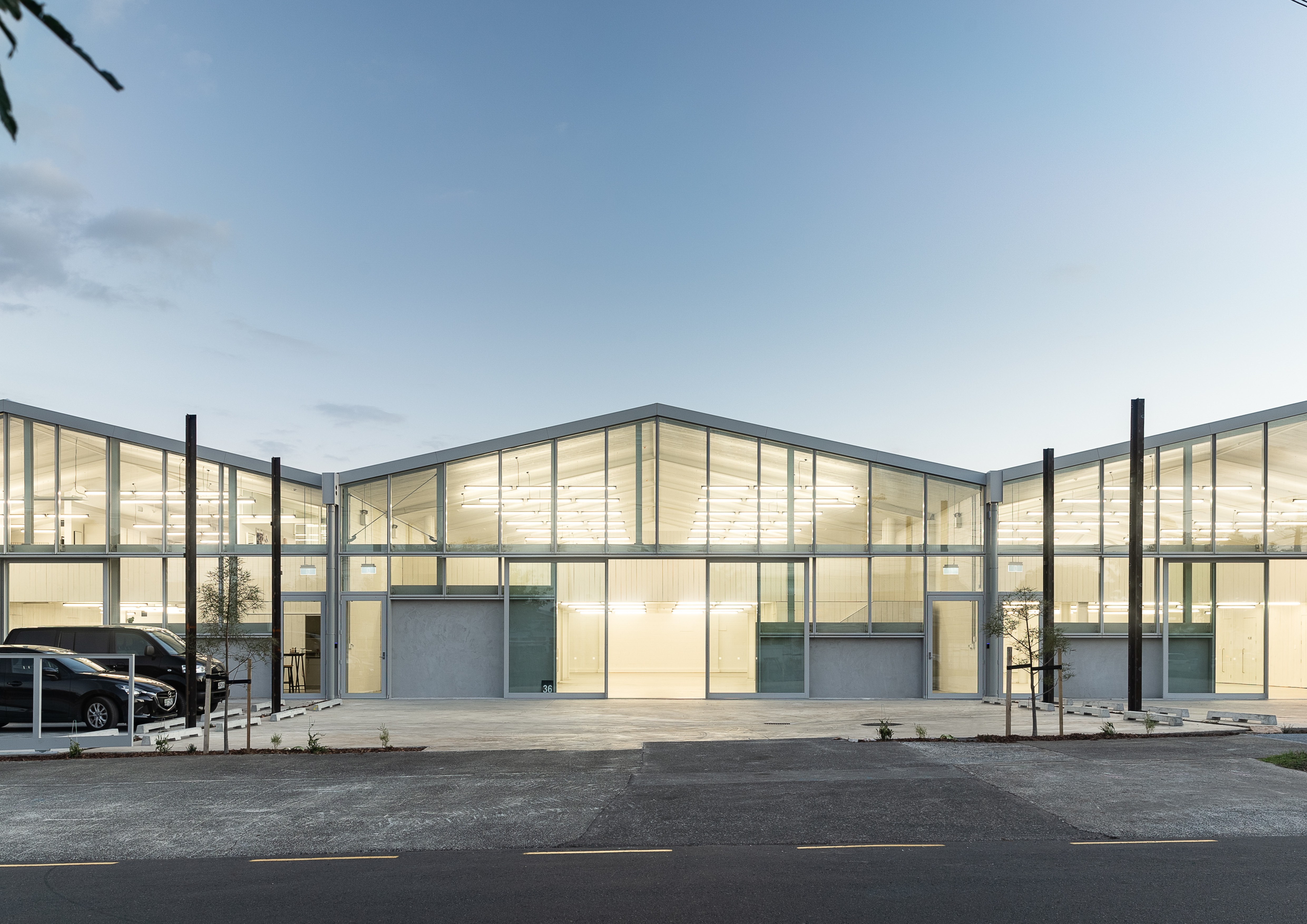 A silk purse from a sow’s ear: in this project, the architects saw the potential of a simple row of steel-trussed warehouses hiding behind a series of banal office sheds. The revealing of these spaces and addition of elegant façades composed of new glazing and existing concrete panels has resulted in desirable tenancies for multiple uses. Within the interior, mezzanines that stop short of the perimeter allow the generous scale of the original volume to be experienced. A carefully designed carparking forecourt offers opportunities for tenants to hold external events.