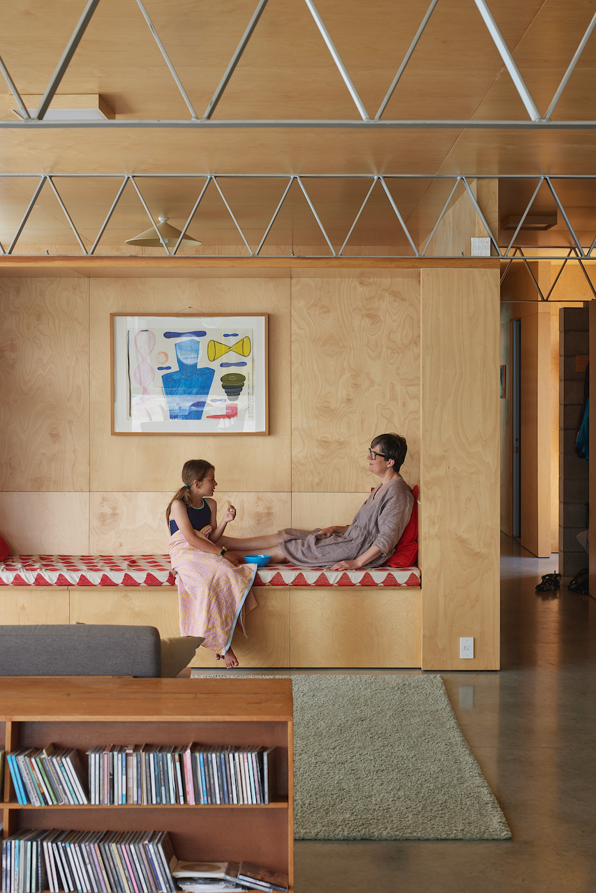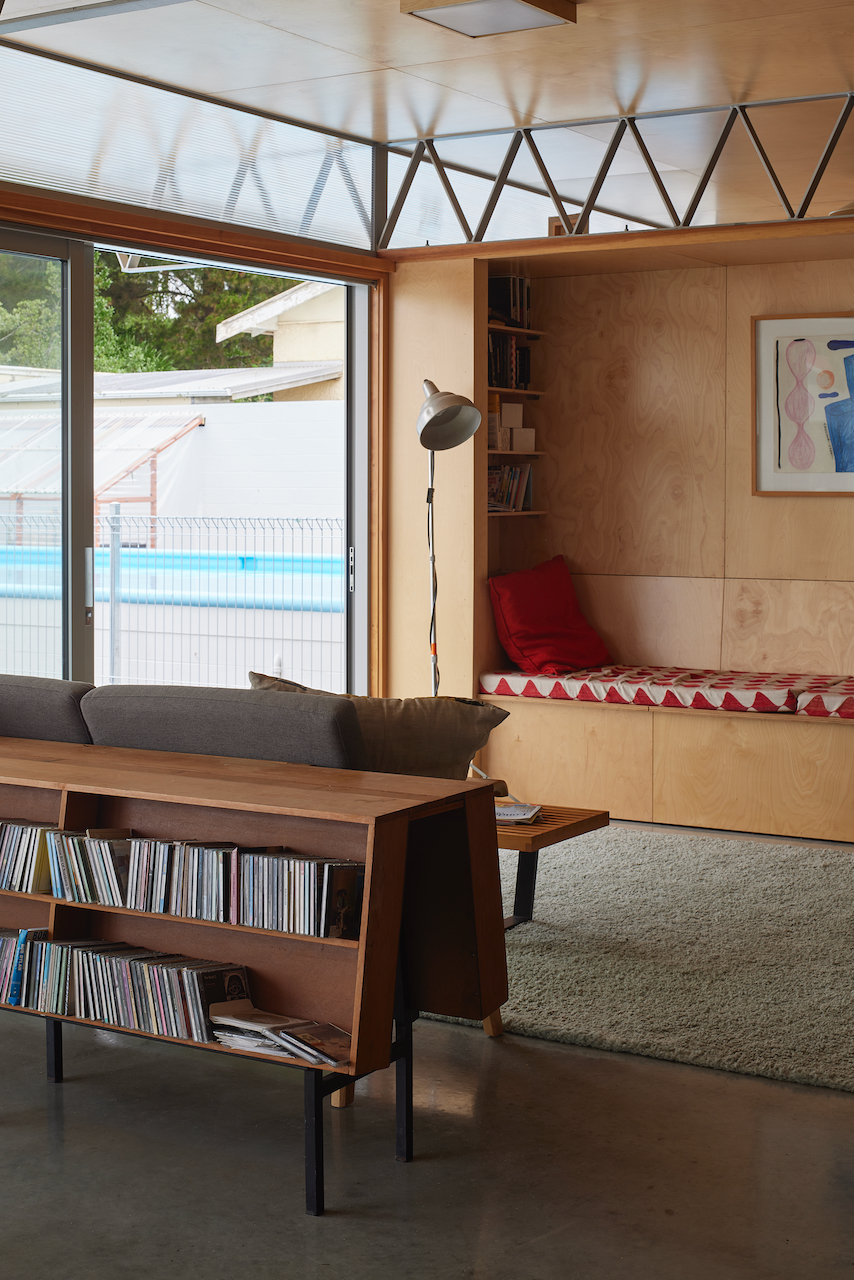An experimental site for a new family home. While modest in scale, this well-crafted home exudes a warmth of colour and internal materials and an elegance of geometric structural detailing. Wrapped and protected within an enclosed courtyard, the original pool gate house and entry conceal the suburban oasis of green within. Working hard to the site’s edges, this family home retains remnants of its aquatic past, which bring a smile to one’s face. This is a celebration of the vision of both client and architect, and how recreational spaces abandoned by some can be skillfully adapted and re-imagined by others.