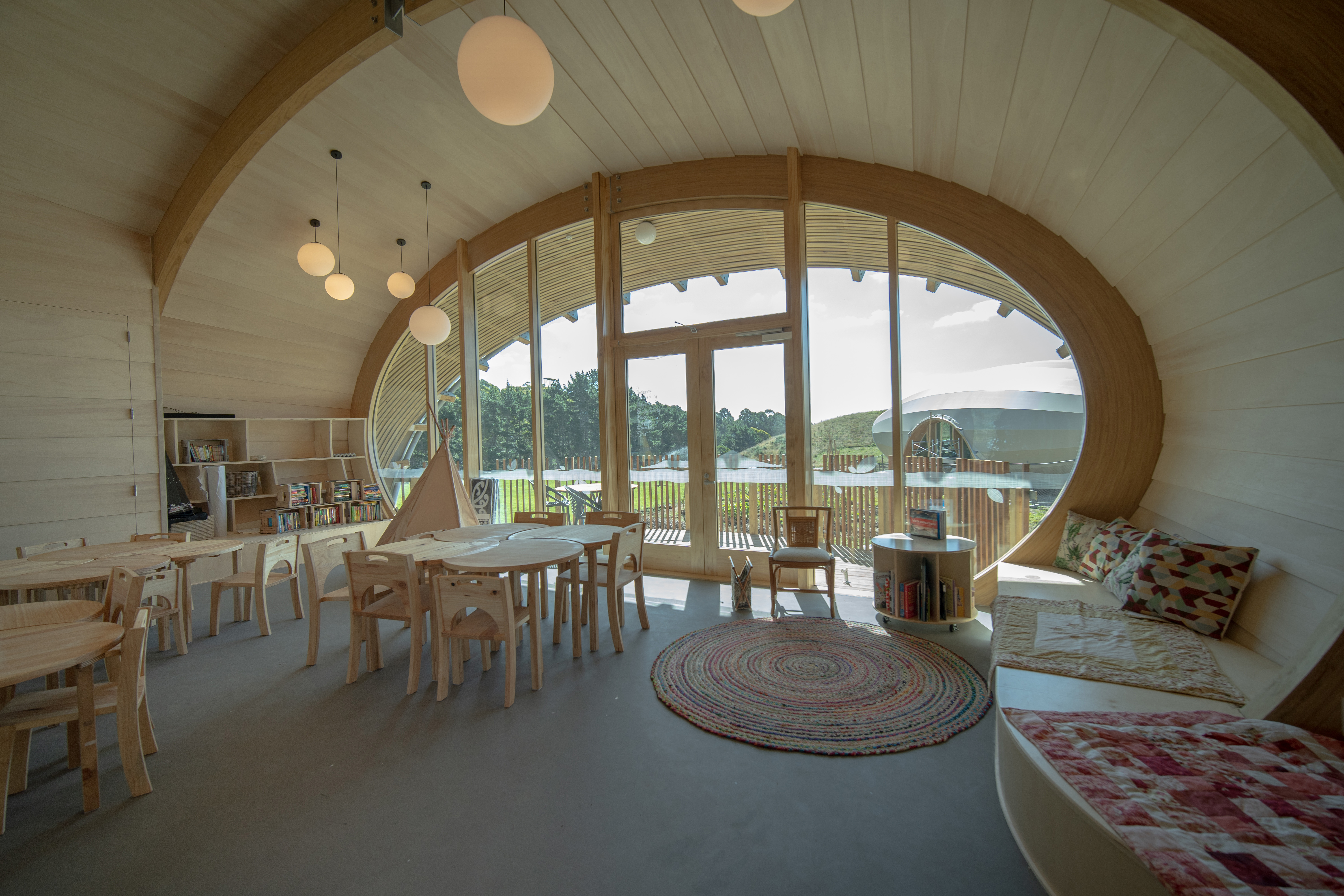 An extremely tight programme drove an extraordinary collaborative effort between client, architect, structural engineer and the local construction industry. Necessity was the mother of invention: design decisions were guided by what the industry could deliver and building information modelling and off-site fabrication was used to maximise delivery times and minimise material wastage. The quality of the Green School’s architecture achieved in just under a year, with three ‘waka’ classrooms and surrounding landscaping established on site, is impressive. The distinctive tensile fabric learning vessels were inspired by eel nets and provide the school with a clearly identifiable brand. Inside, the use of timber, and palpable sense of craft, impart a soothing quality to the single learning space. It will be interesting to see how this school develops and how the ‘waka’ classrooms facilitate a brave new world of learning.