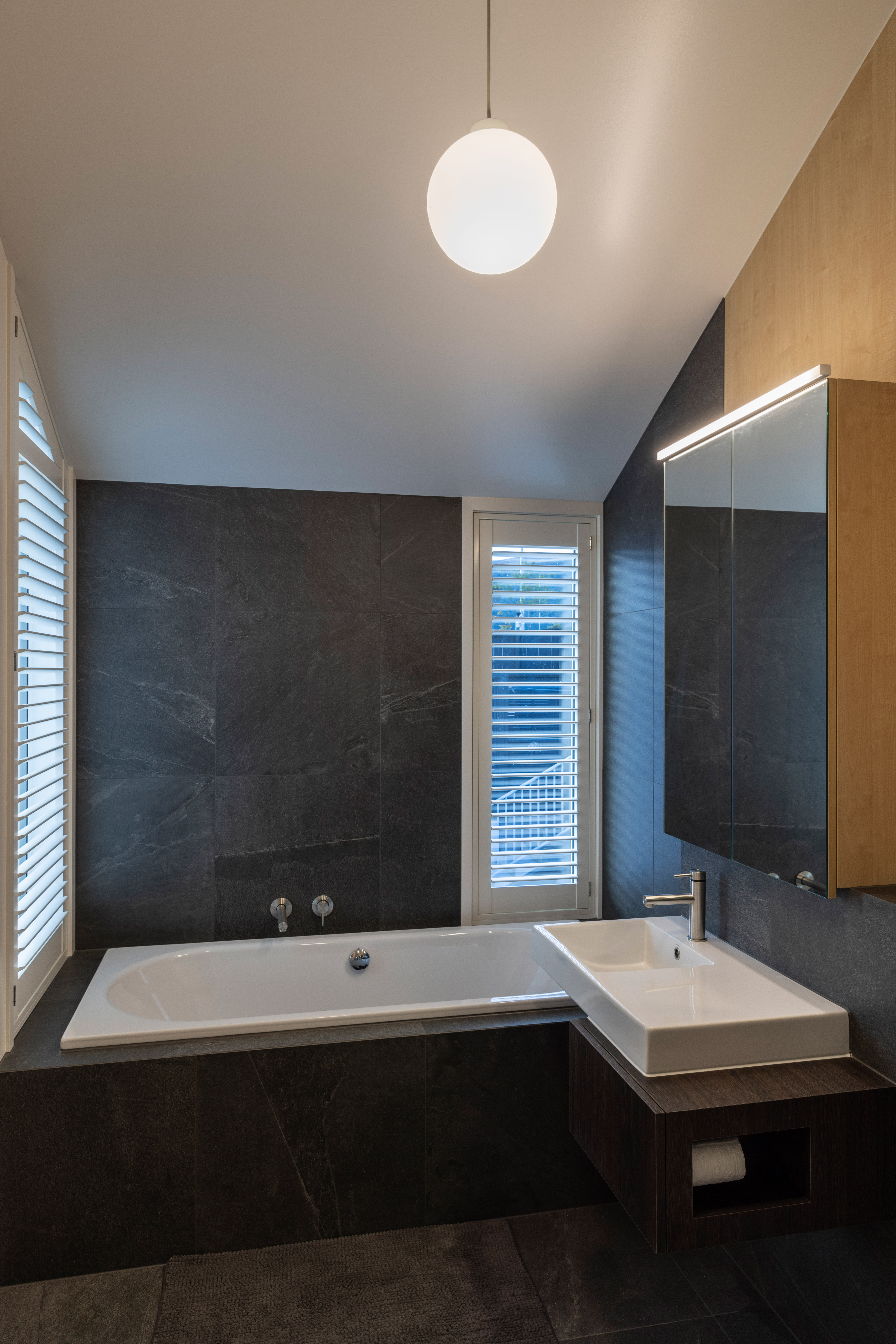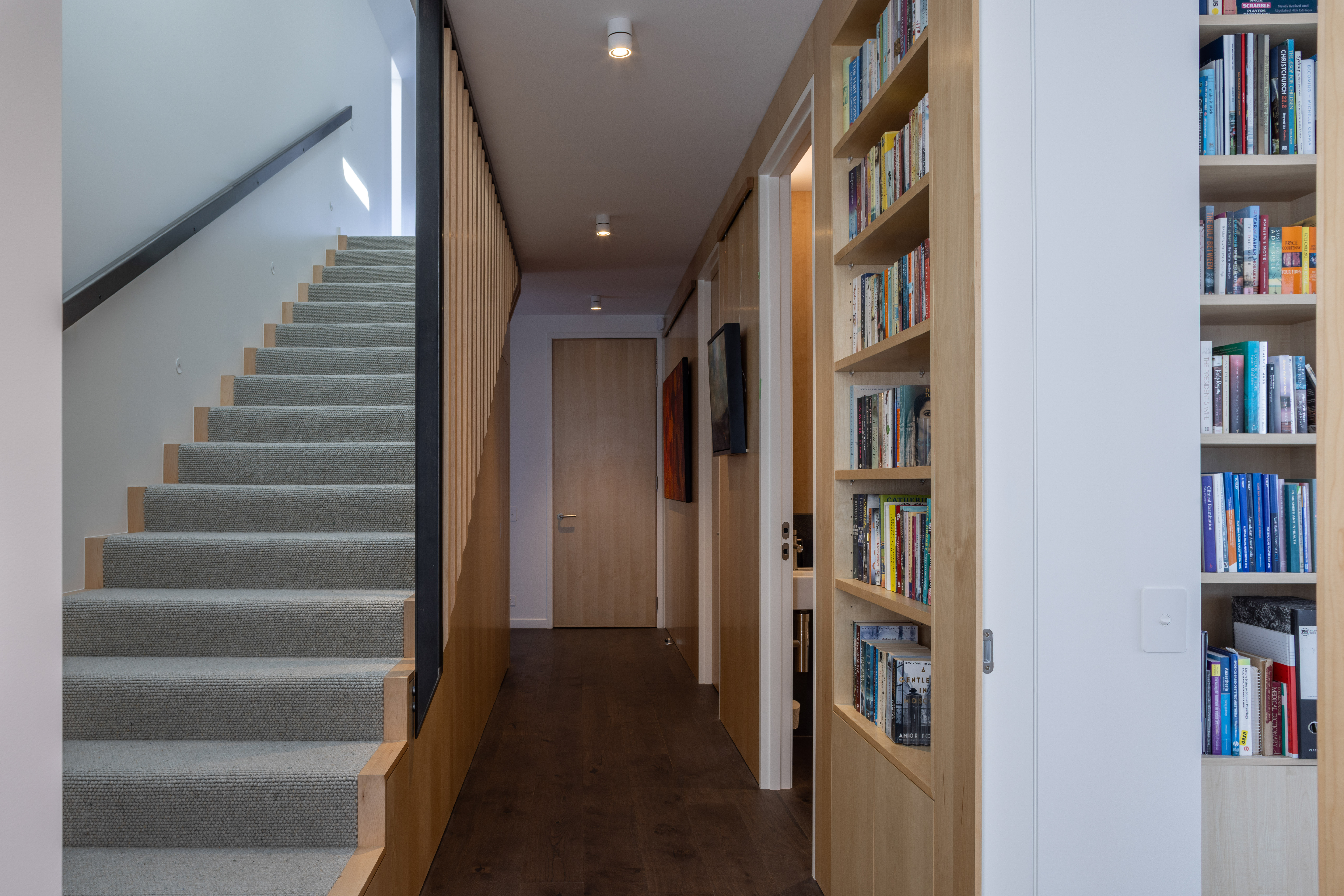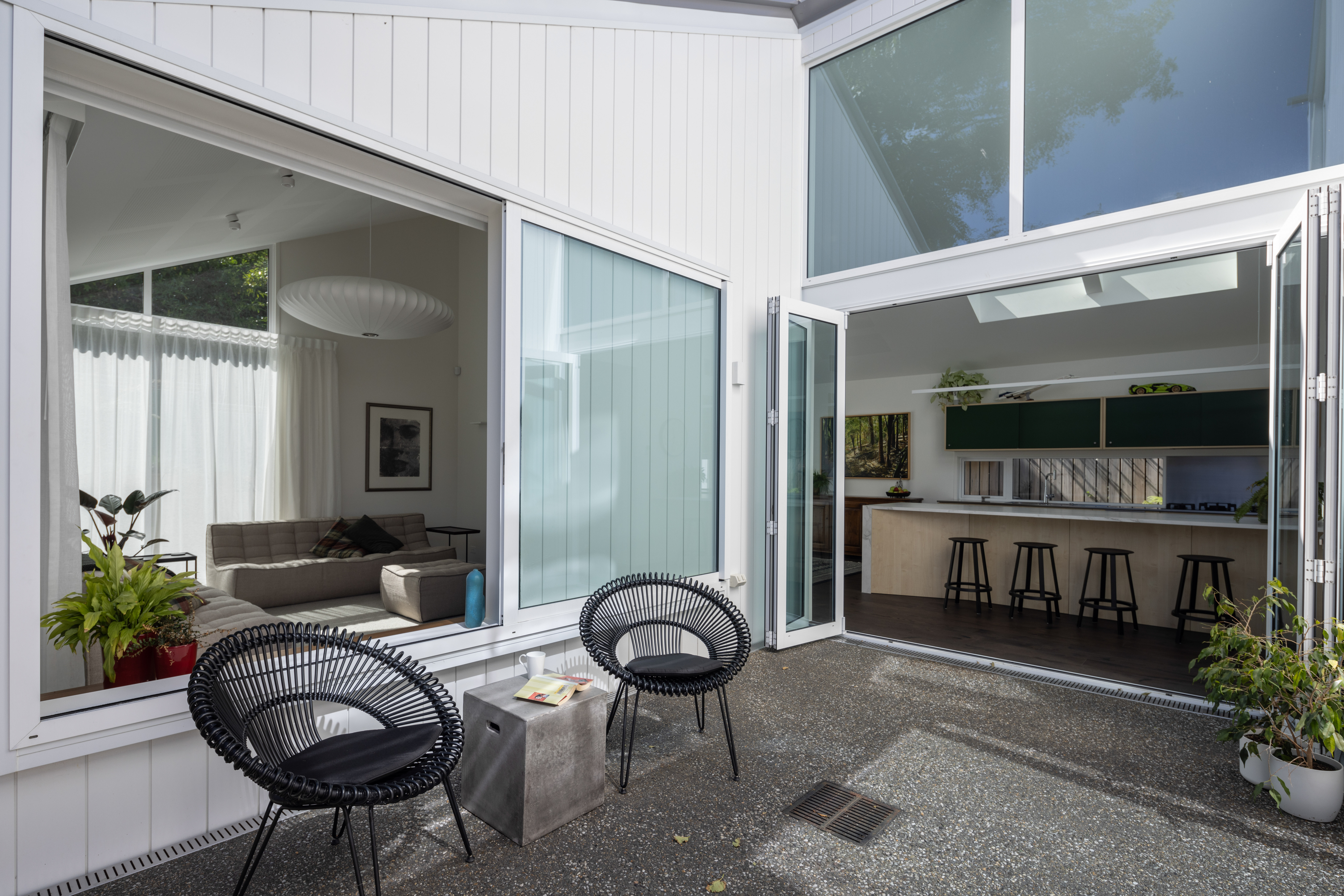 An exercise in white minimalism opens out to provide a series of delightful spaces dressed in a restrained colour palette. Privacy and transparency have been skilfully balanced. The plan makes great use of sunshine pouring into the rear of the site. And it is just the right size – not excessively large, nor uncomfortably small – catering perfectly to the client’s lifestyle. A beautiful canvas for their artwork.