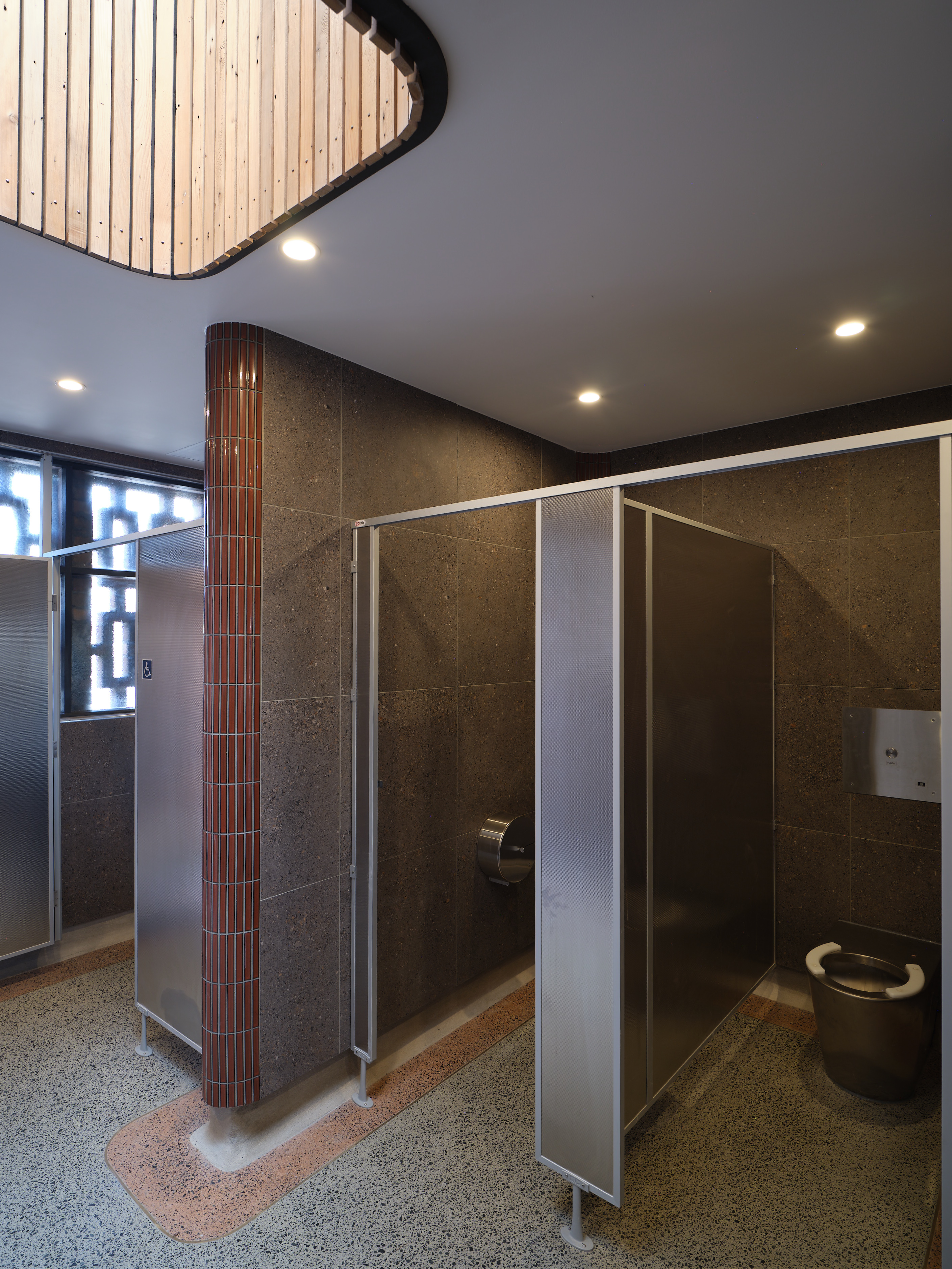This sensitive restoration of a public building that has quietly served the Grey Lynn community for more than 80 years has created an uplifting environment that celebrates its elegant Moderne architecture while adapting to modern-day needs. Timber-lined light wells introduce softness to a freshly planned interior where finishes honour the building's Art Deco origins while delivering resilience to a hard-working public facility. Richly detailed using a modern palette of materials sensitive to the building's heritage values, the Grey Lynn Public Conveniences fulfil their service role with newfound grace and dignity.