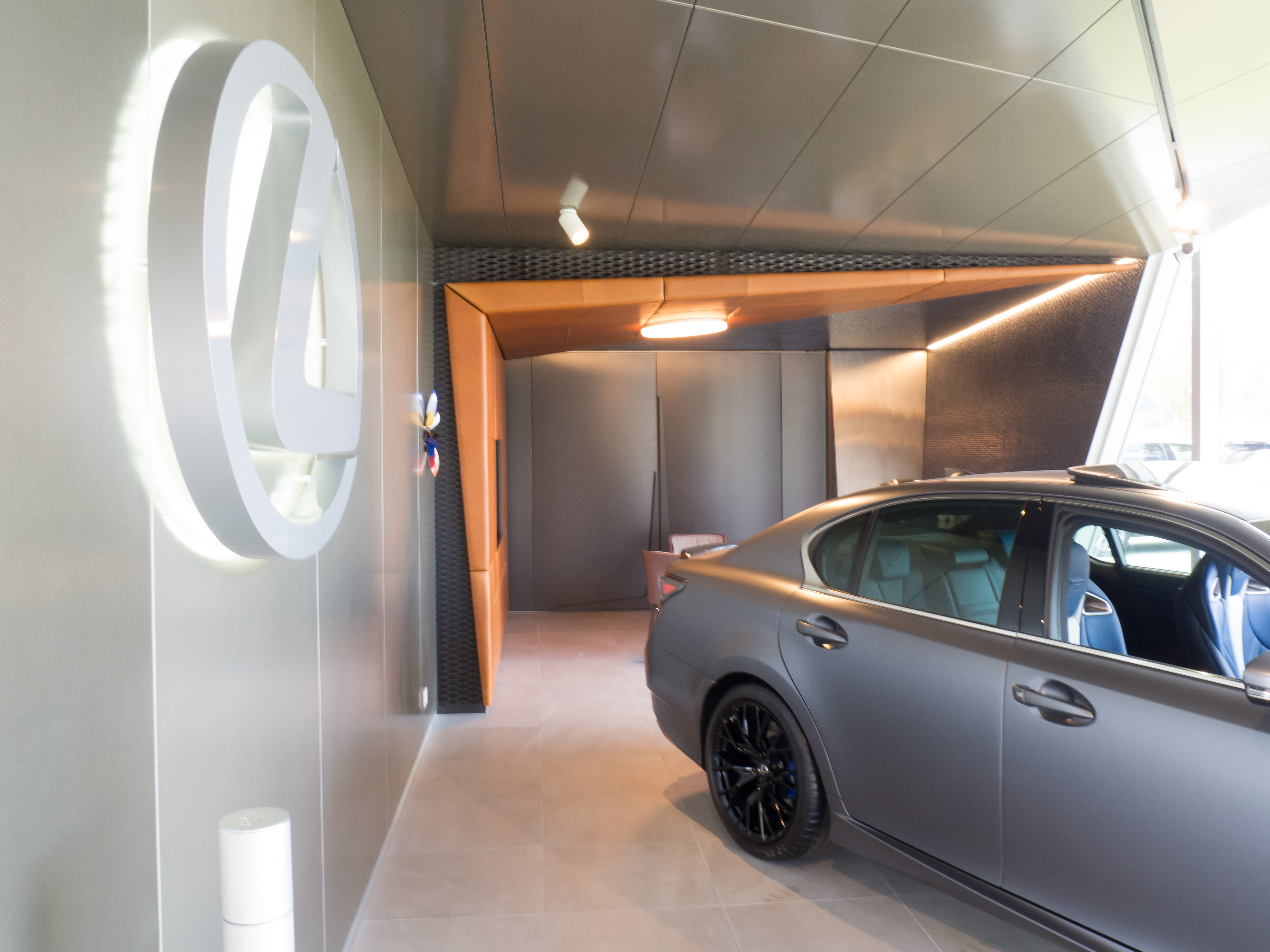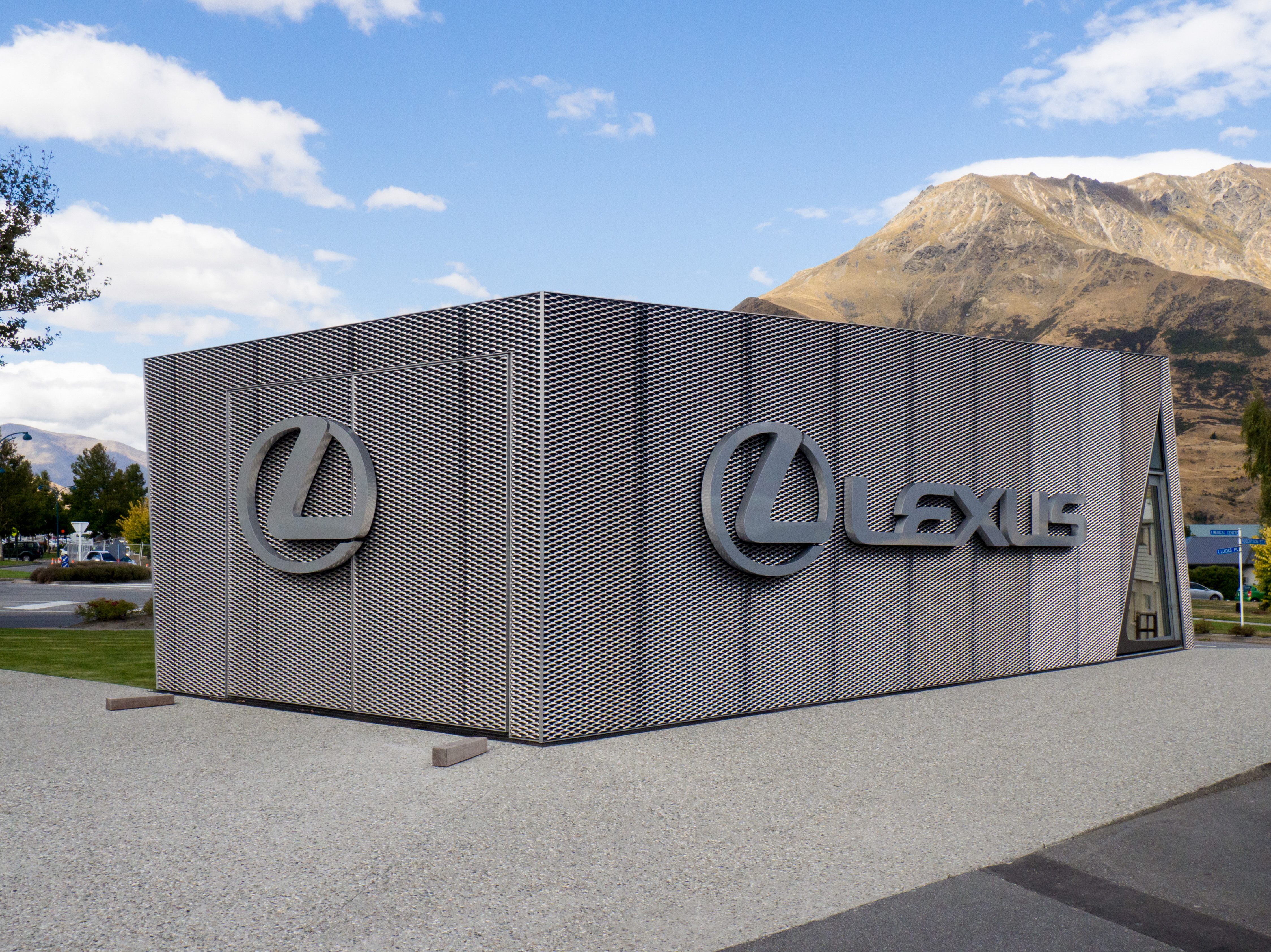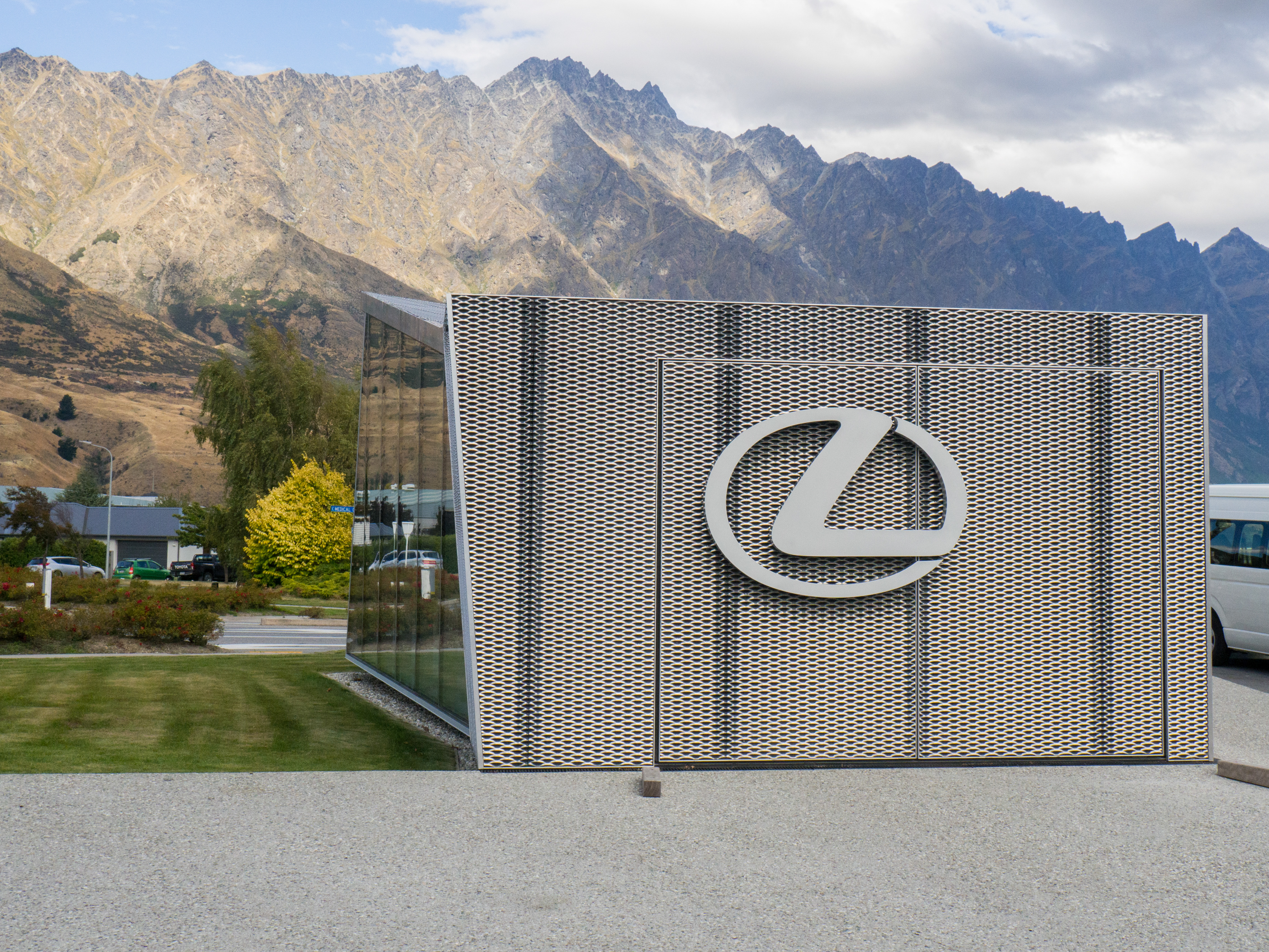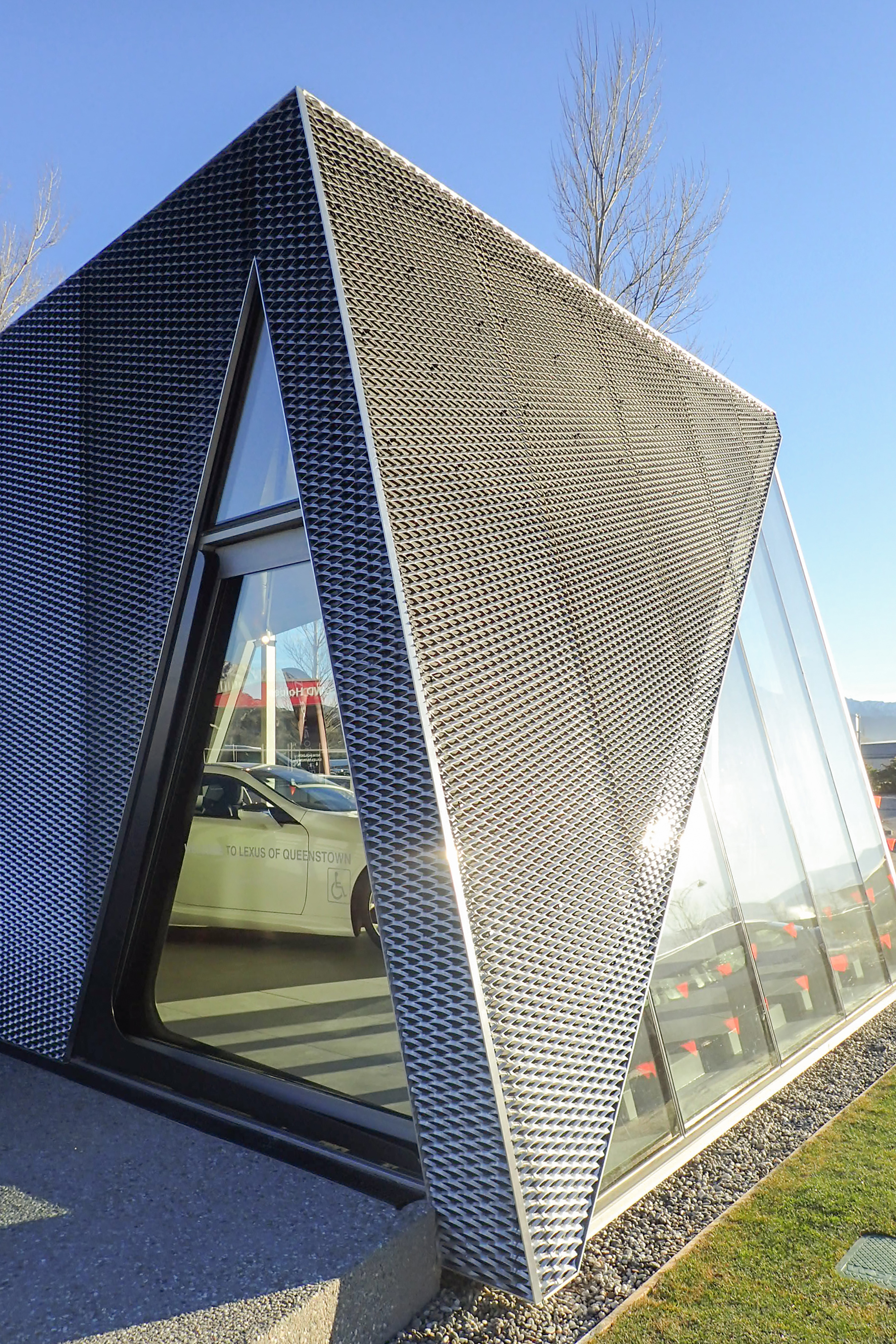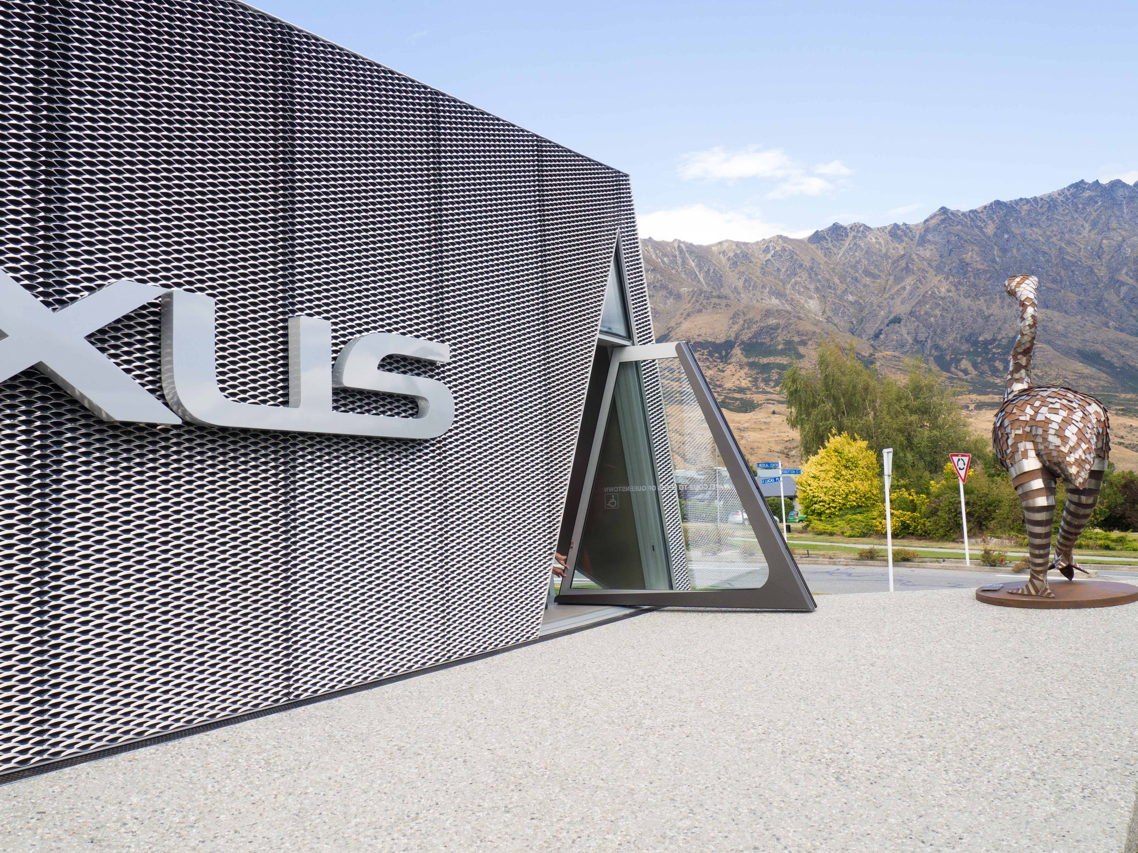 The exterior of this ‘gem’ has glistening sharp edges to mimic the jagged backdrop of The Remarkables, and a scaly silver, textured skin derived from the marque’s high-tech brand. Equally slick is the metal-trim interior, accessible via a triangular pivot door or secret garage tilt-door, which adds to the impression of this building as a cleverly executed jewel box, purposefully designed to alleviate vendor challenges and exceed market expectations for the sale of sophisticated automobiles.