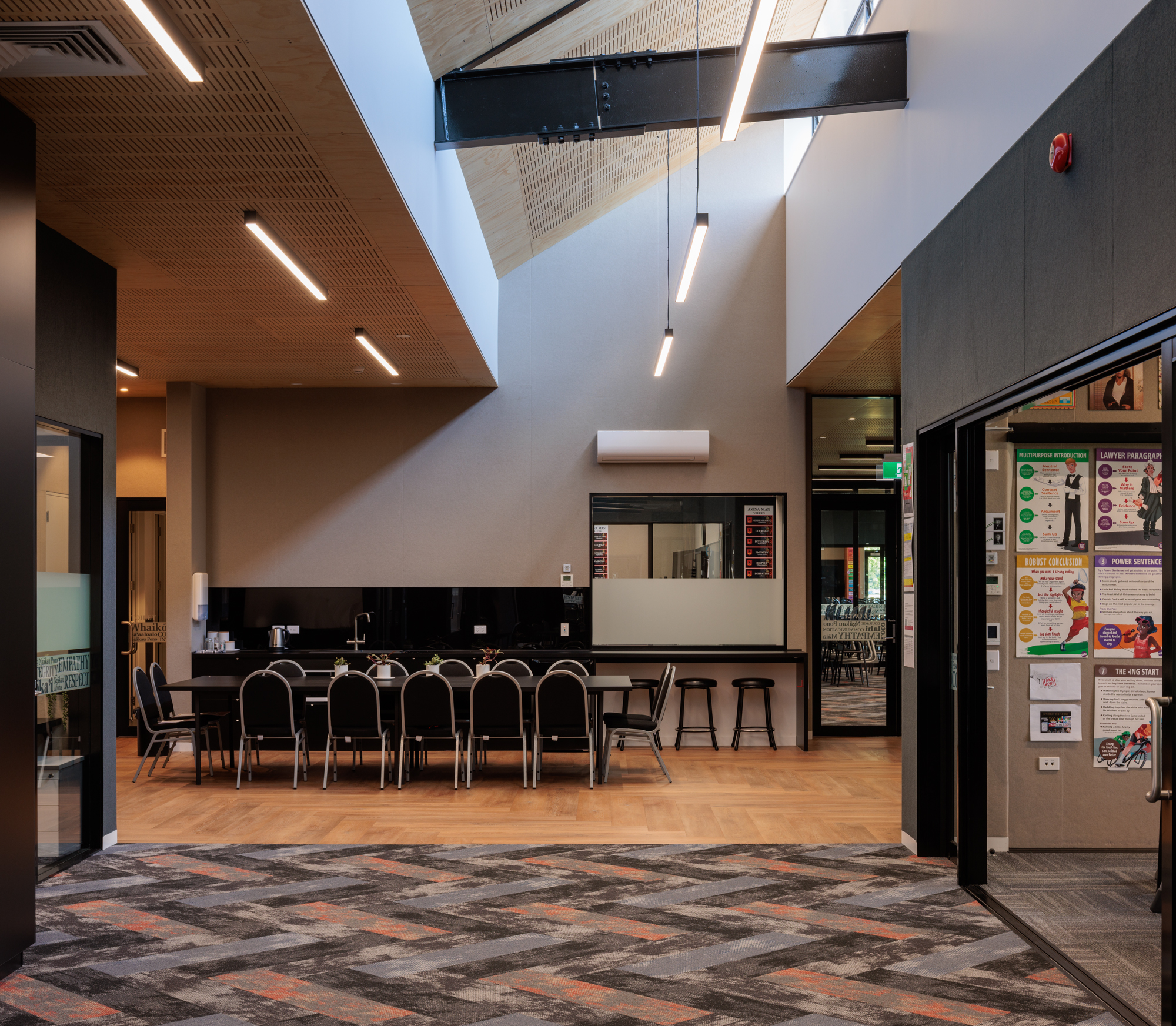 DCA Architects of Transformation have delivered a considered and future-focused learning environment that honours the school’s heritage while enabling pedagogical evolution. The design bridges traditional classroom layouts with flexible, shared spaces that support collaboration and adaptability. The architecture responds thoughtfully to both budget and site constraints, integrating passive ventilation, natural light and acoustic performance to create a comfortable and resilient teaching block. A central learning spine replaces standard corridors, maximising usable space and promoting cross-curricular engagement. This is a confident and contextually sensitive project that strengthens the identity of the school while meeting the practical needs of twenty-first century learning.