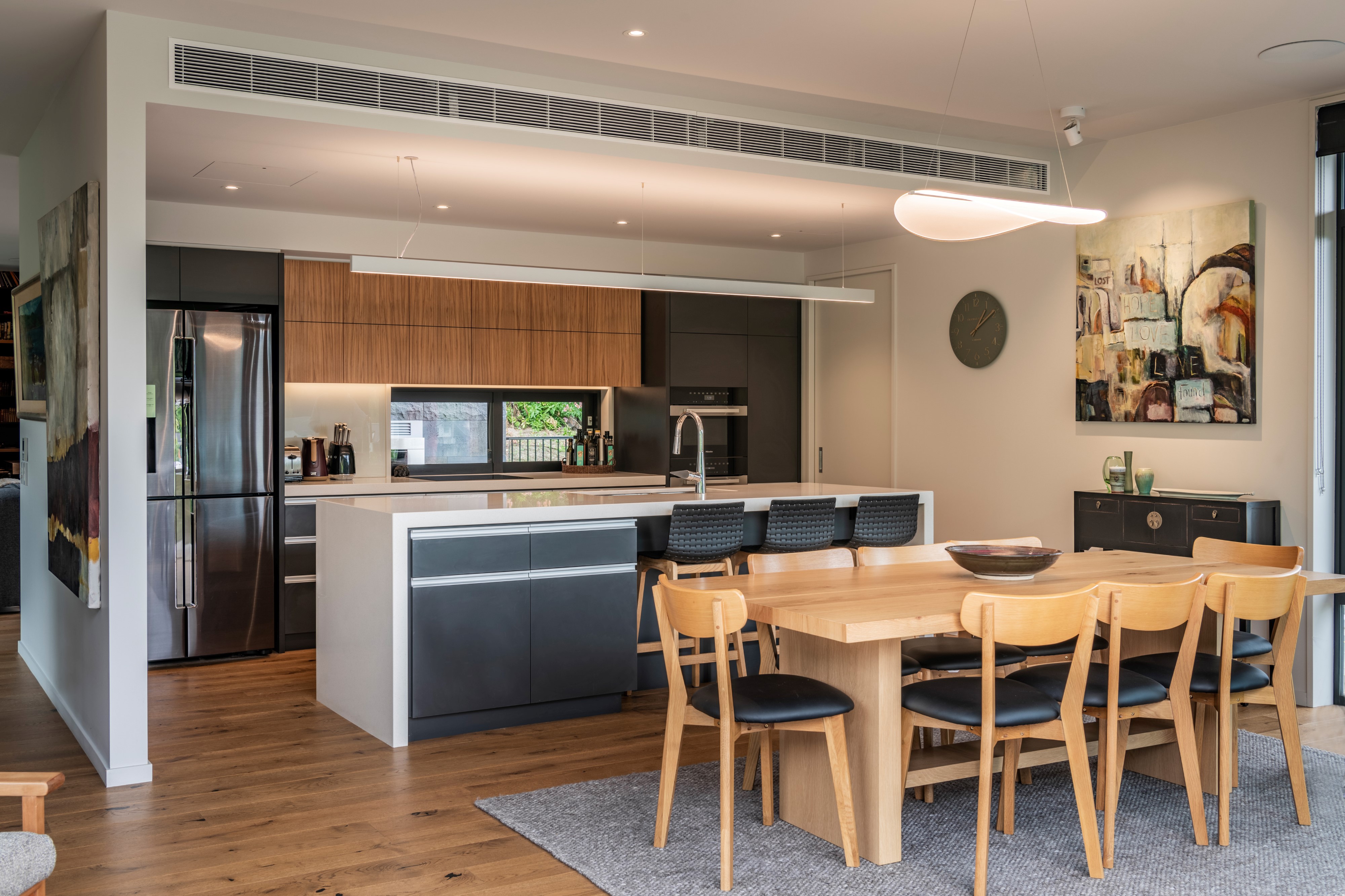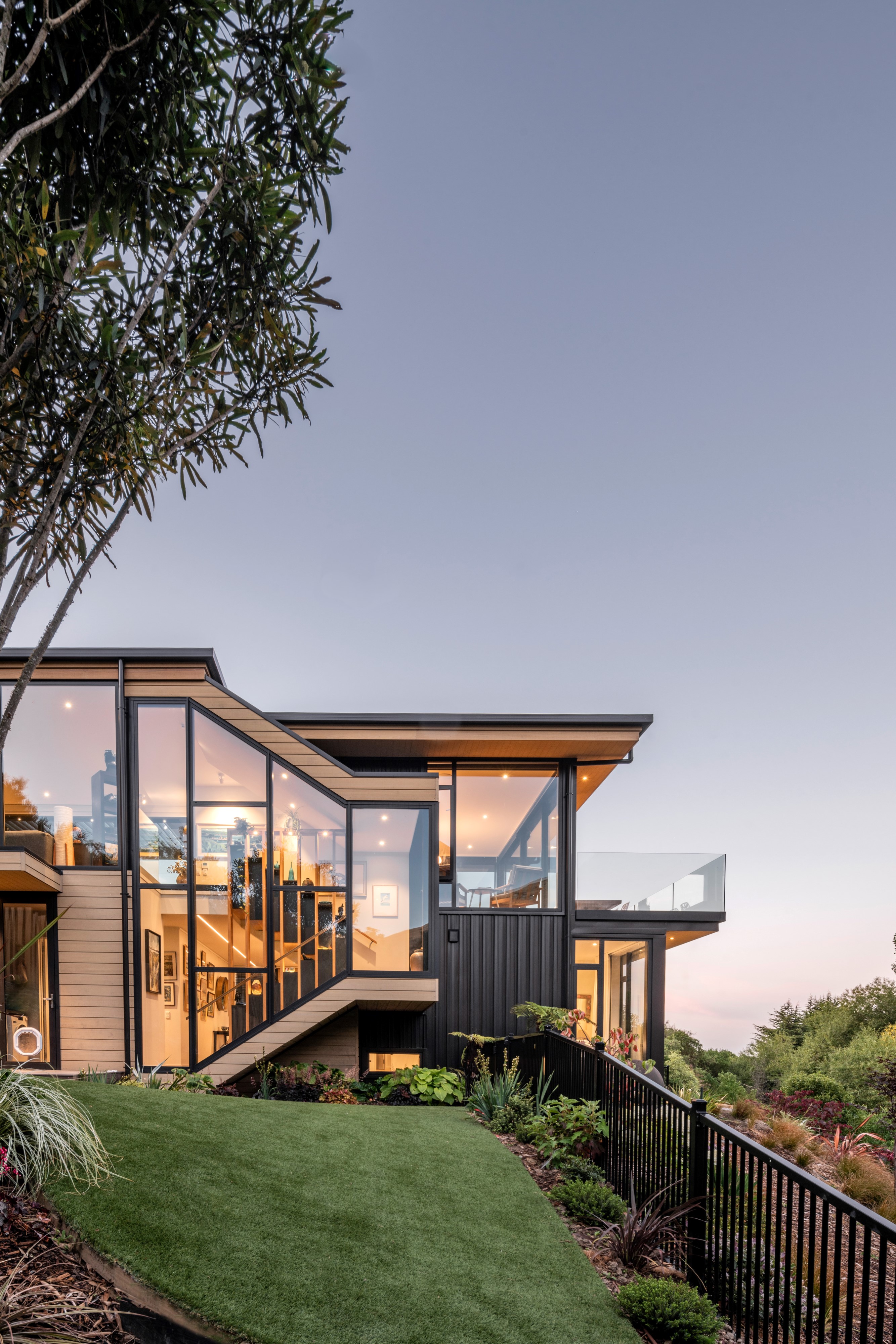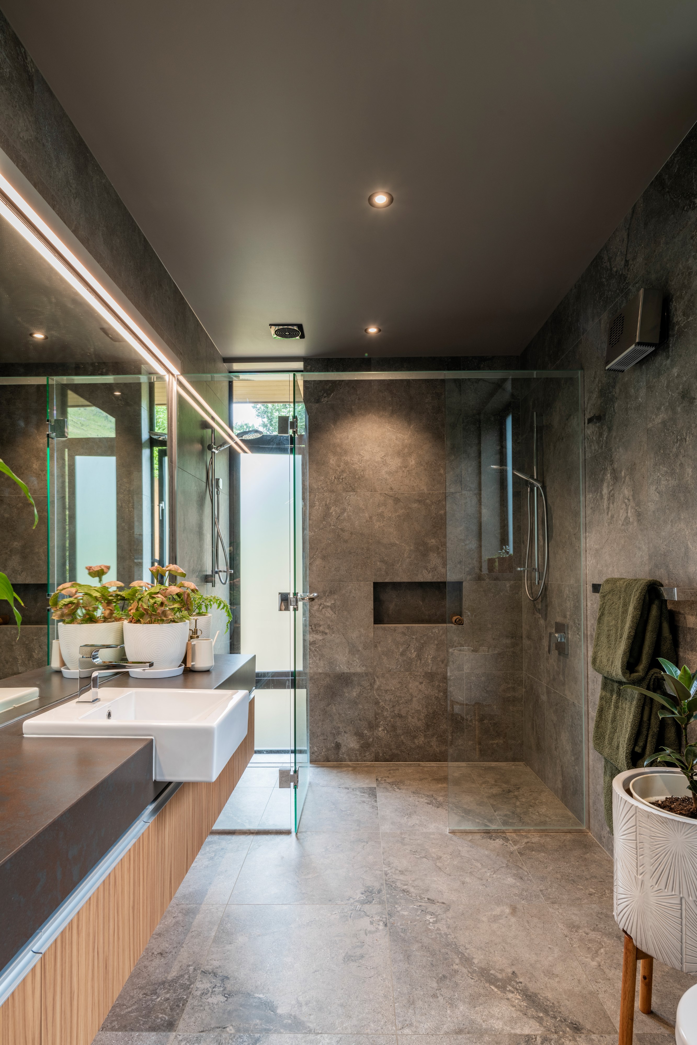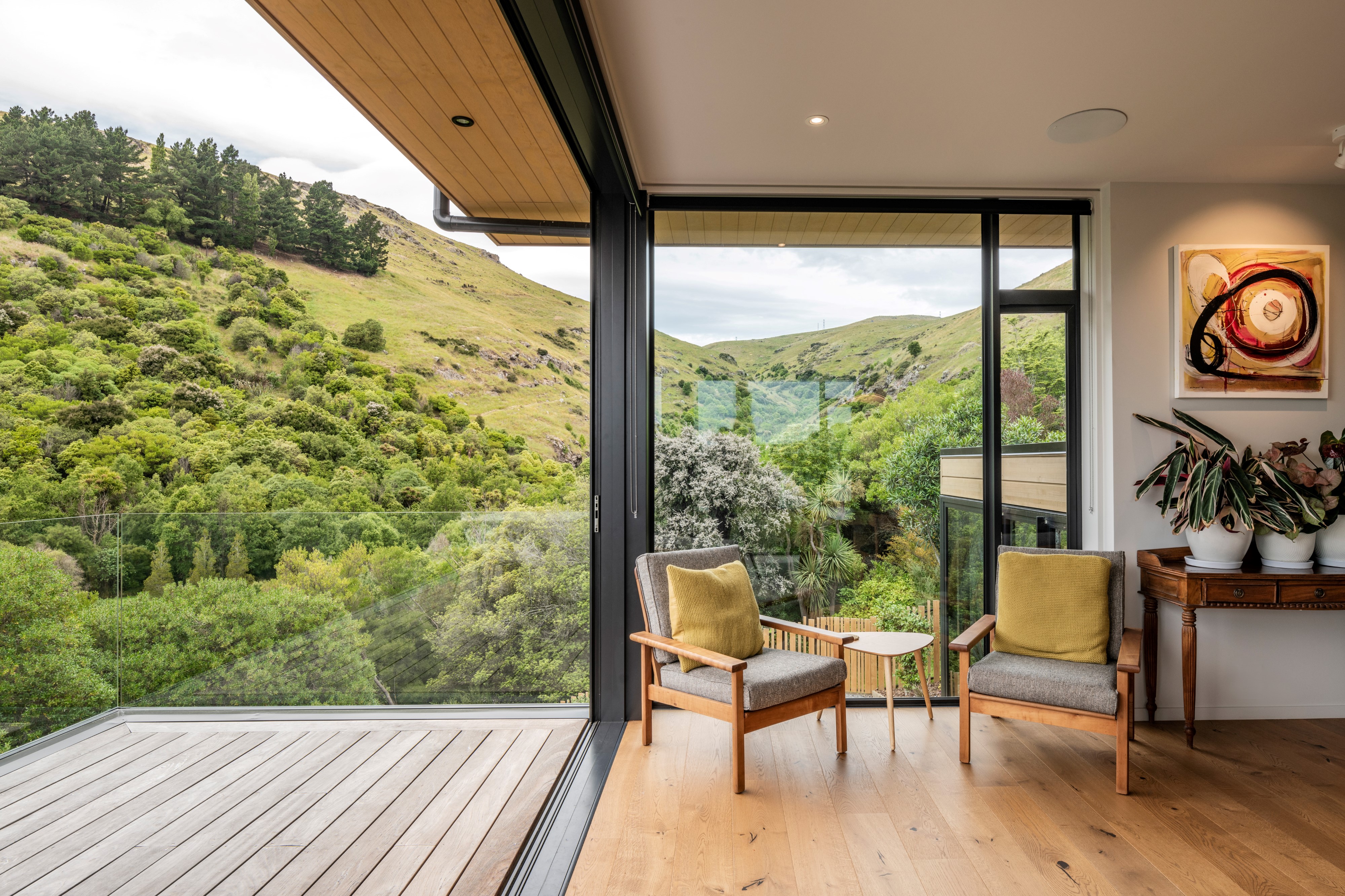 The design of this home is truly remarkable as it seamlessly integrates with its natural setting. Each separate living space is carefully crafted to cater to varying times of day and occasions, providing a truly personalised experience for the occupants. A stone wall that pays homage to the nearby hill makes the dwelling an integral part of its surrounding environment. The staircase is another noteworthy feature that offers breath-taking valley views. Additionally, hidden storage behind the library bookcase adds an exciting element for the grandchildren to enjoy. This sensitive design creates an exceptional living experience in harmony with nature.