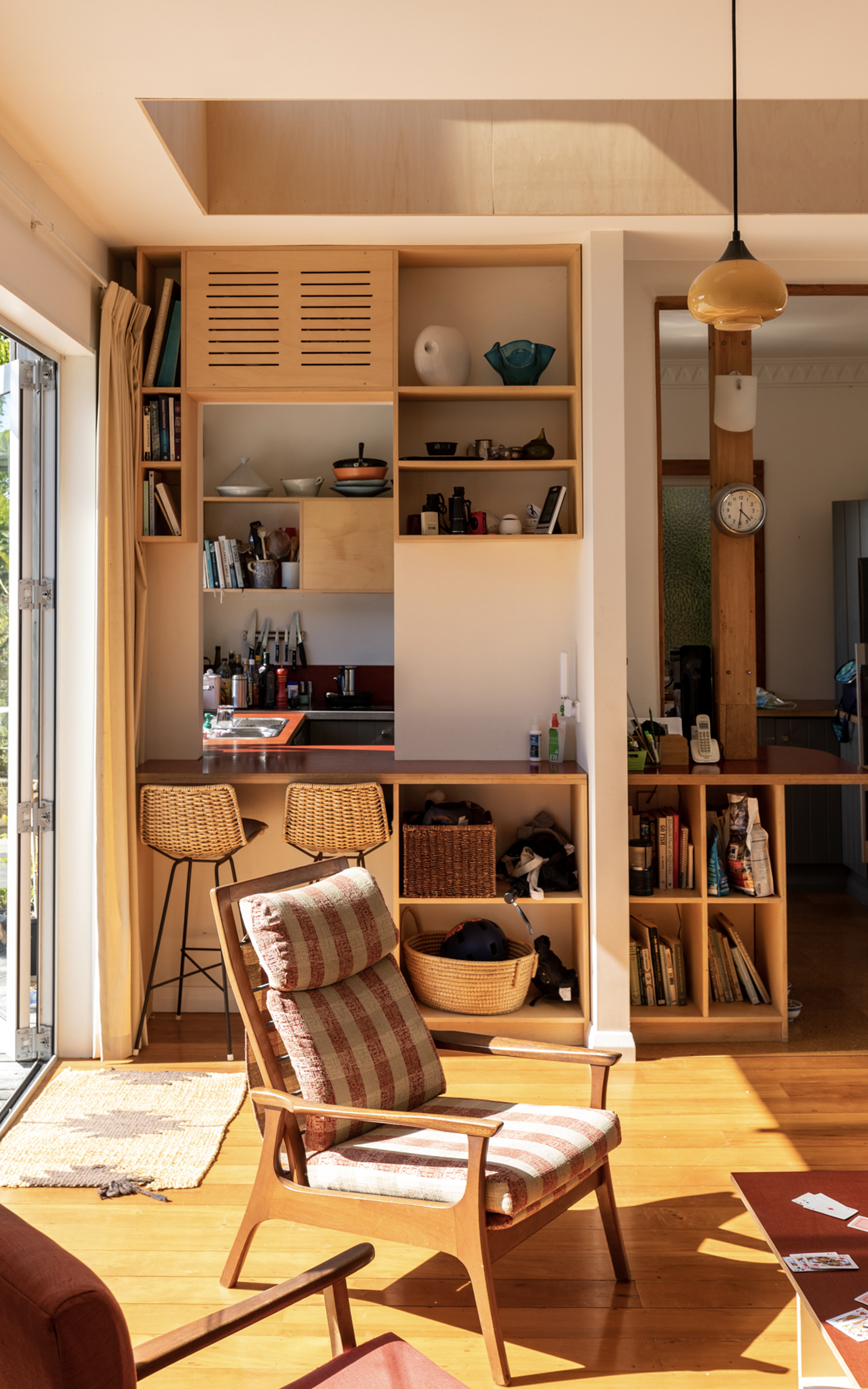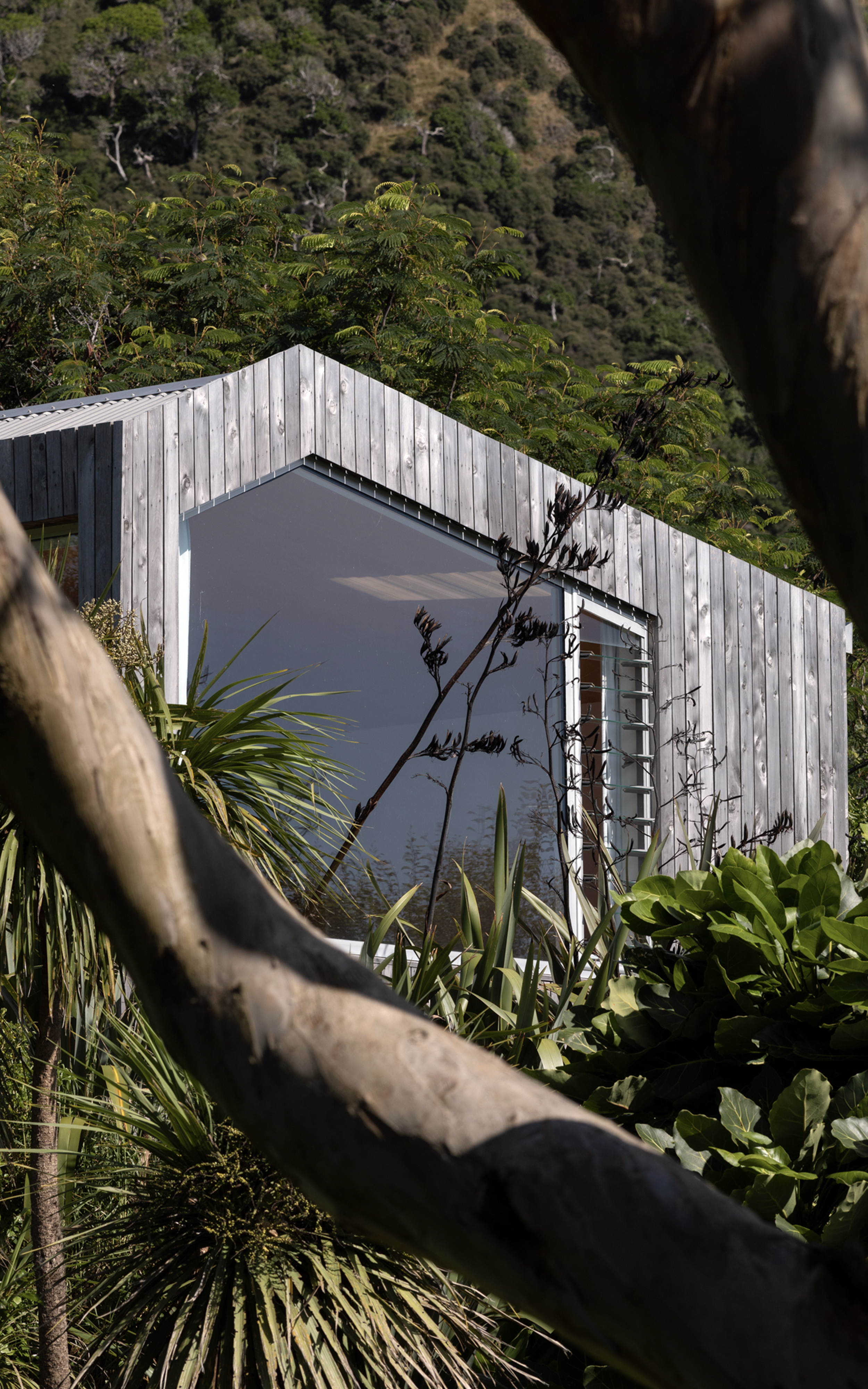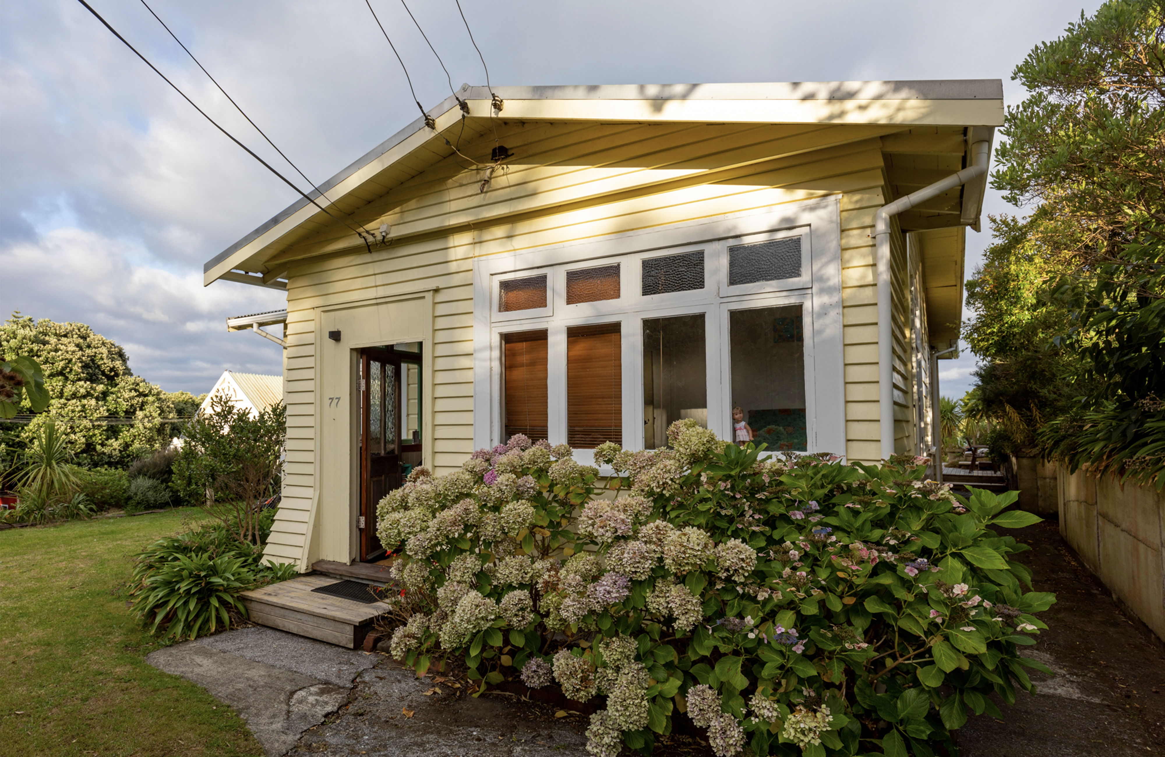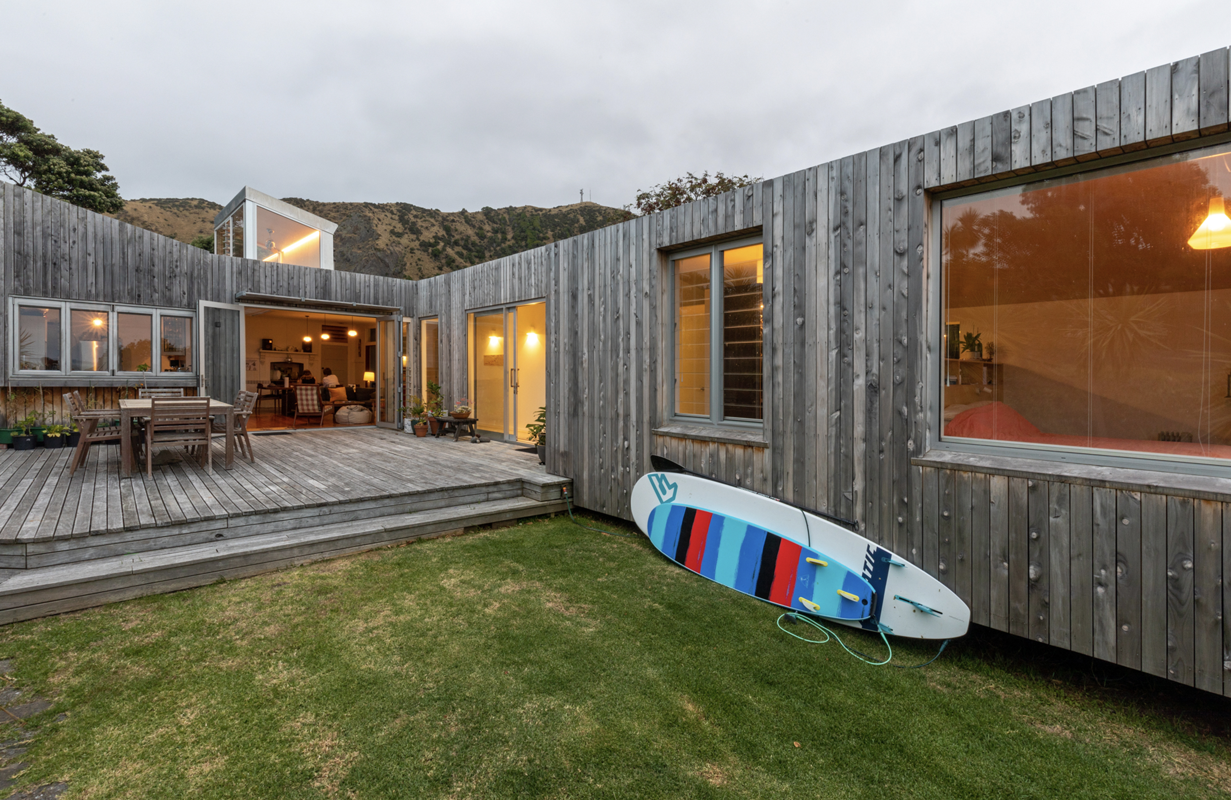 This house is a display of architectural experimentation that rejuvenates the original house to suit modern family life. The west extension elevates the main bedroom as the benefactor of sunset and sea views. The choice of macrocarpa as the rain screen to the garden extension contrasts nicely with the painted street-front formality of the house. The addition of the pop-up clerestory to the rear living room adds much-needed sunlight and height, guiding the eye sea-ward. Extensive glazing to the hall adjacent to the deck transforms this into a light-filled gallery space. The changes have transformed this traditional light-starved bungalow into a bright, modern family home at one in its natural setting.