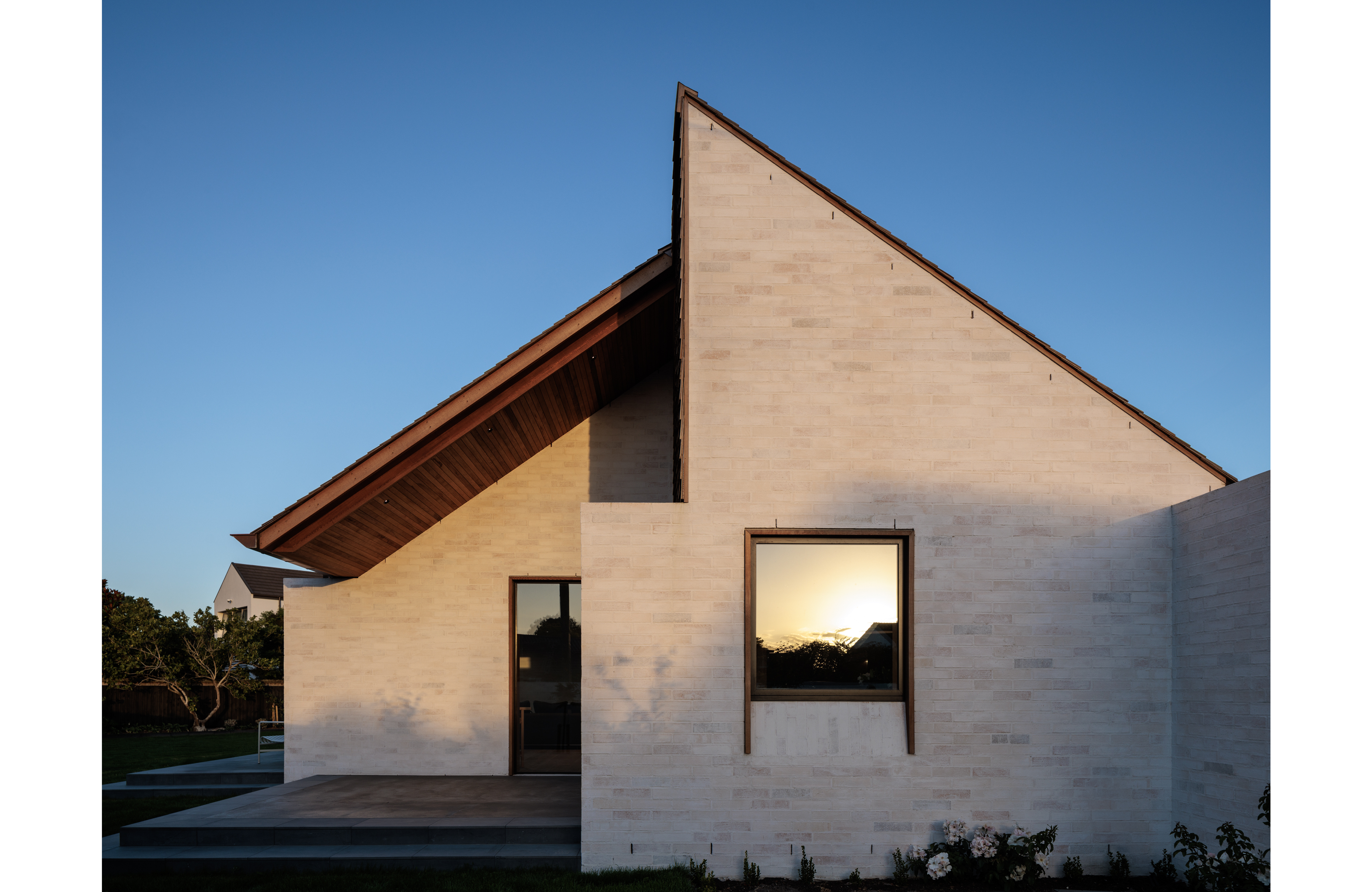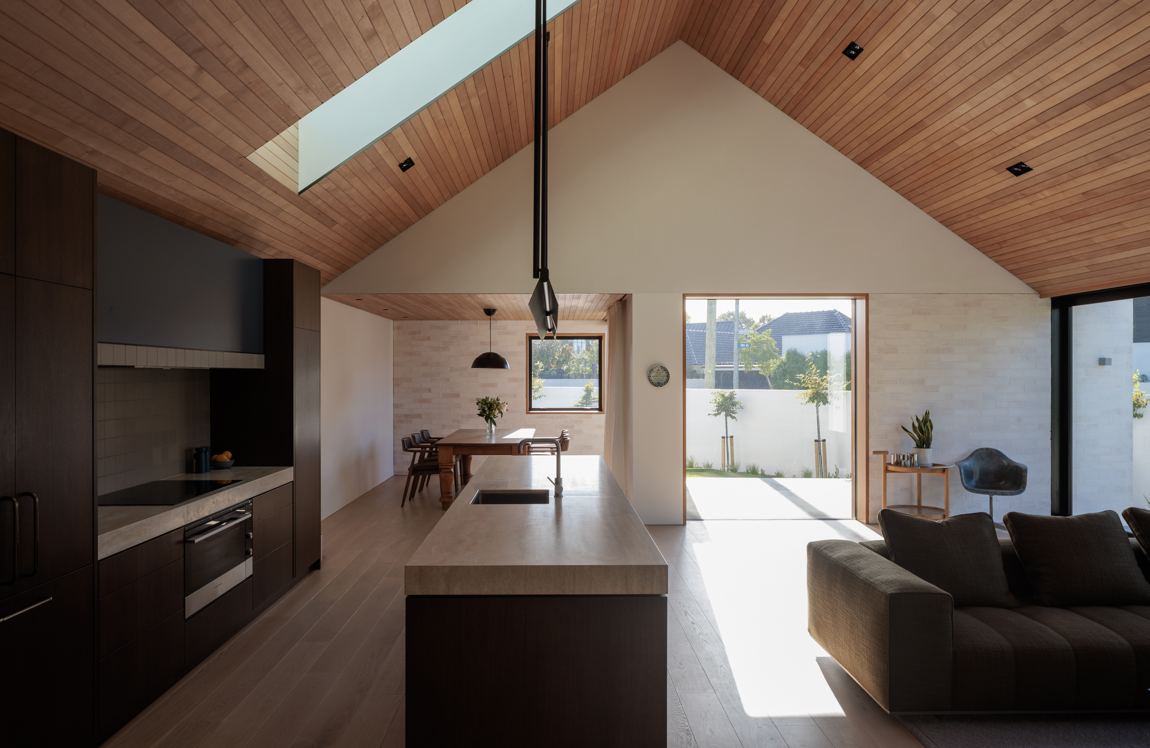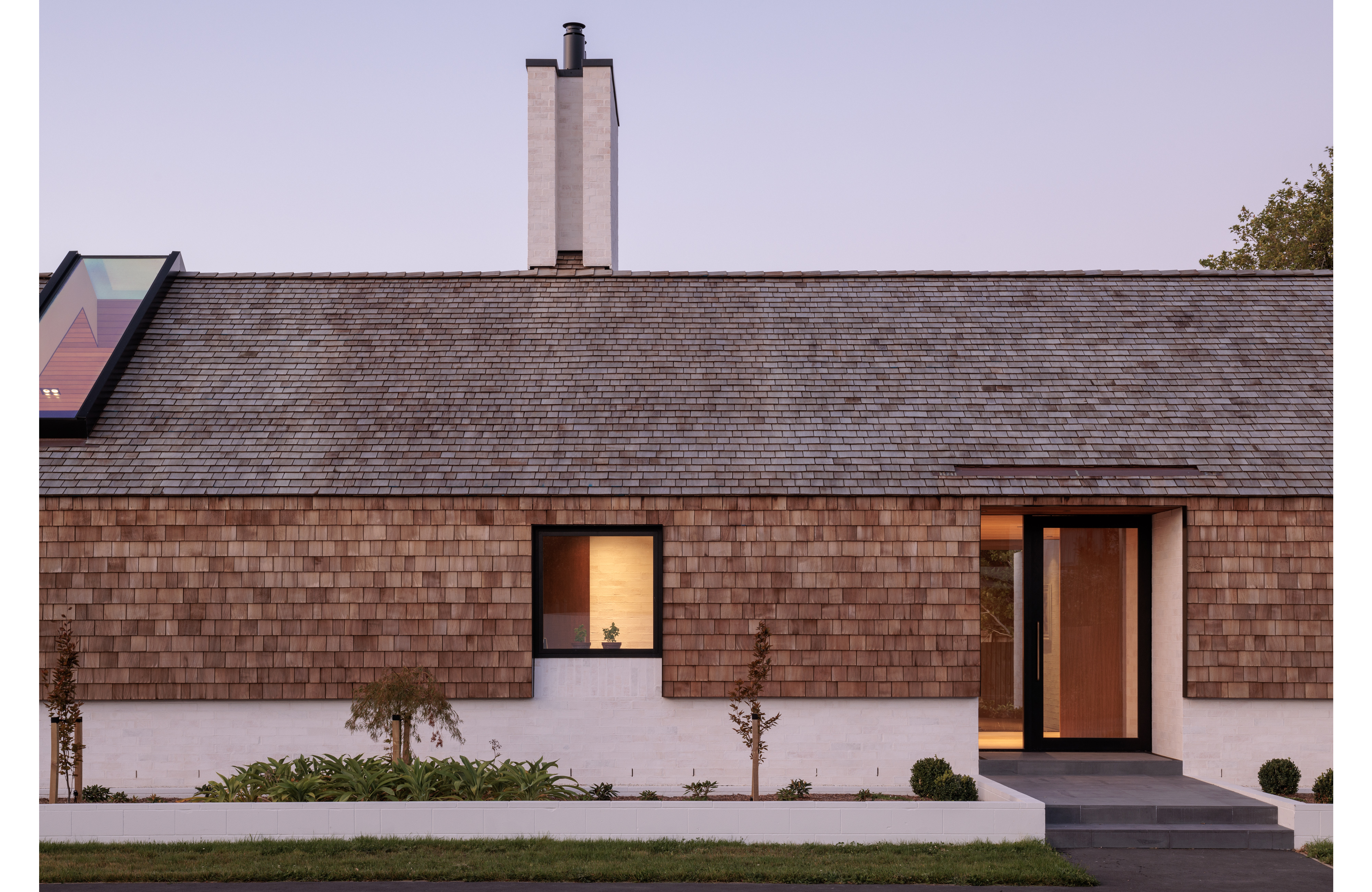 A refined contemporary reinterpretation of the Christchurch modern style. This residence embodies elegant simplicity and highlights the architect’s mastery of detail, with interest created through a balance of materiality, texture, light and shadow. The immaculate detailing highlights artful techniques, including those employed to conceal gutters and vents within the external cladding cavity. A palette of materials in natural tones, ranging from washed brick to timber shingles, resonates deeply with the clients’ heritage, contributing to the overall charm of the design and establishing a satisfying addition to the suburban streetscape.