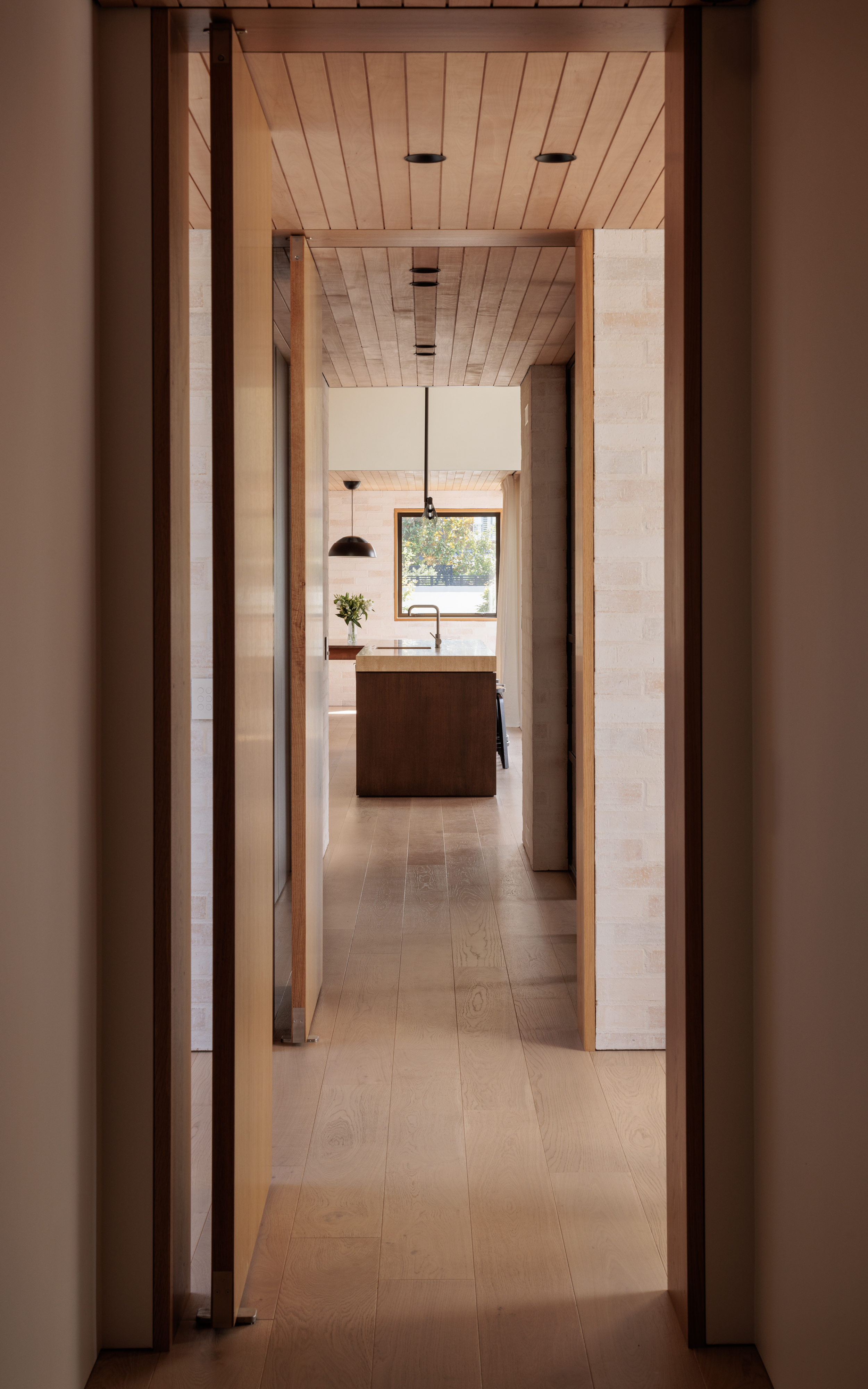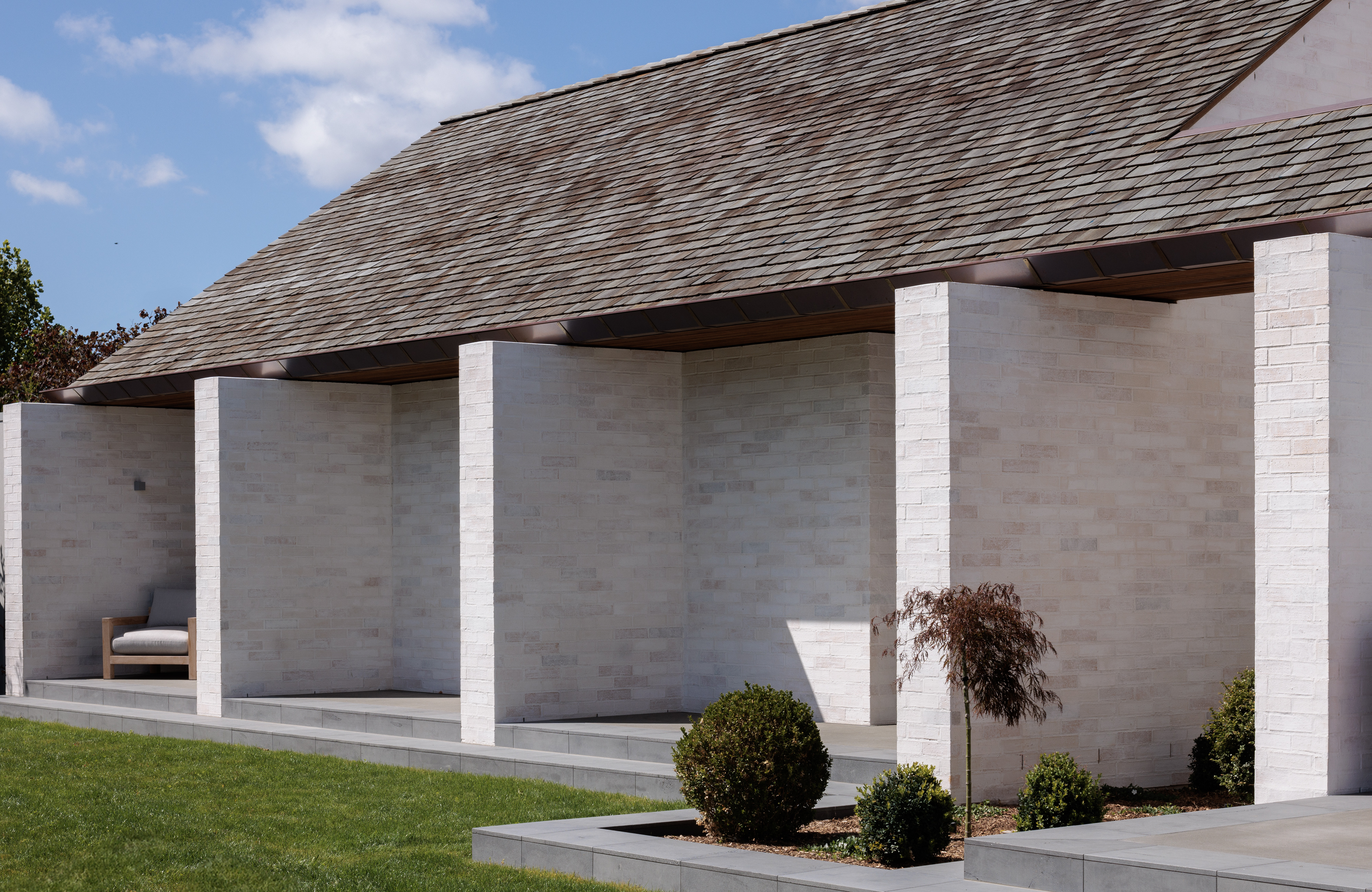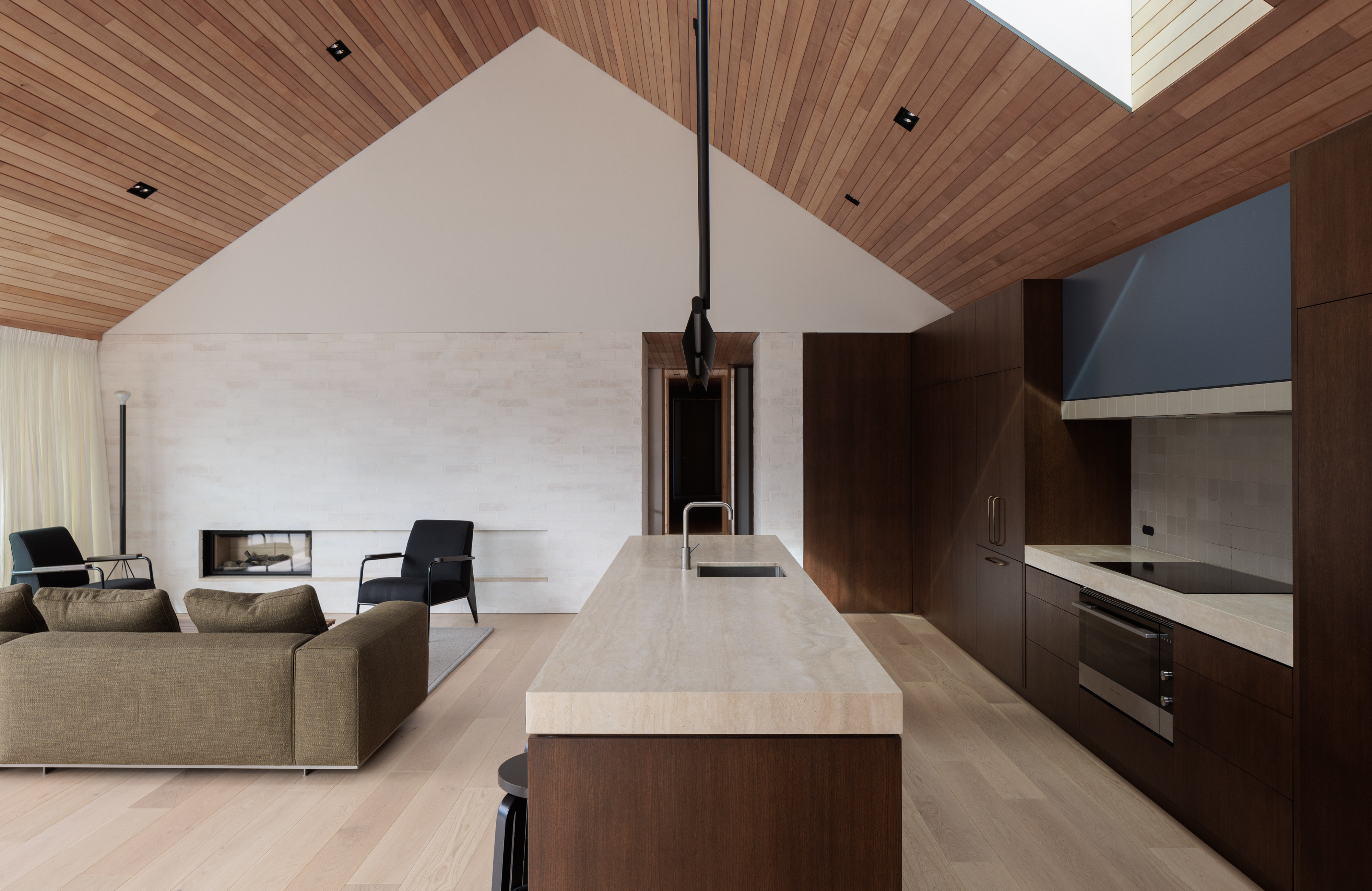 A refined contemporary reinterpretation of the Christchurch modern style. This residence embodies elegant simplicity and highlights the architect’s mastery of detail, with interest created through a balance of materiality, texture, light and shadow. The immaculate detailing highlights artful techniques, including those employed to conceal gutters and vents within the external cladding cavity. A palette of materials in natural tones, ranging from washed brick to timber shingles, resonates deeply with the clients’ heritage, contributing to the overall charm of the design and establishing a satisfying addition to the suburban streetscape.