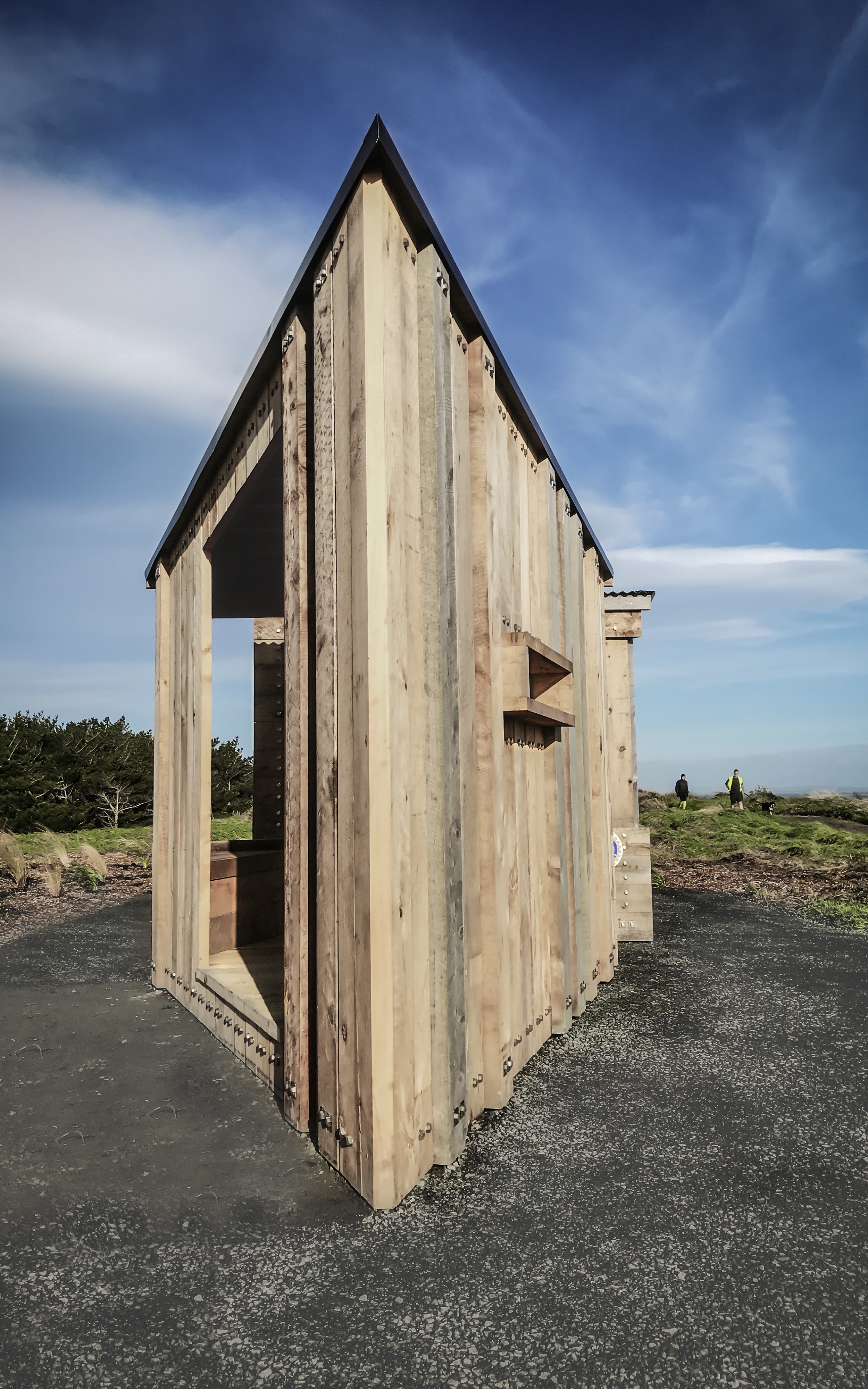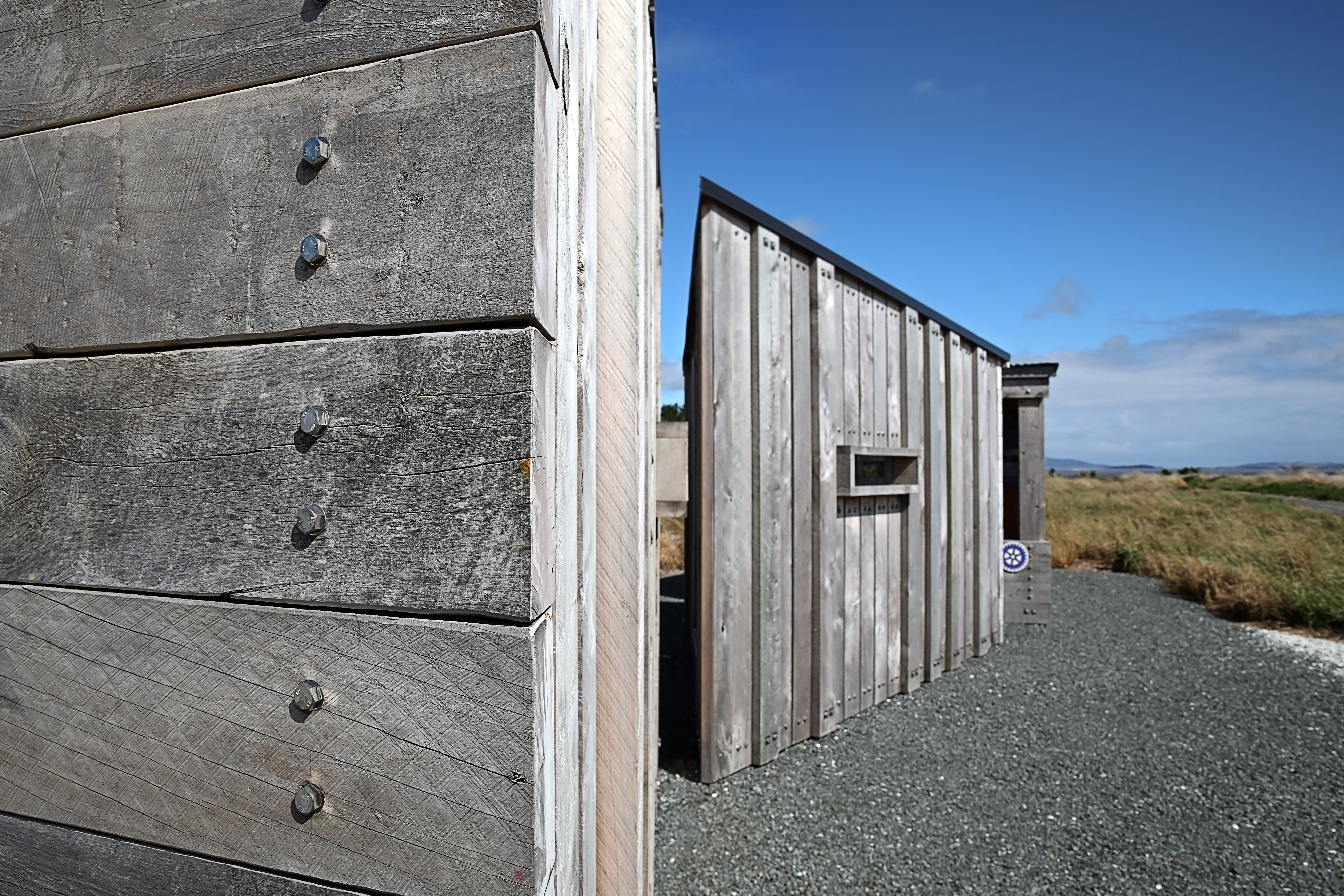 The heft of sizeable macrocarpa beams and boards – could a smaller building be made with larger timber? – belies the gentle repose of these shelters. These stations on a walkway acknowledge local geography, ensuring that you always have your back to the wind and your eyes on a view. The shelters are a triumph of prefabrication, minimalism and materiality.