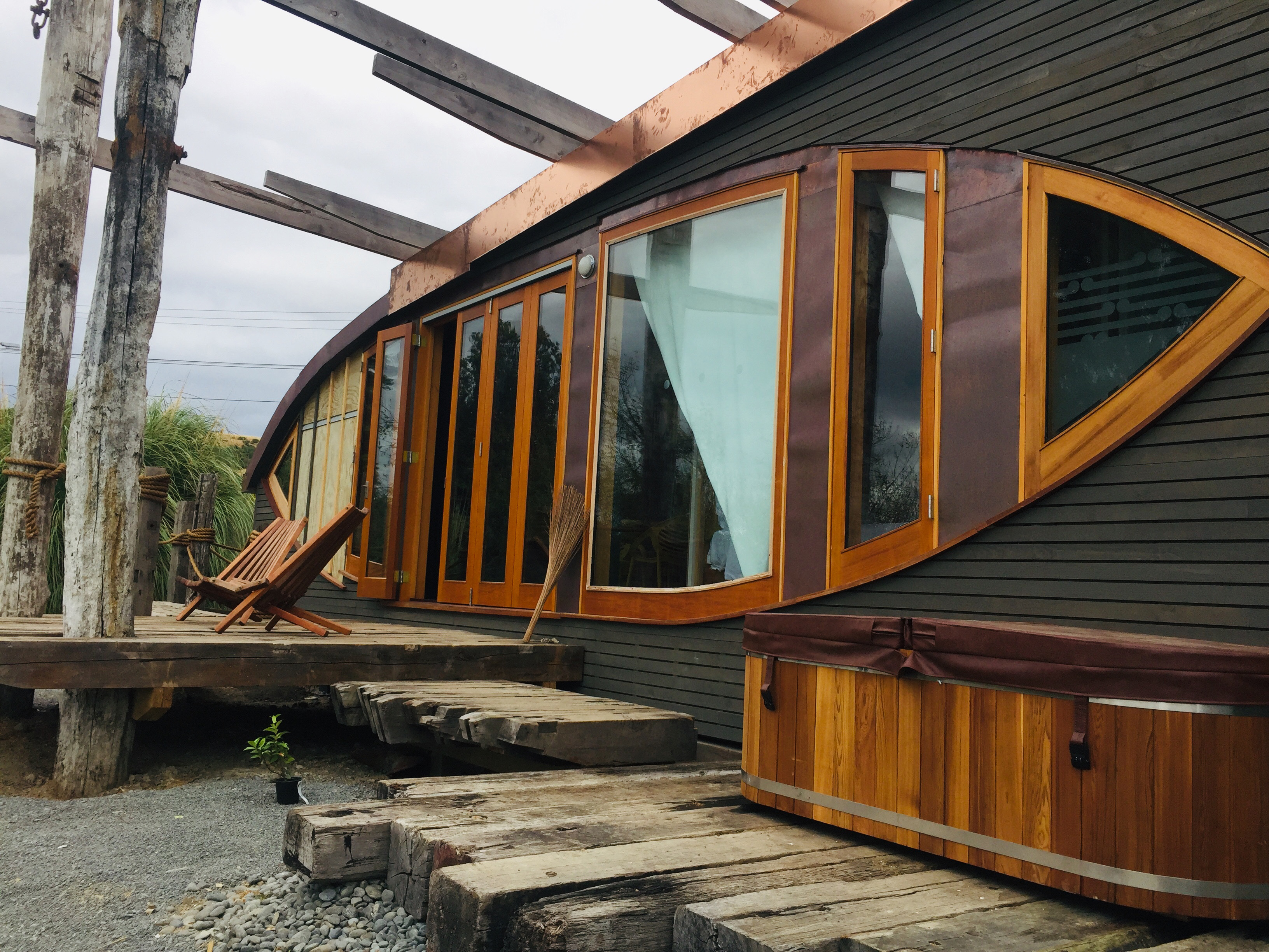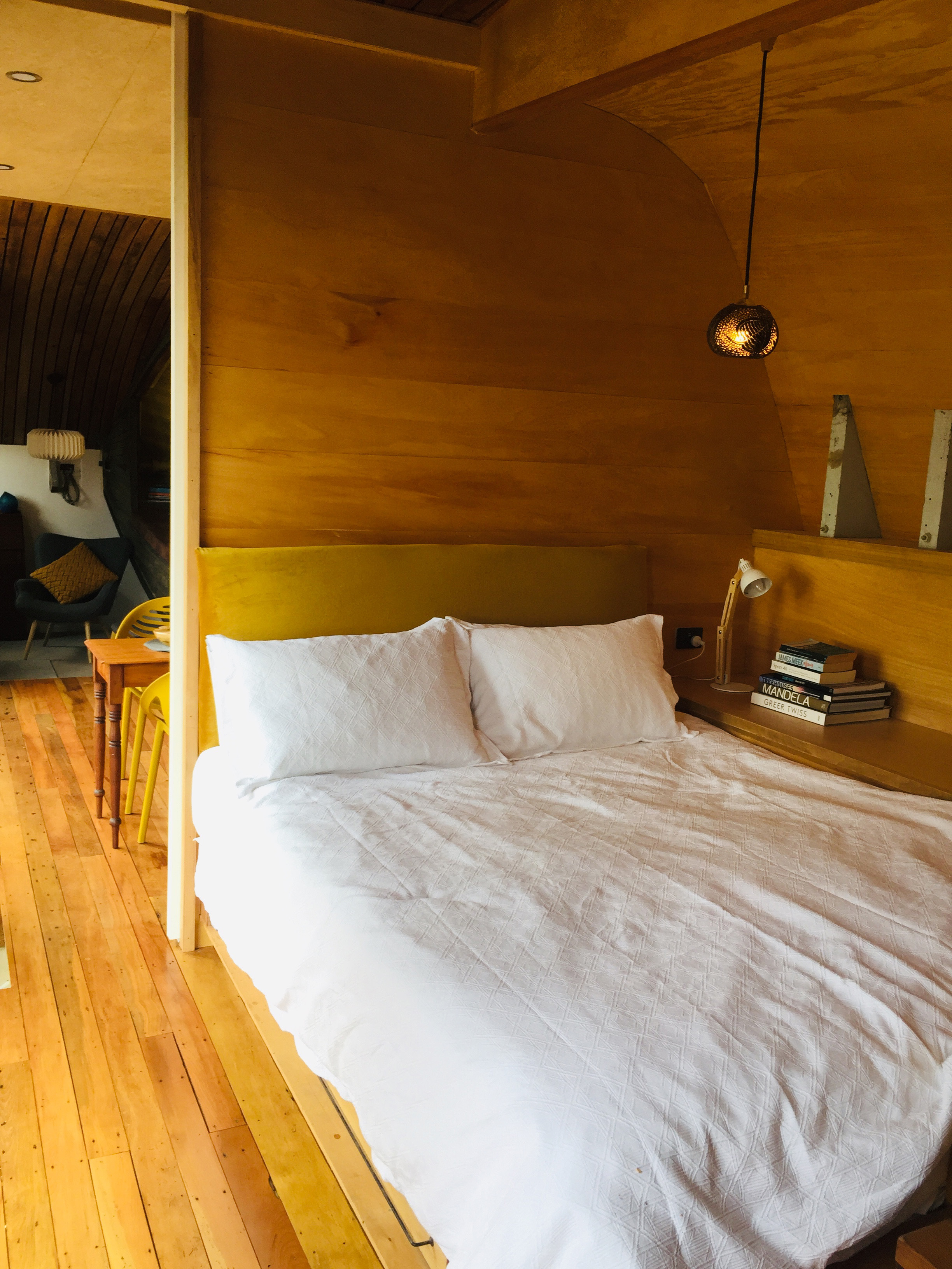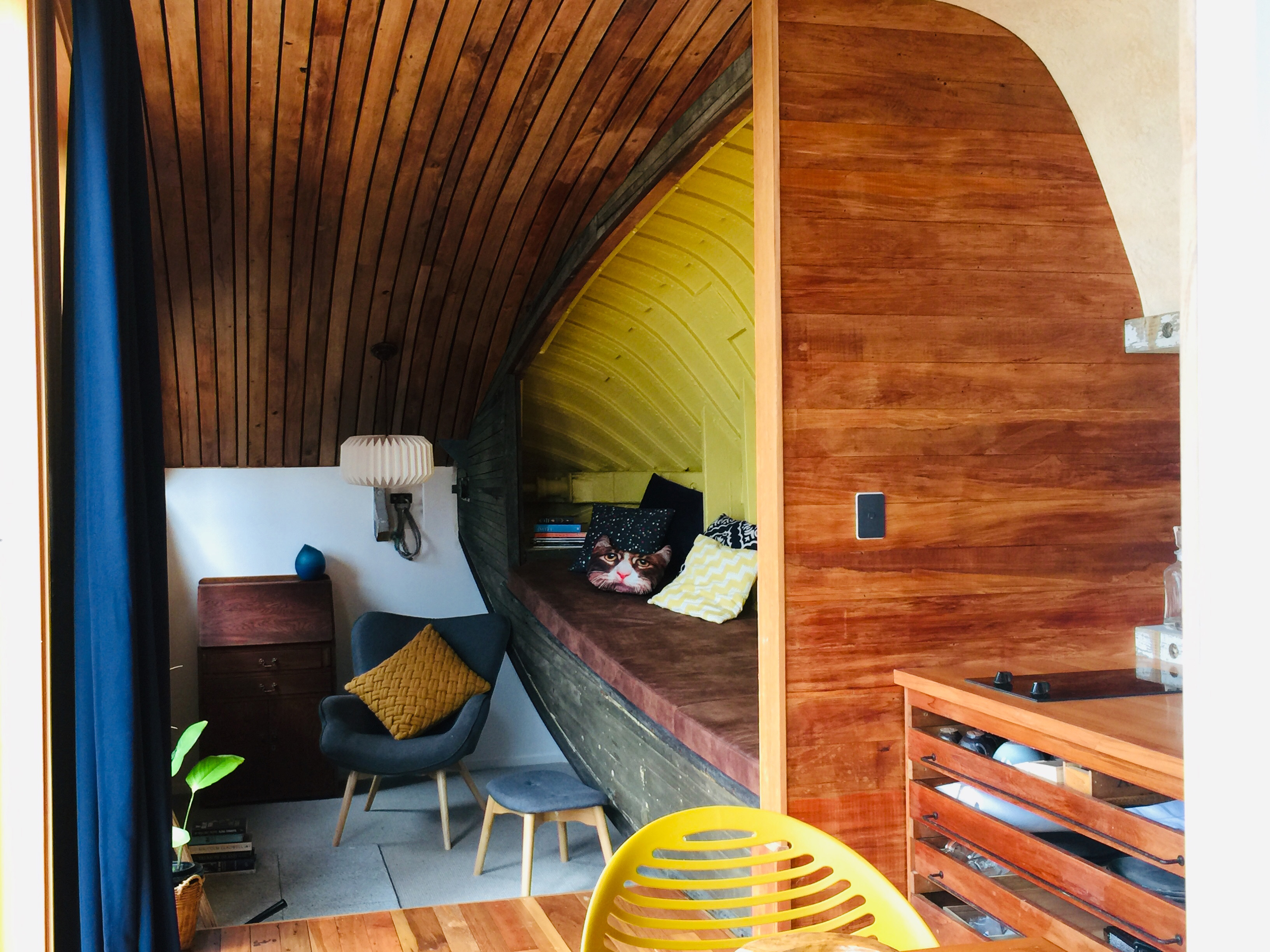 This delightful, cleverly designed tiny house is sited on the banks of the Whanganui River amongst native flax, and in close proximity to the town centre. The relationship between architecture, site and context is exceptional. Inspired by the idea of turning an object into a building, Iona features the reclaimed hull of a 1925 Kauri workboat and is a celebration of the re-use of materials. Parts of the old boat have been used as flooring, decking, landscape posts and lighting. The narrative of the project, from the origin of the boat to the source of other materials, gives it a strong sustainability focus. Great consideration has gone into the design, construction detailing, and crafting of the building; the complexity of this project is anything but small.