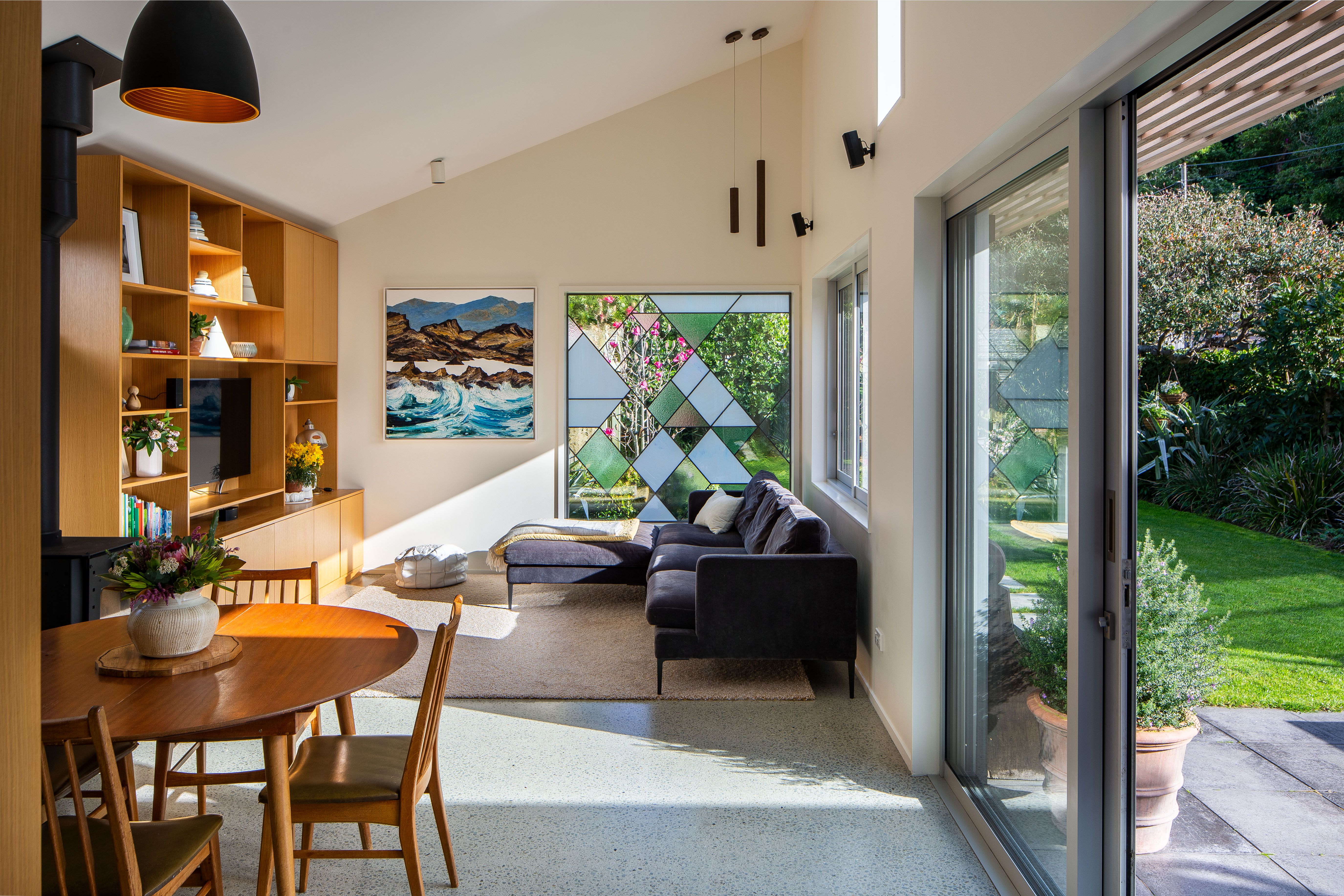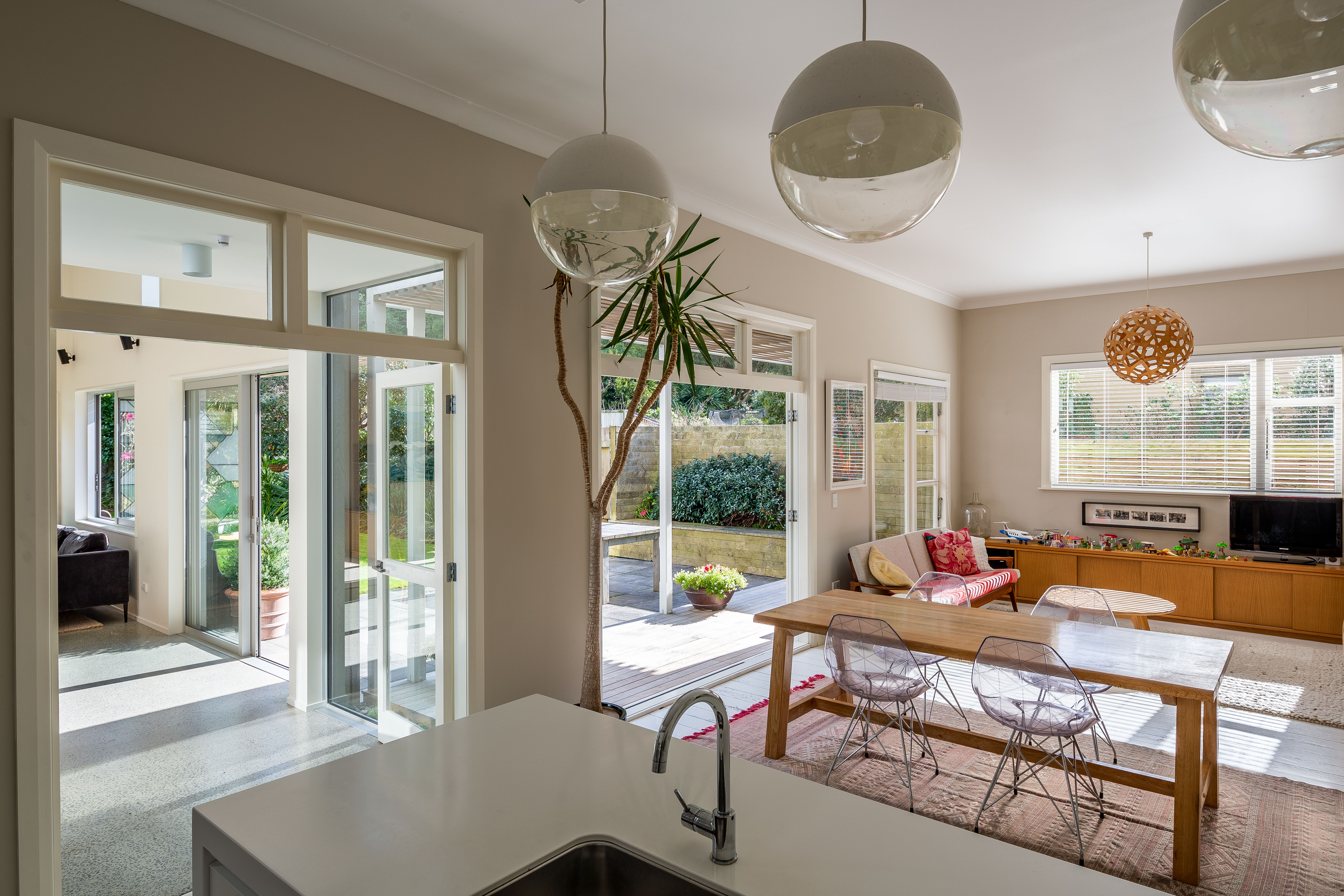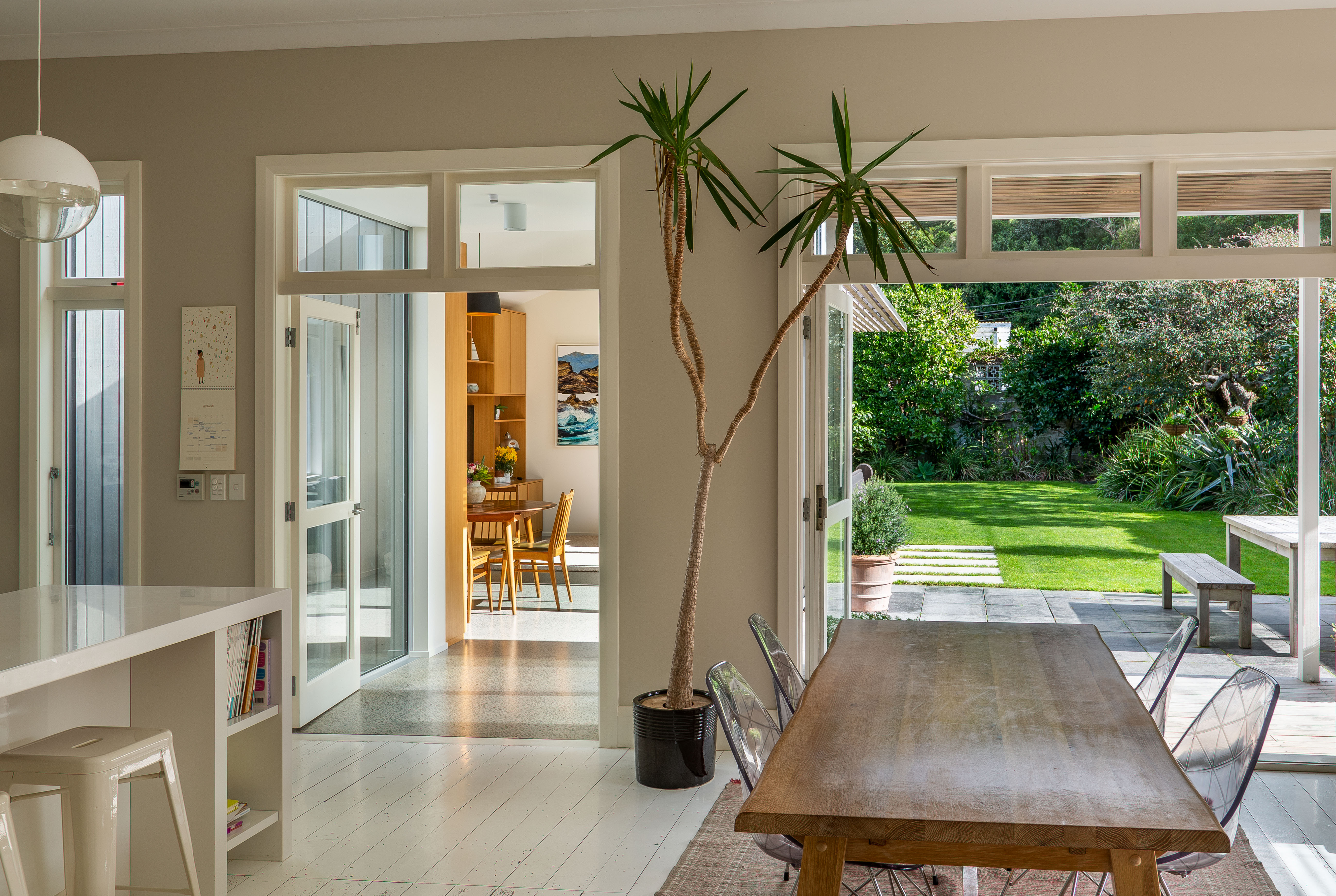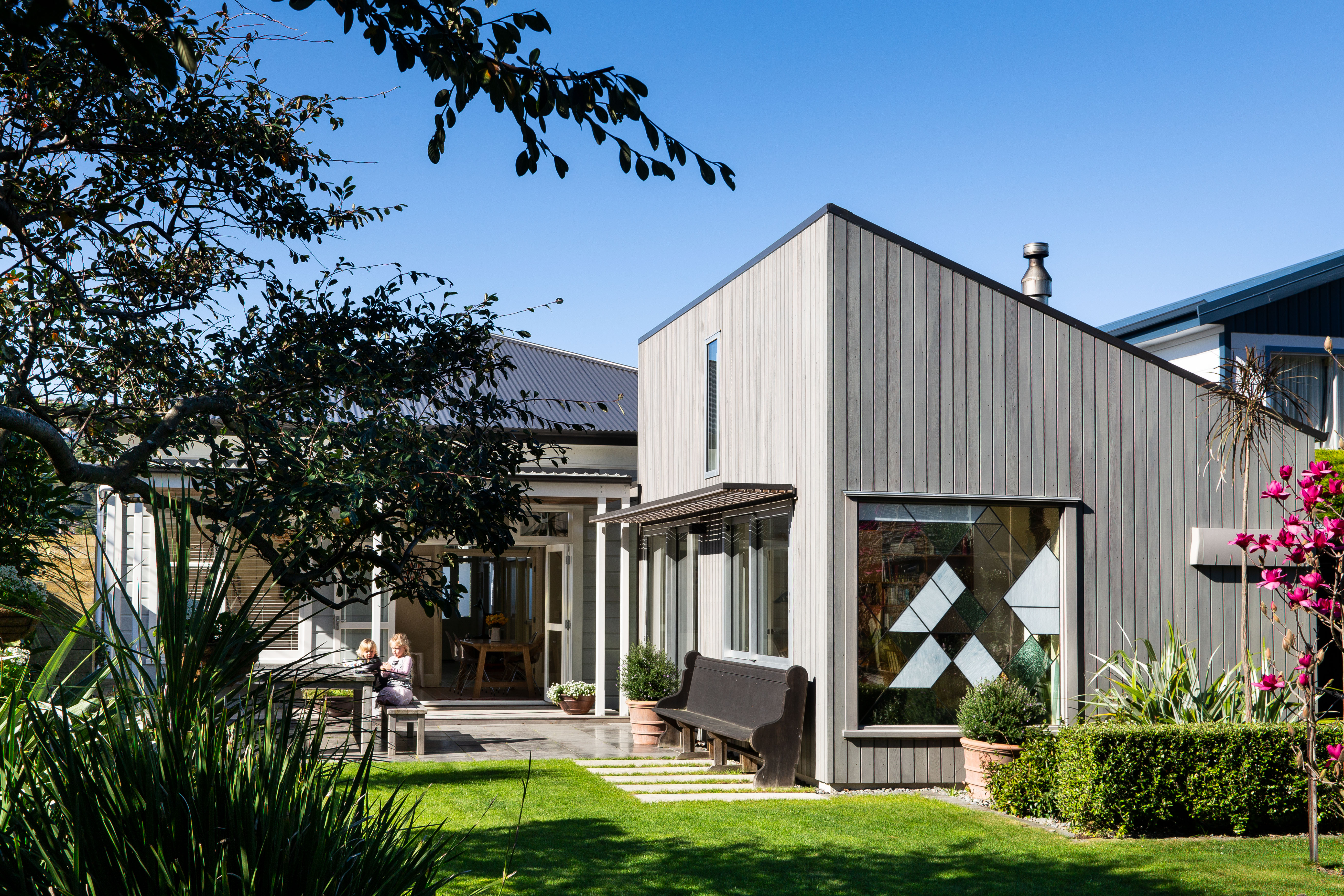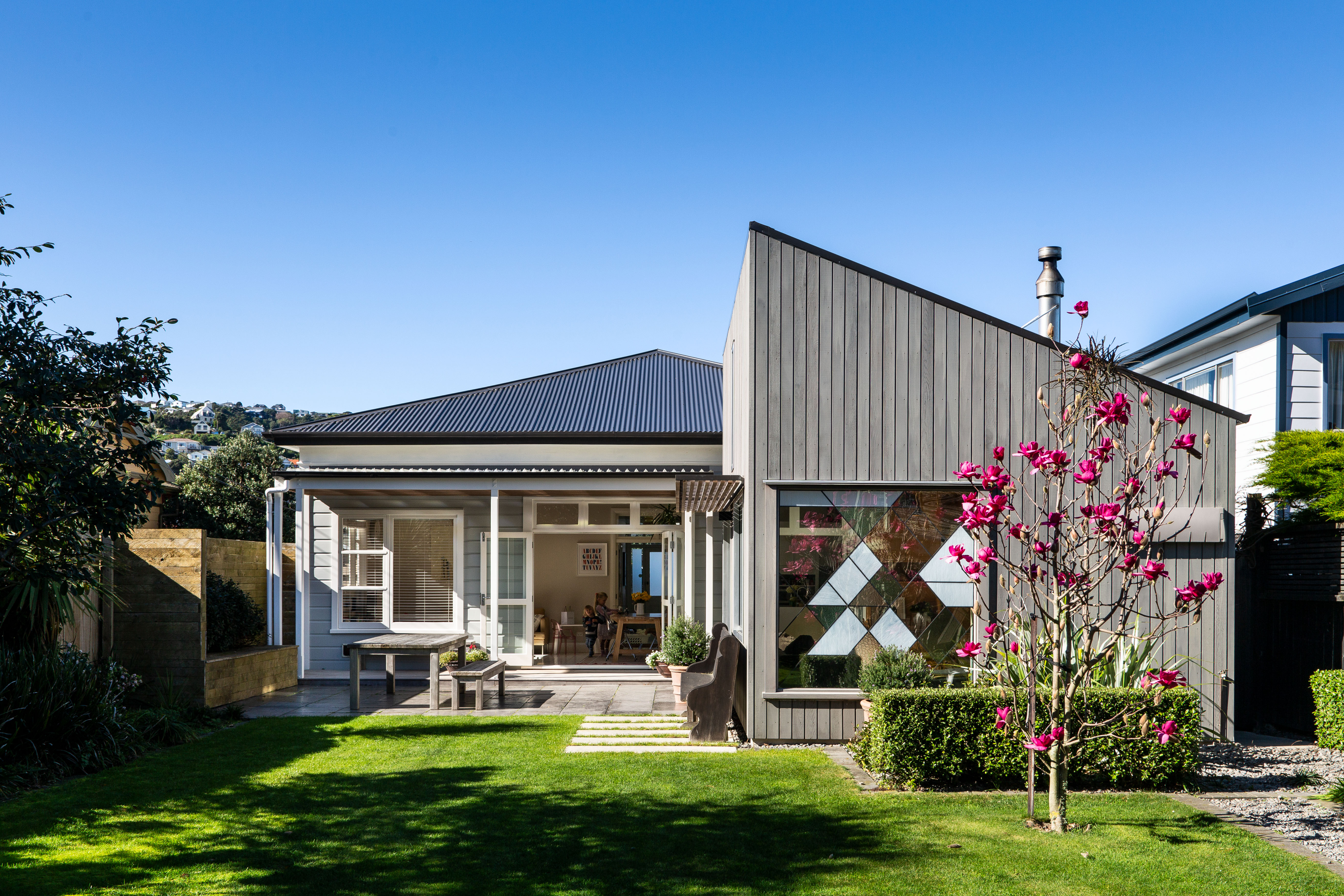 These house alterations prove that modest and thoughtful design can create magic in small spaces. The careful separation of the addition from the villa by means of a sun-filled green link-space brings simplicity and joy to good architectural space-making, and the project is resolved right down to the detail of the window sill as favourite seating place for a small boy.