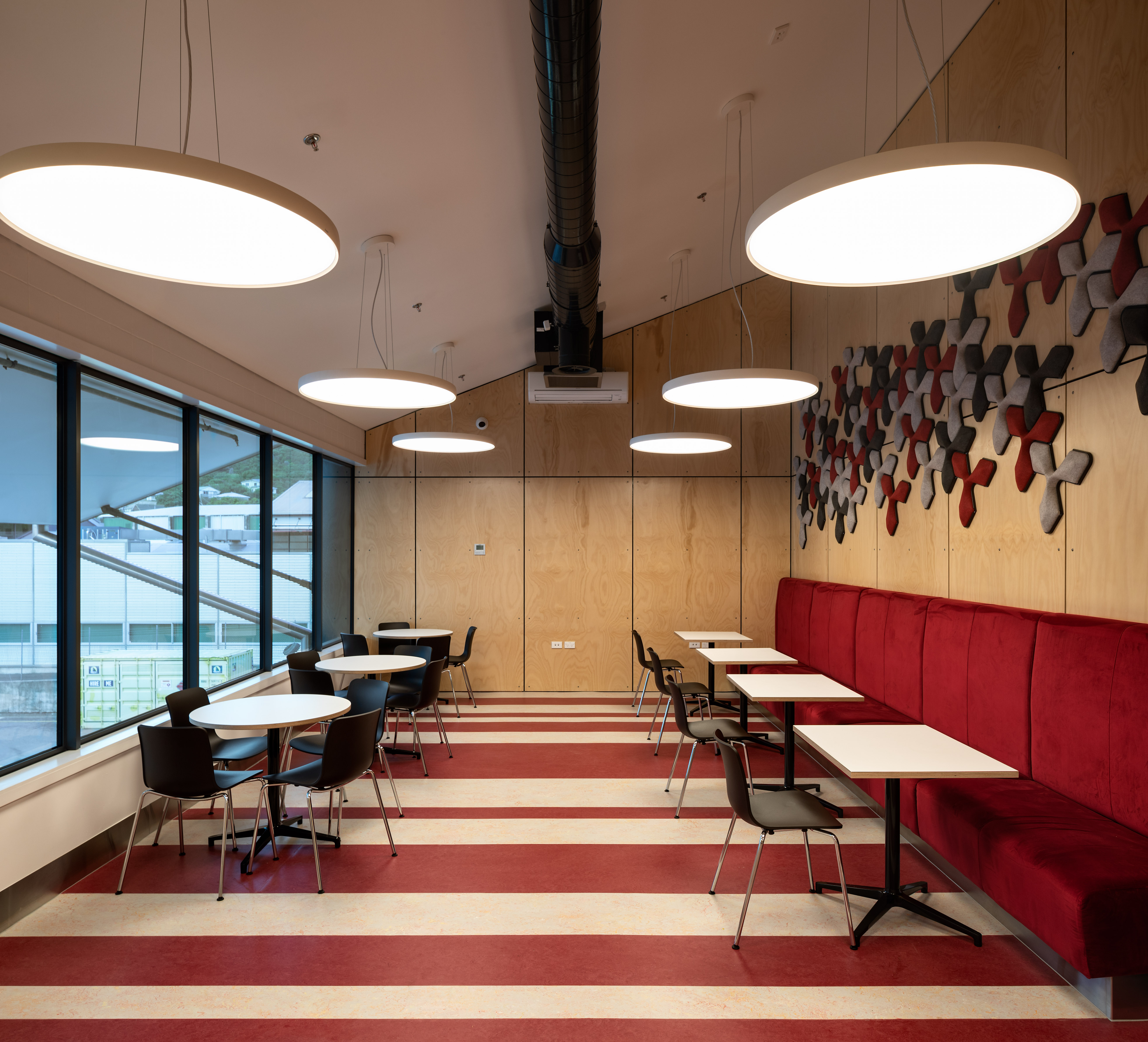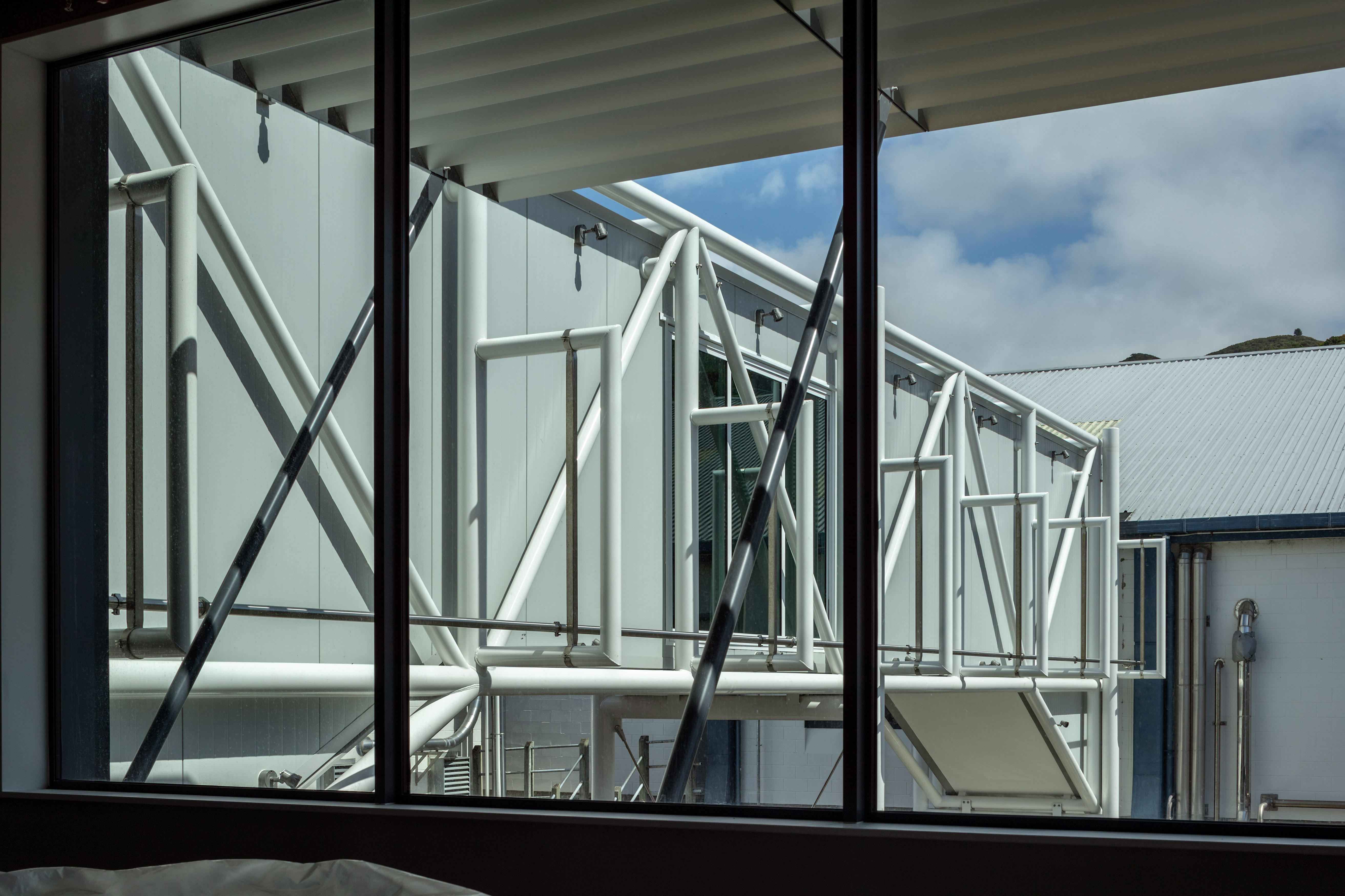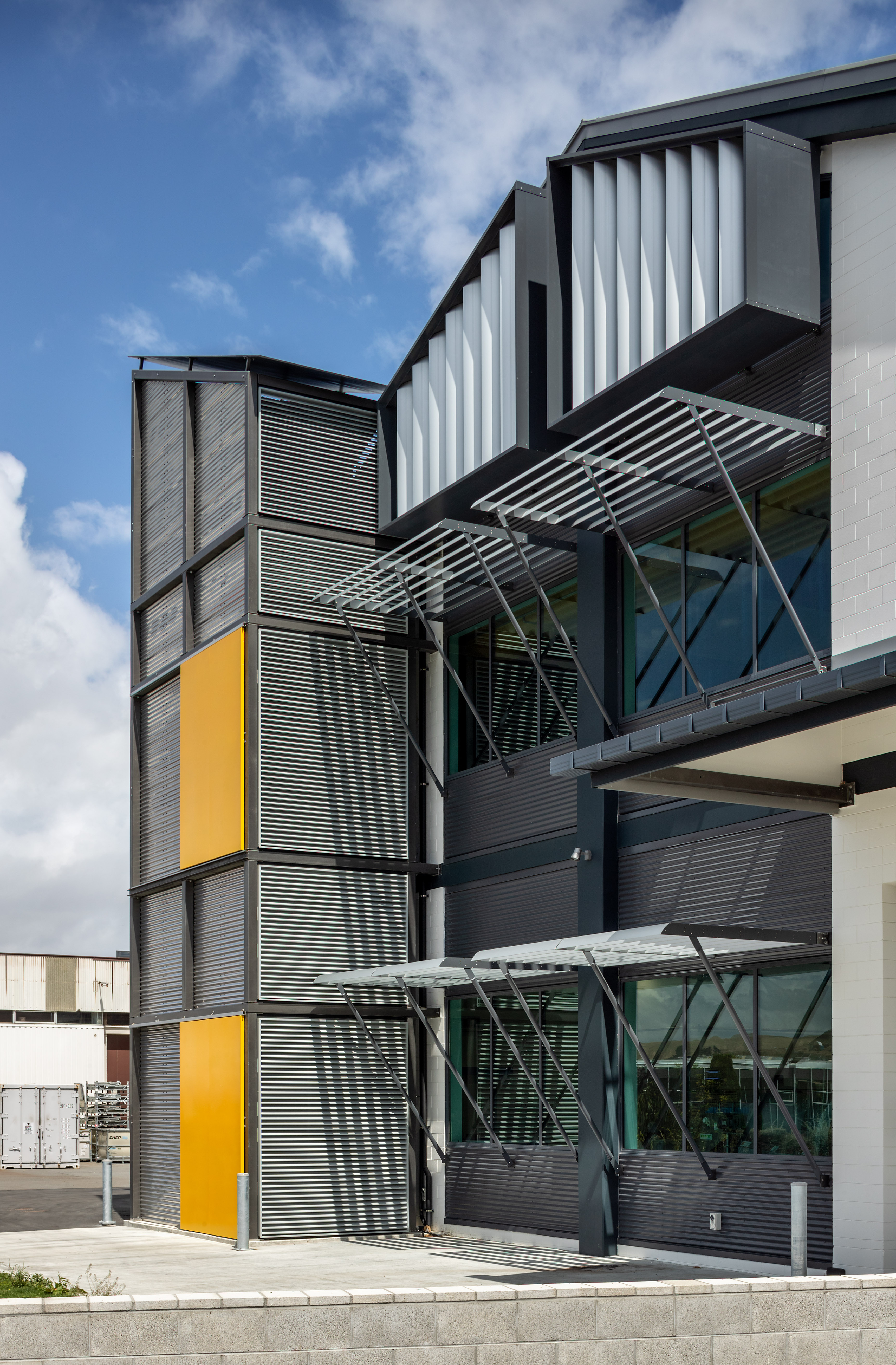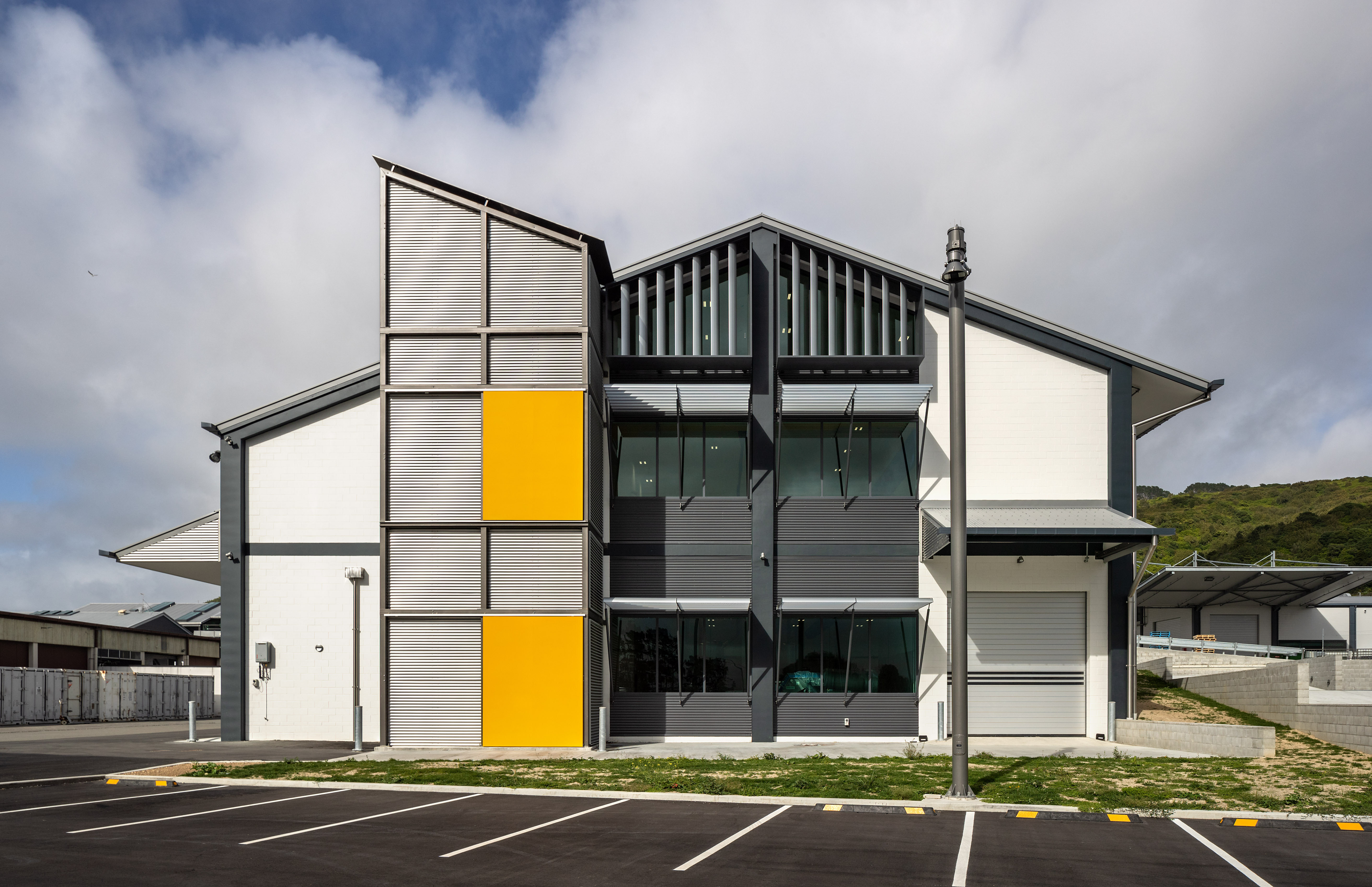 The long, successful working relationship between the architects and Whittaker’s is evident in this new roasting hub. The two-storey, purpose-built facility is stage nine of a masterplan, and continues its clear, consistent architectural language. With respect for the original gabled roofline of the industrial buildings, a strong hierarchy of building form, structure and material has been developed with confidence. Windows allow natural light and views to be experienced from within the work environment, and sunshade louvres both control sunlight and add a layer of texture to the exterior. The human scale is never forgotten in this building, which reflects a business where employees are treasured.