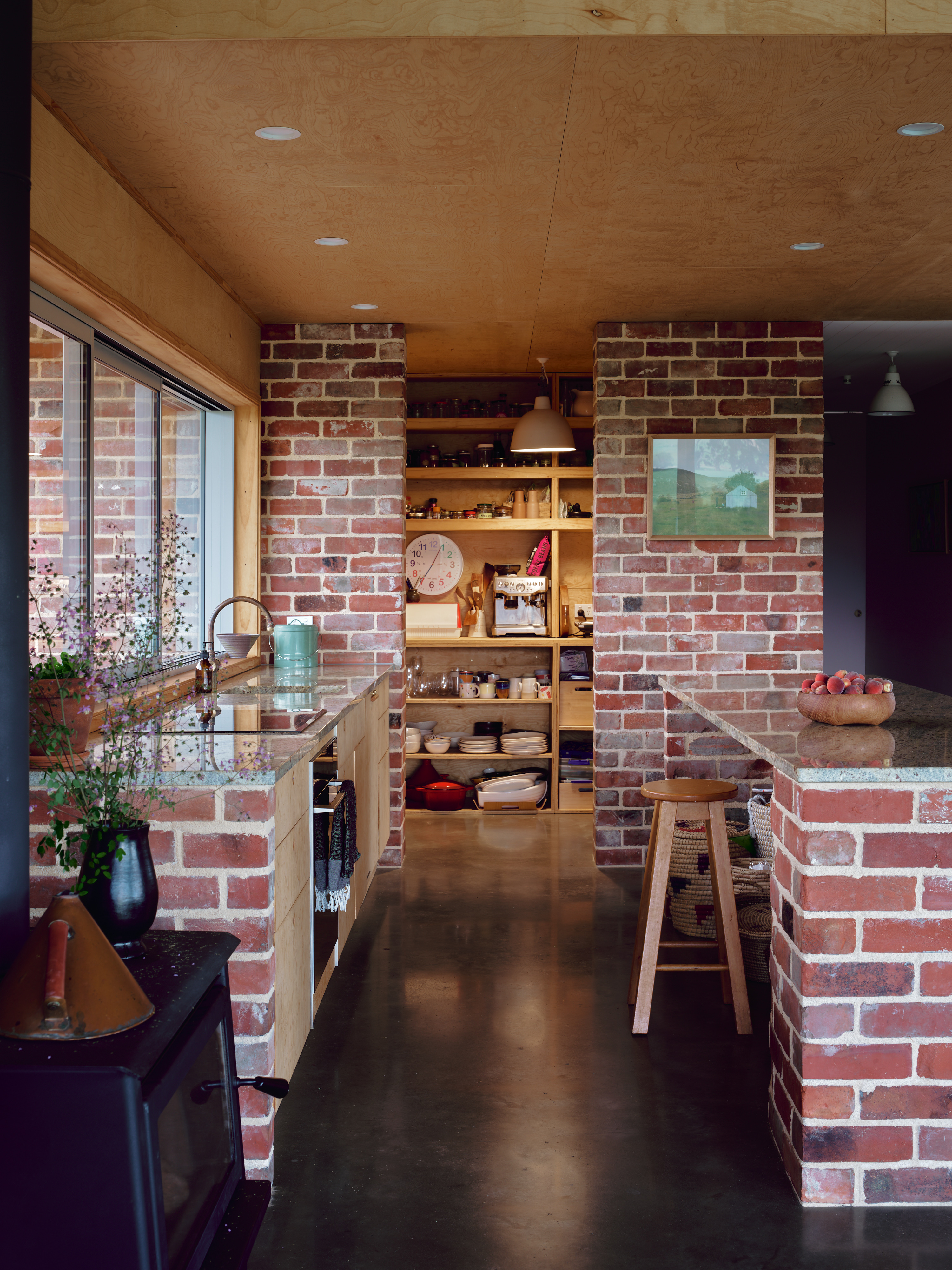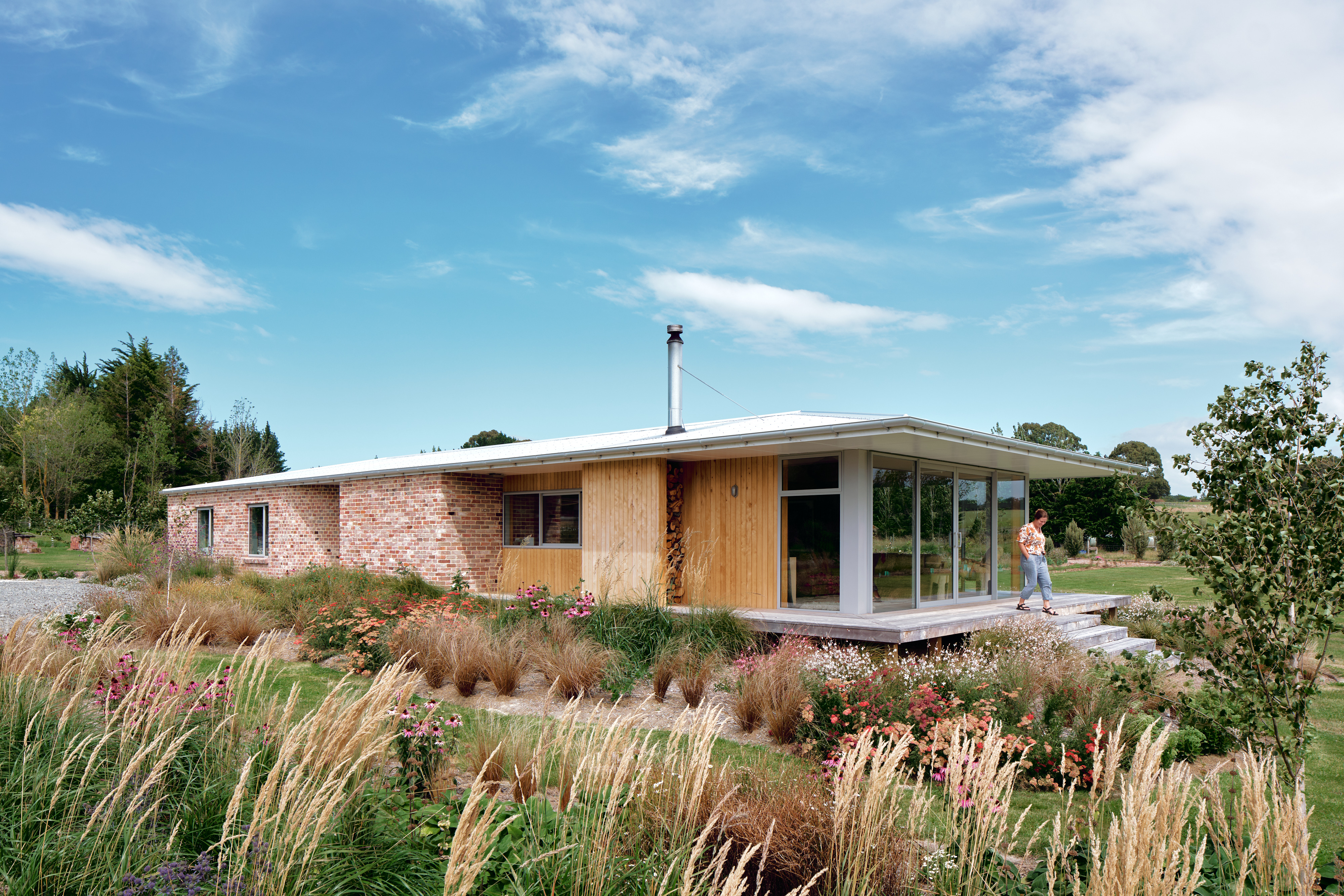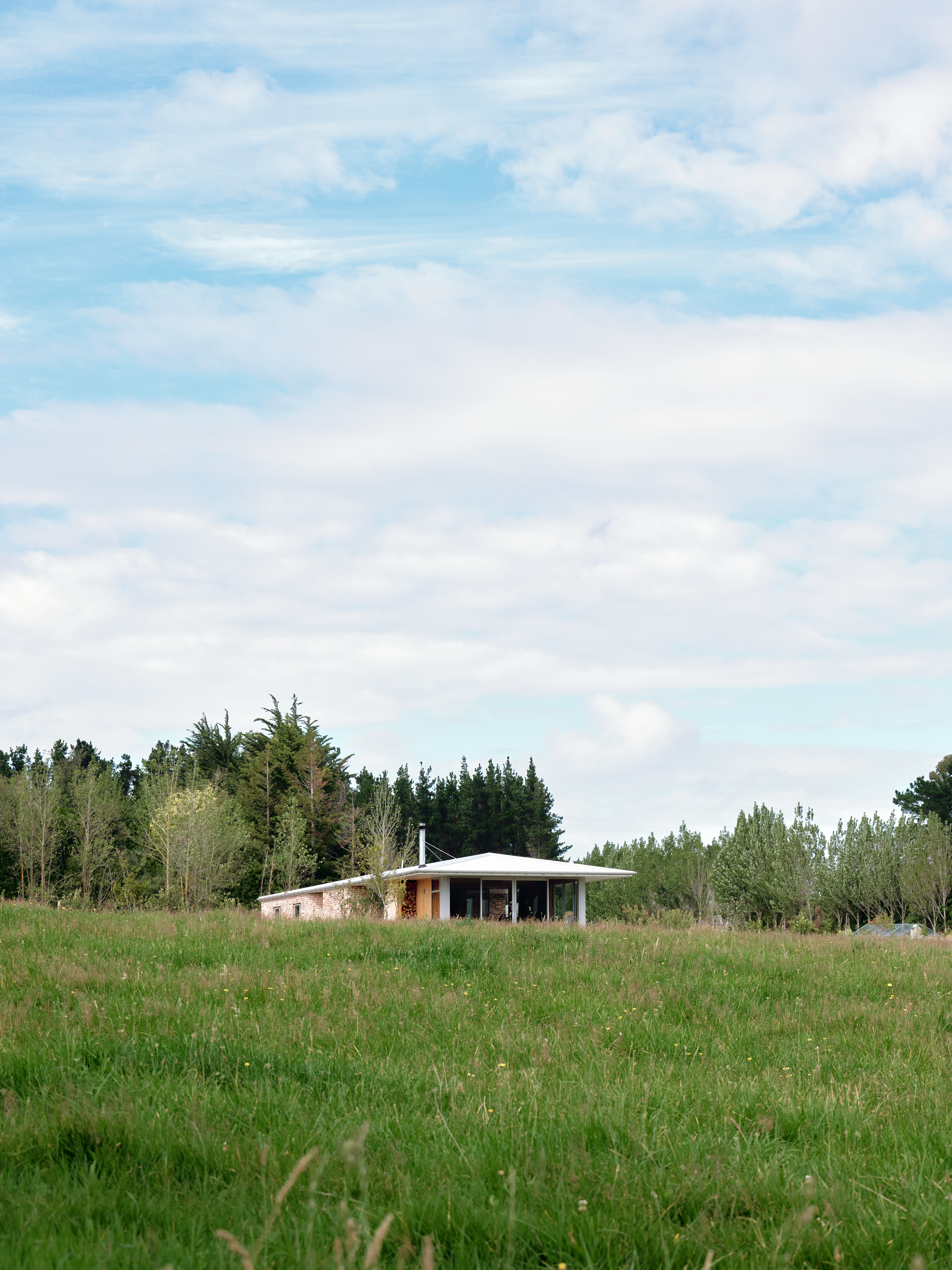 A modern home for a young farming family on a budget, Kapua Farm House was created though a collaborative effort of family and friends. Embracing passive design principles, the design is anchored by a recycled brick bedroom wing at the rear of the site. A curved brick entry opens up to a warm, birch ply kitchen and living area projecting out to views of the landscape under a low-slung zinc roof. Interiors are whimsical and personal. Local macrocarpa decking wraps the home, offering multiple outdoor zones that respond to the conditions. This home speaks clearly to its natural environment in the North Canterbury landscape.