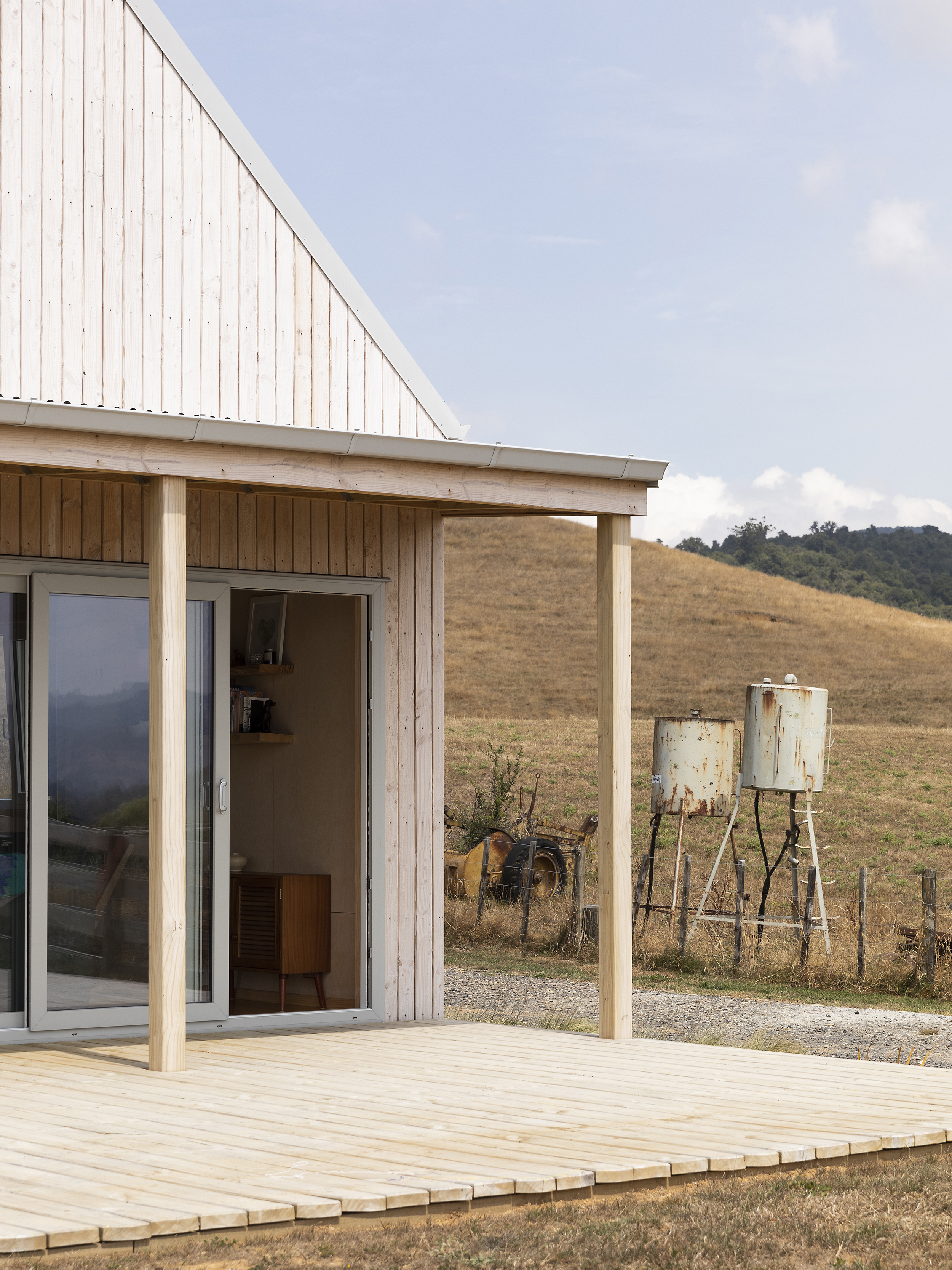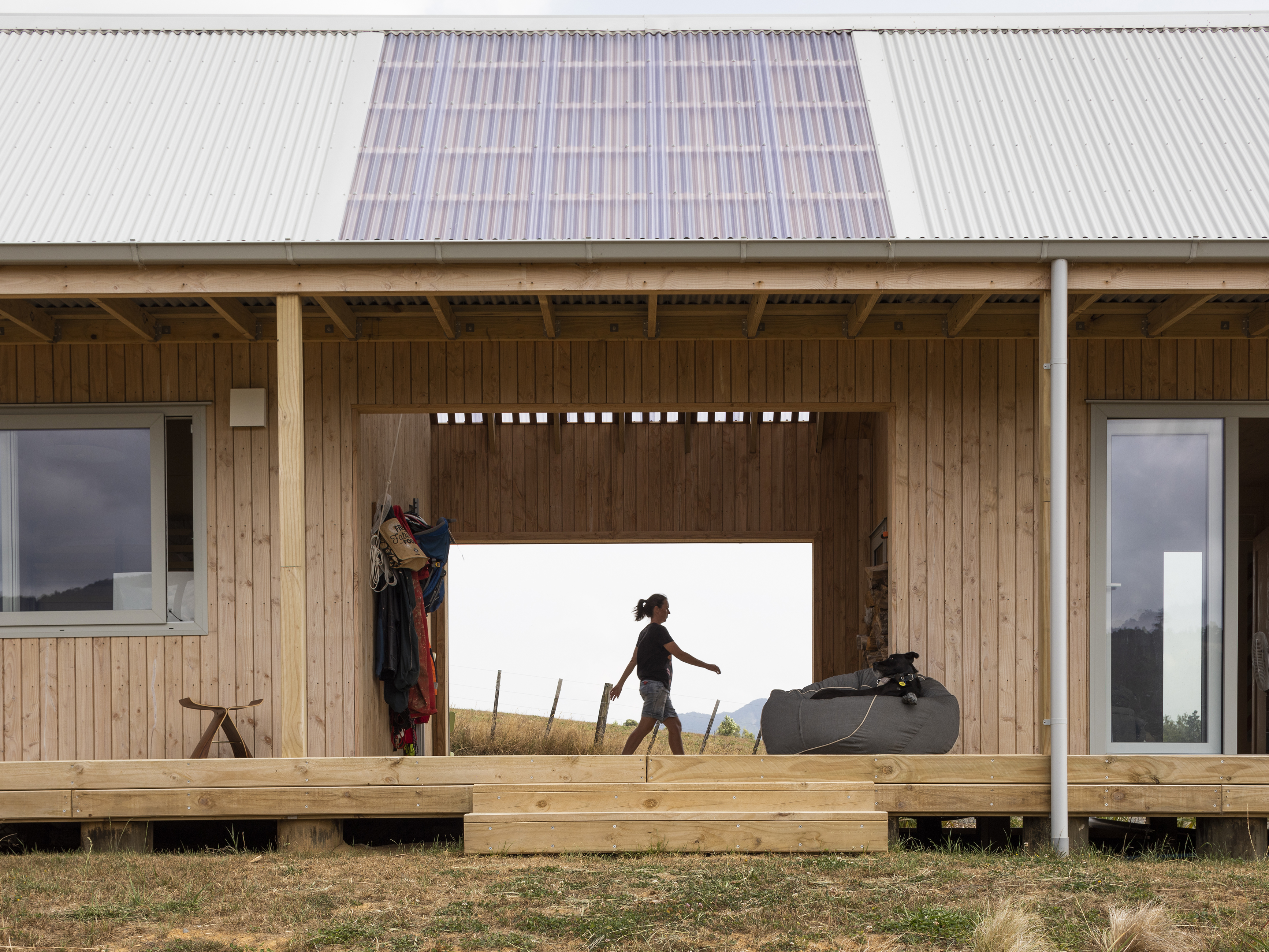 The clients wanted a simple family home inspired by a tramper’s hut that would enable them to enjoy life in the rural location they love. Make Architects’ response to the brief has achieved this with a well-planned and economical project. Steel roofing, timber cladding, prefabricated wall and ceiling panels, and cross-laminated floor and ceiling panels provided economy and speed of construction. Plywood lends a warm and contemporary yet casual feeling to the interior. A breezeway and an additional accommodation wing add a flexible space for family members, guests, or working from home.