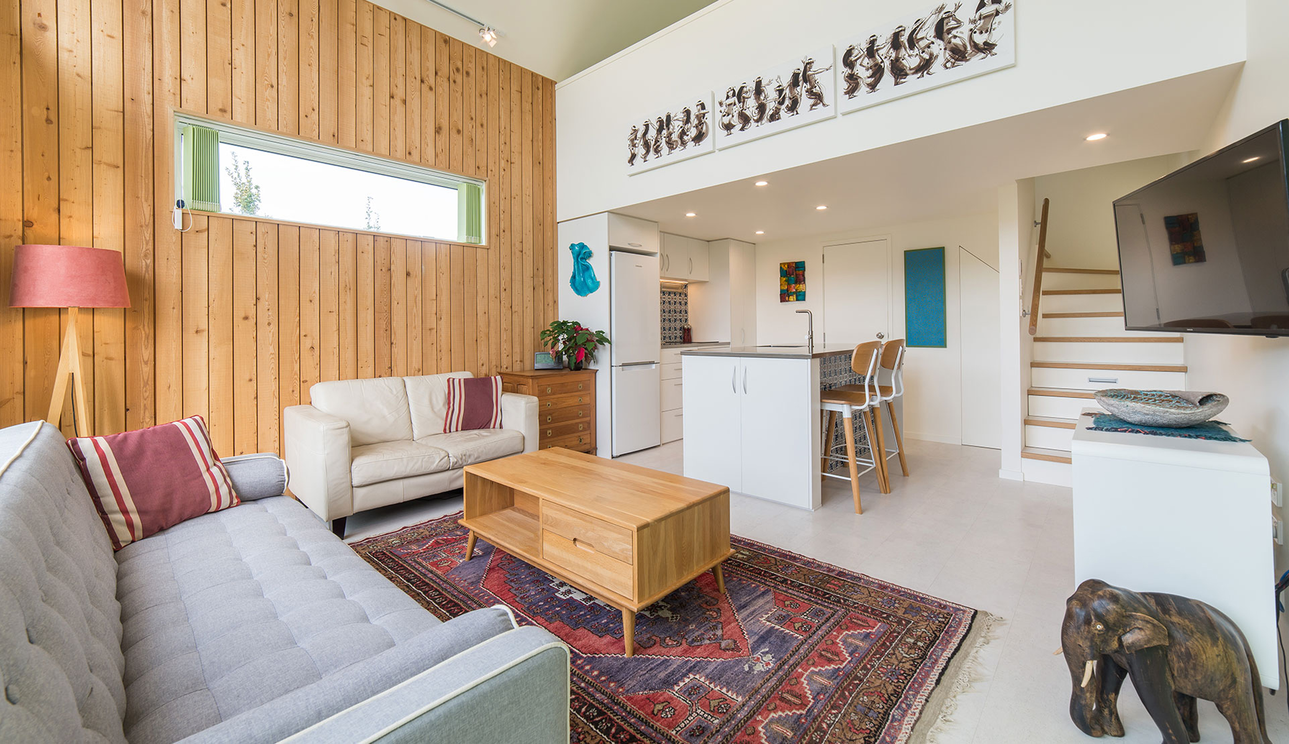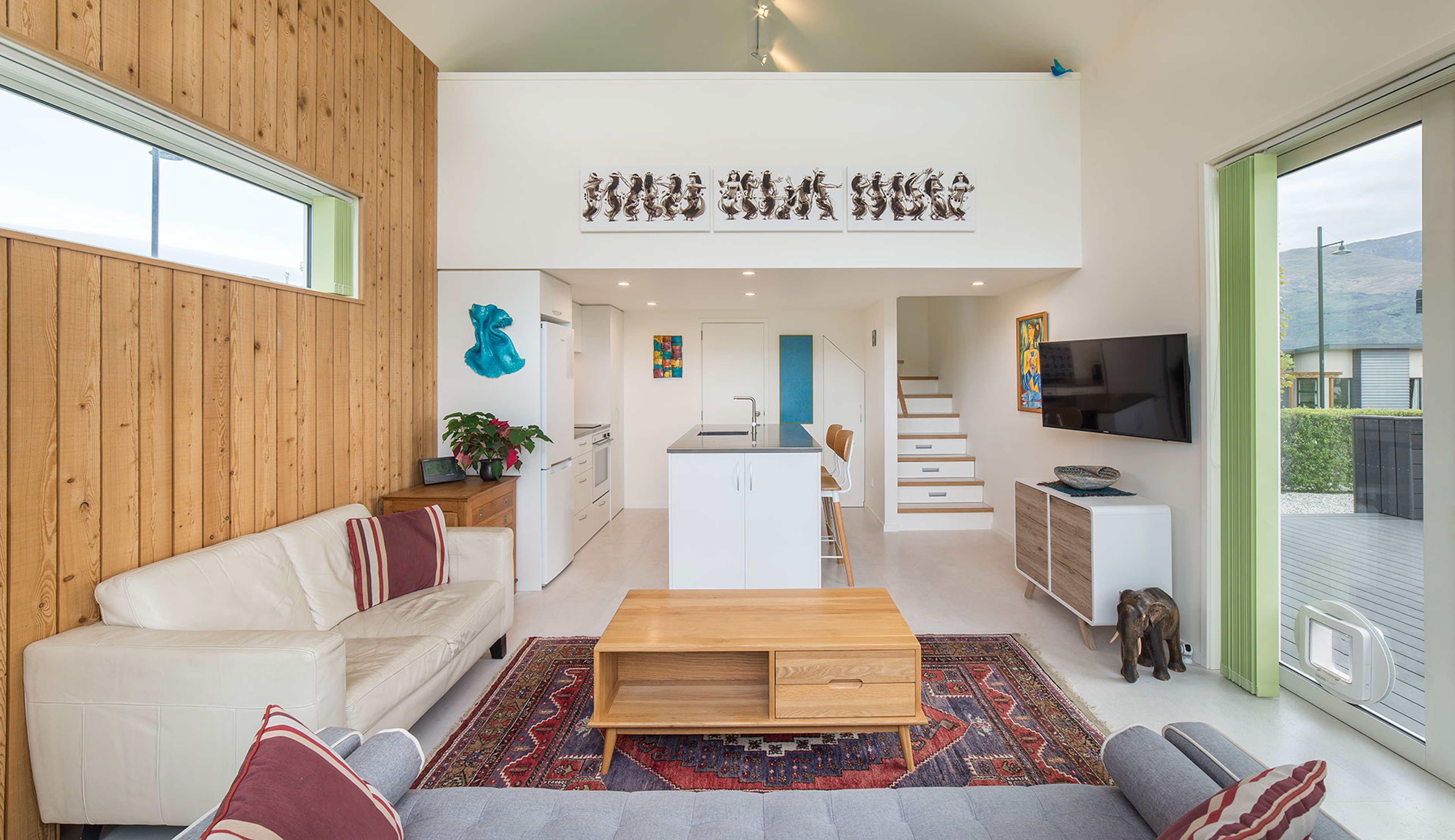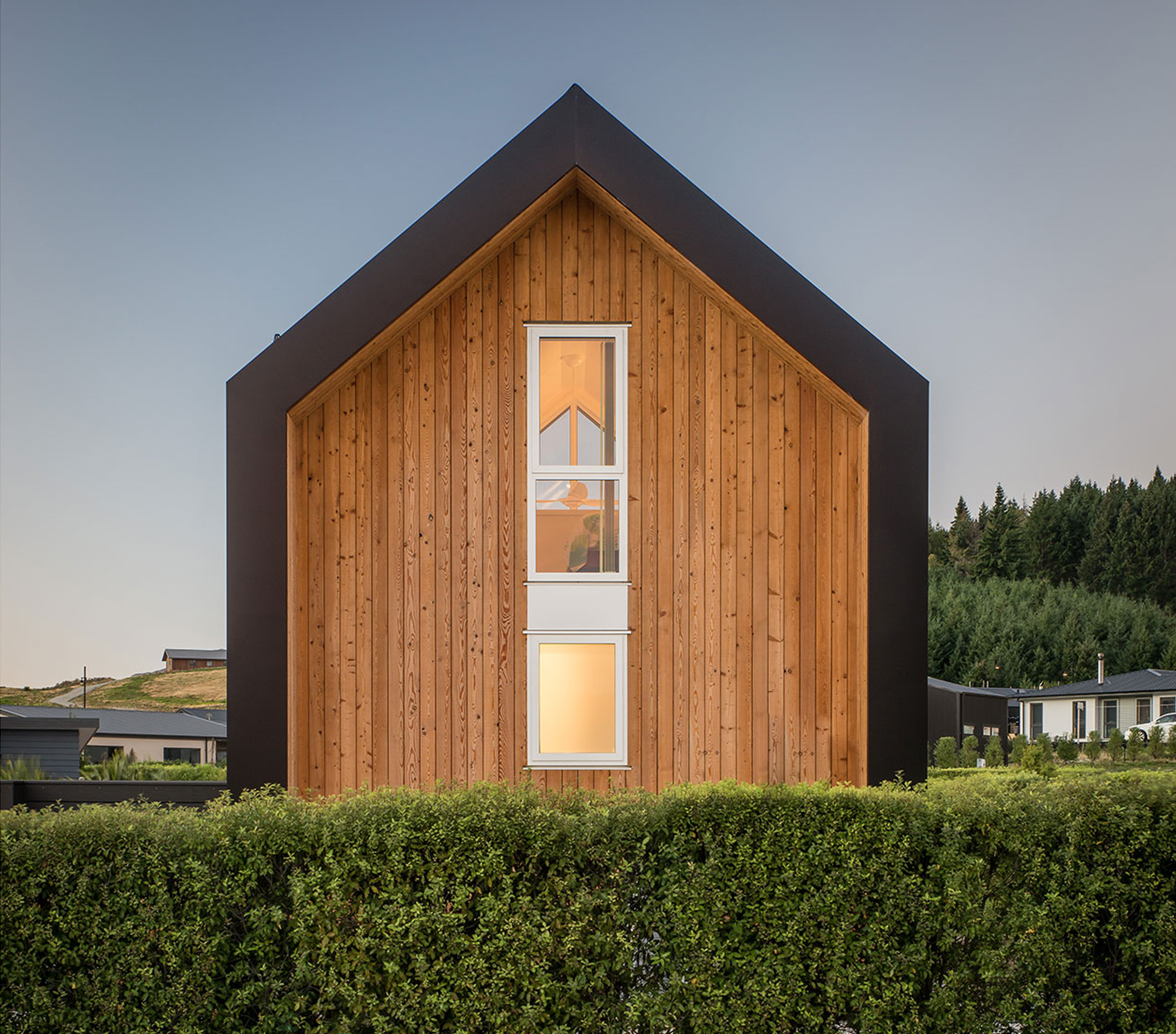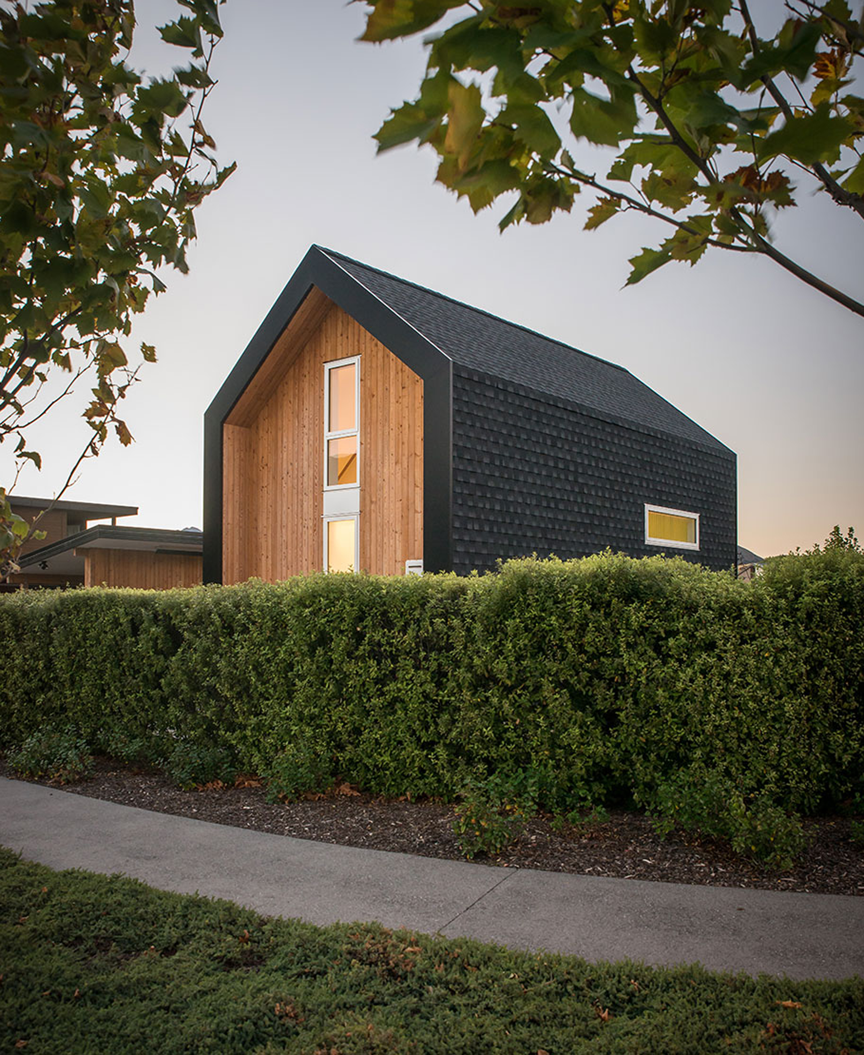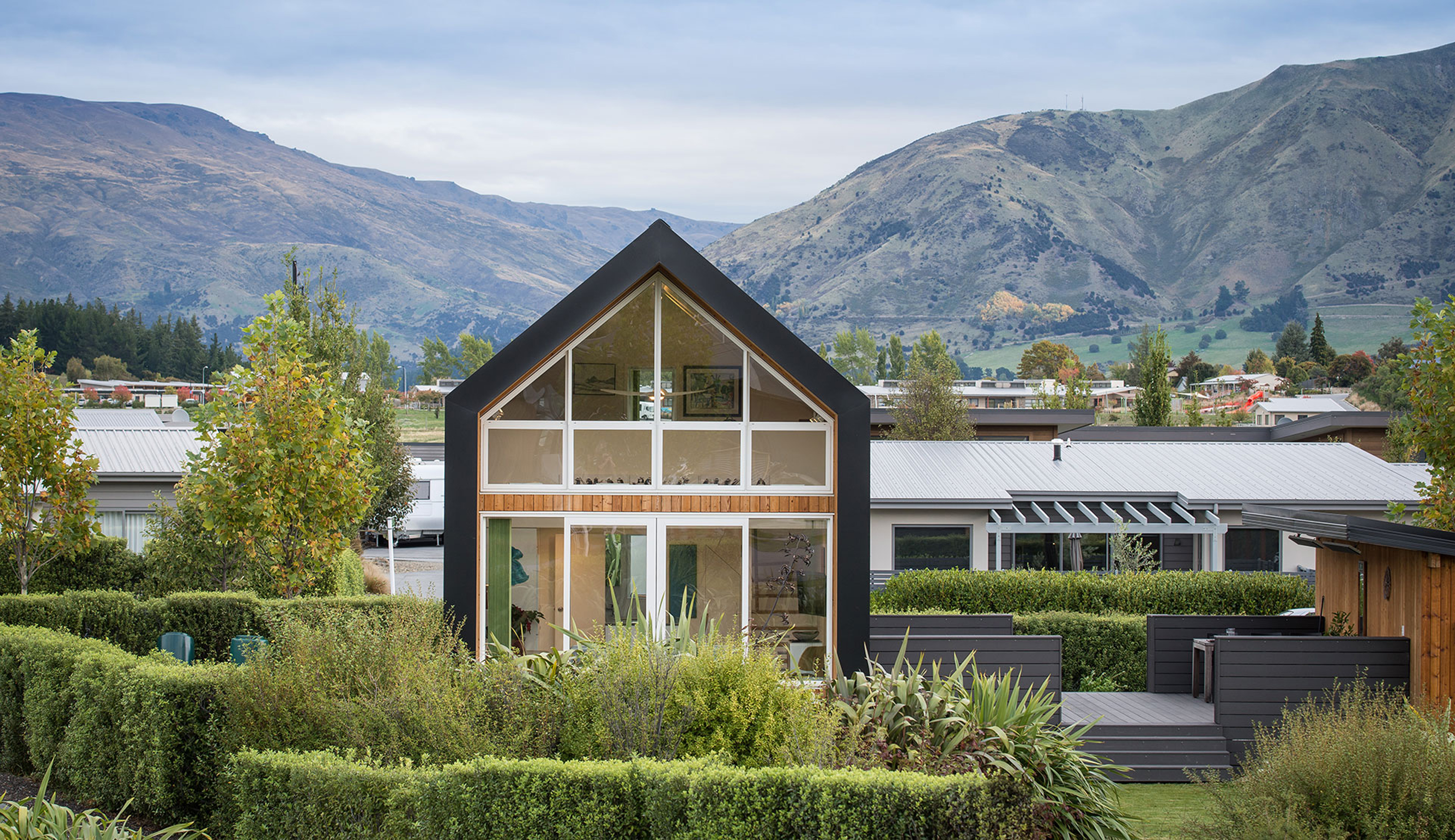 This small house, inspired by a cycle trip and life lived out of panniers, is defined by a simple gable form and a sturdy black rain screen. The compact, 30 square metre, one-bedroom home utilises cleverly crafted spatial devices to pack a lot of punch into a small place without compromising the scale of the living areas. With a combination of passive house measures and structural insulated panels, virtually no additional energy is required to maintain a consistent level of thermal comfort against the backdrop of the unforgiving Central Otago climate.