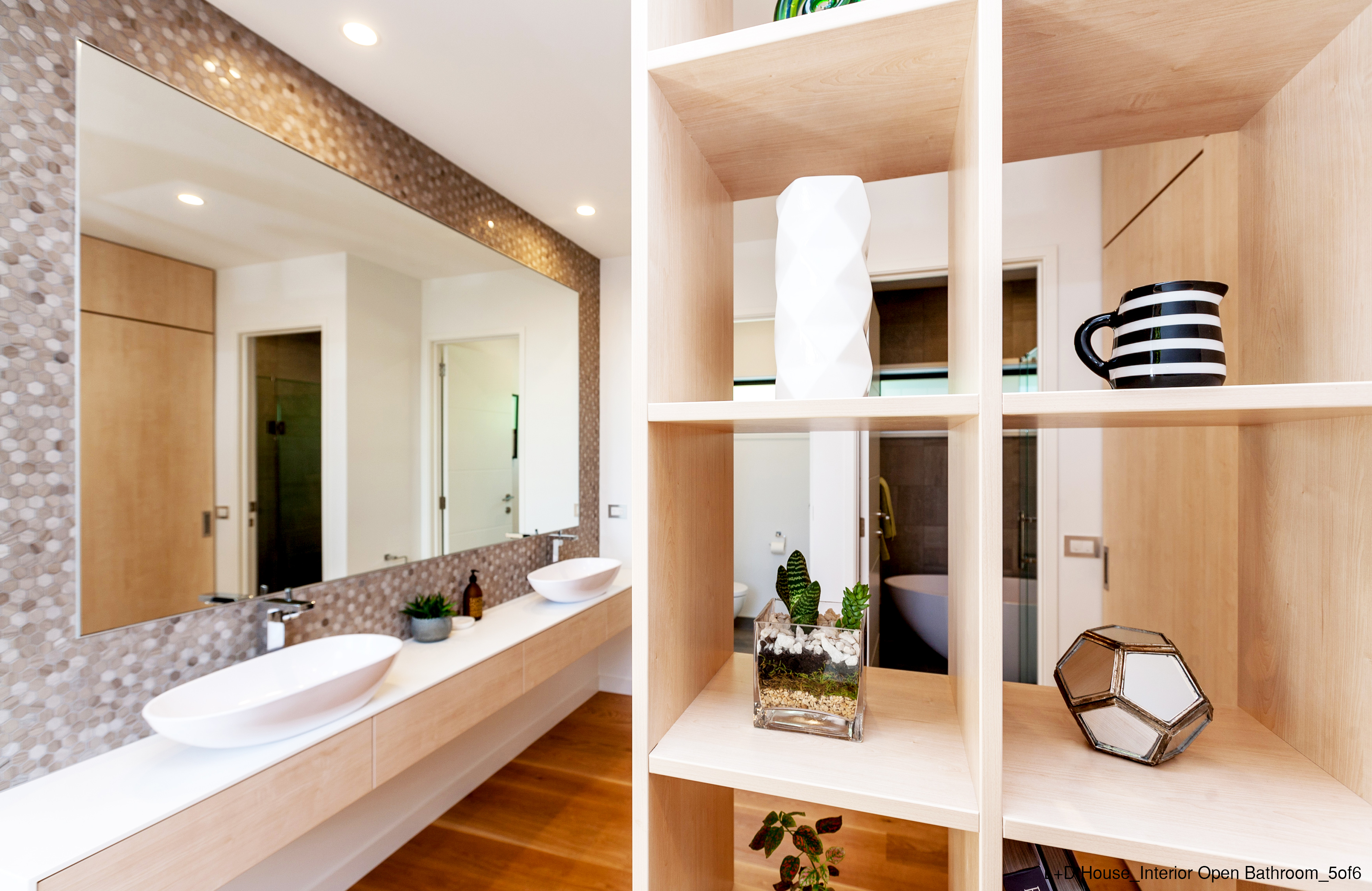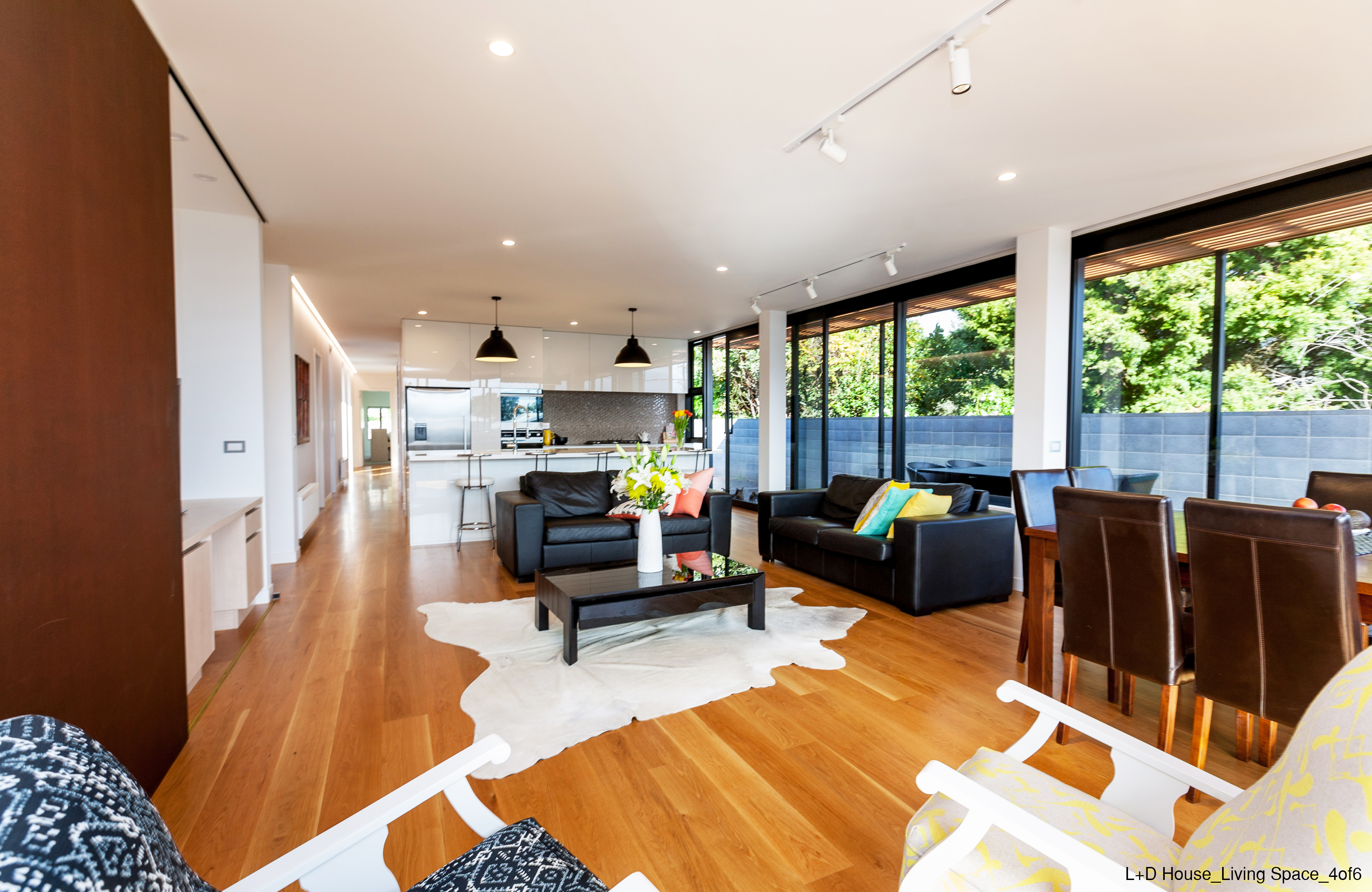 Simple, rational planning has allowed this well-mannered addition to the neighbourhood to maximise the envelope of its narrow (sub)urban site. Each of the main spaces has a unique connection to the outdoors that extends beyond the walls of the house to the limits of the site boundary and, in the case of the master bedroom’s mural outlook, beyond its confines. The separation of public and private spaces has been well considered, and challenged at the street elevation and in the semi-open main bathroom.