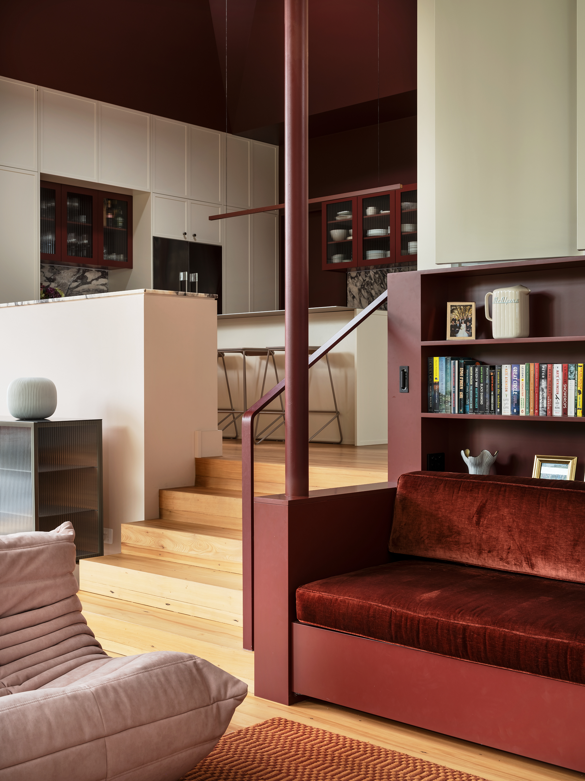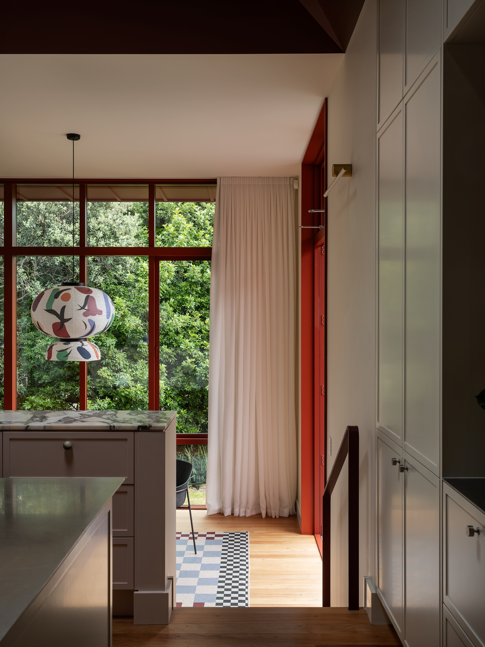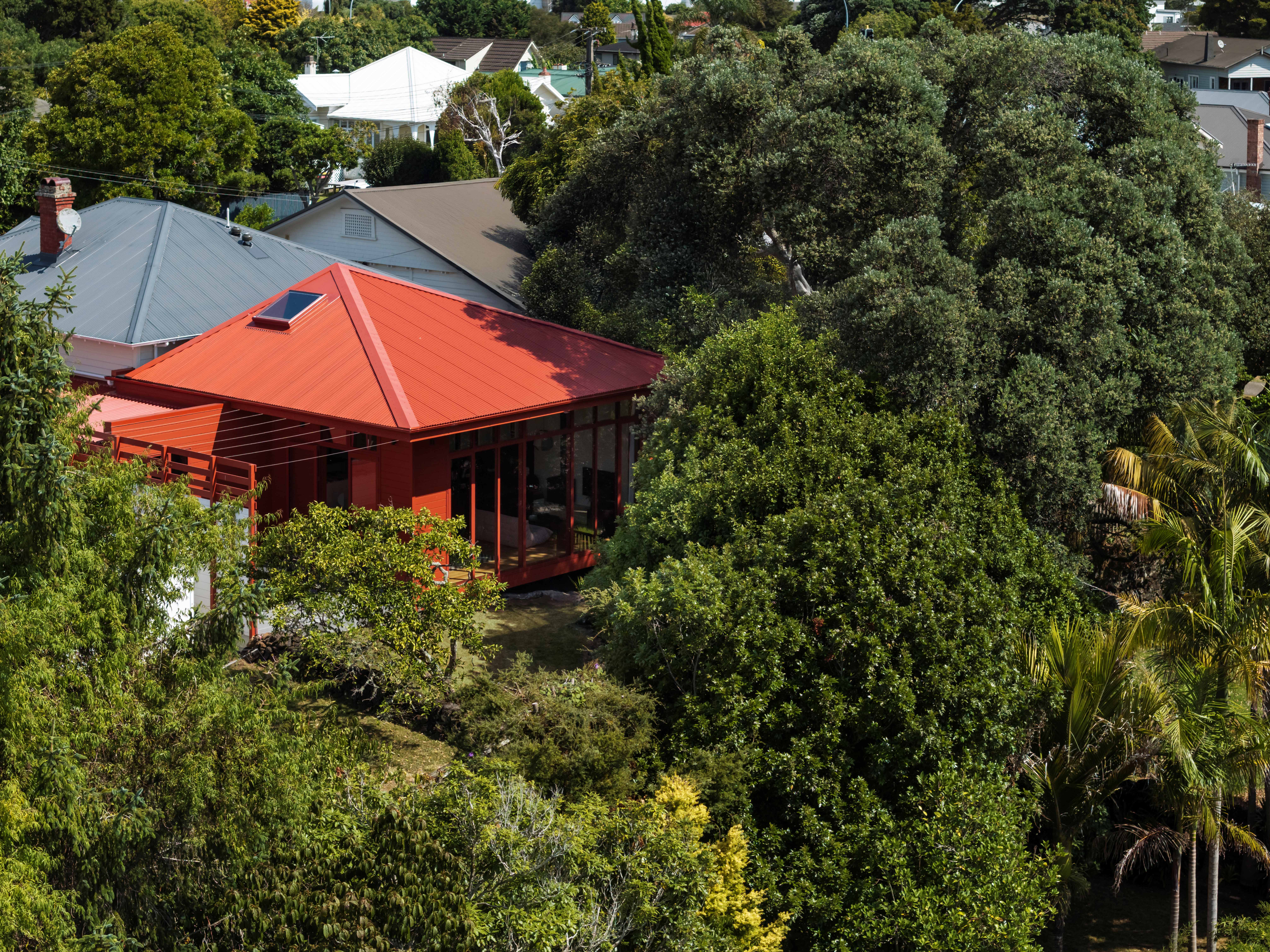 Perched on the edge of a volcanic precipice, this villa extension reclaims a once-disconnected home with grace and ingenuity. Stepping down through three levels, it follows the site’s steep terrain to reconnect with the land and open into a canopy of mature trees. A pyramid roof and sculpted skylight draw in shifting light, while a volcanic colour palette grounds the design in place and personality. Sensitive to heritage, light on carbon and rich in spatial storytelling, this project balances old and new with confidence and care.